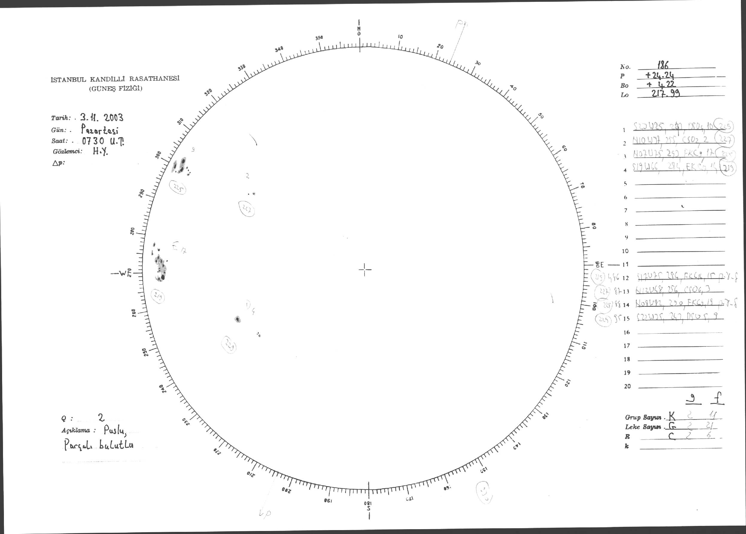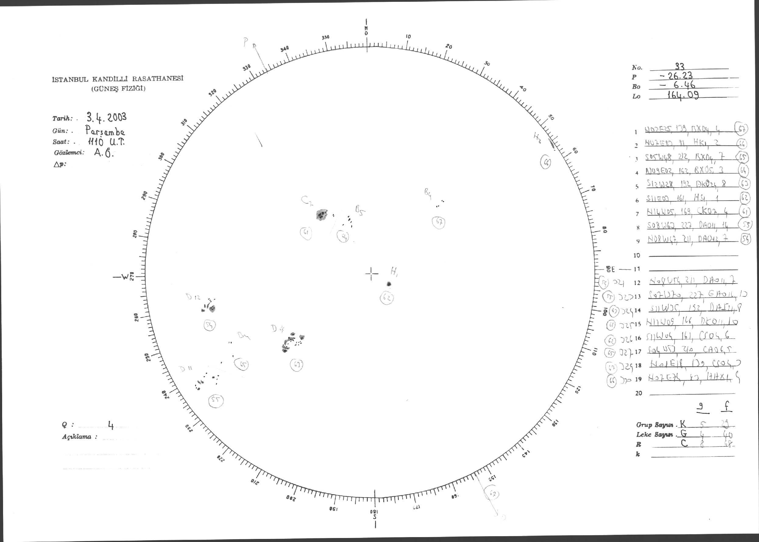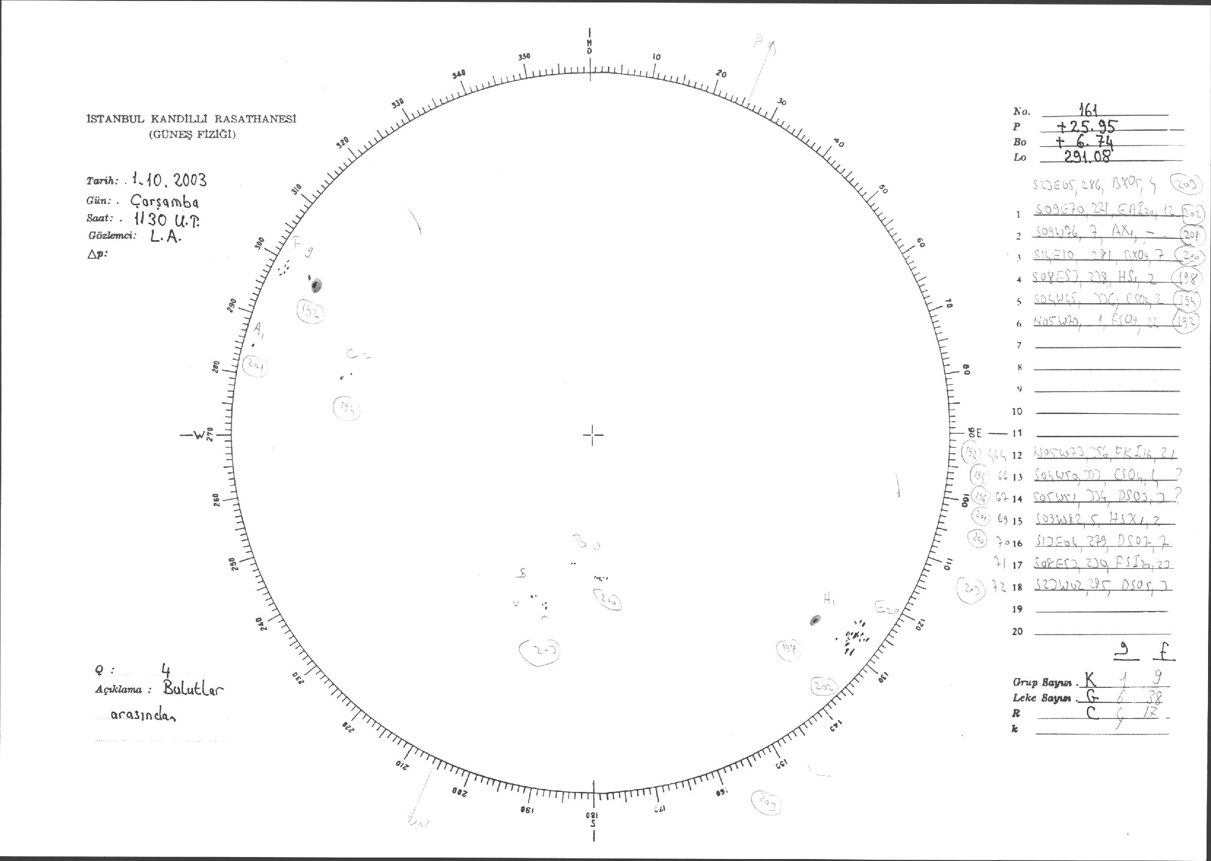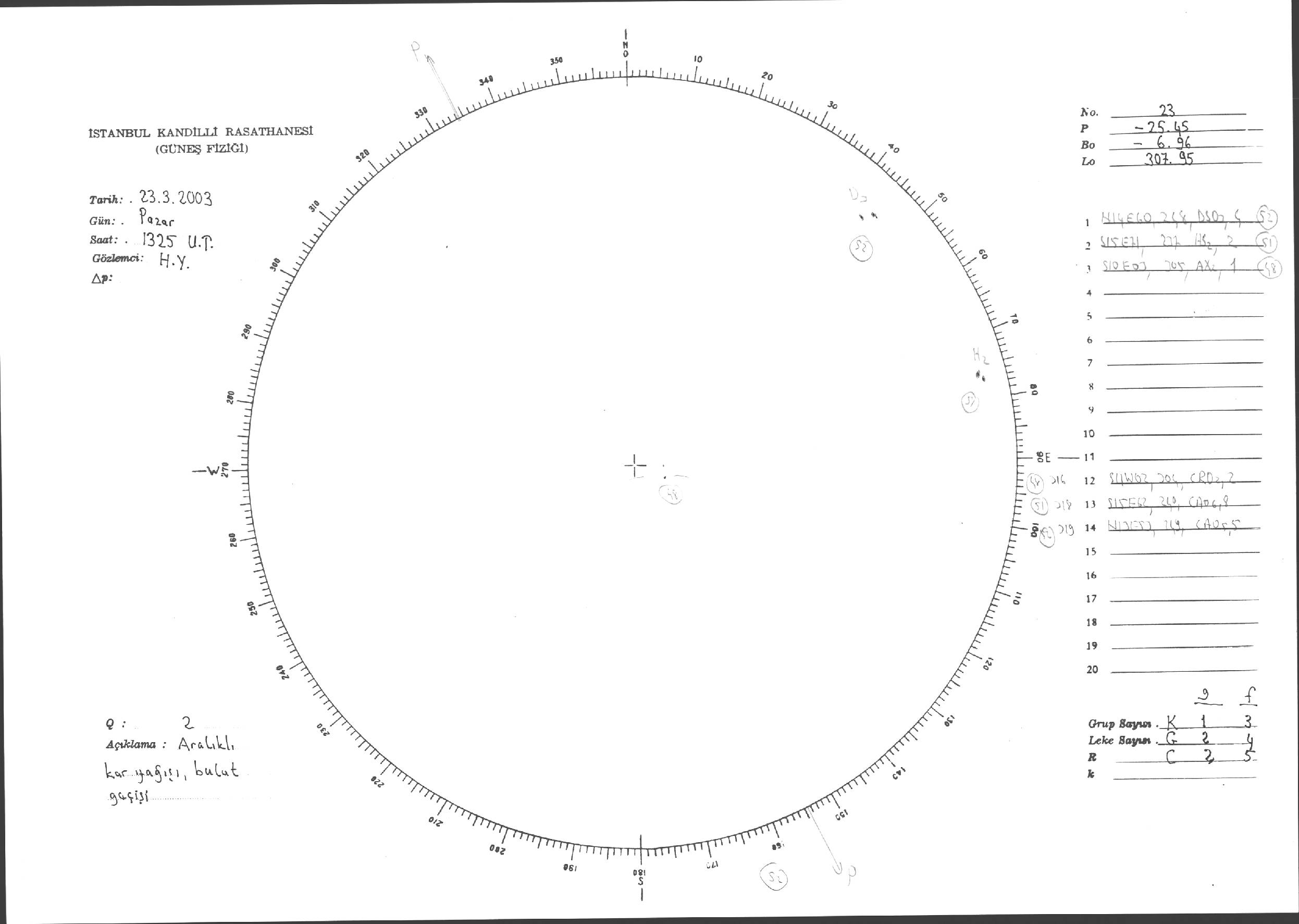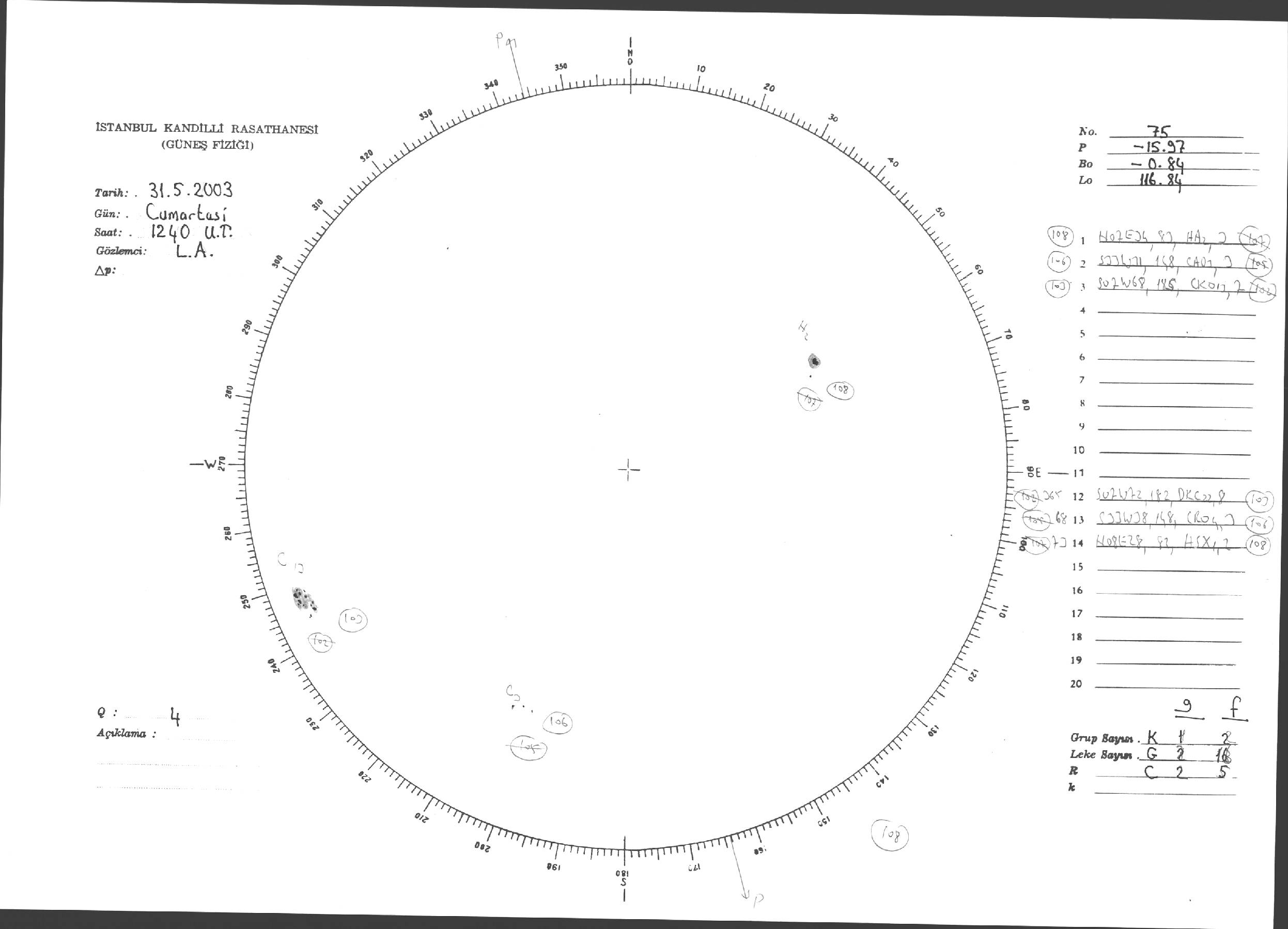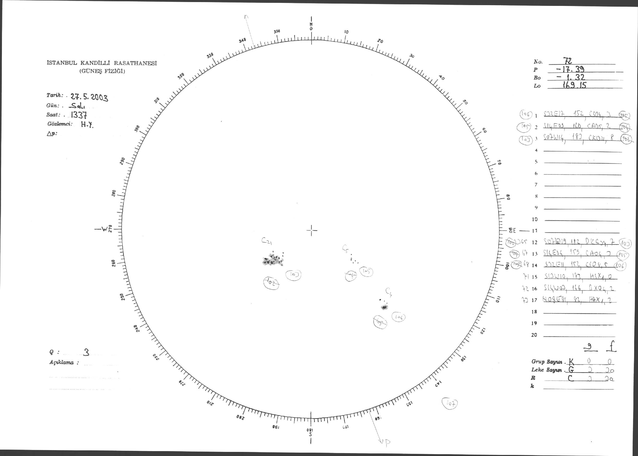 Güneş Lekesi Çizimleri / Kandilli Sunspot Drawings