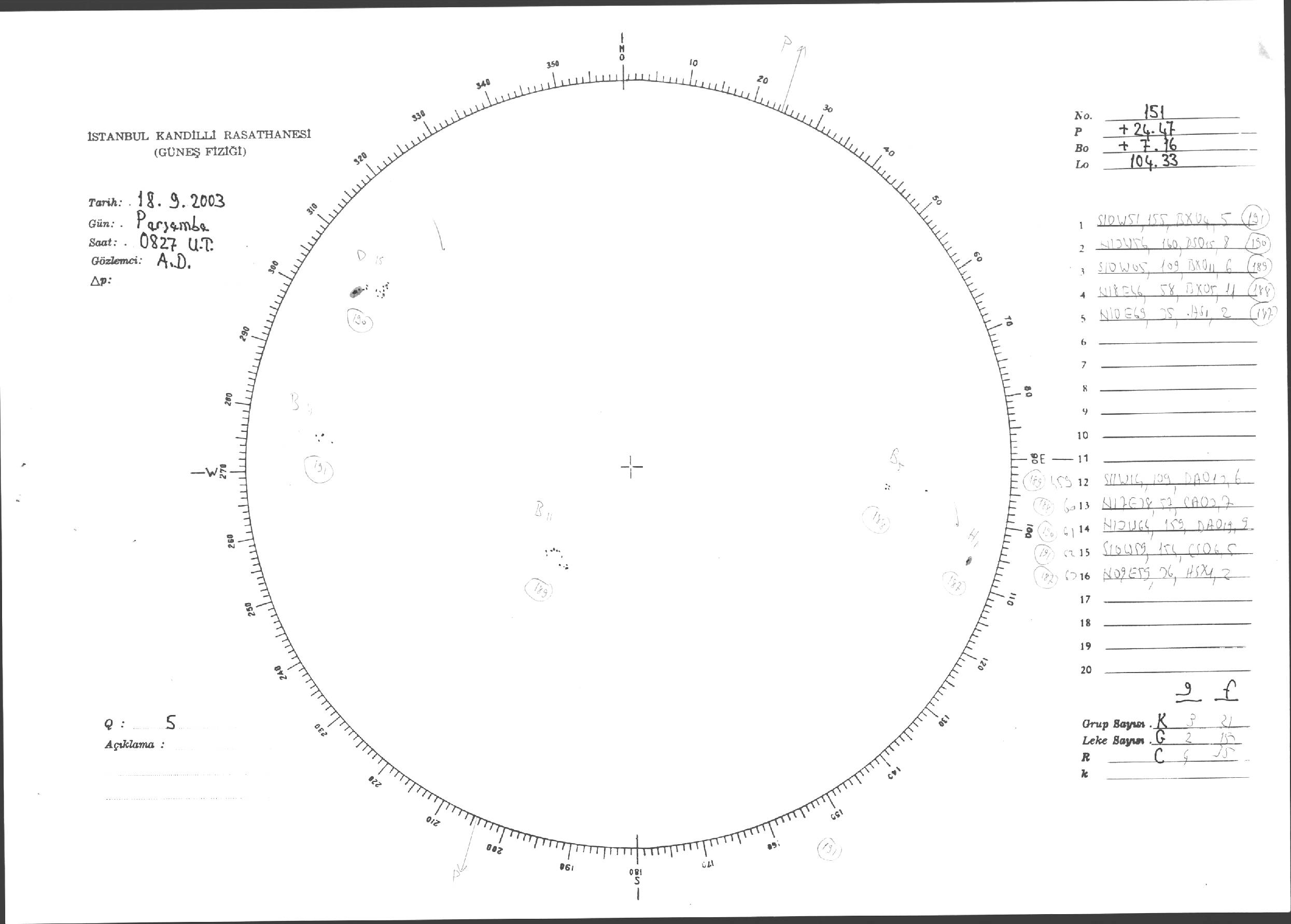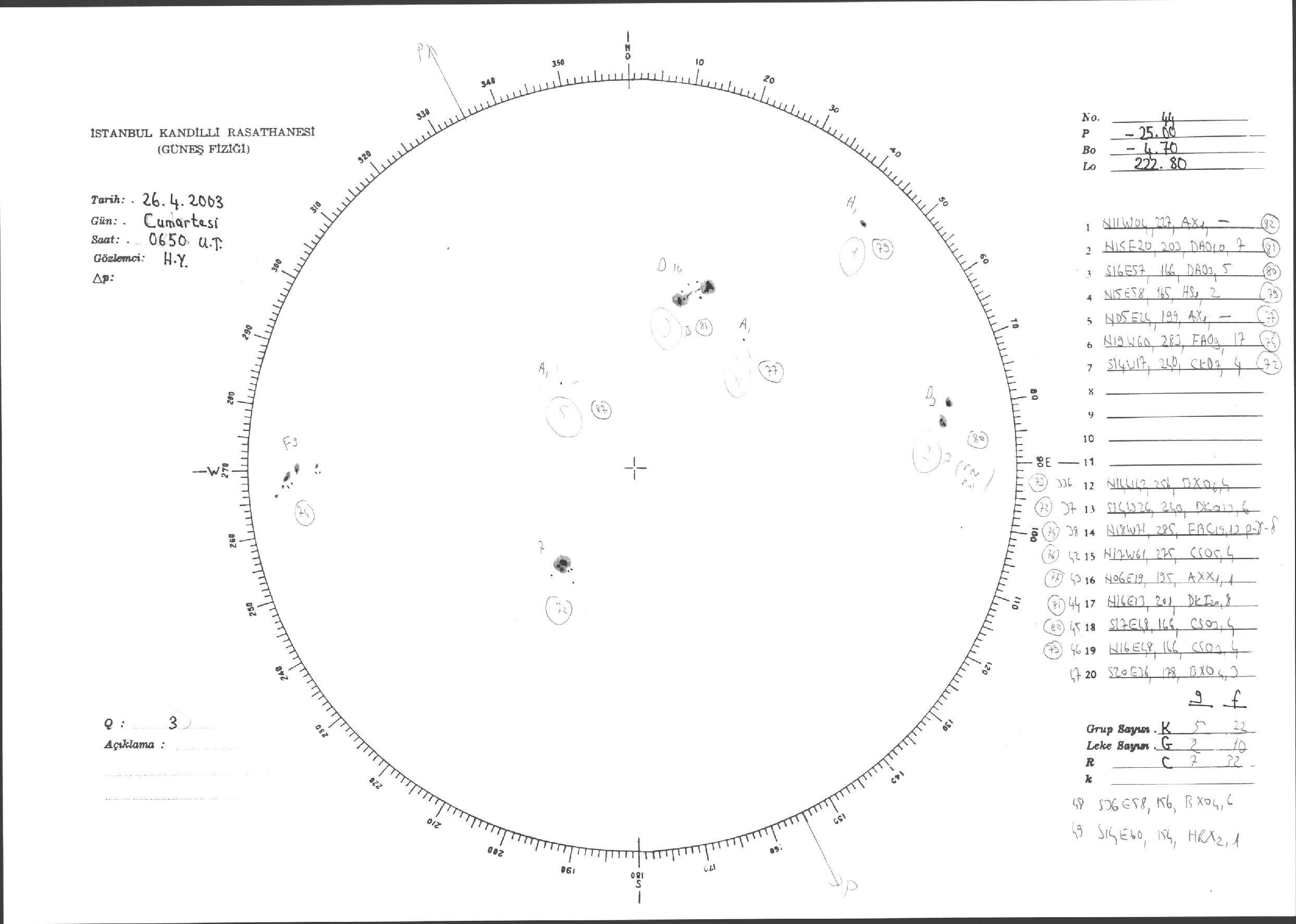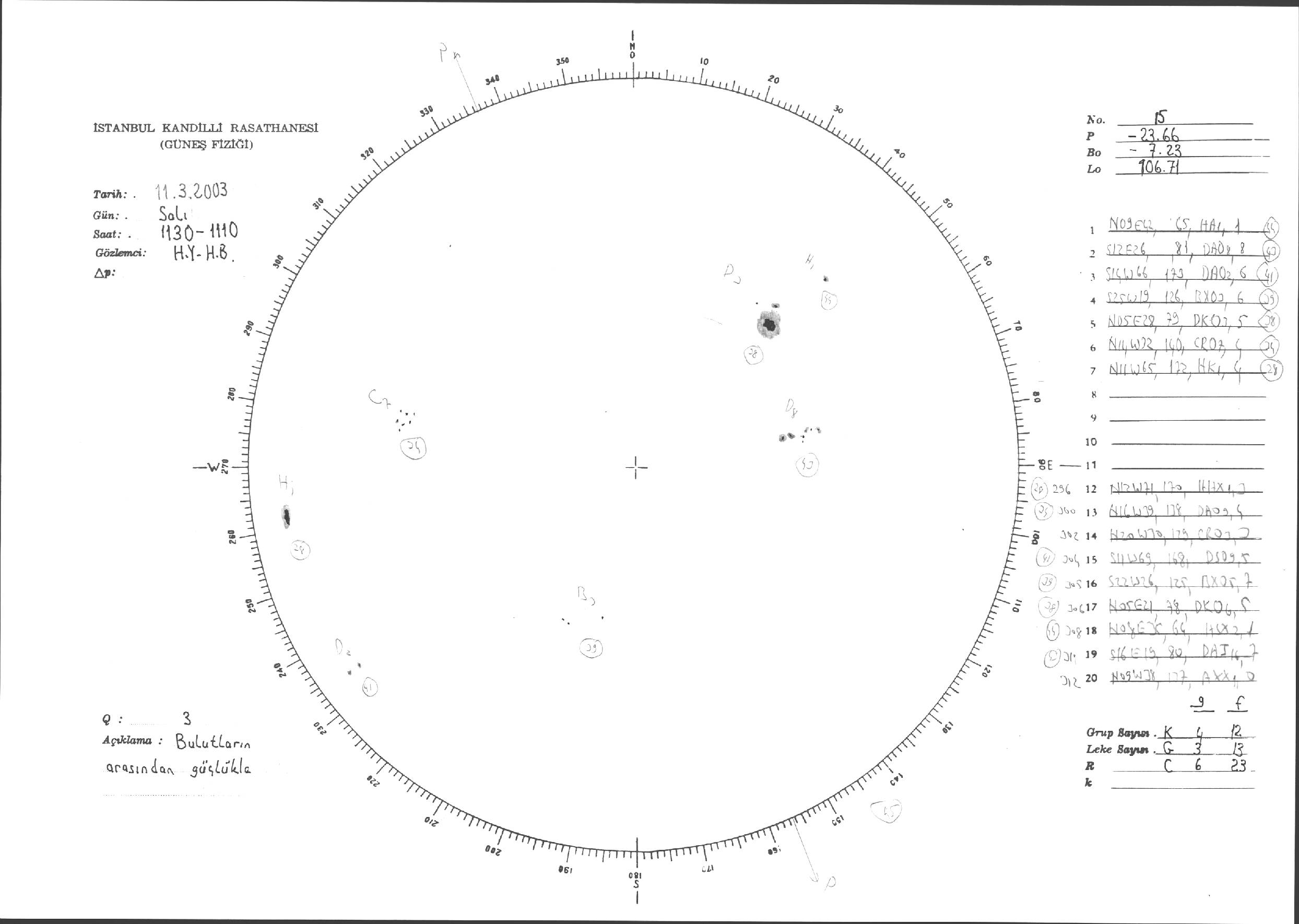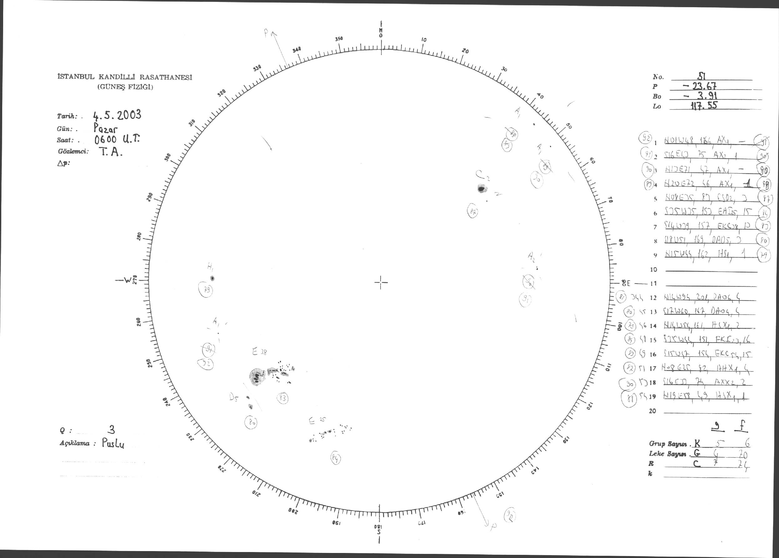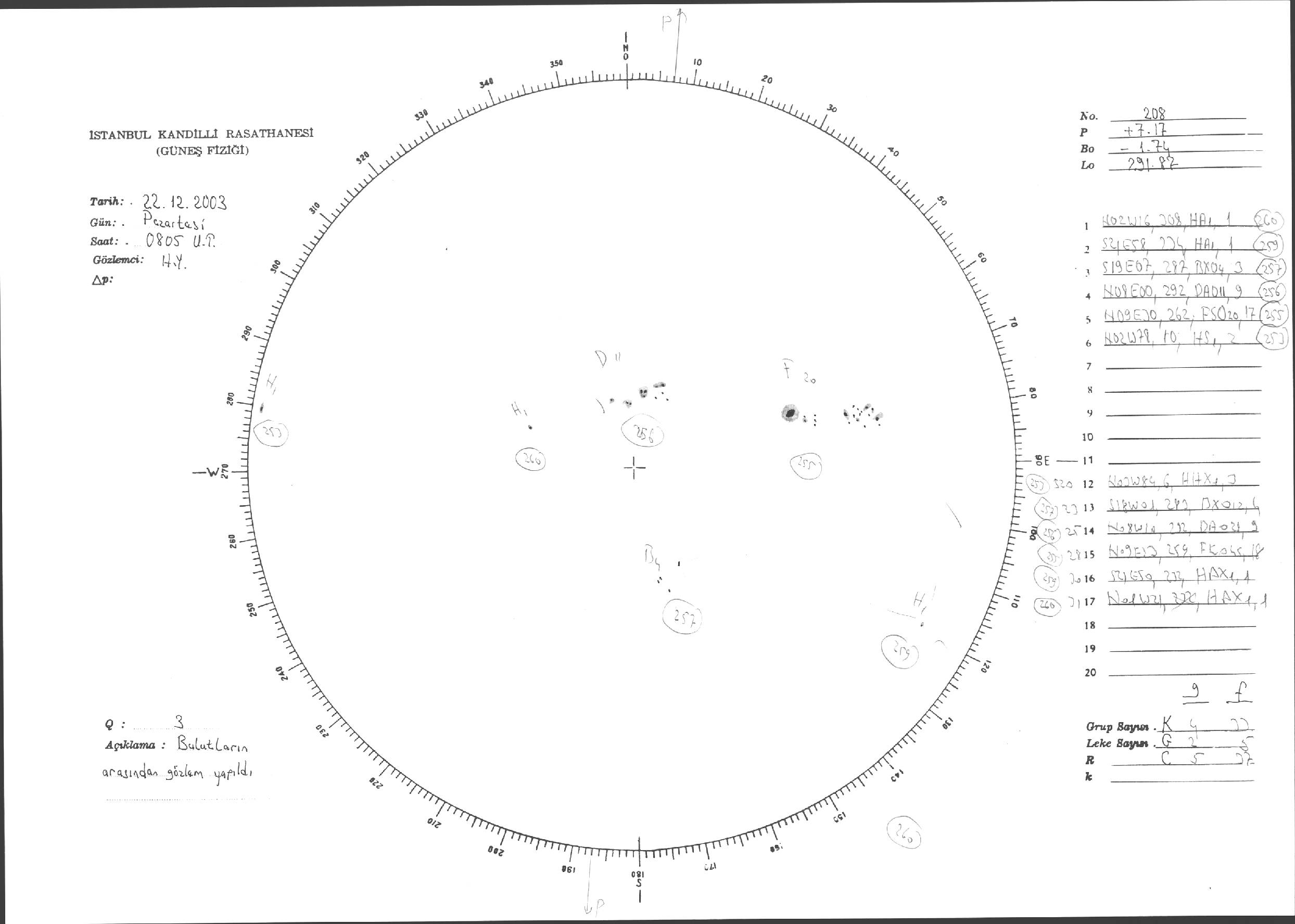 Güneş Lekesi Çizimleri / Kandilli Sunspot Drawings