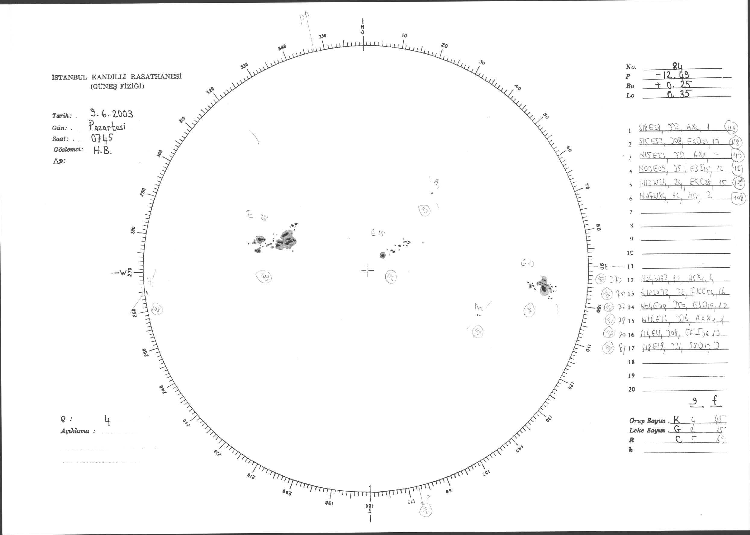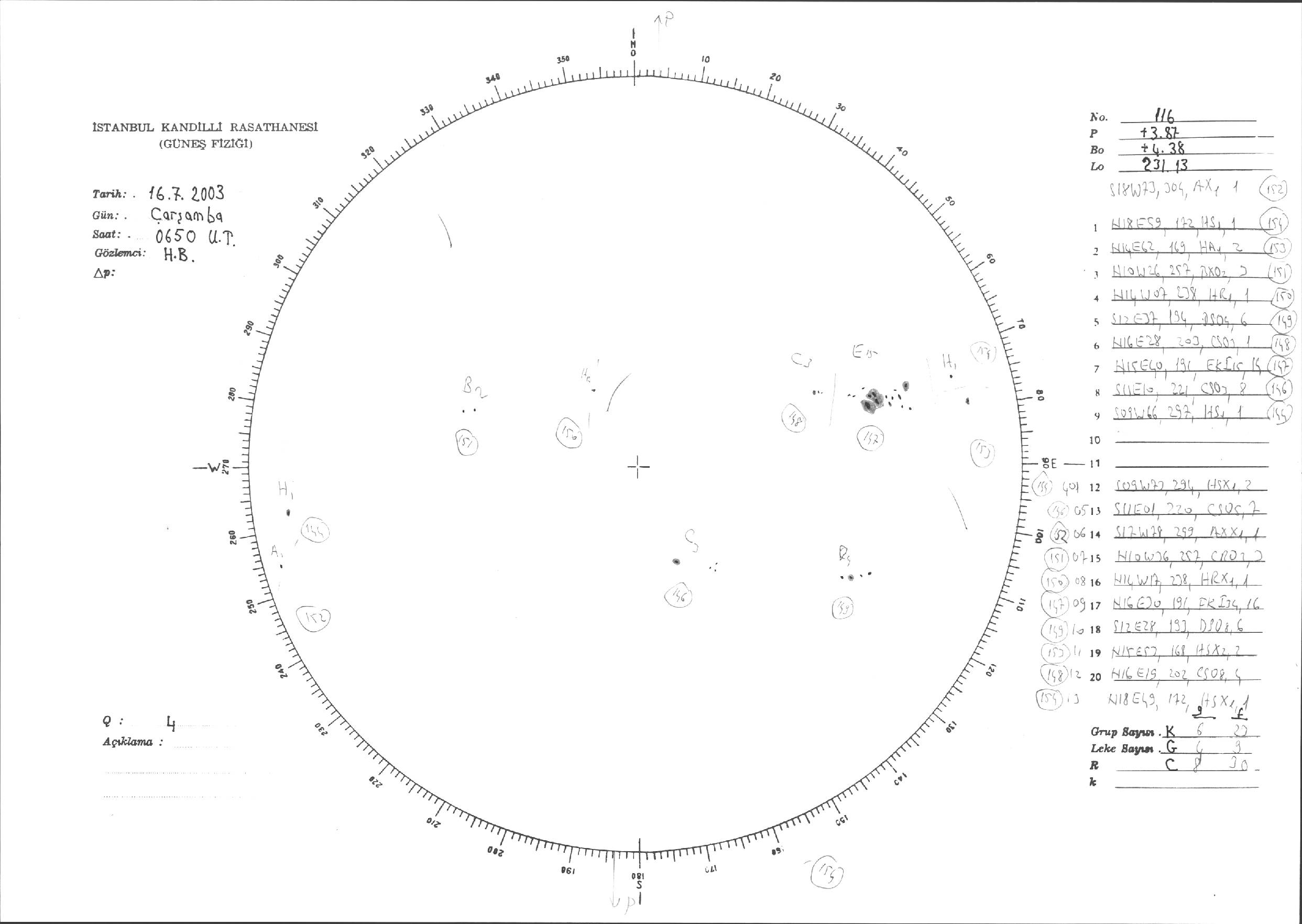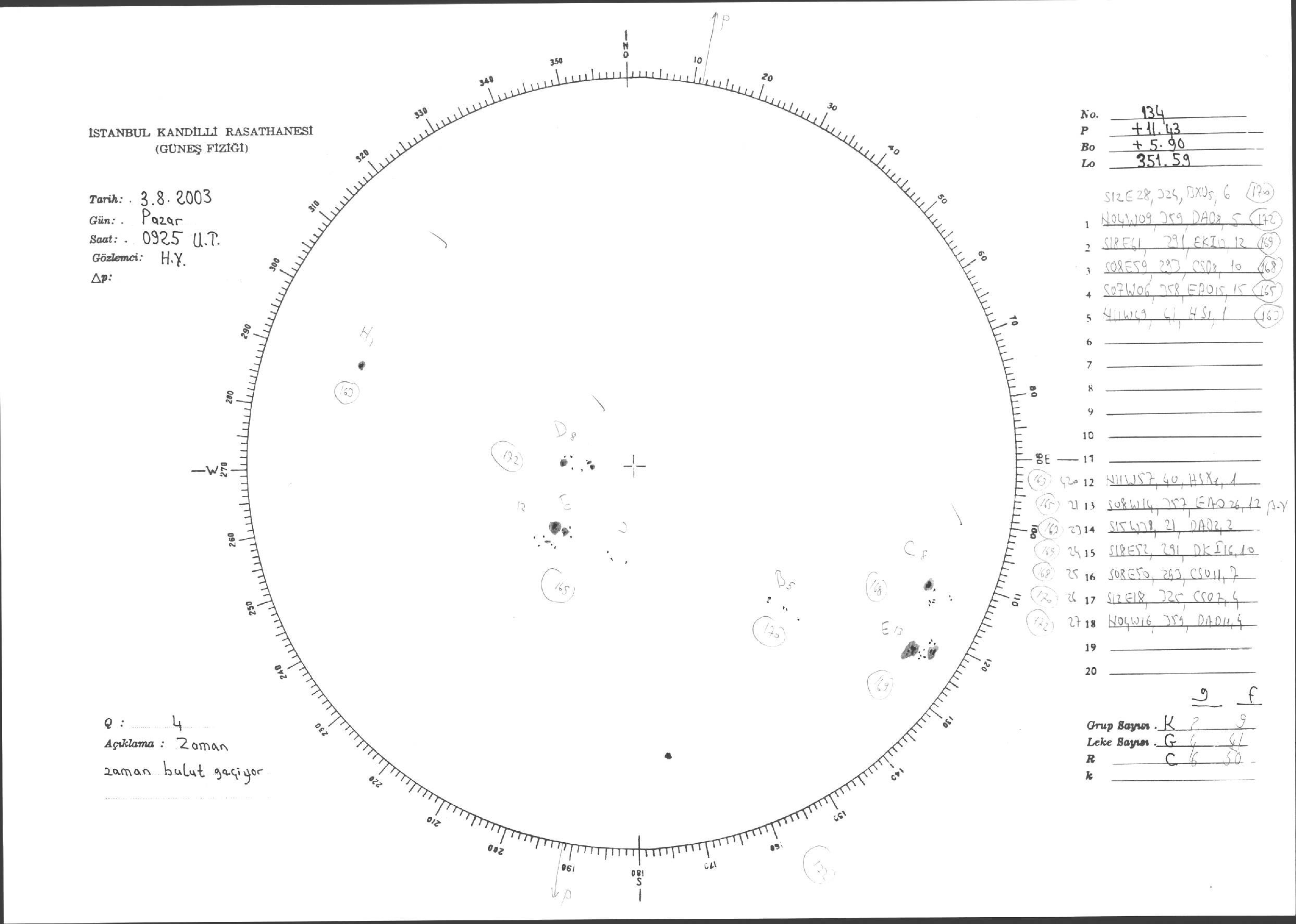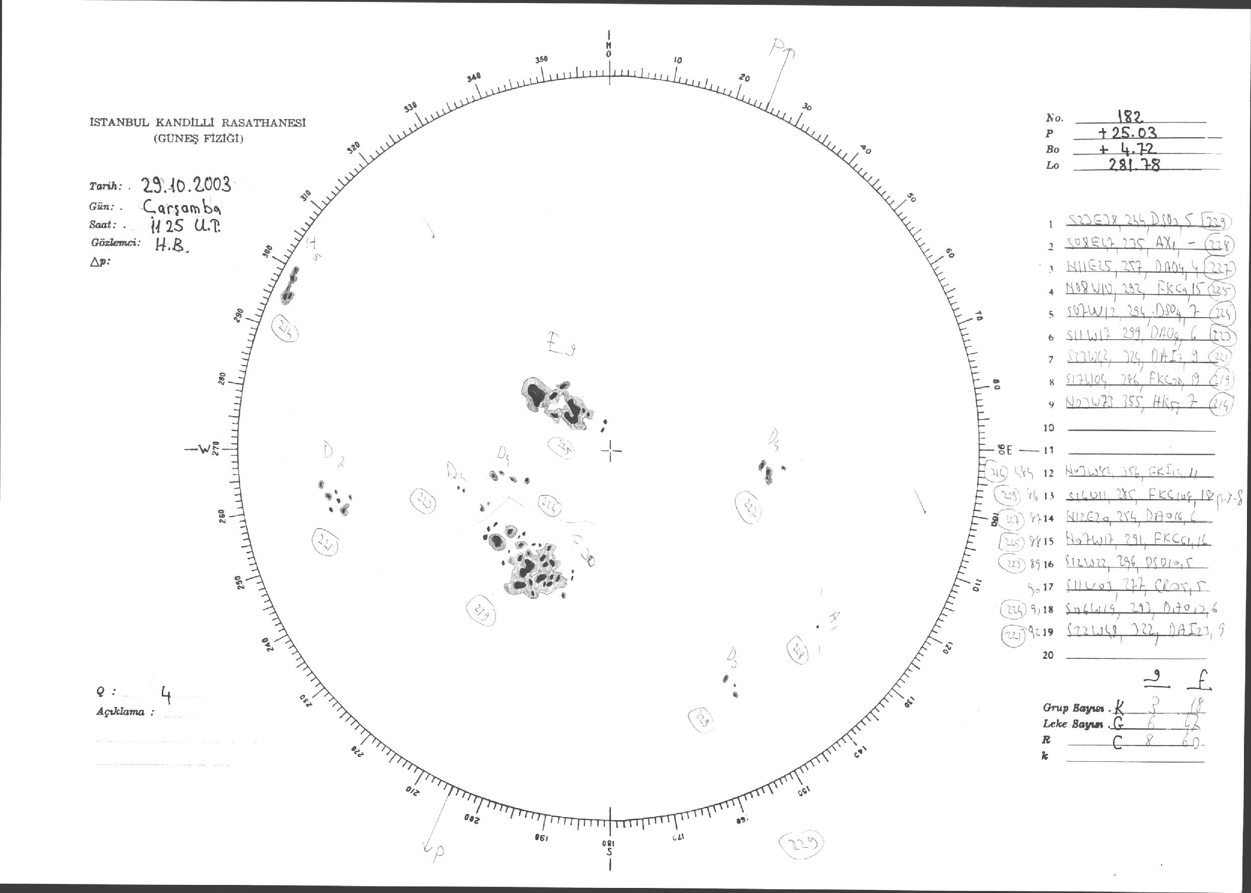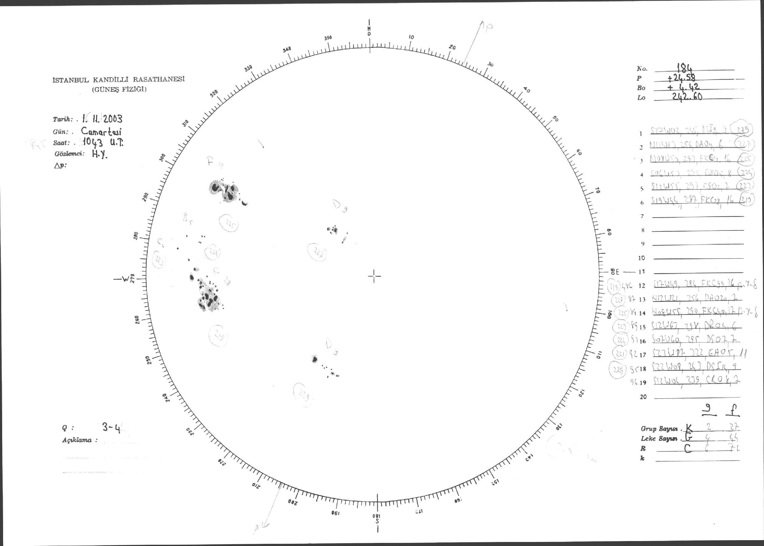 Güneş Lekesi Çizimleri / Kandilli Sunspot Drawings