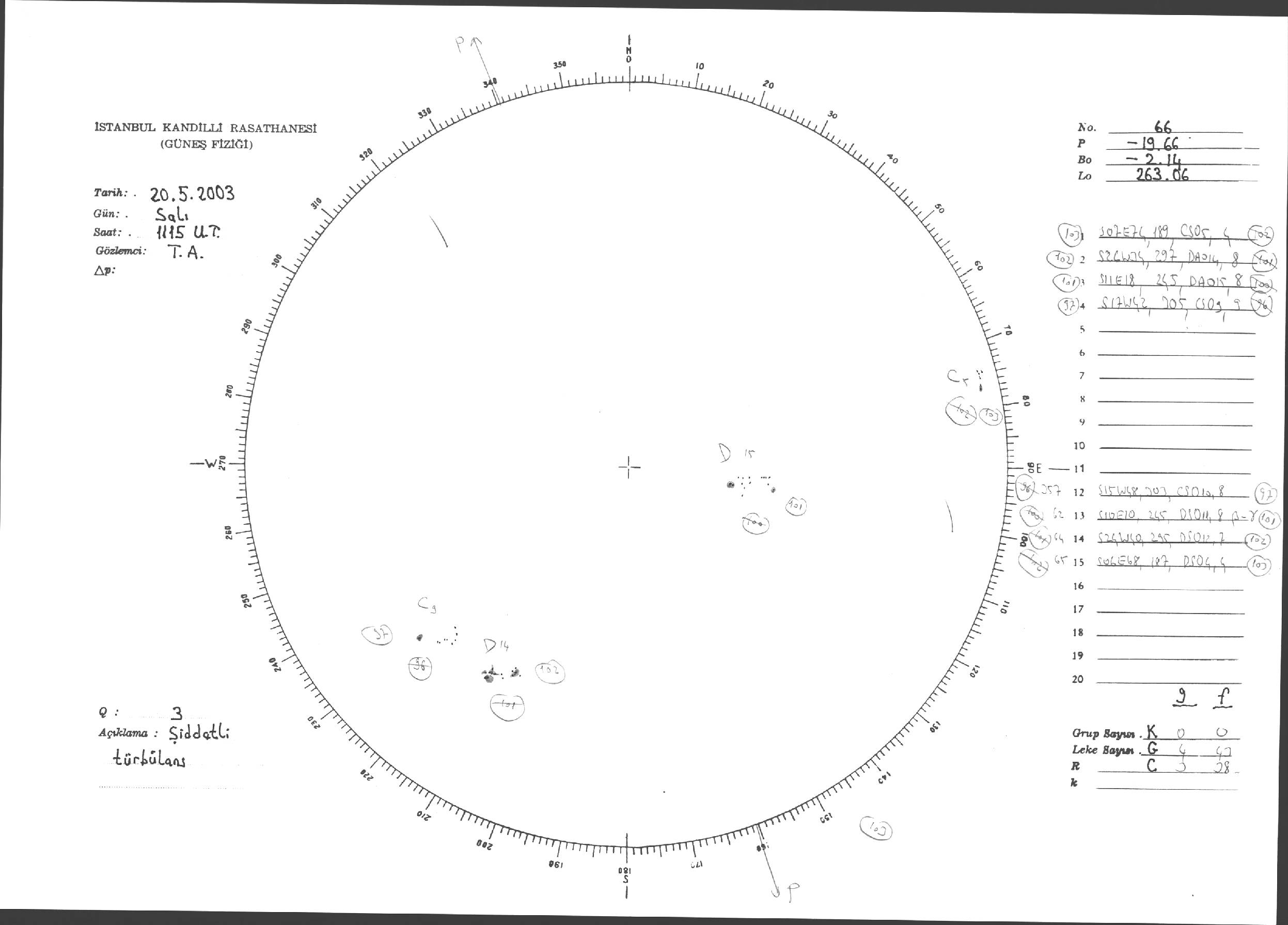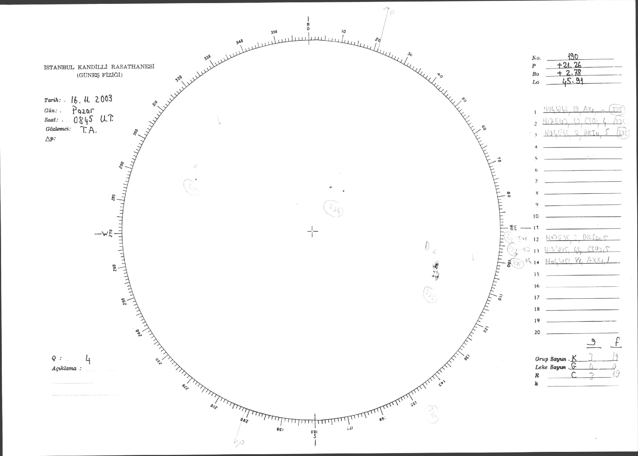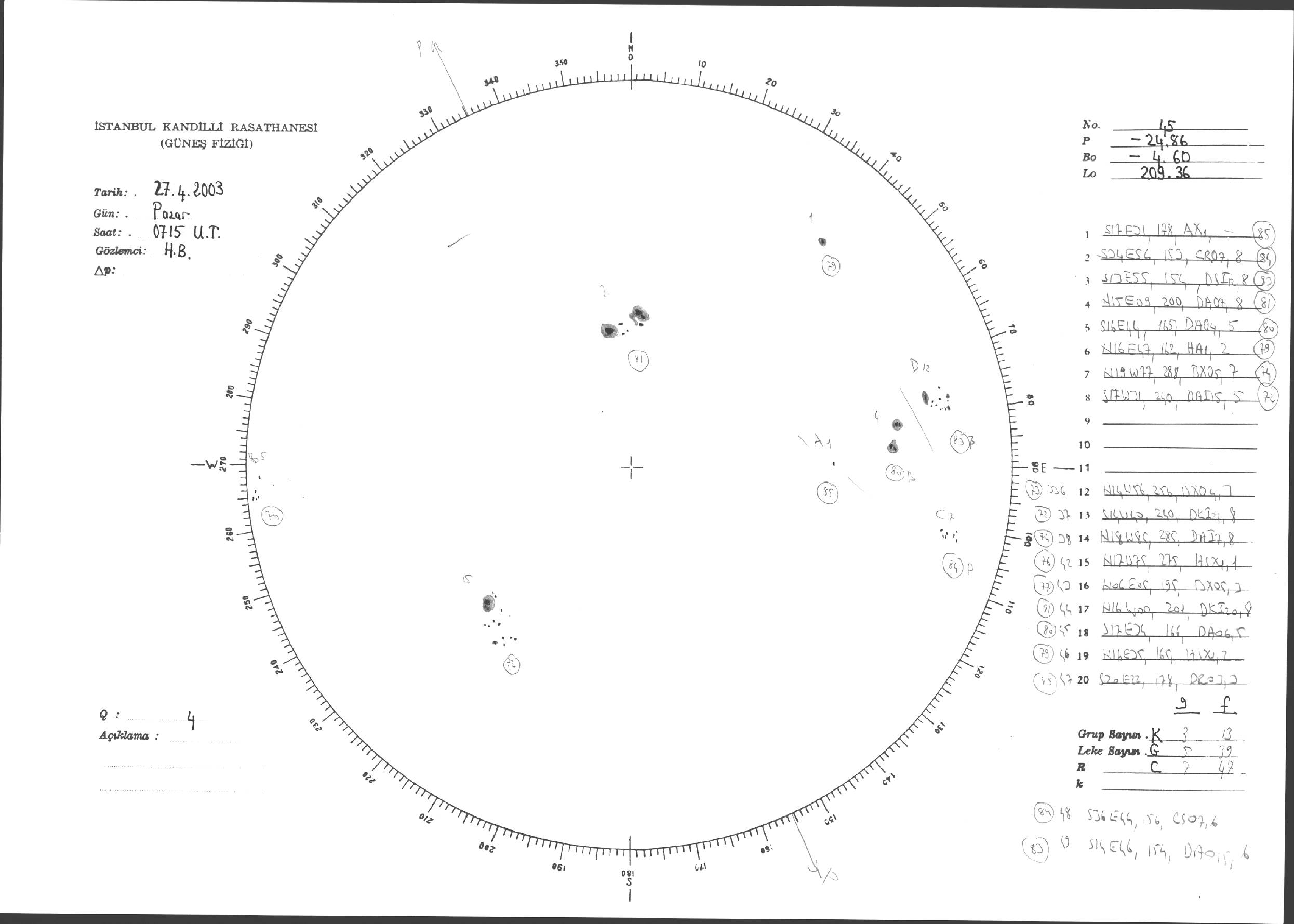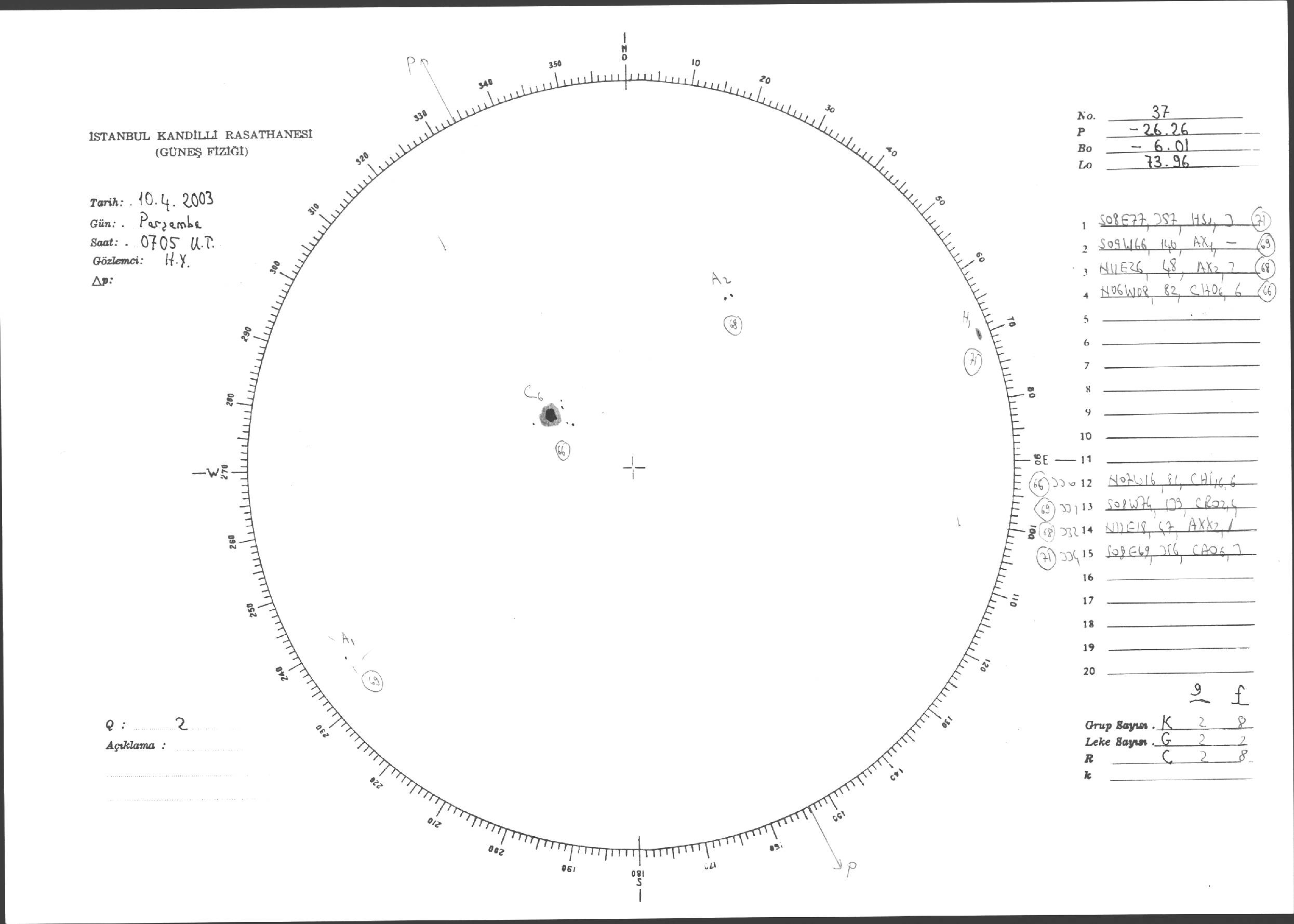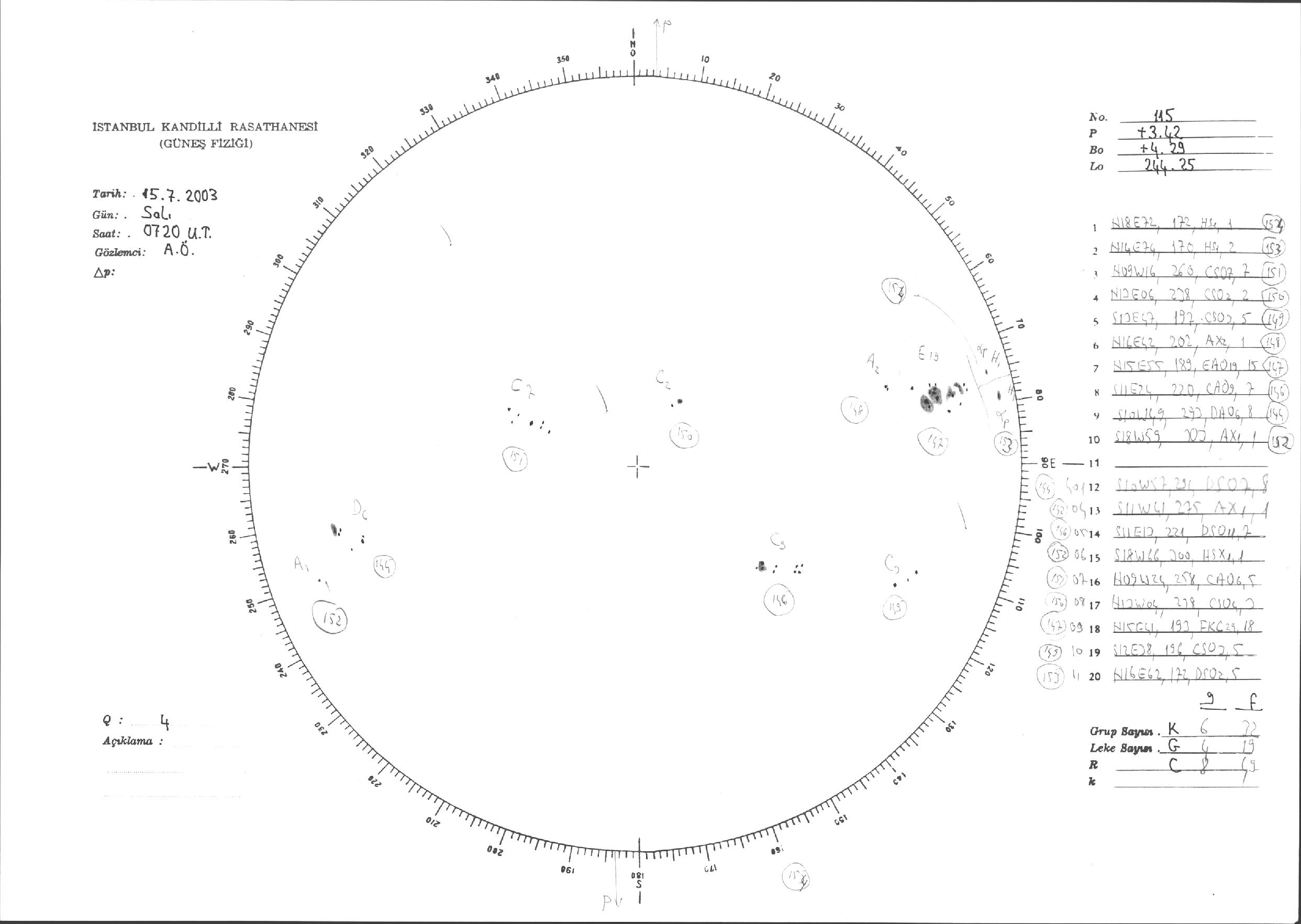 Güneş Lekesi Çizimleri / Kandilli Sunspot Drawings