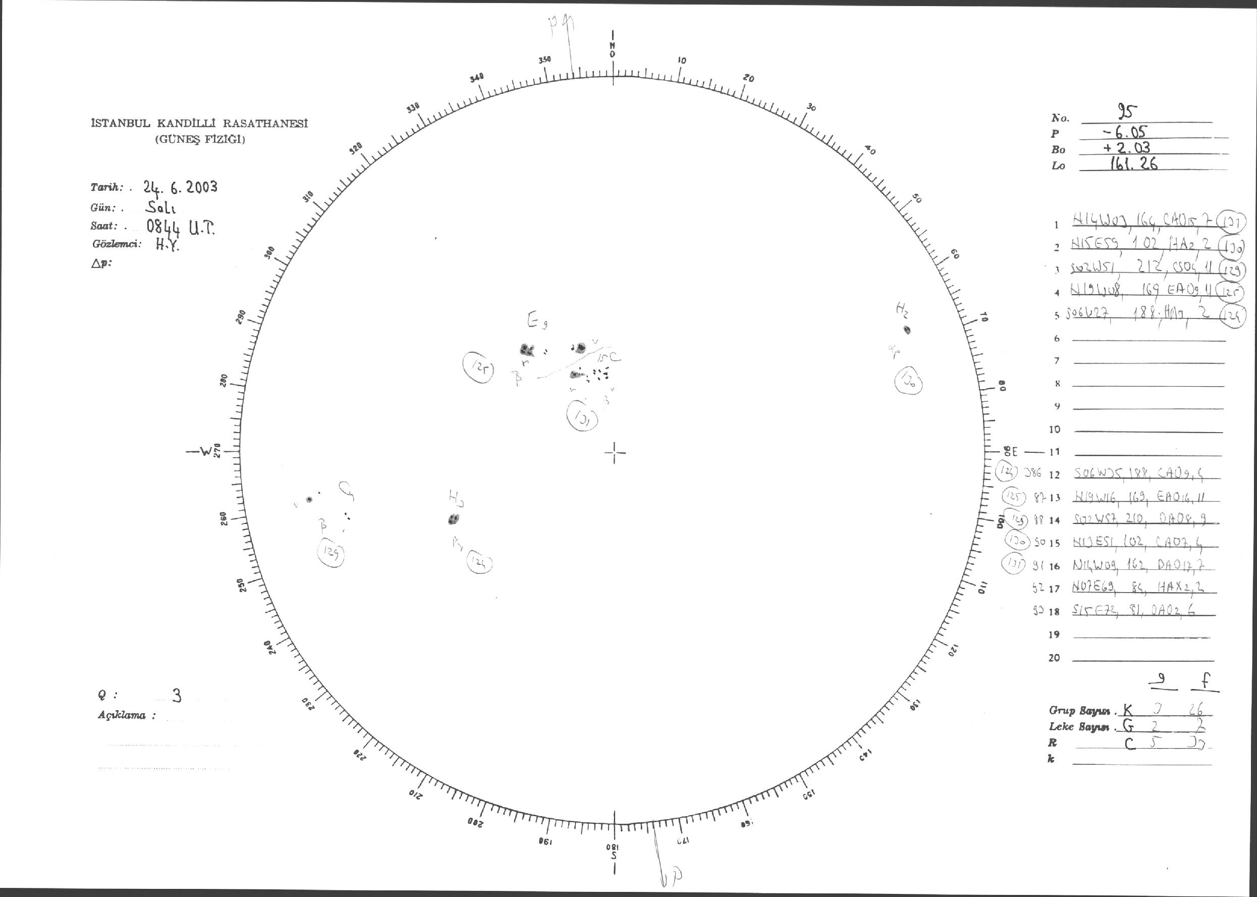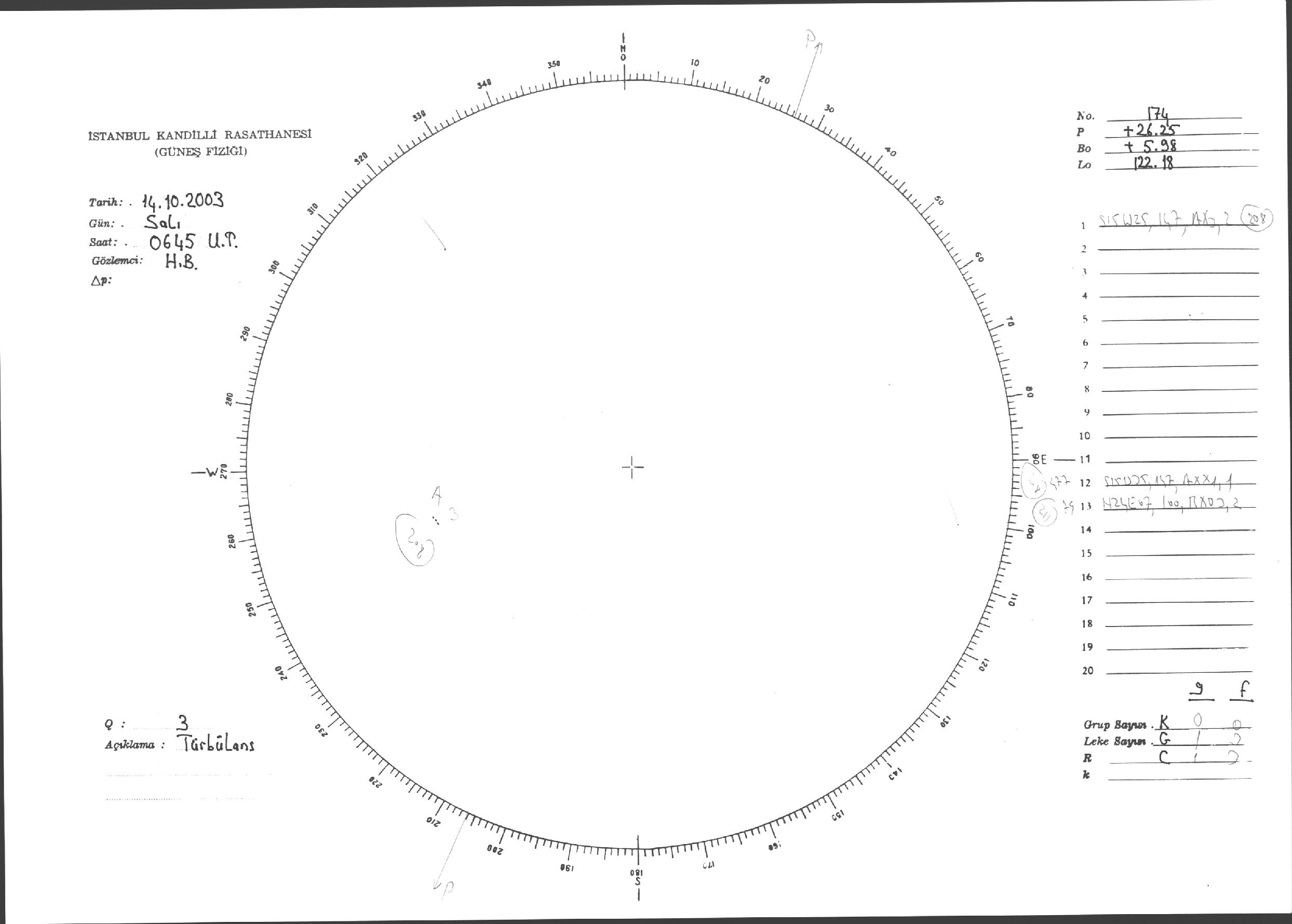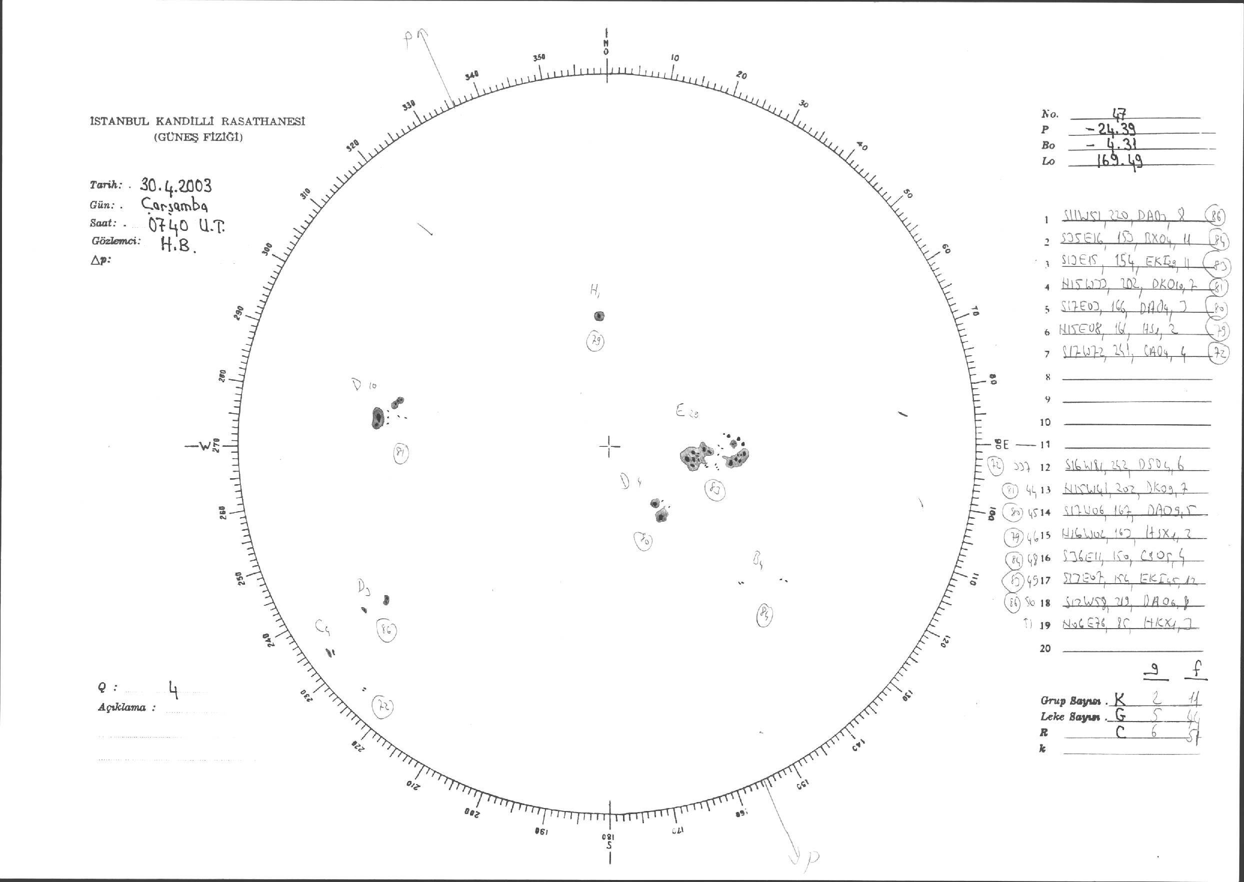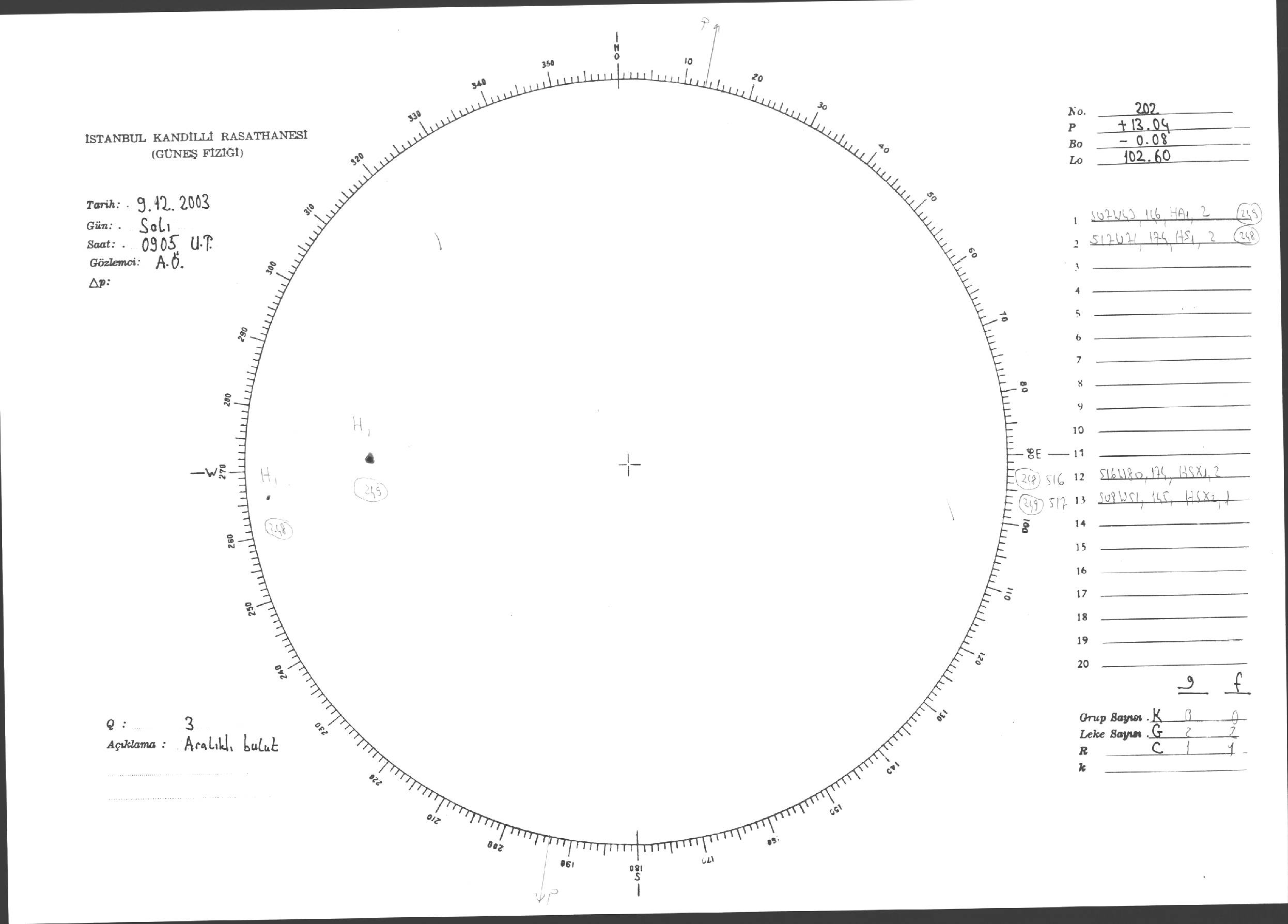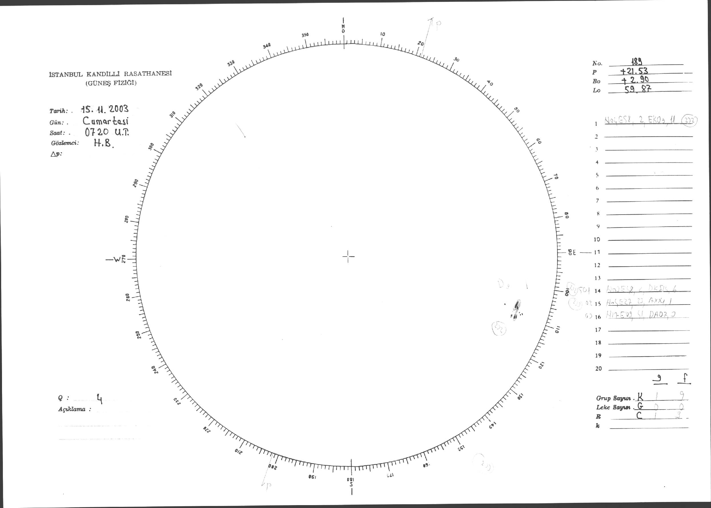 Güneş Lekesi Çizimleri / Kandilli Sunspot Drawings