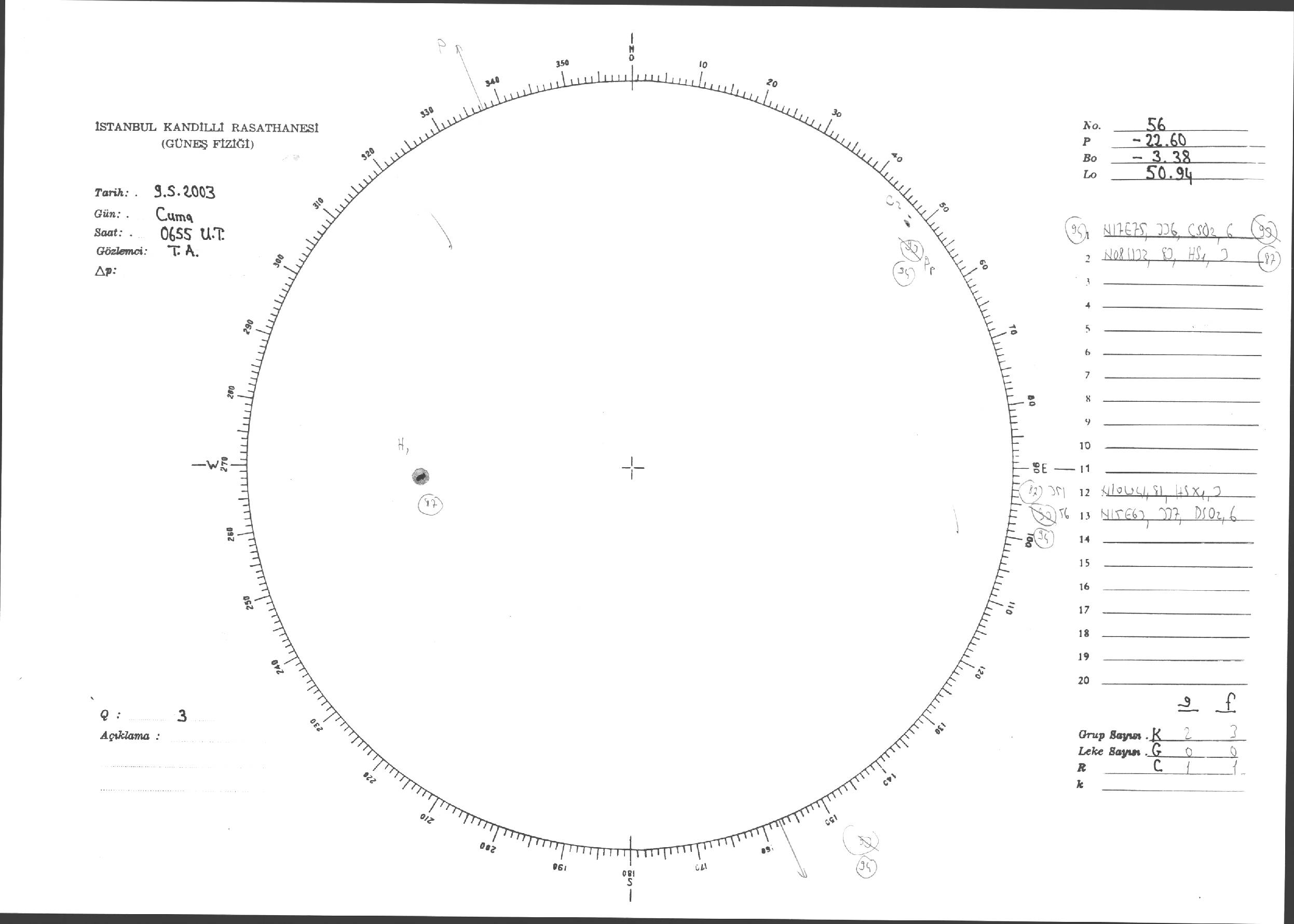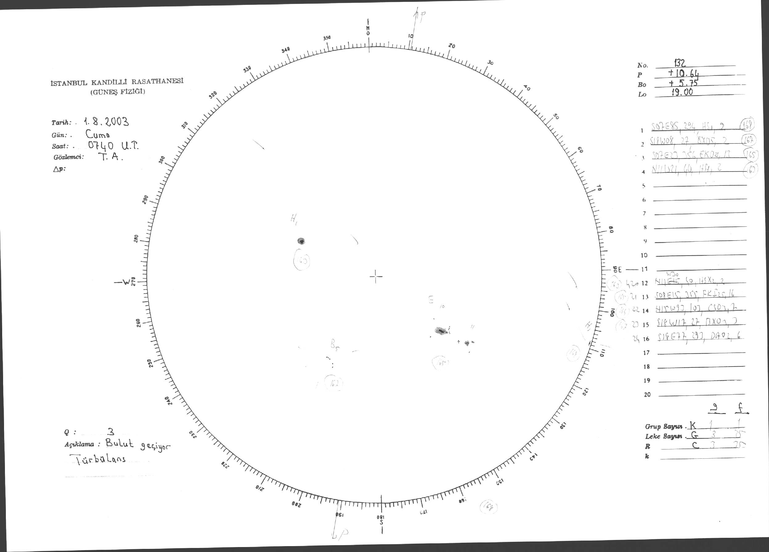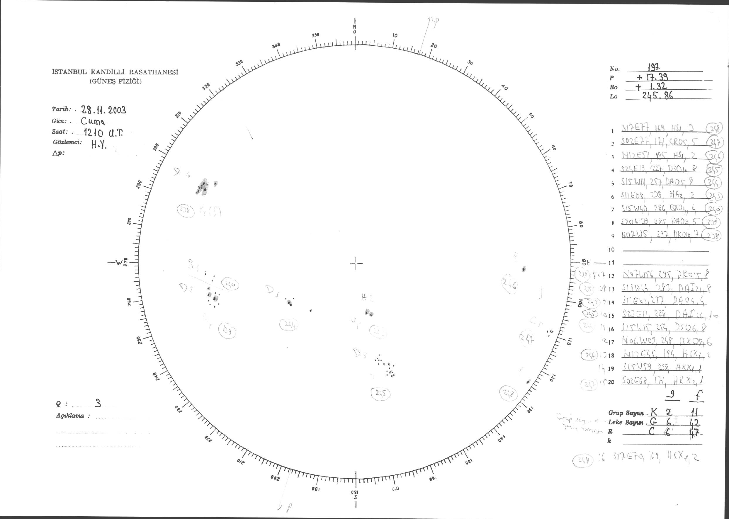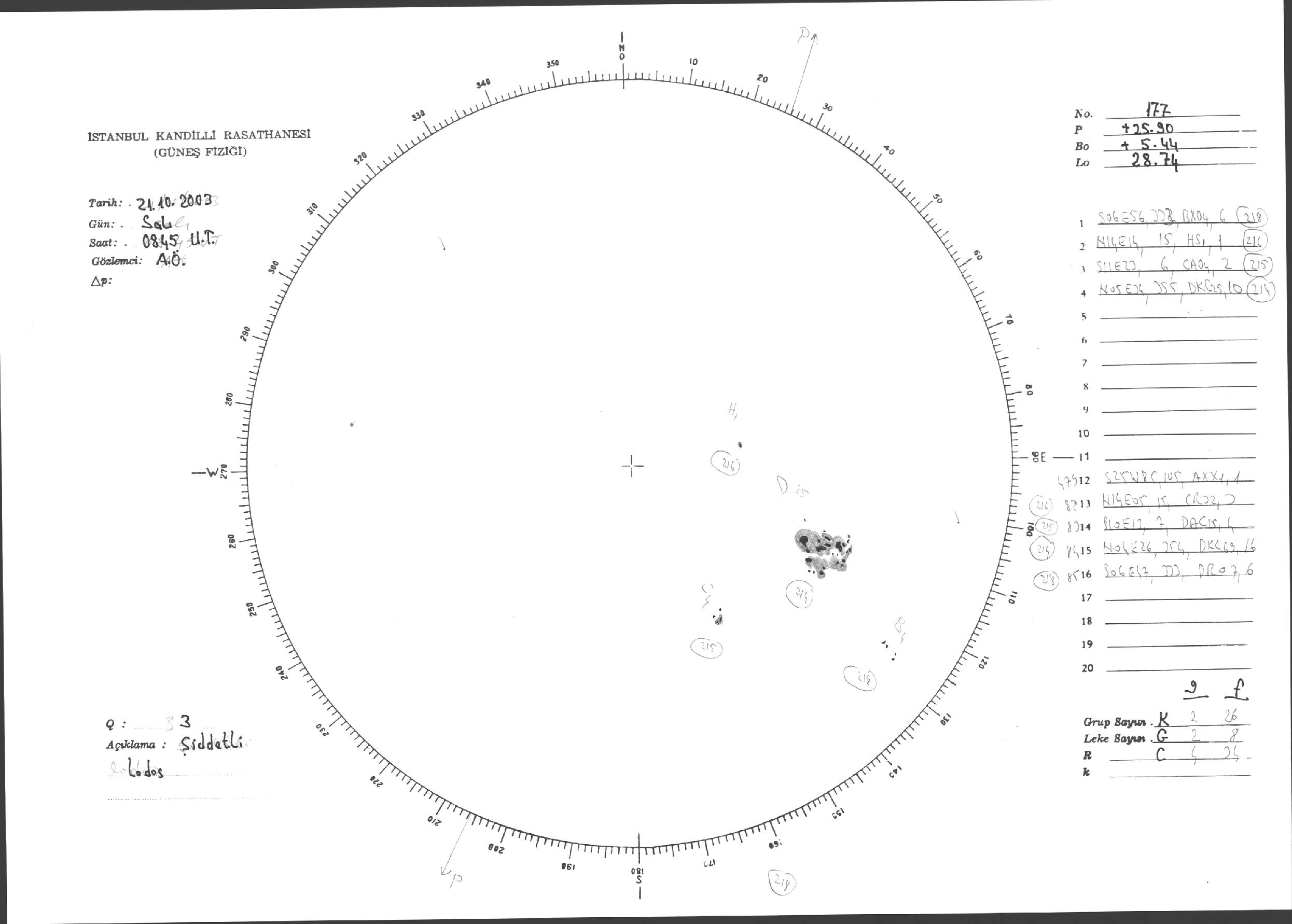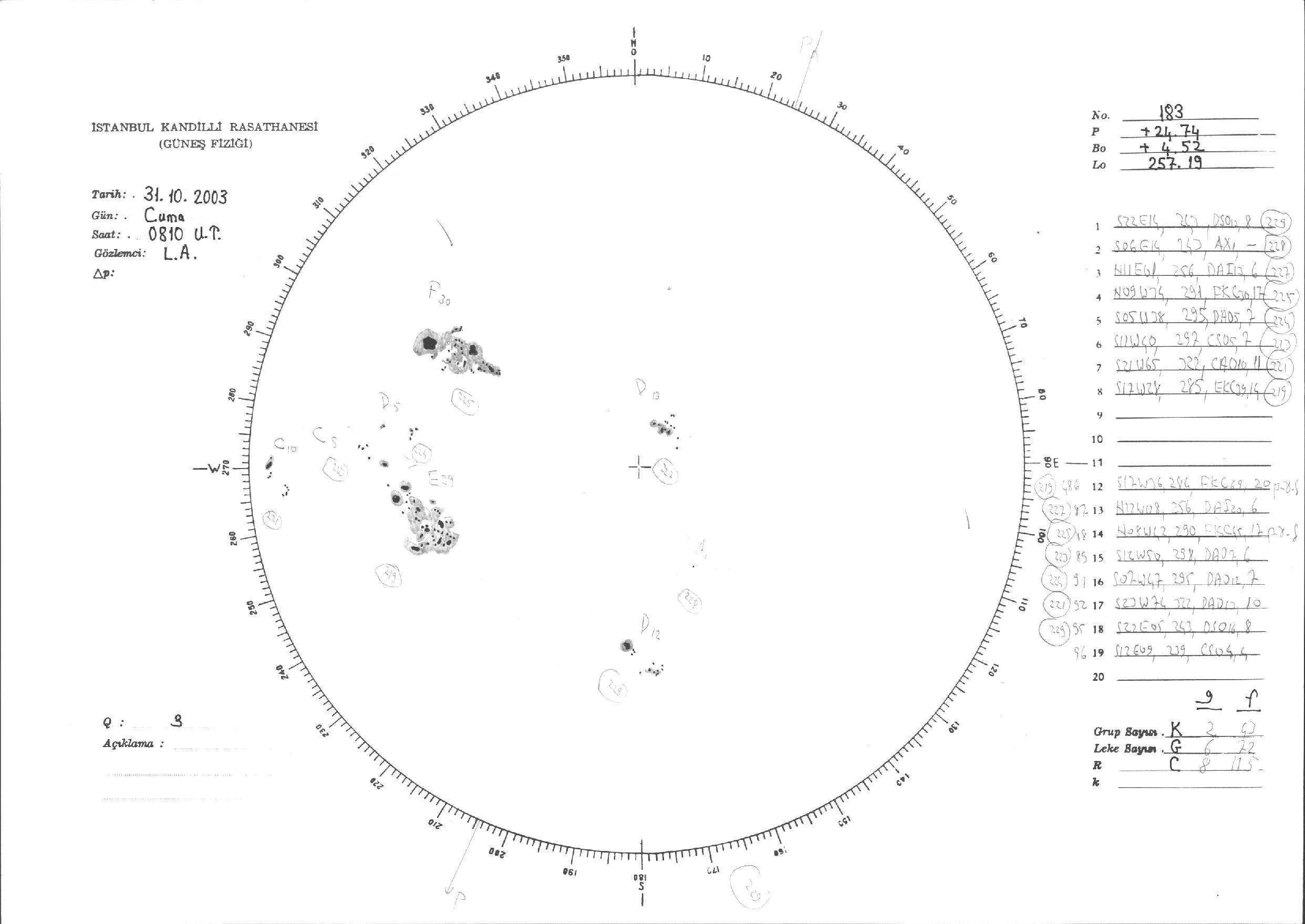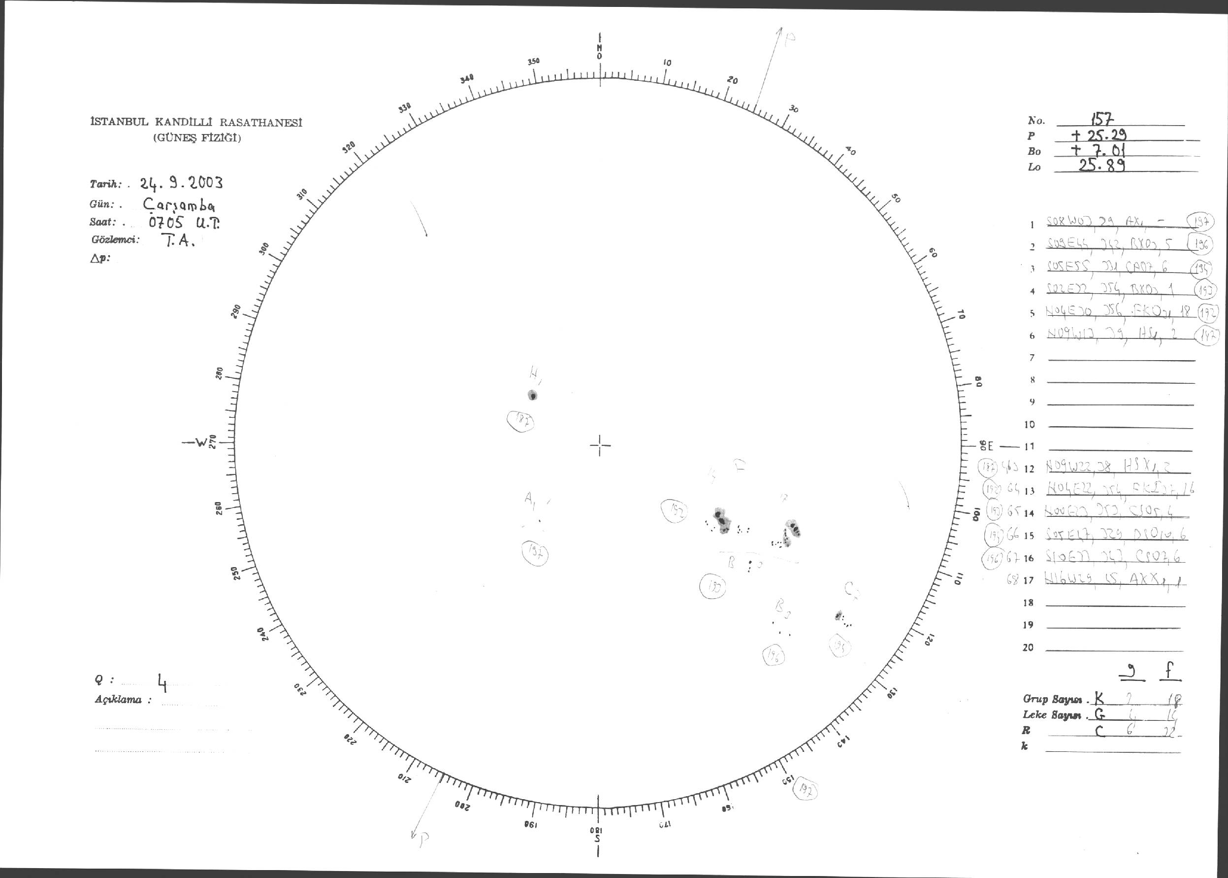 Güneş Lekesi Çizimleri / Kandilli Sunspot Drawings