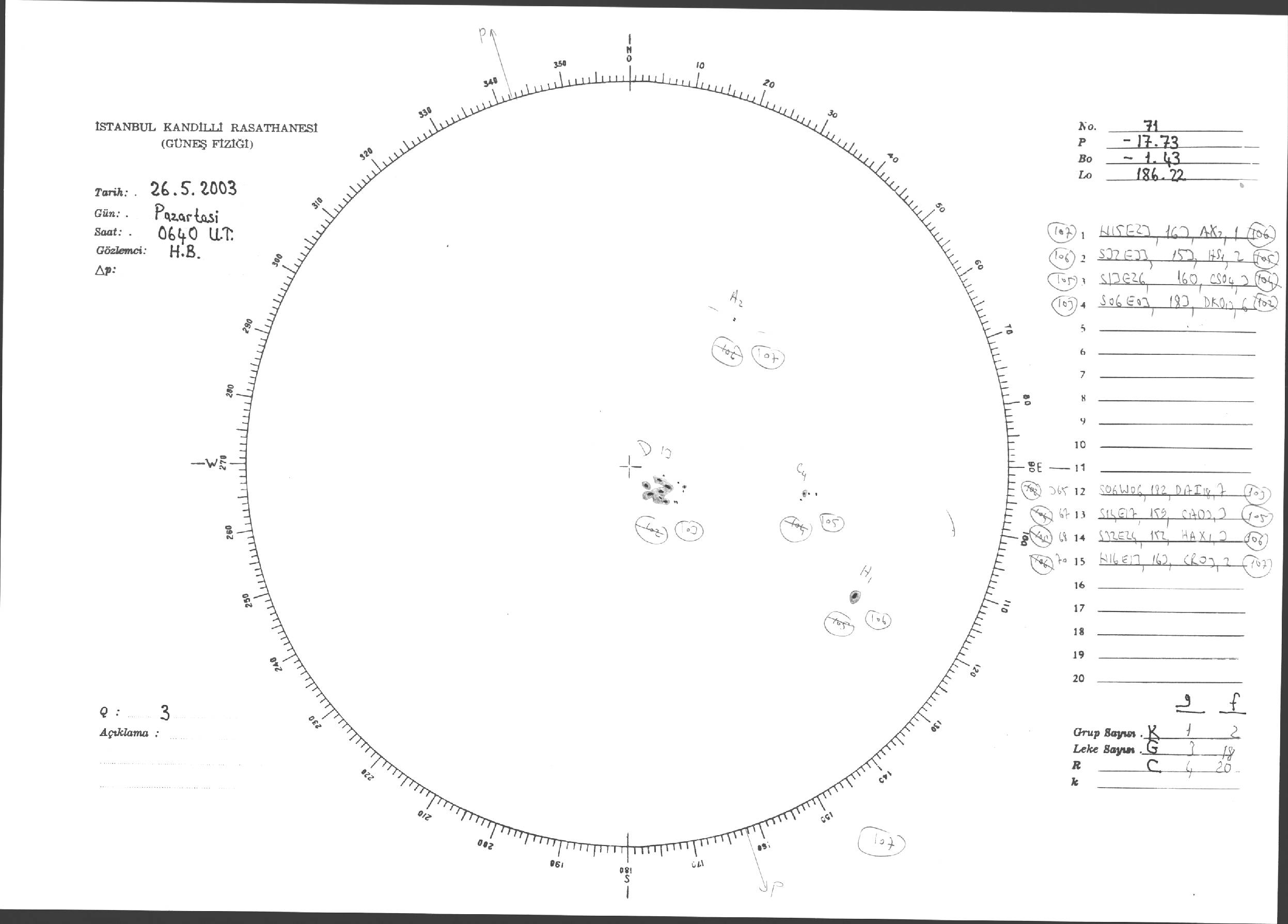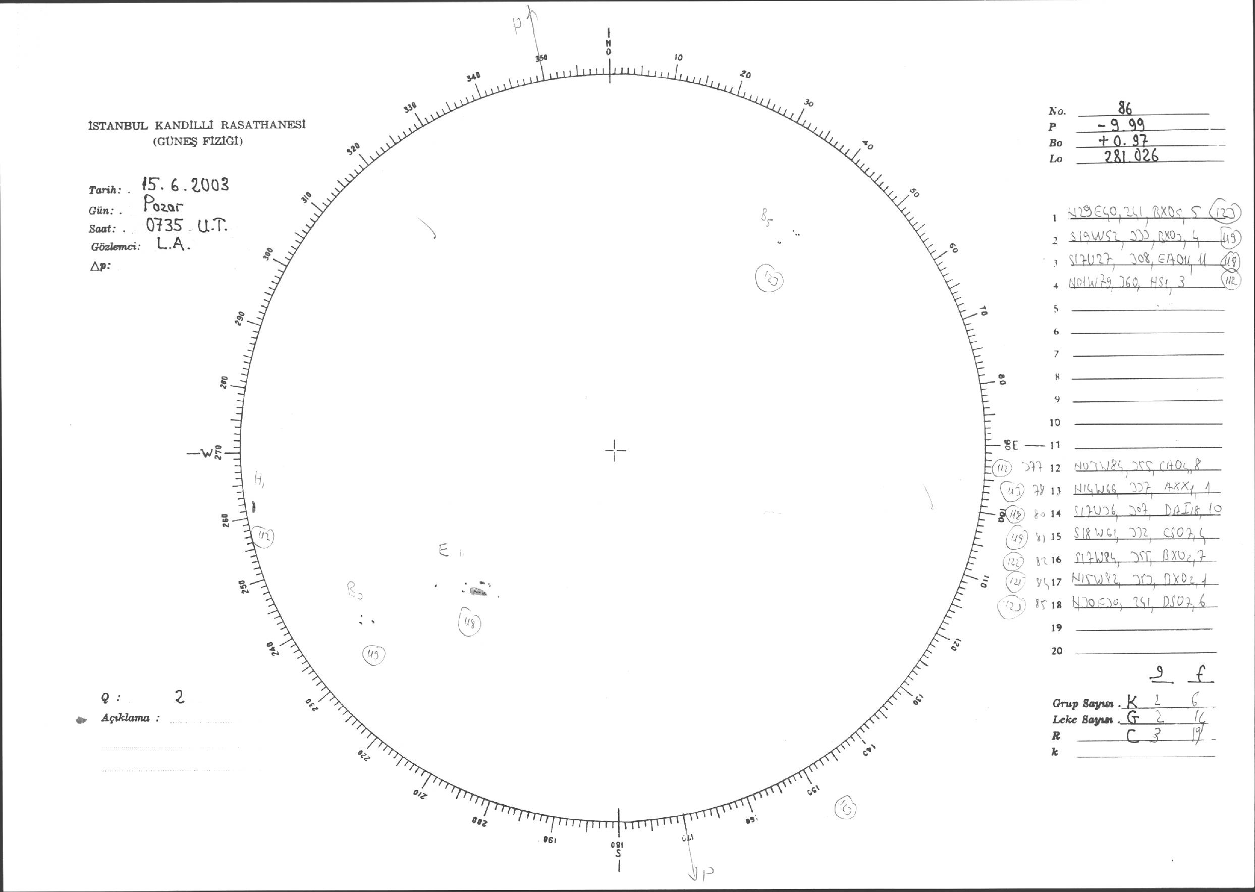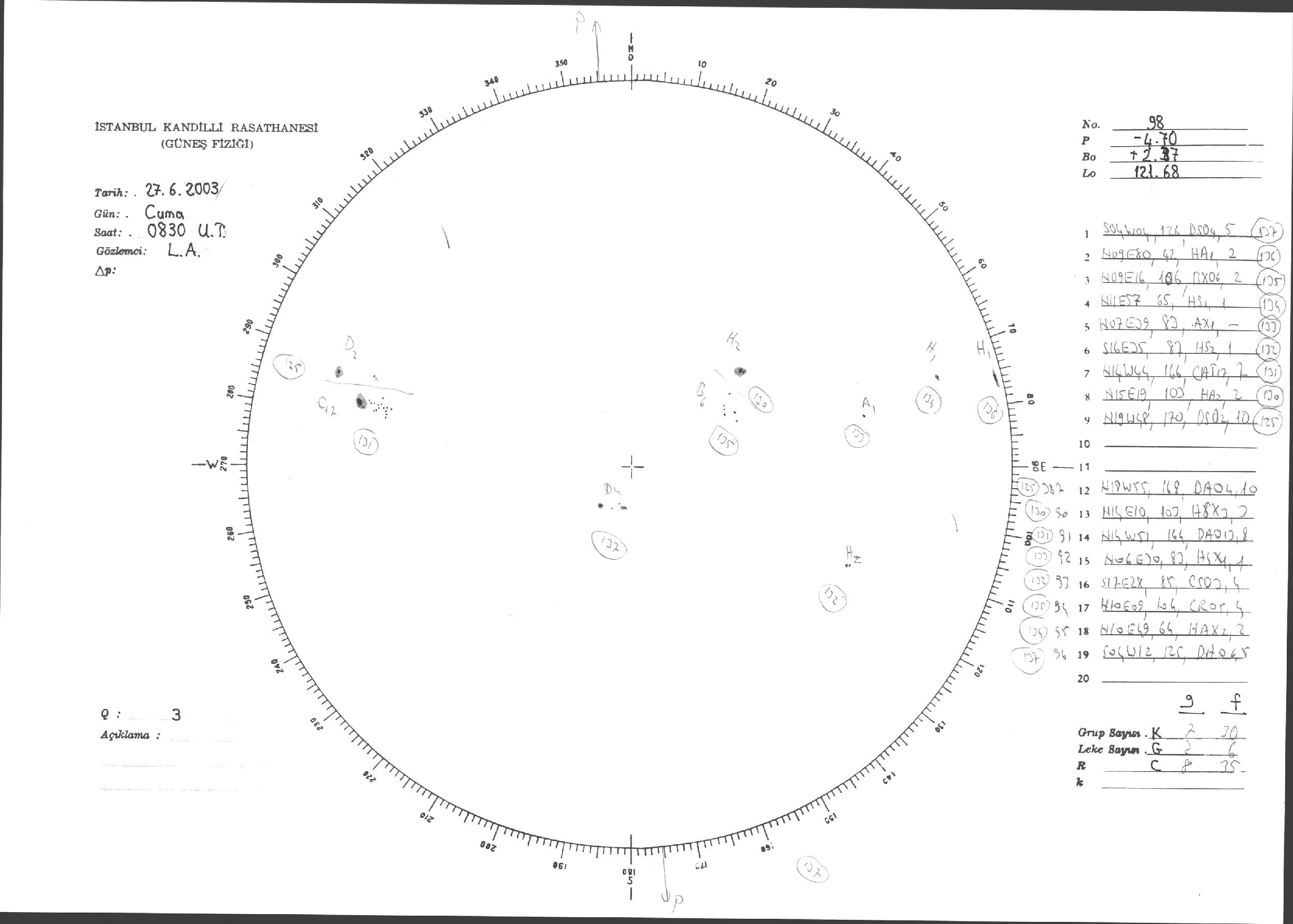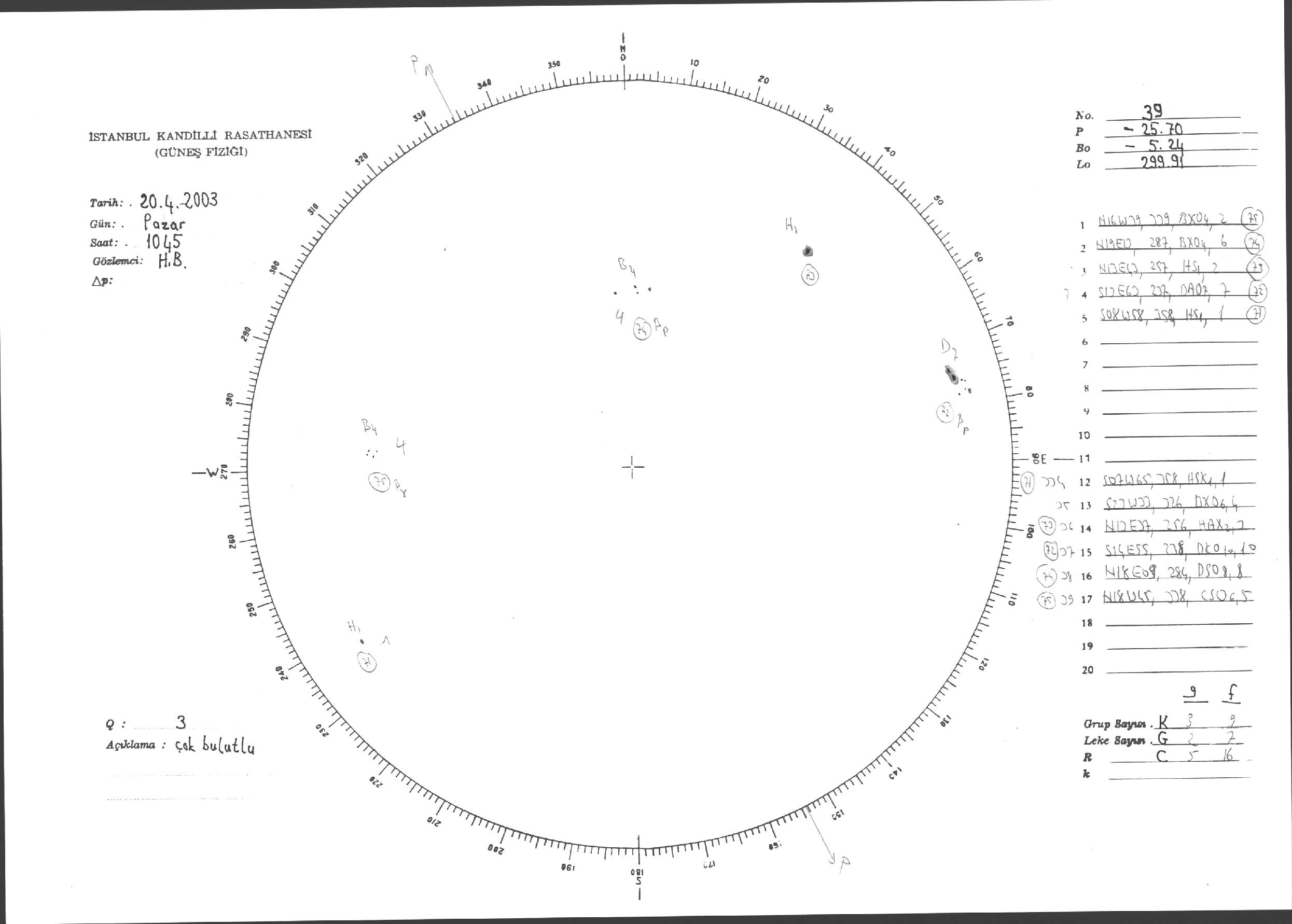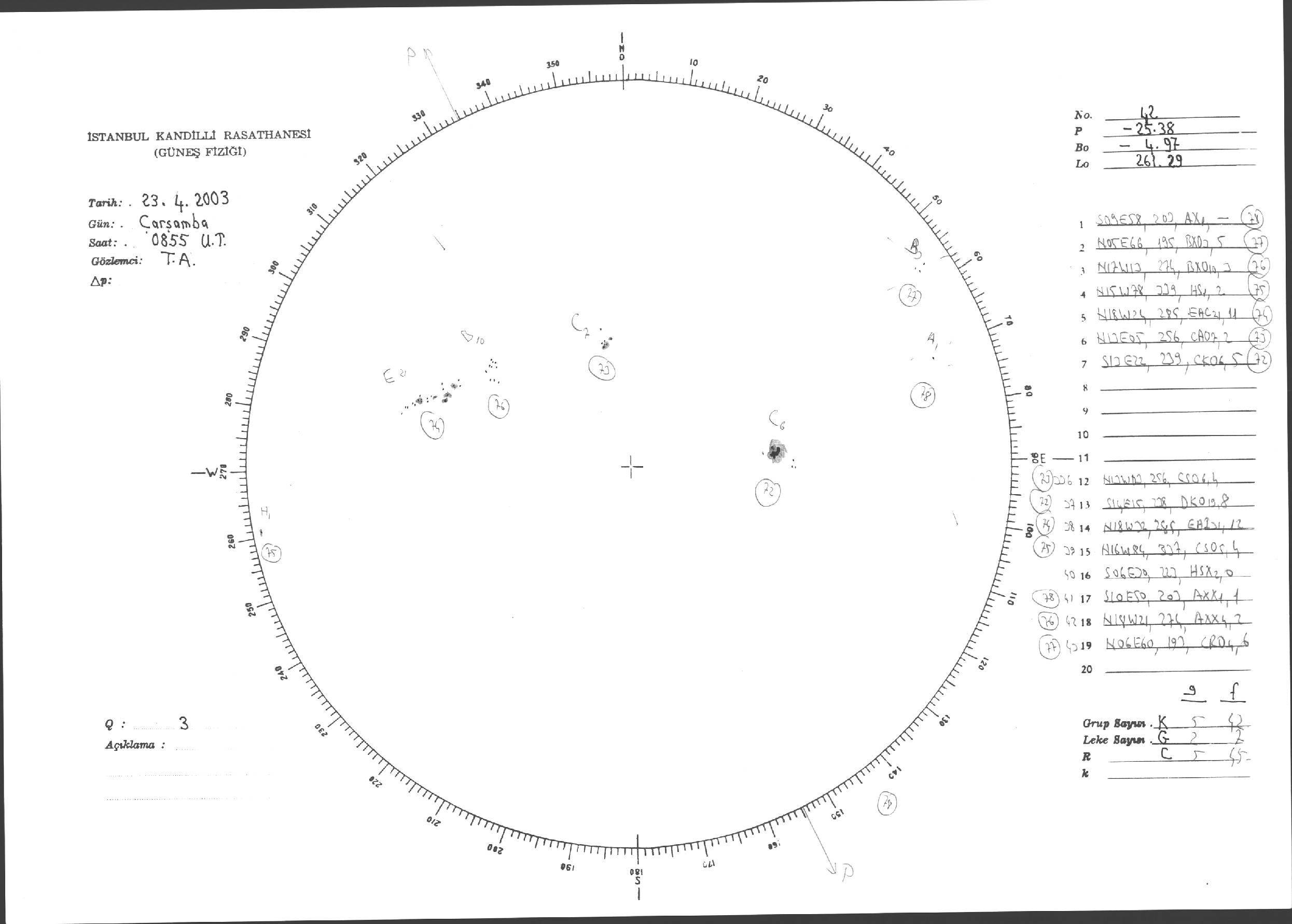 Güneş Lekesi Çizimleri / Kandilli Sunspot Drawings