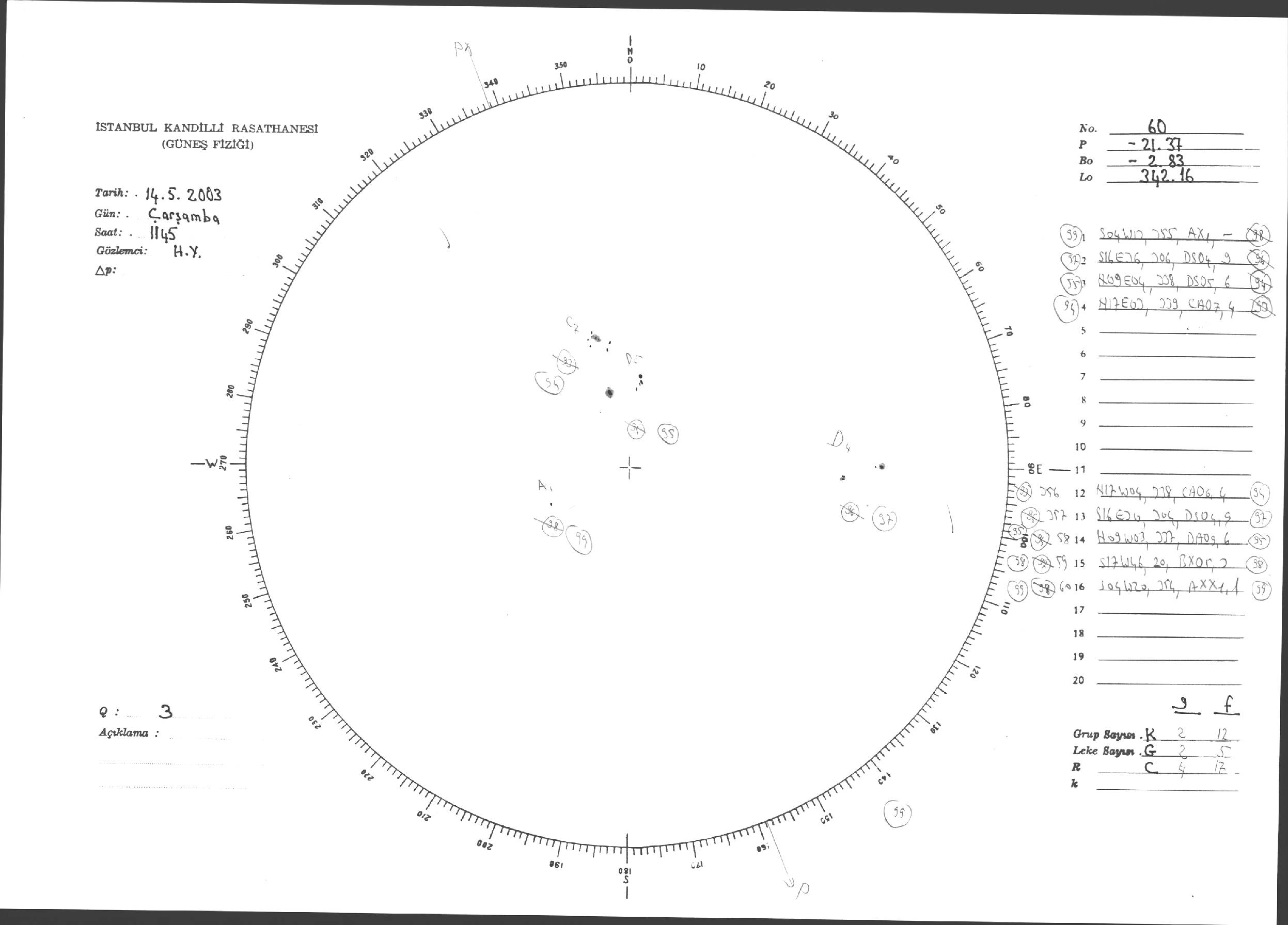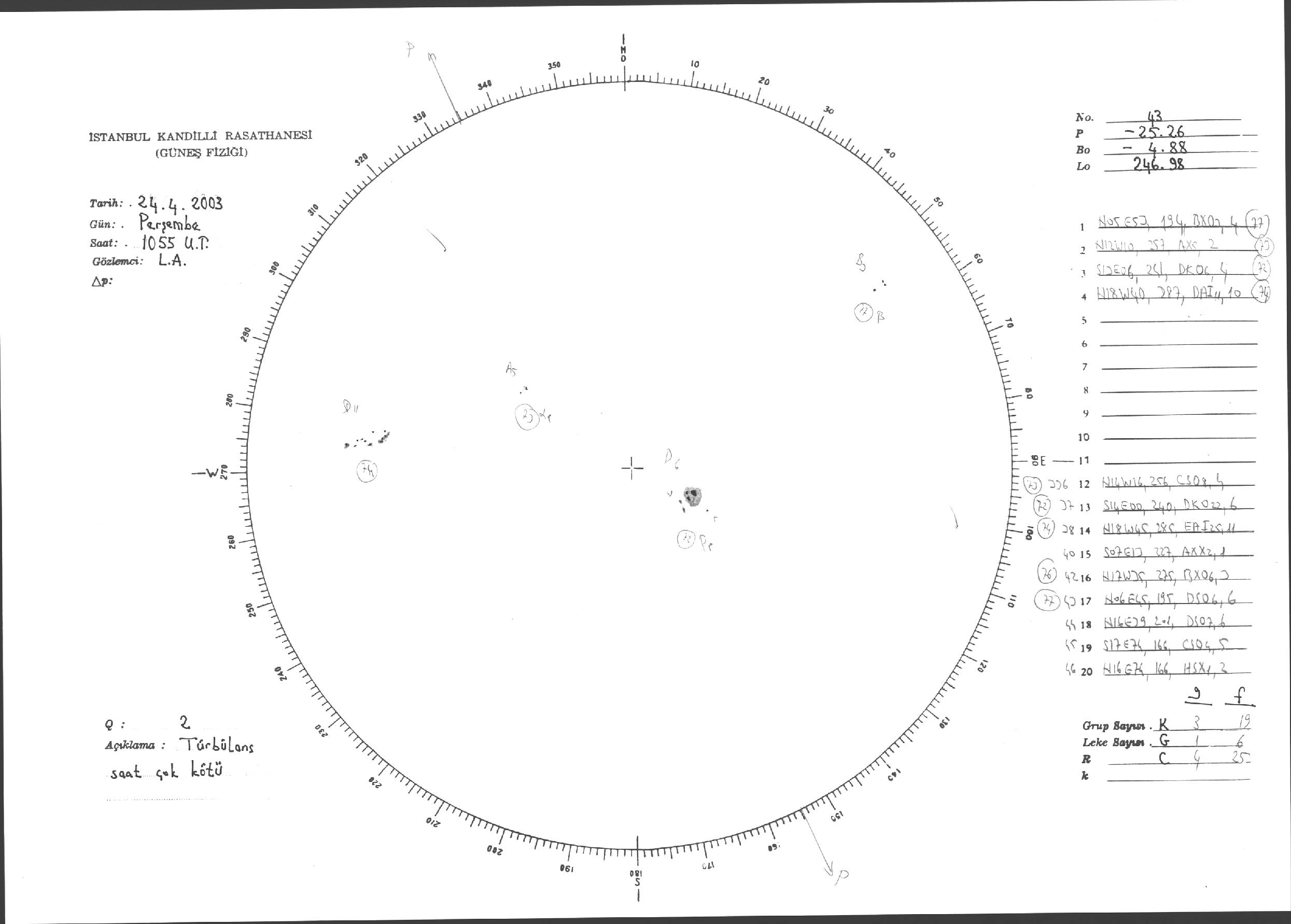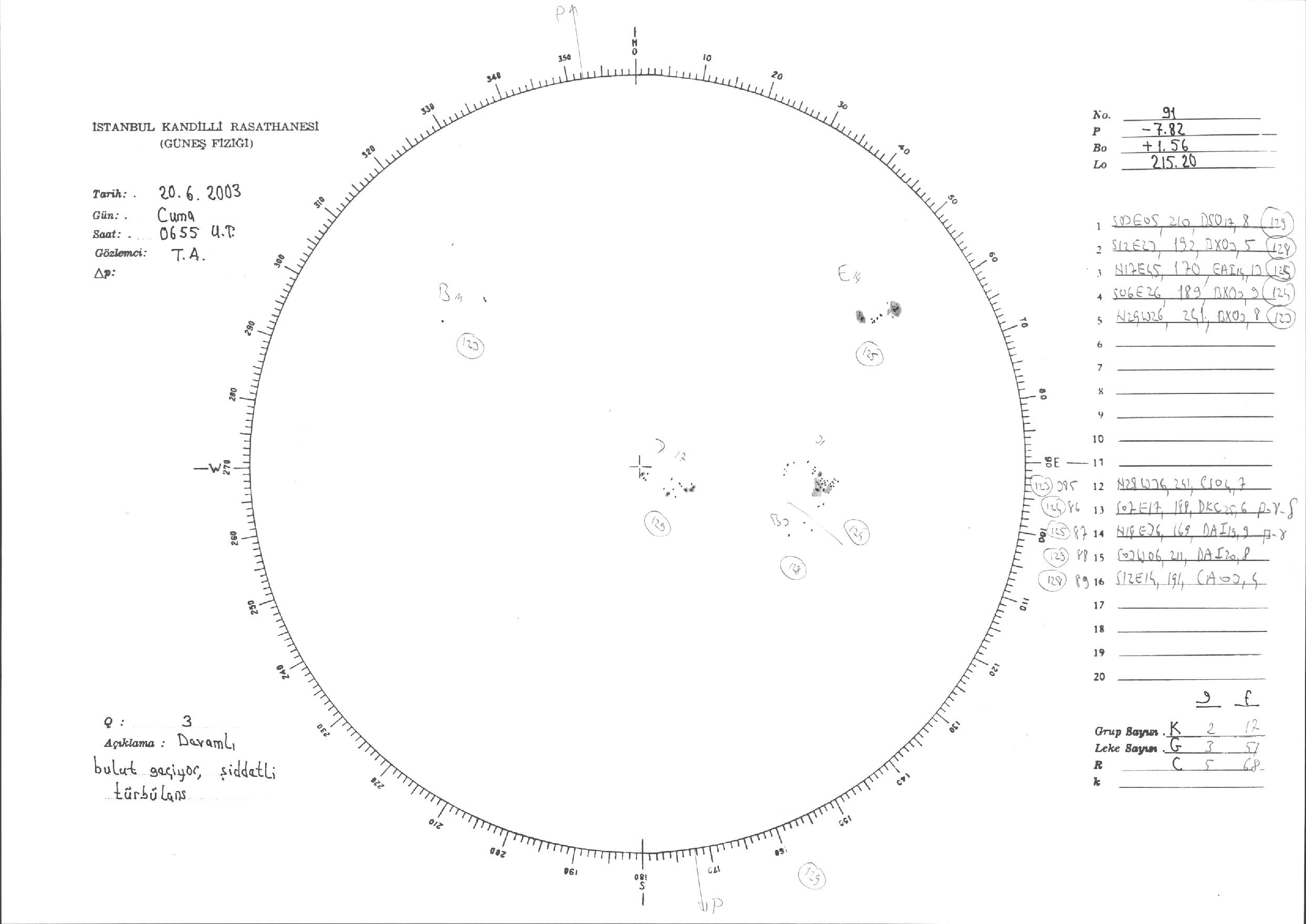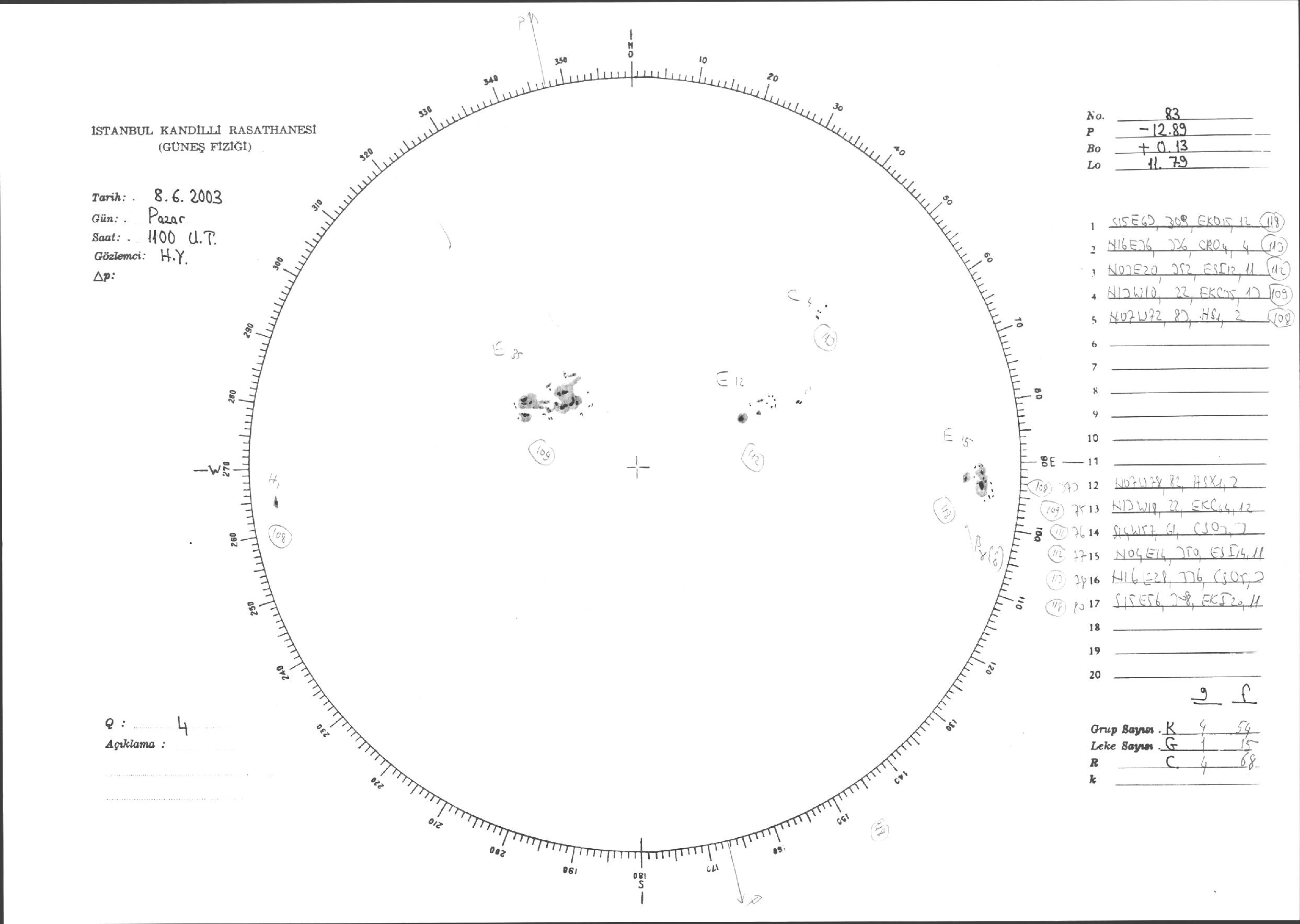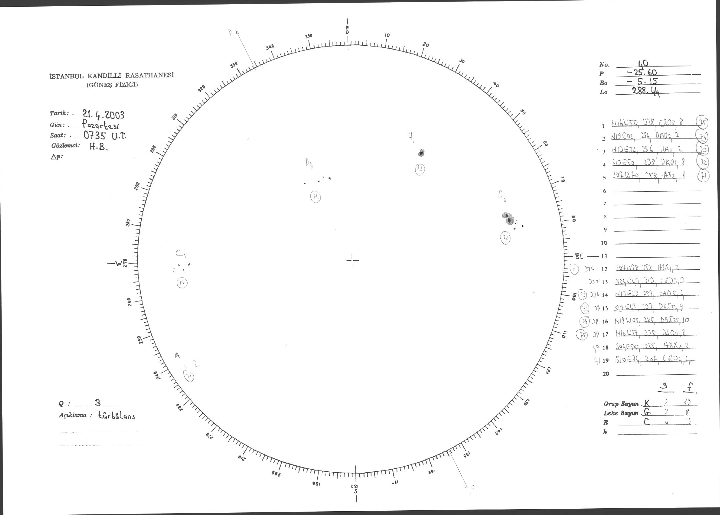 Güneş Lekesi Çizimleri / Kandilli Sunspot Drawings