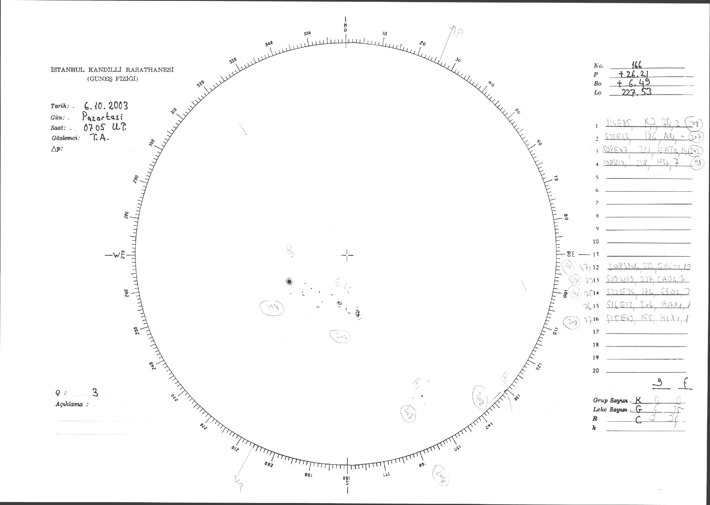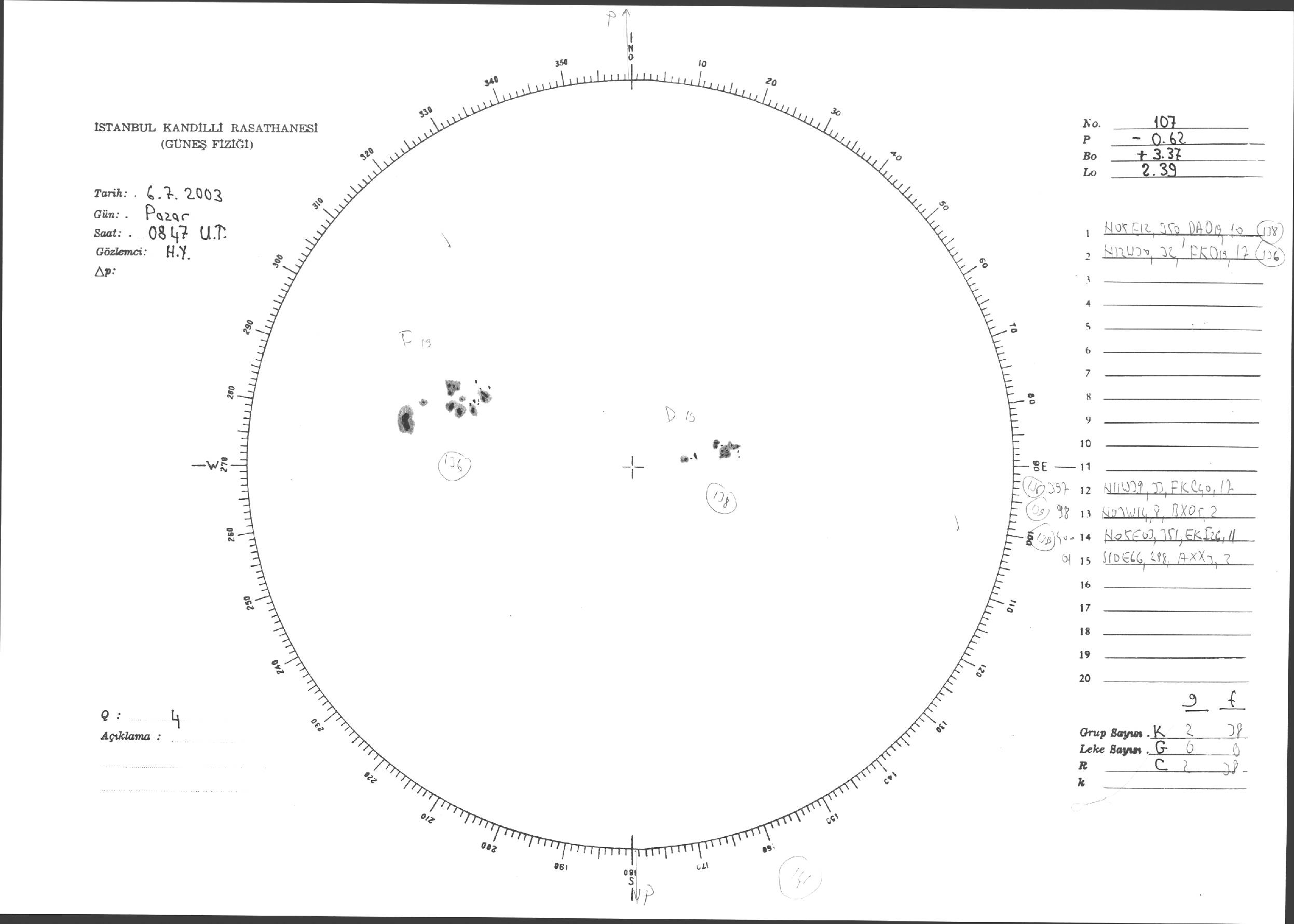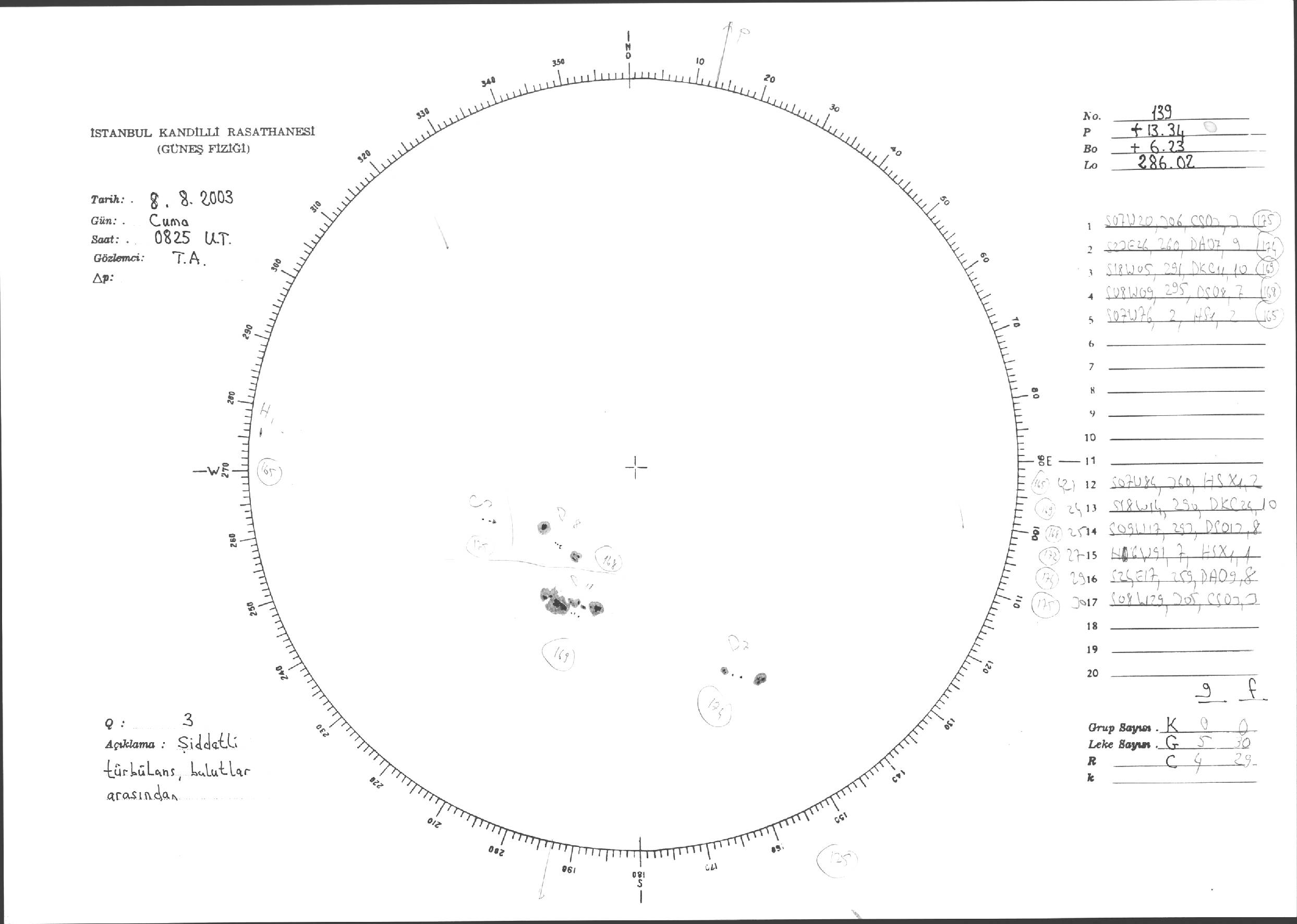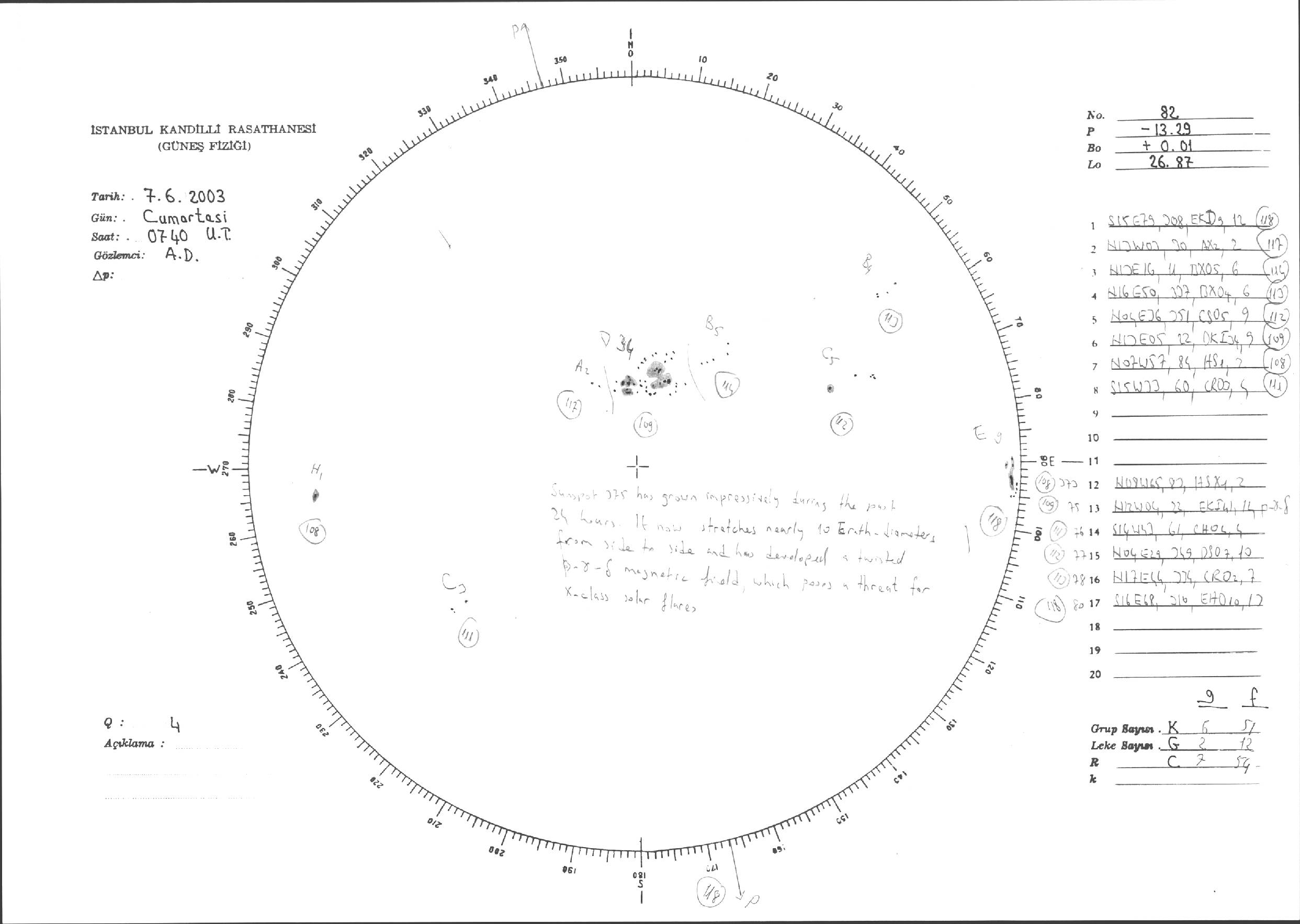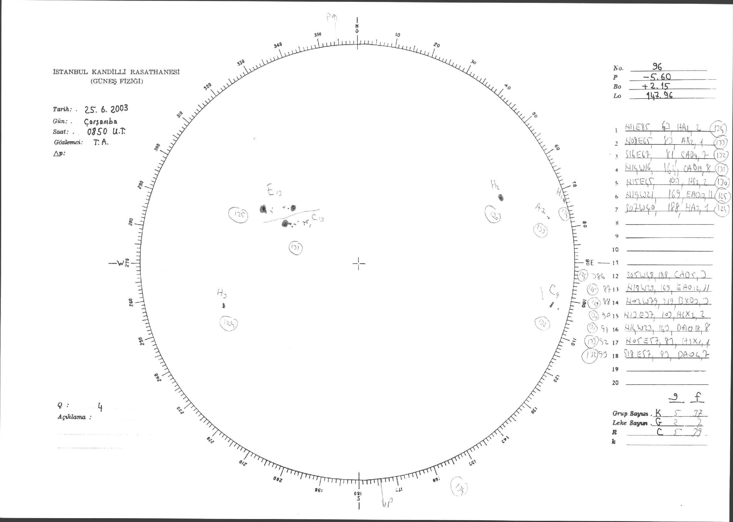 Güneş Lekesi Çizimleri / Kandilli Sunspot Drawings
