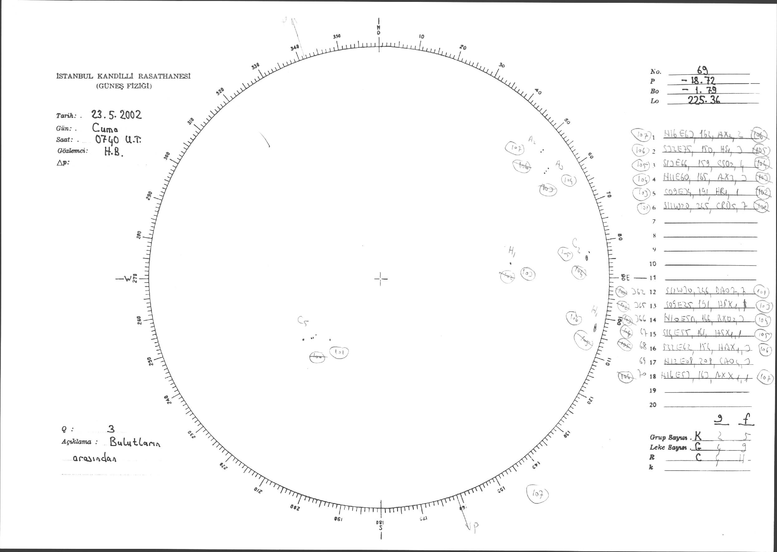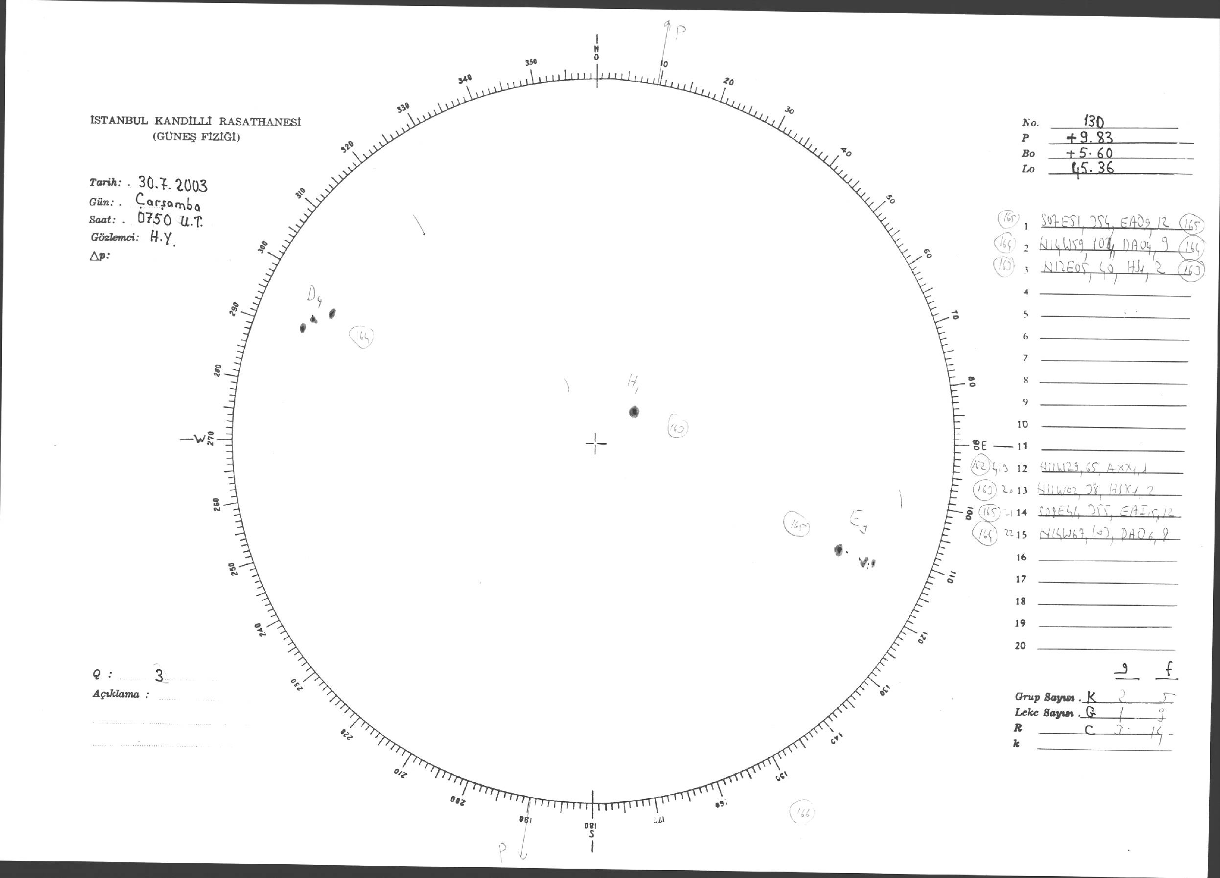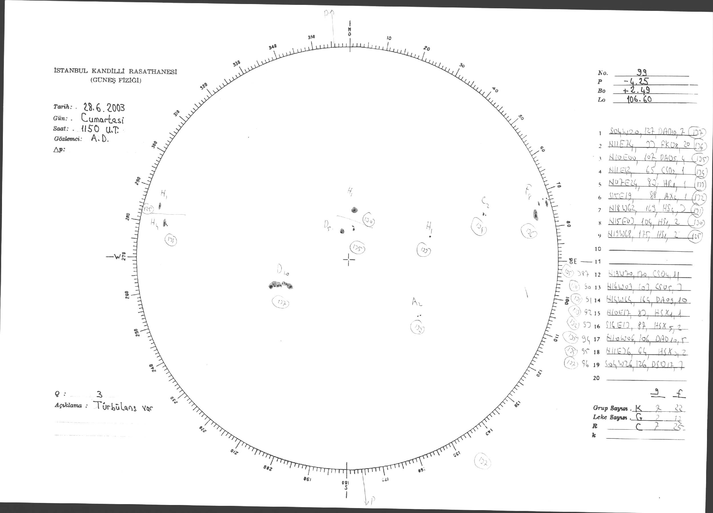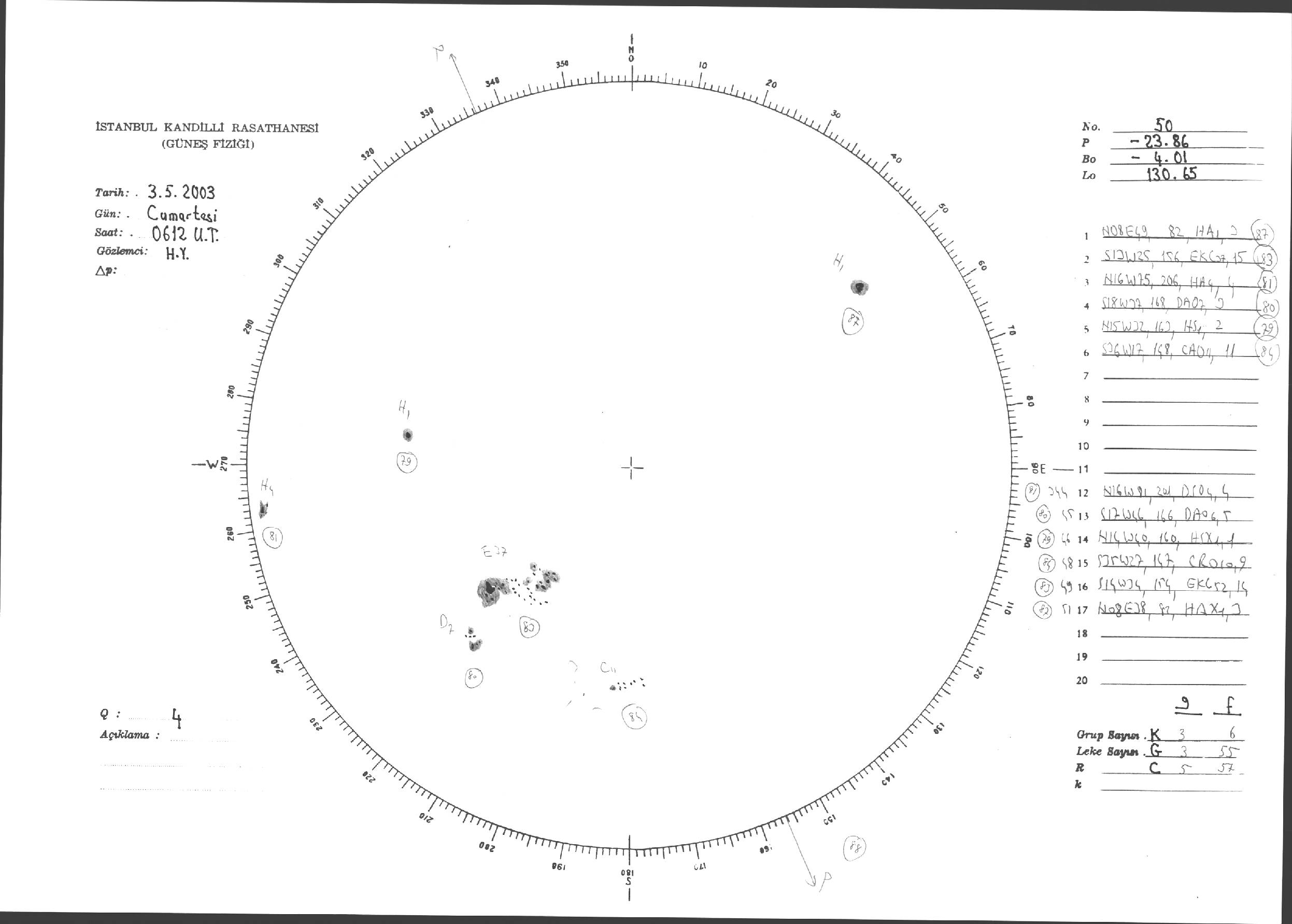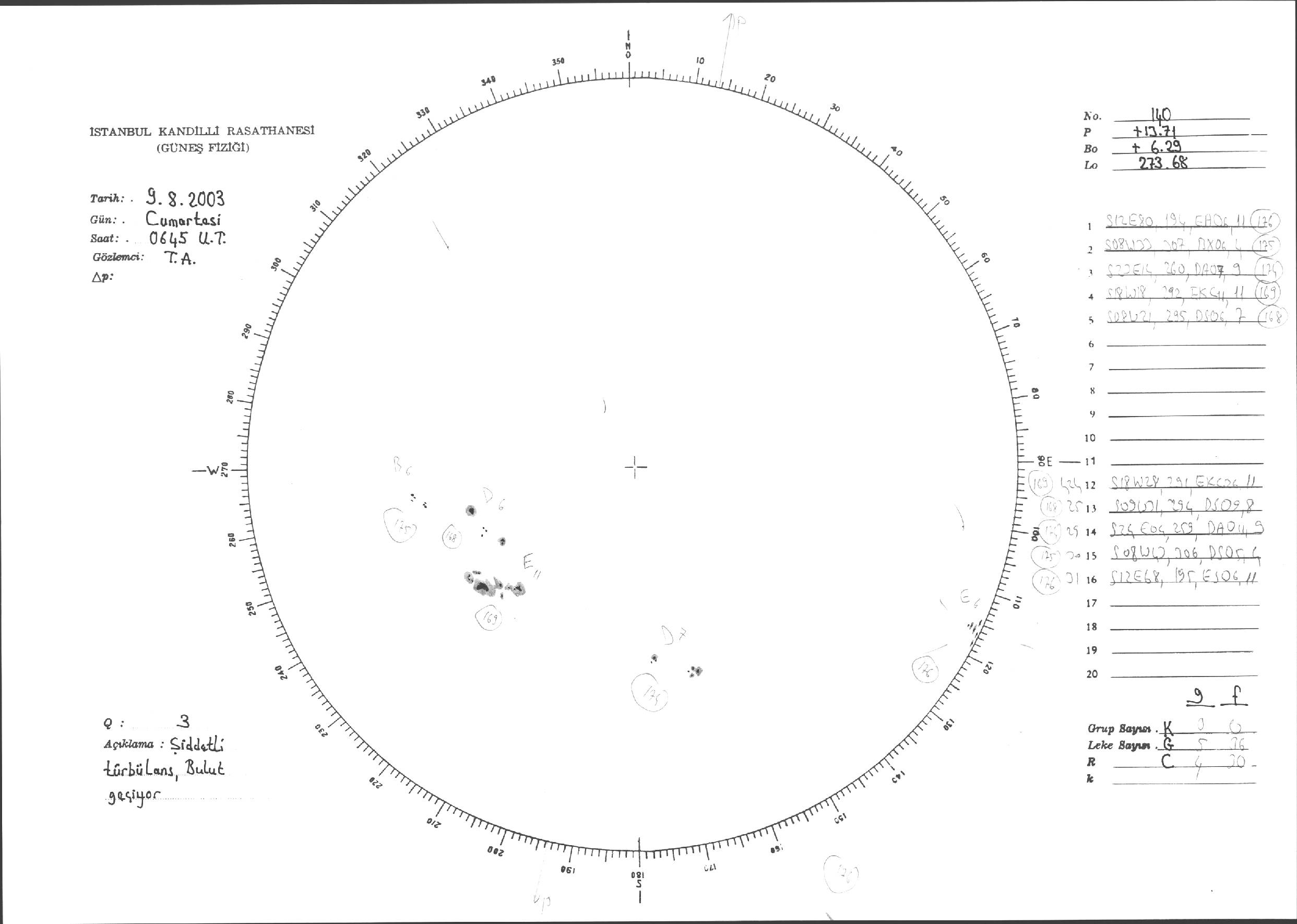 Güneş Lekesi Çizimleri / Kandilli Sunspot Drawings