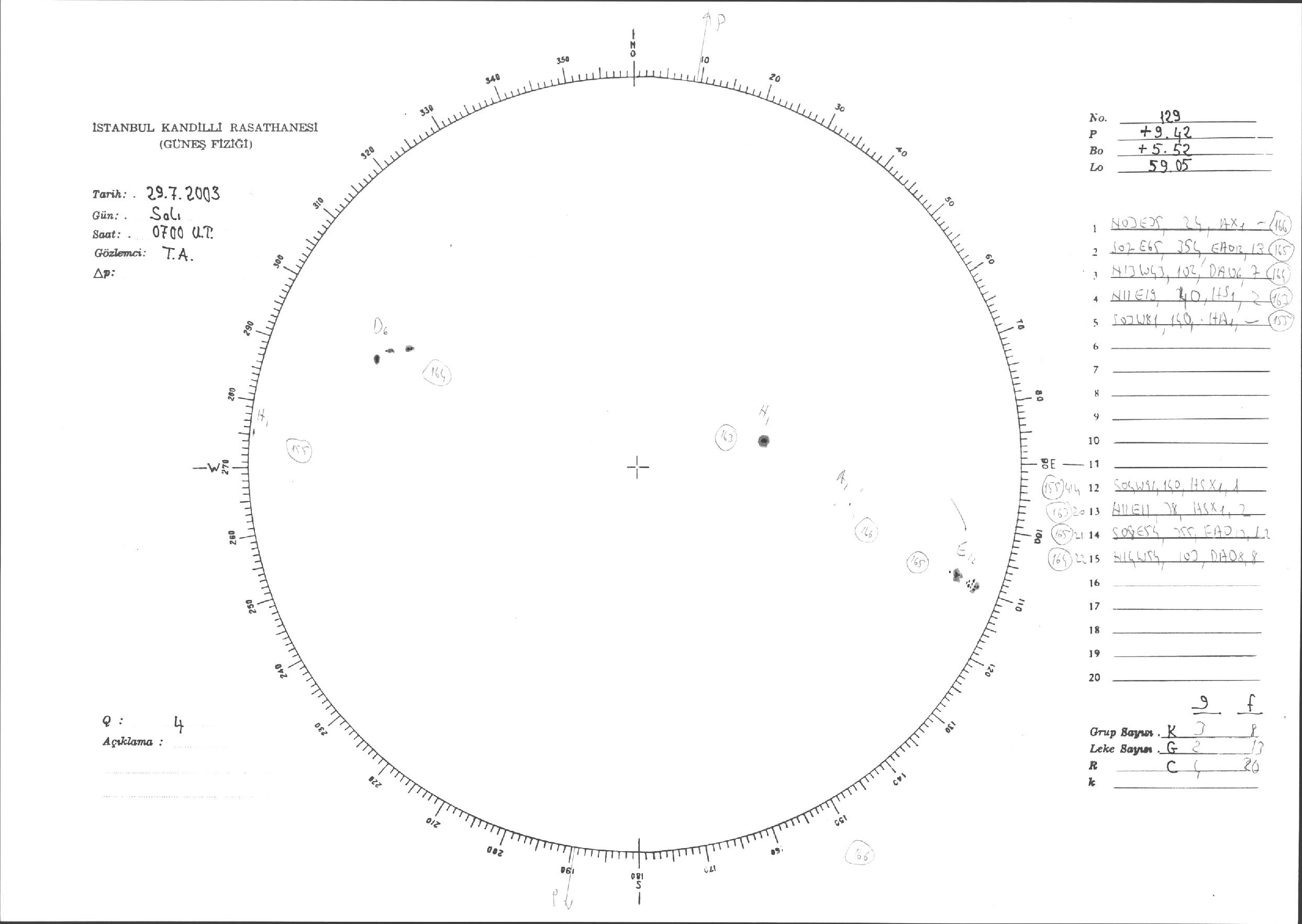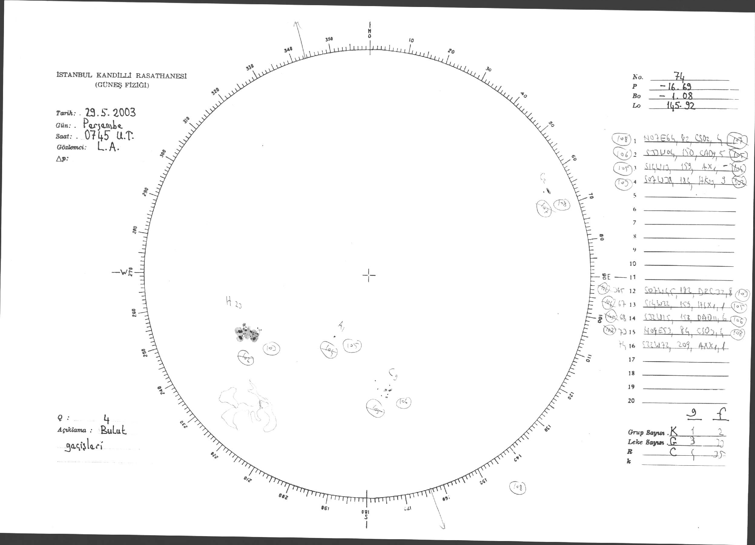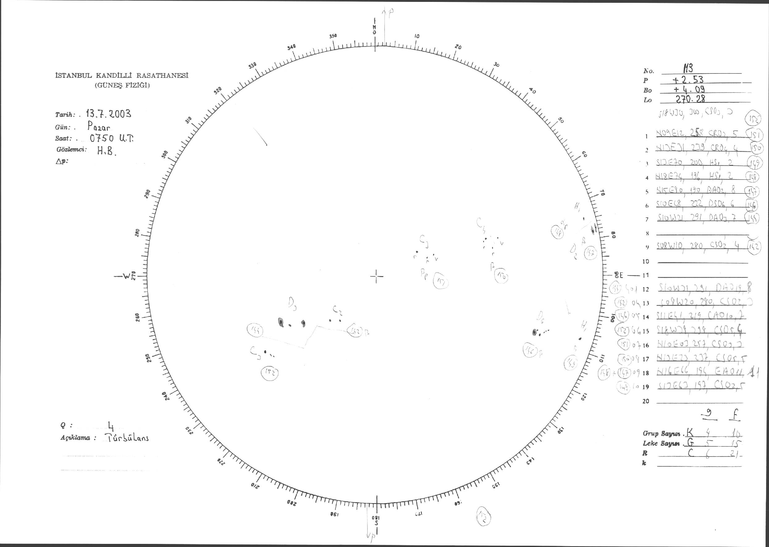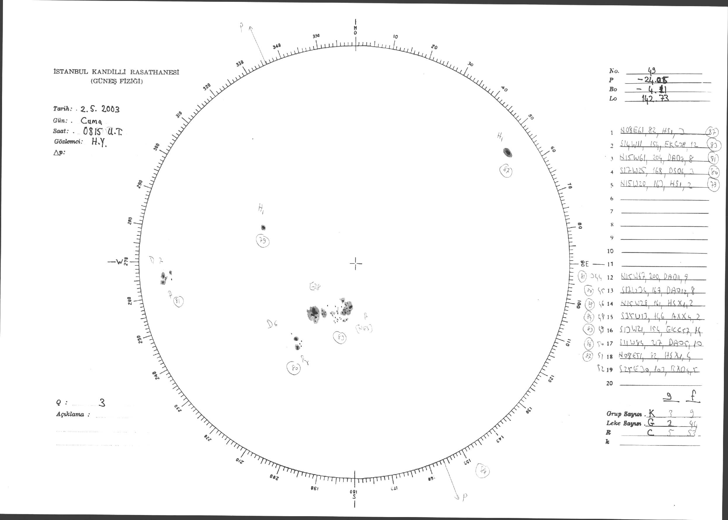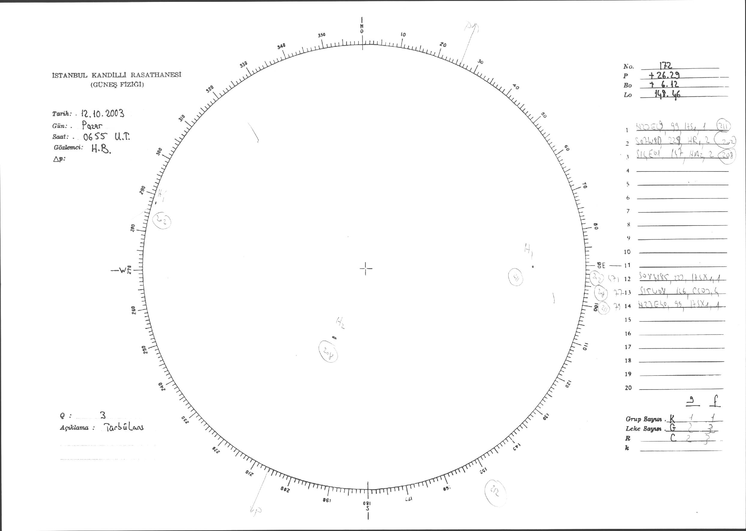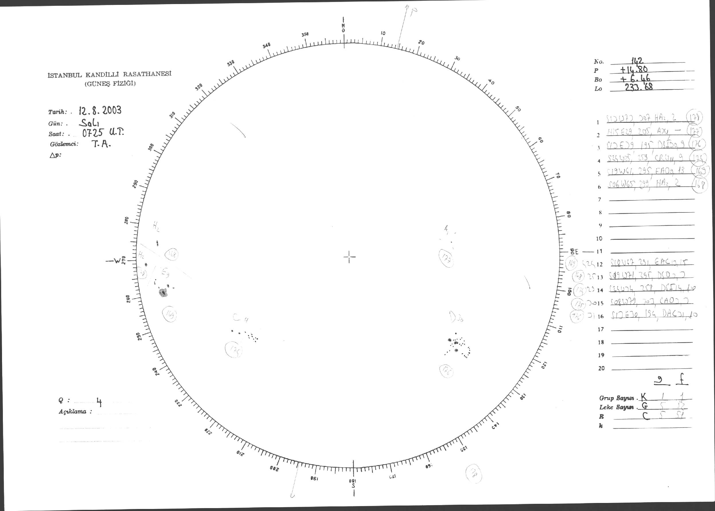 Güneş Lekesi Çizimleri / Kandilli Sunspot Drawings