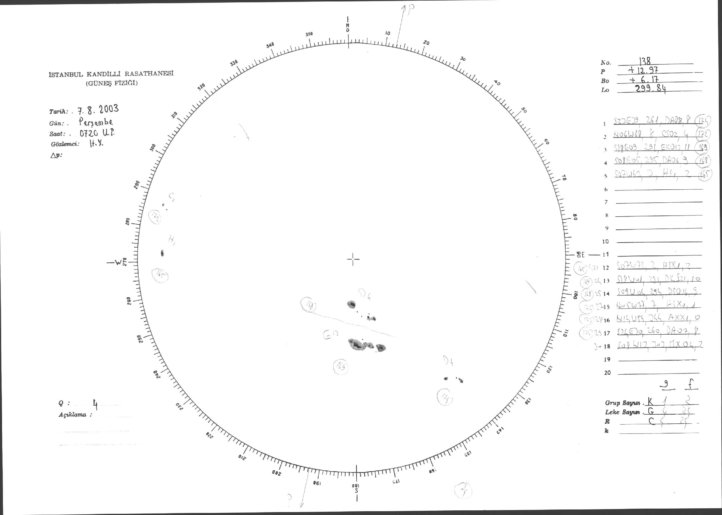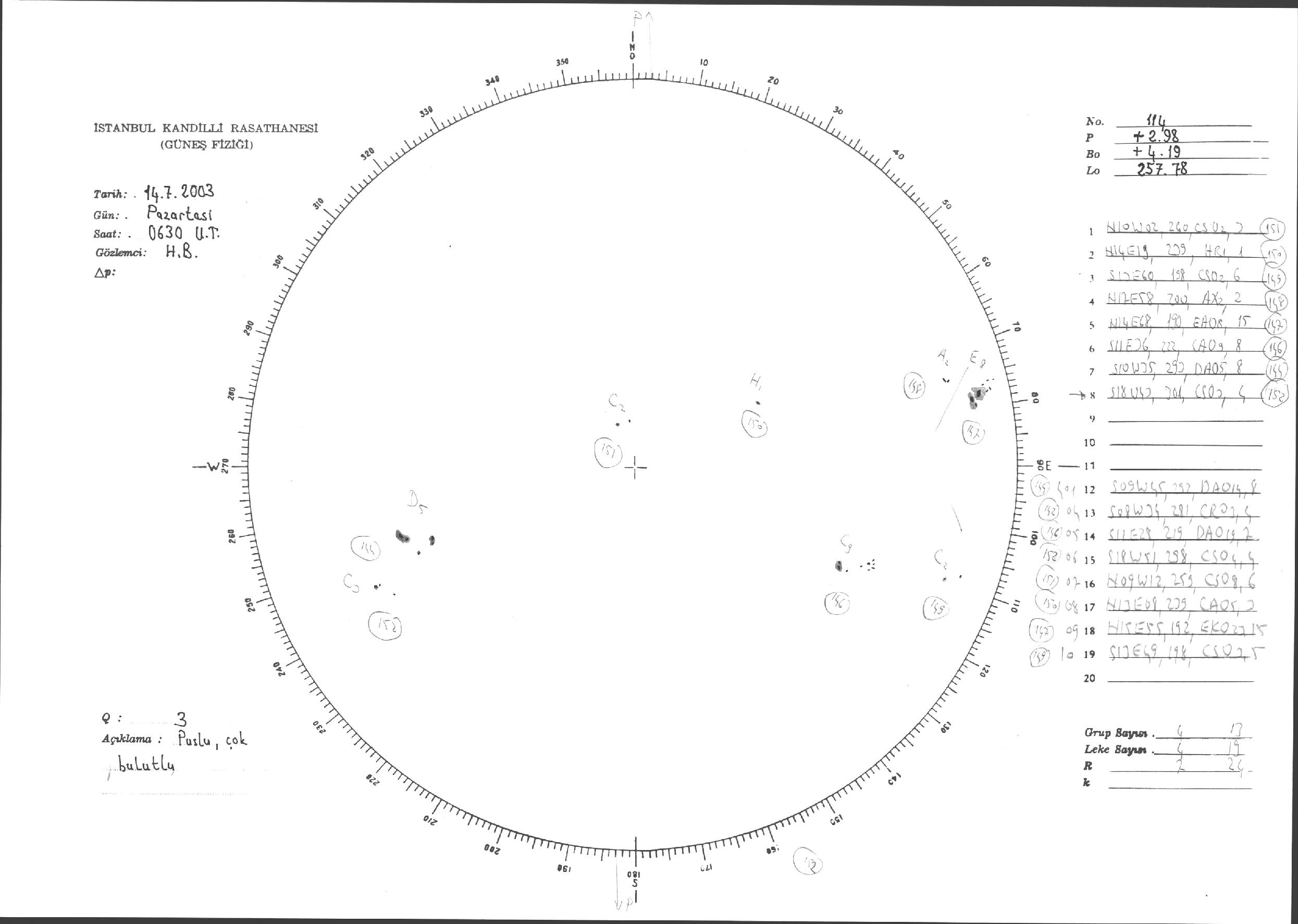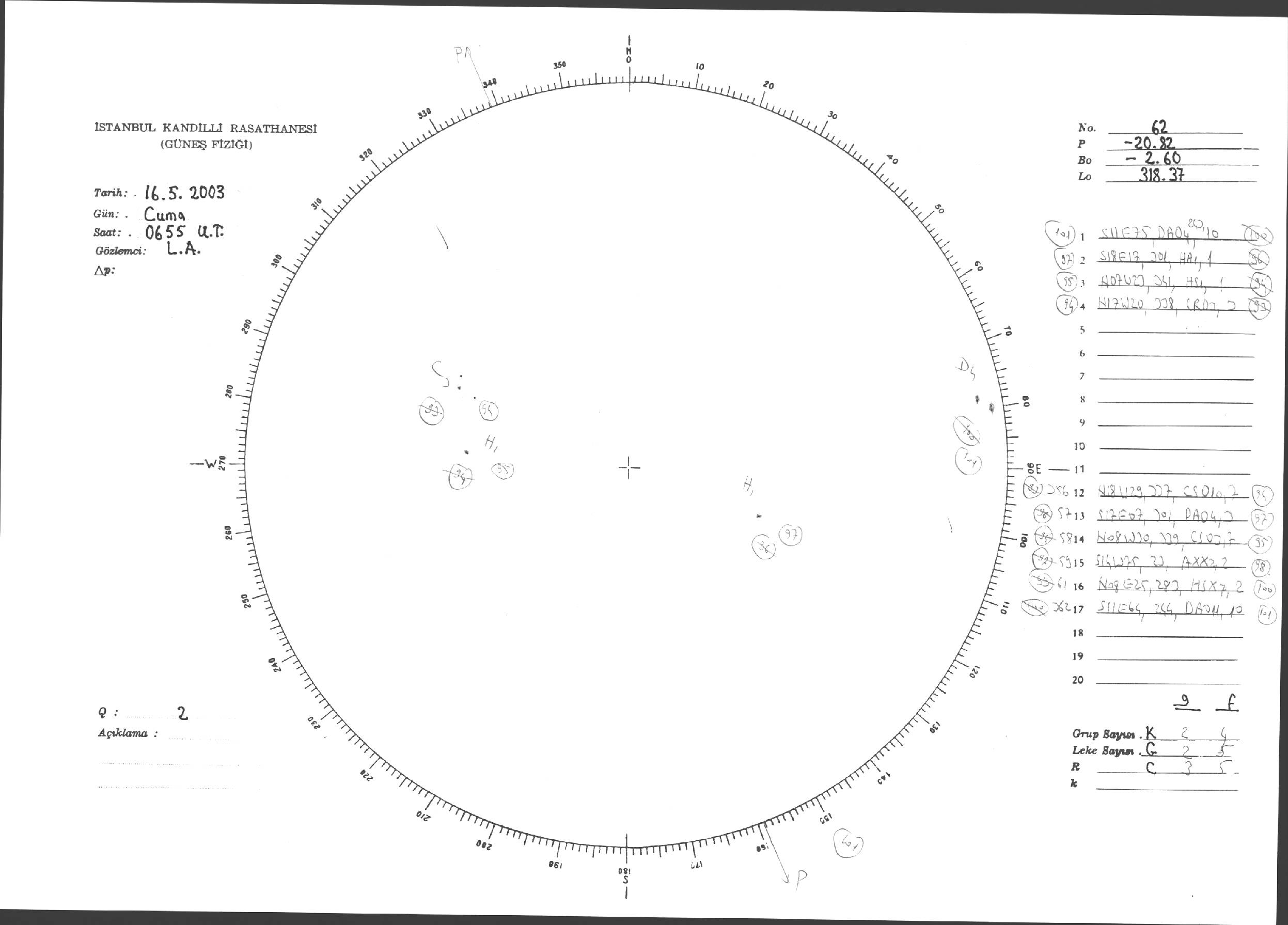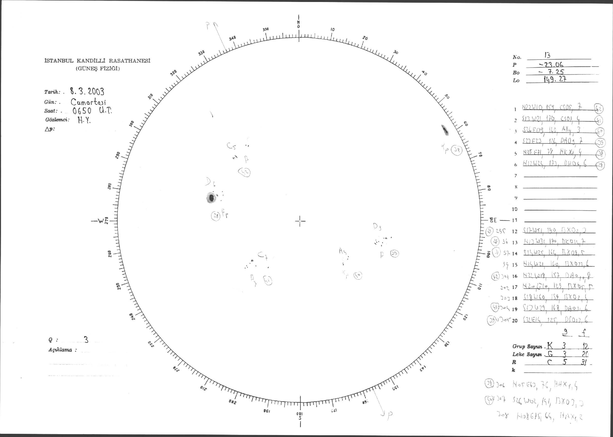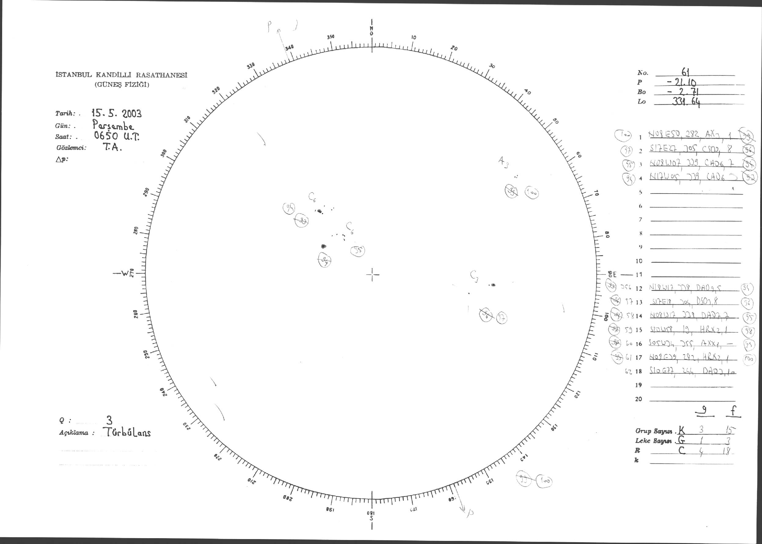Güneş Lekesi Çizimleri / Kandilli Sunspot Drawings