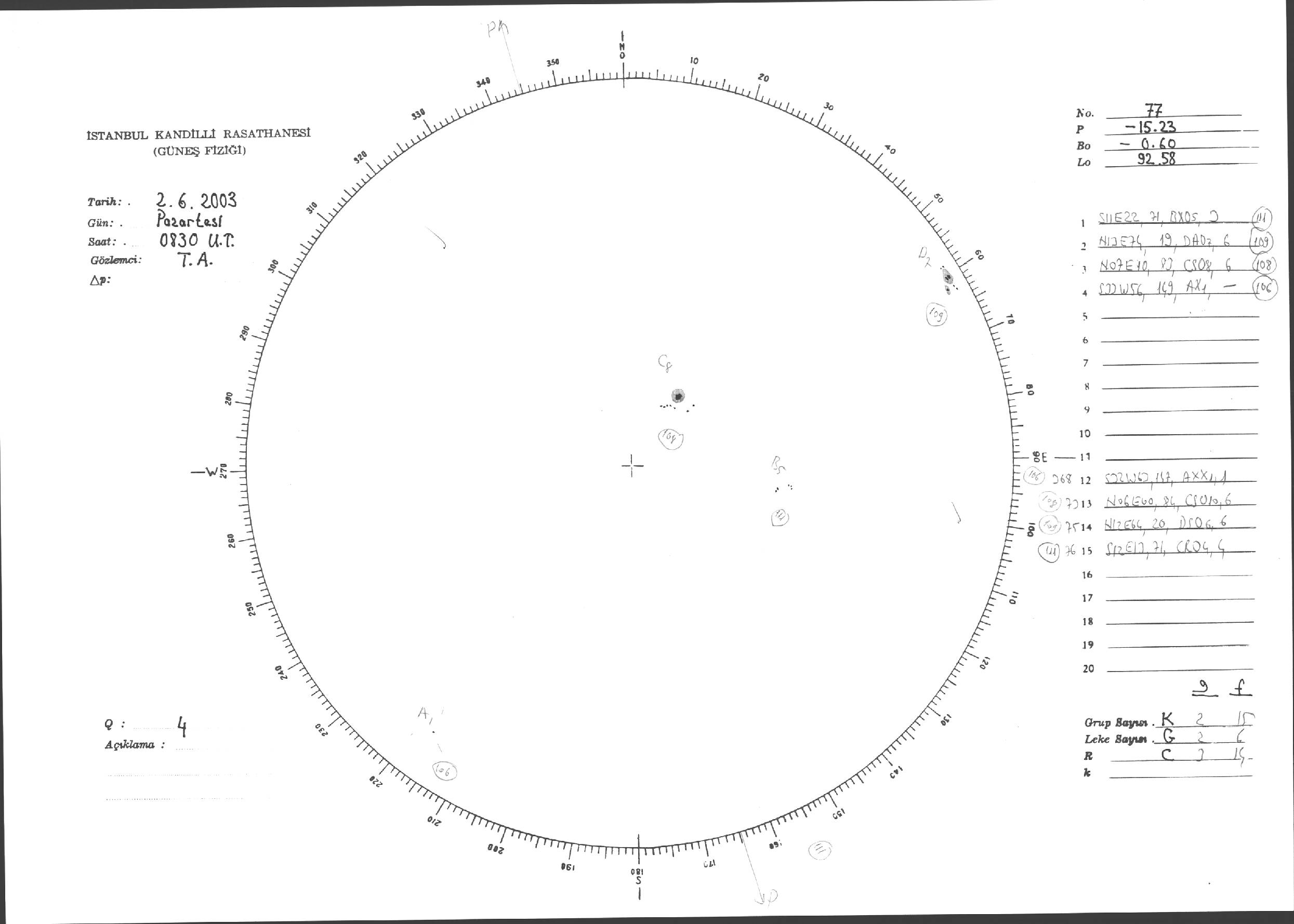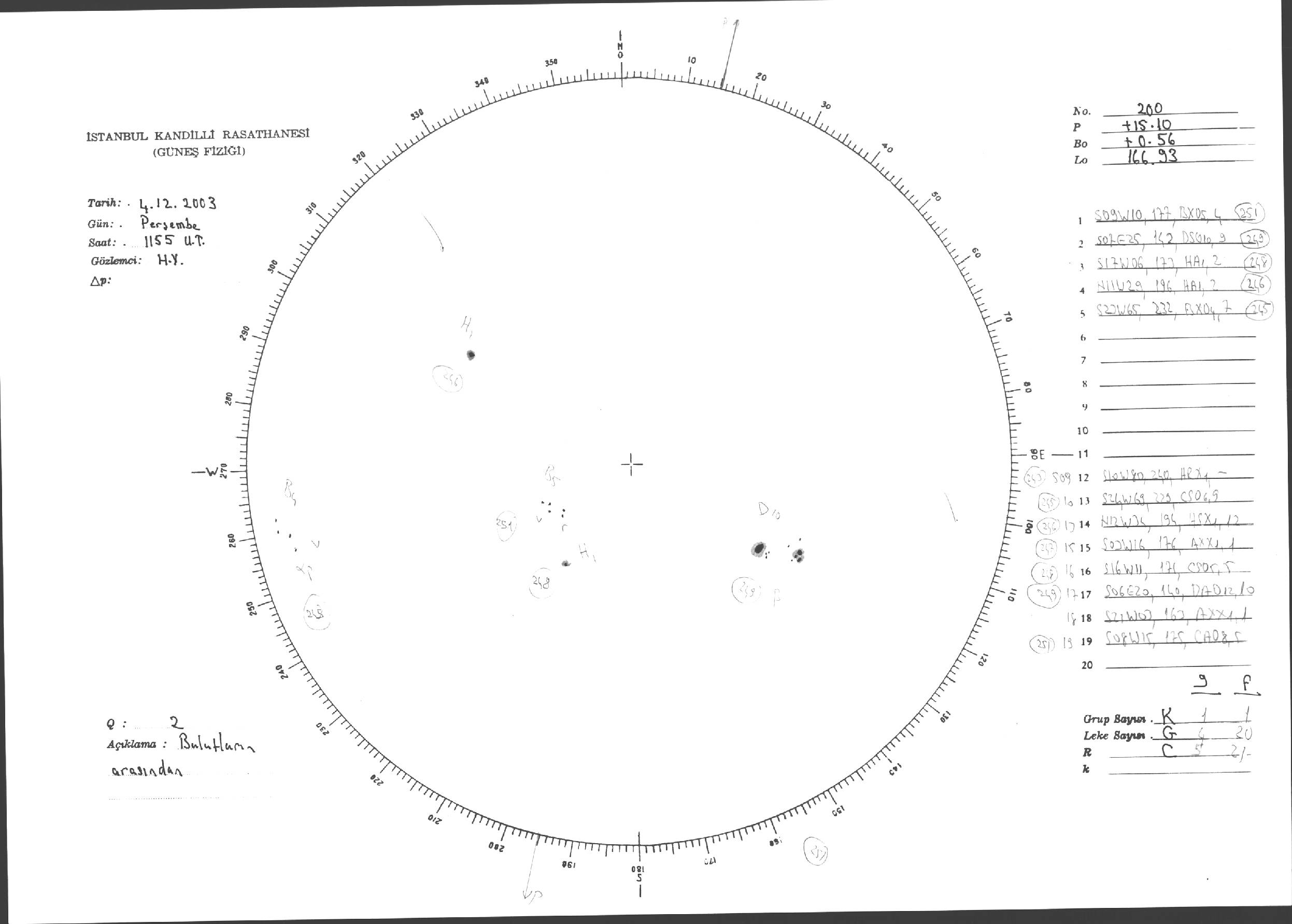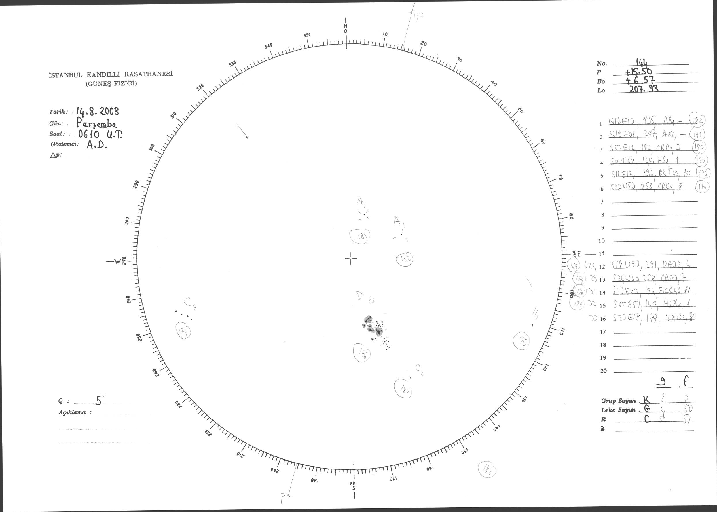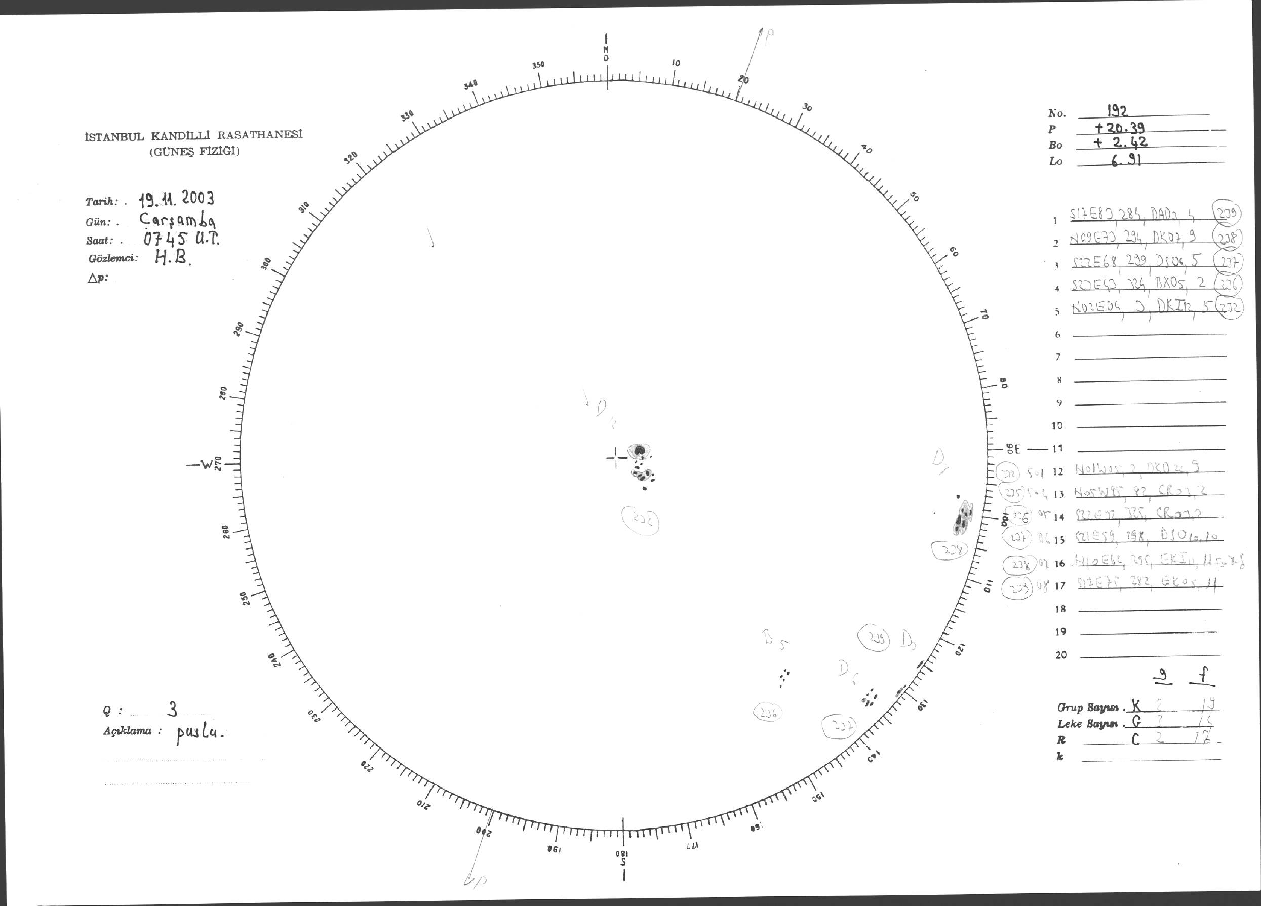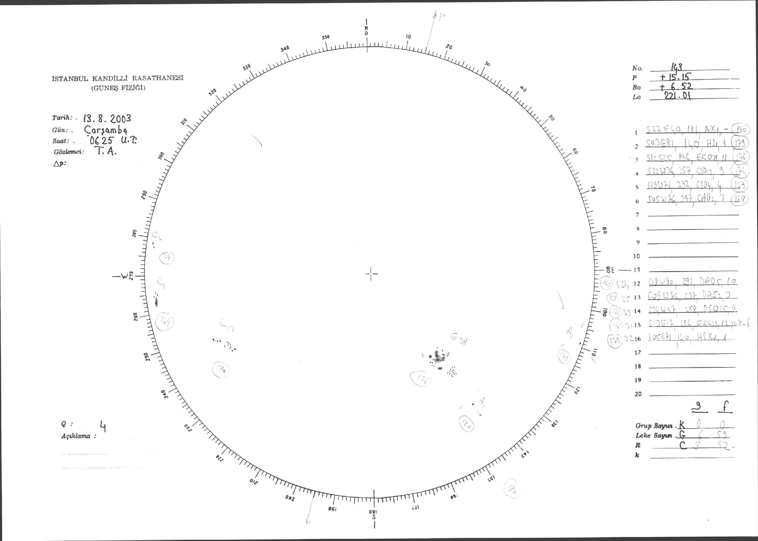 Güneş Lekesi Çizimleri / Kandilli Sunspot Drawings