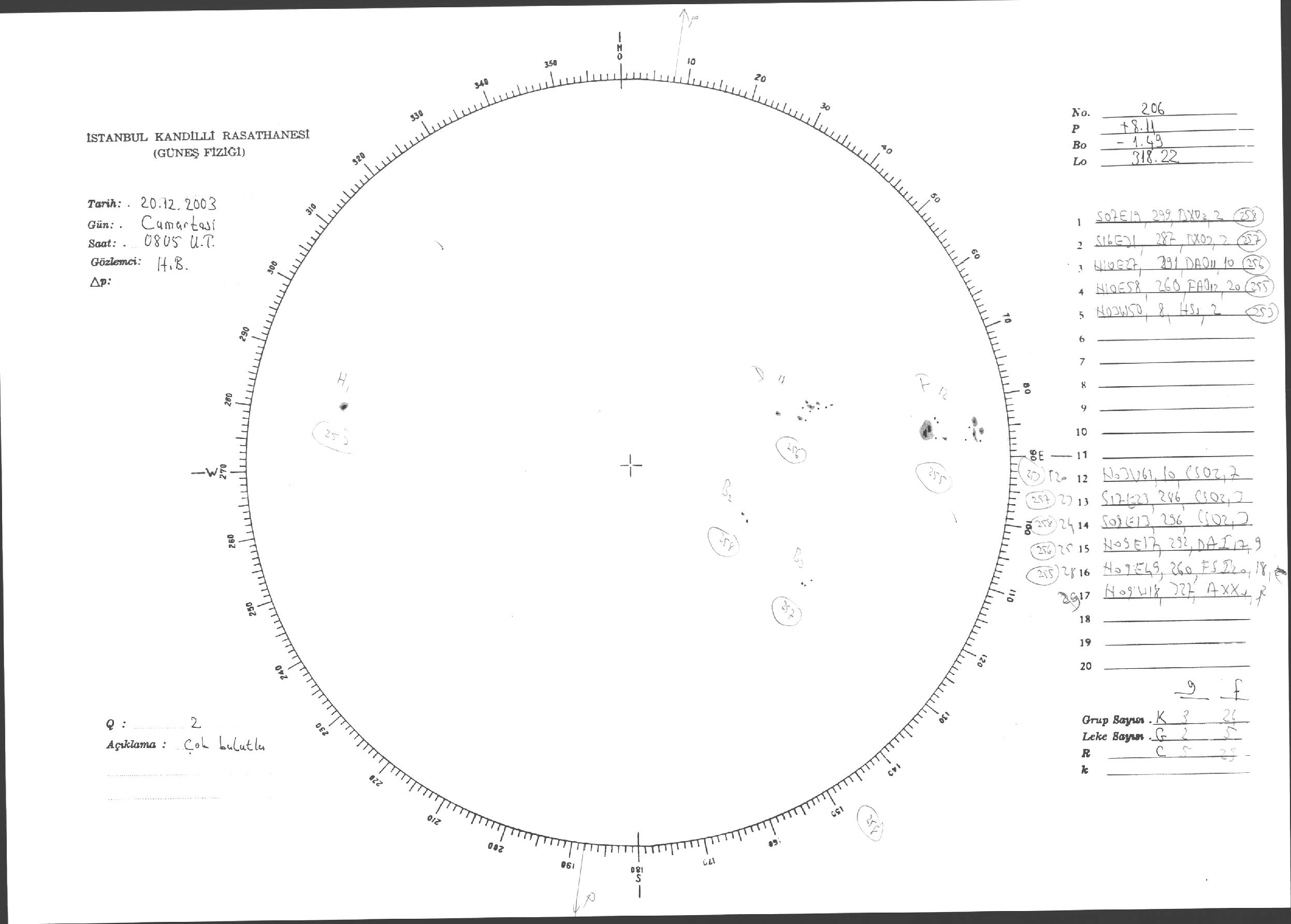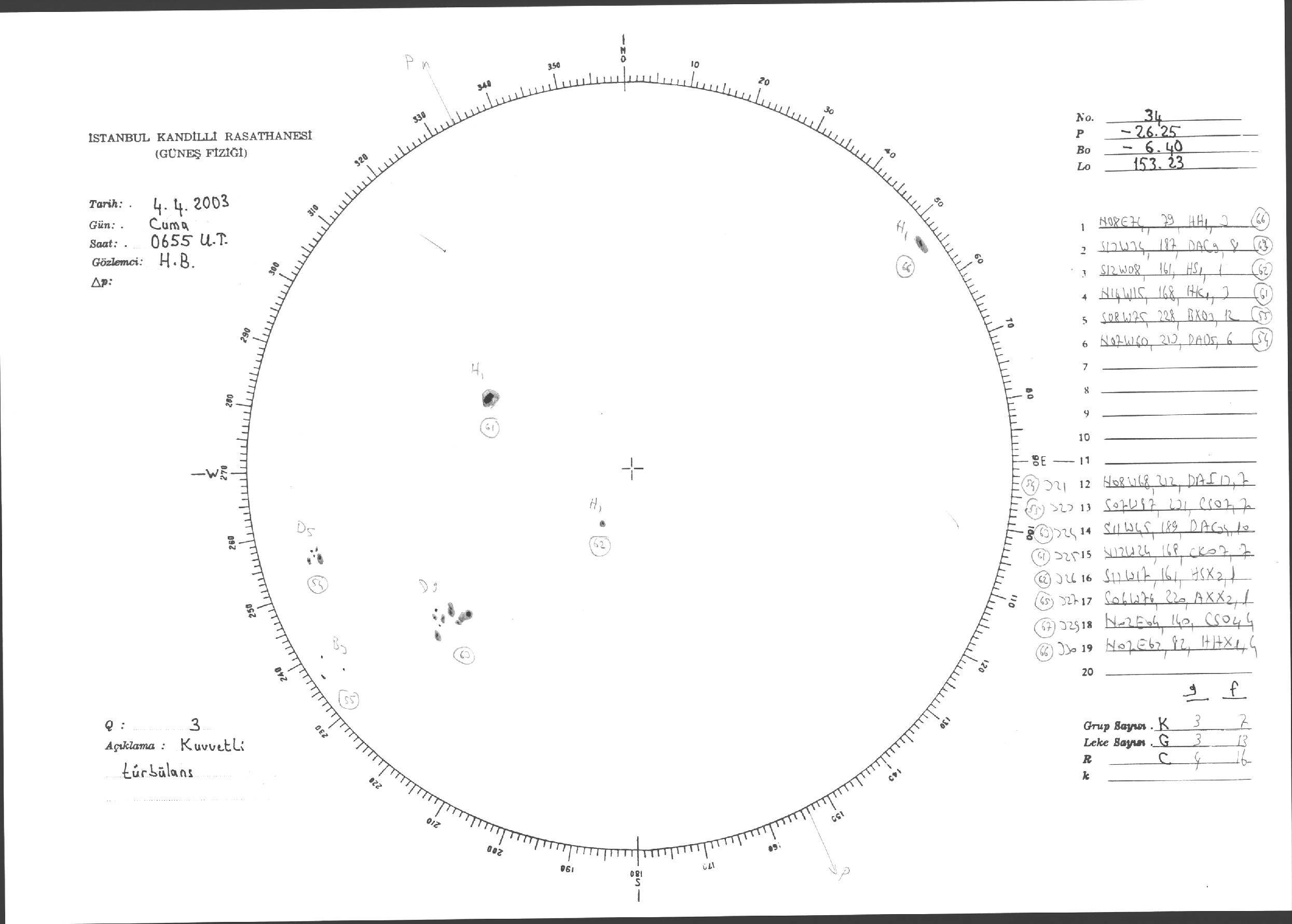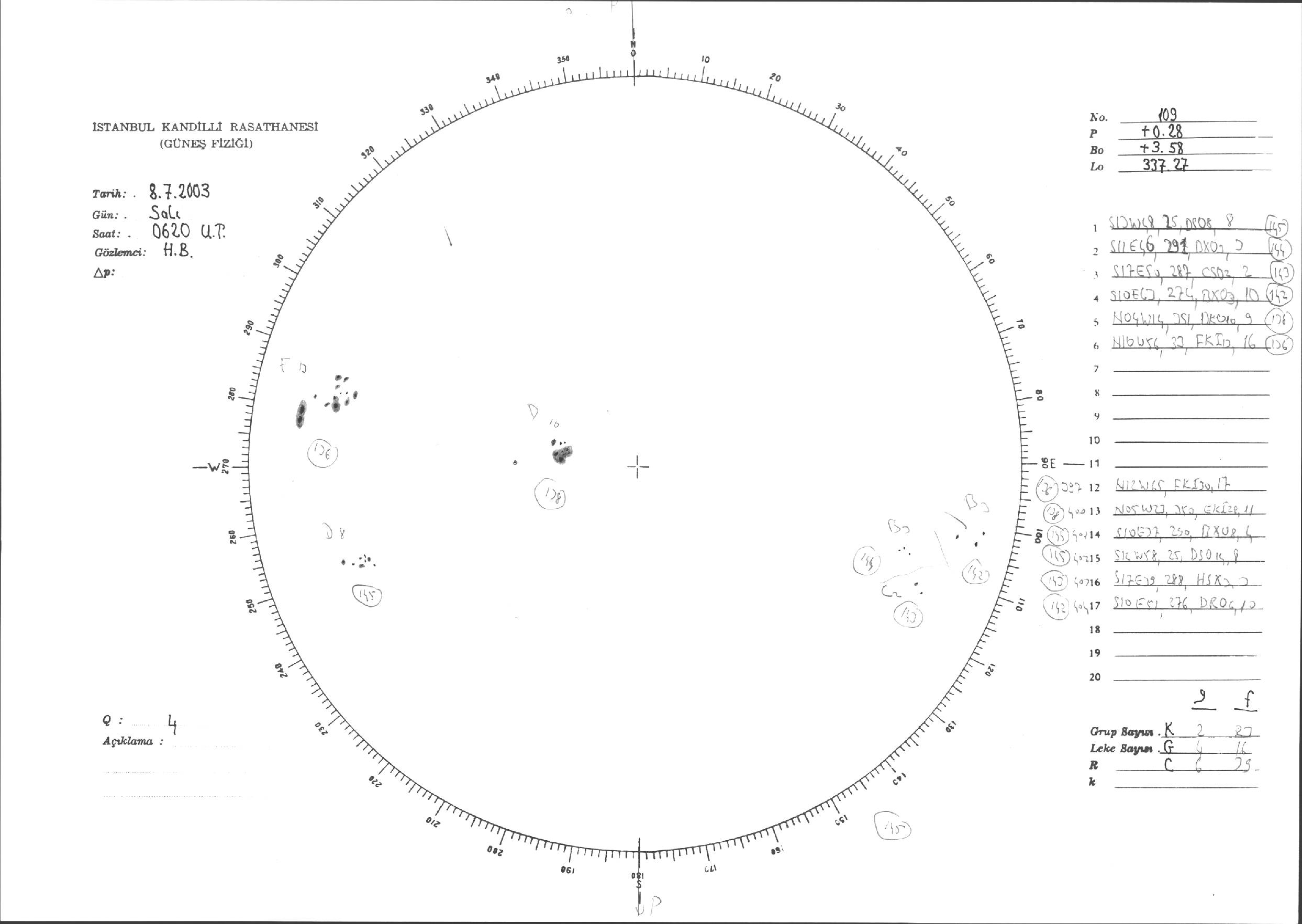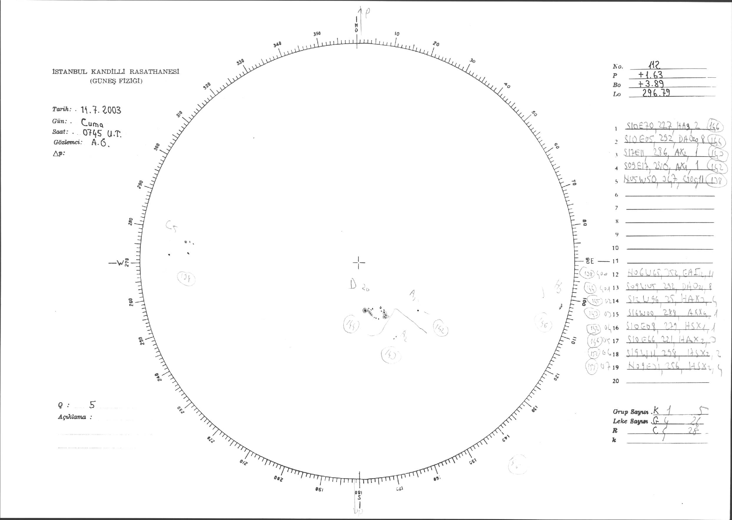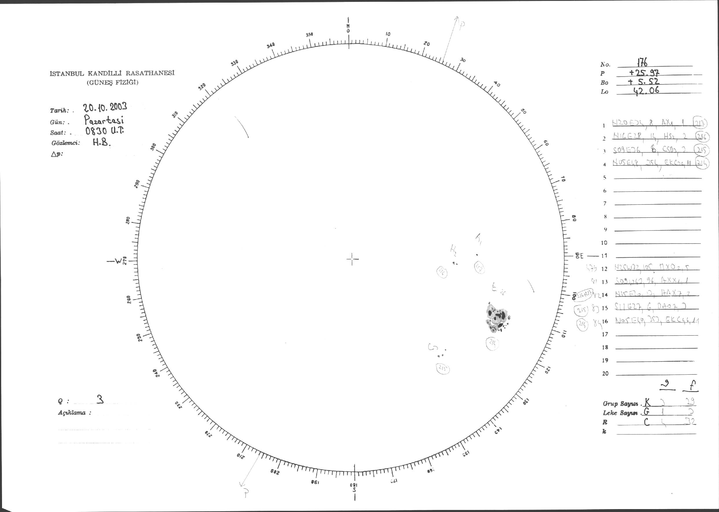 Güneş Lekesi Çizimleri / Kandilli Sunspot Drawings