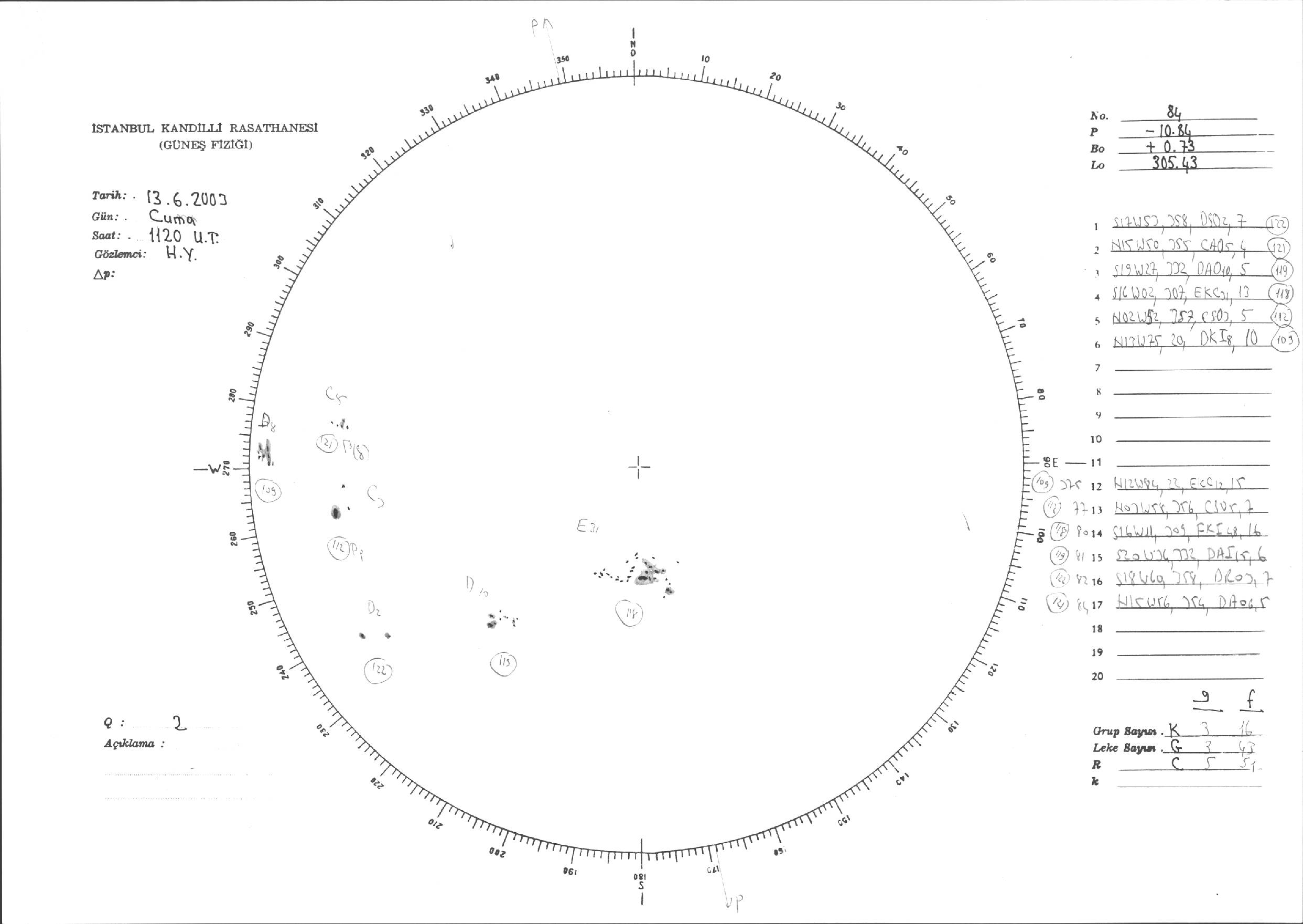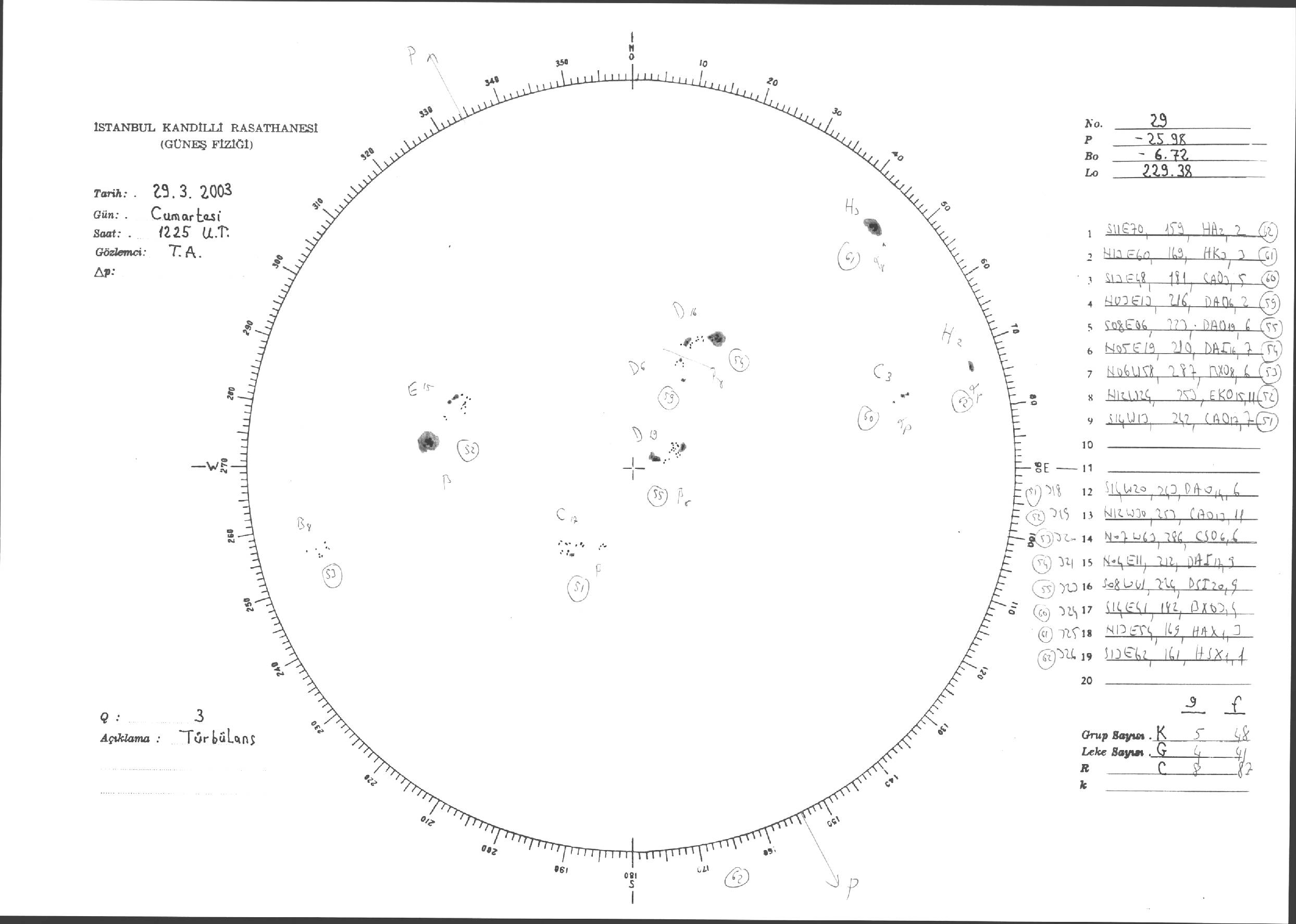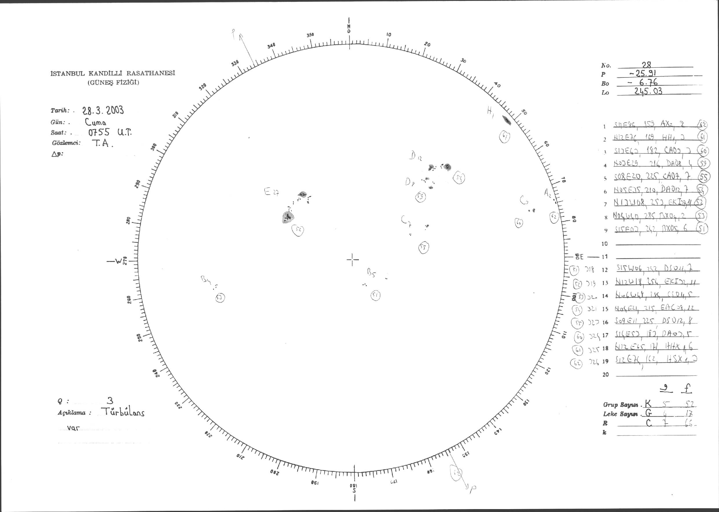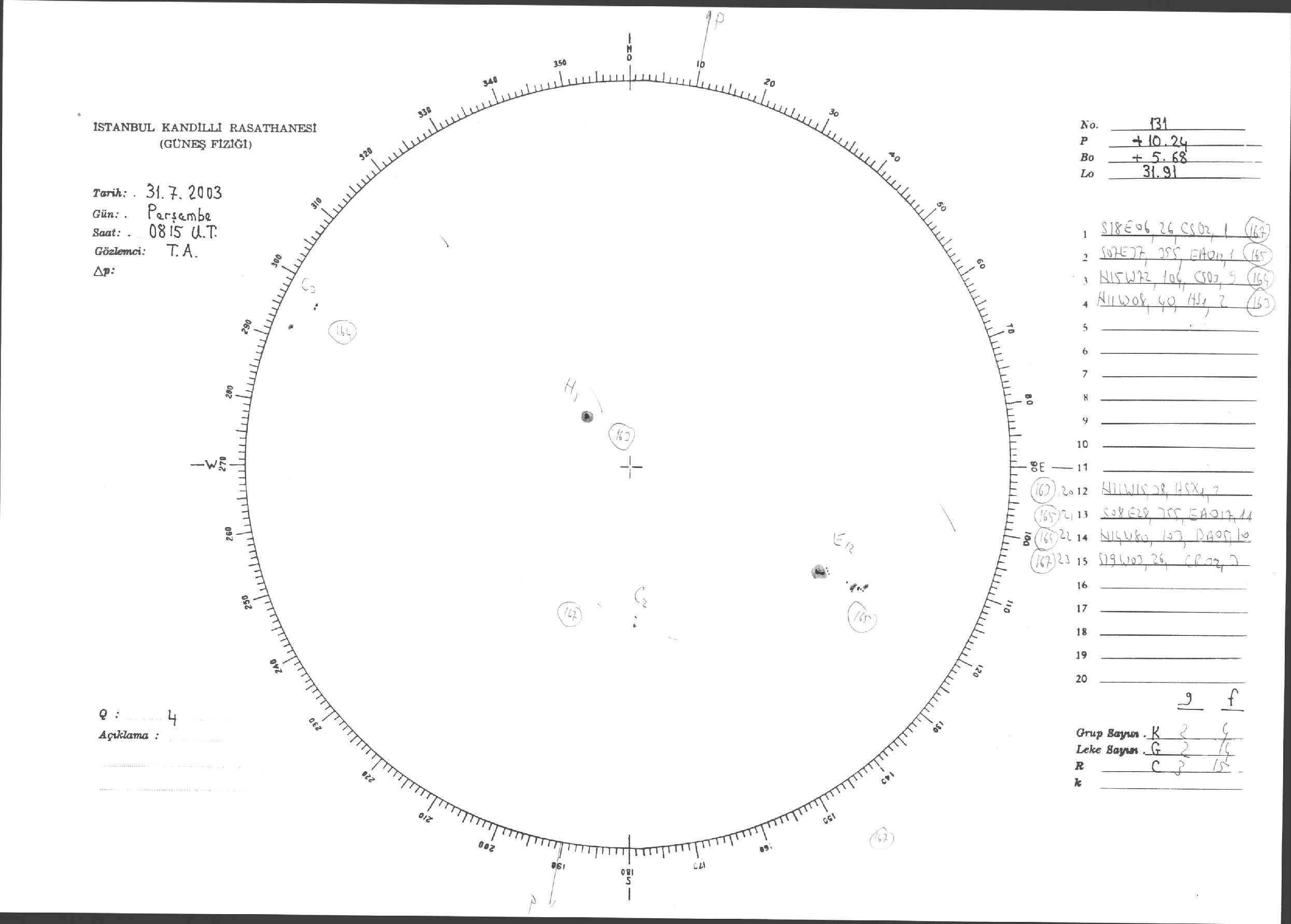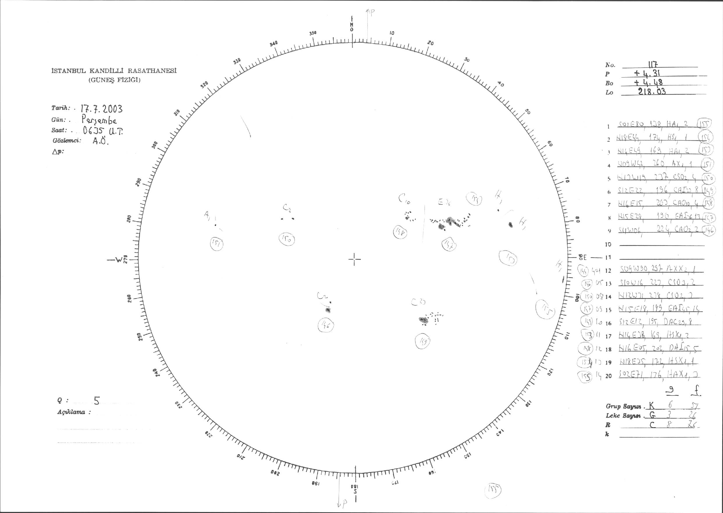 Güneş Lekesi Çizimleri / Kandilli Sunspot Drawings