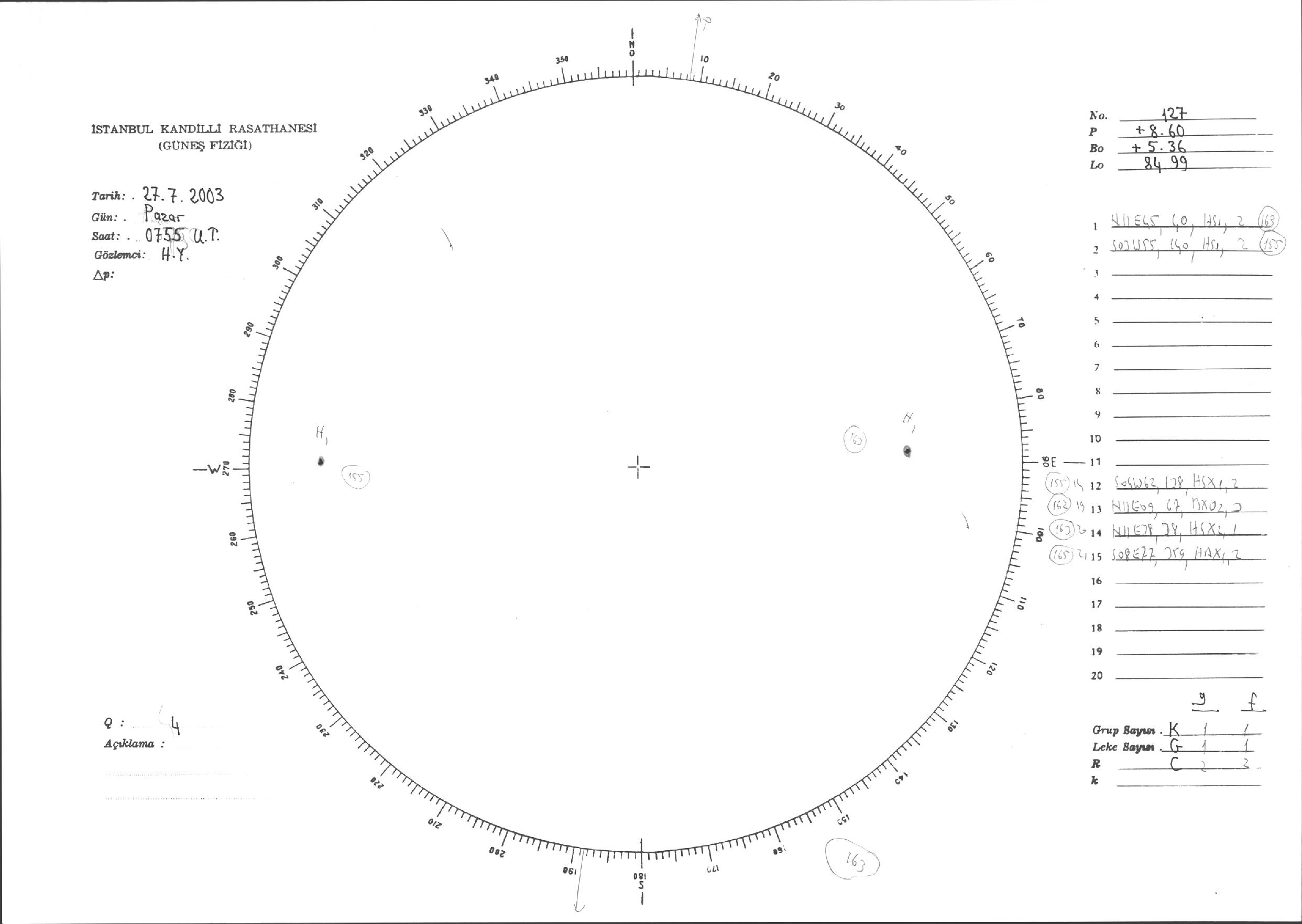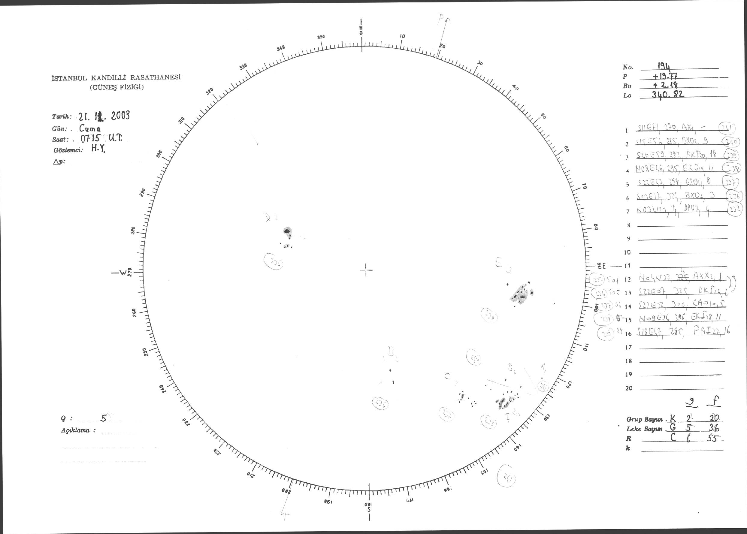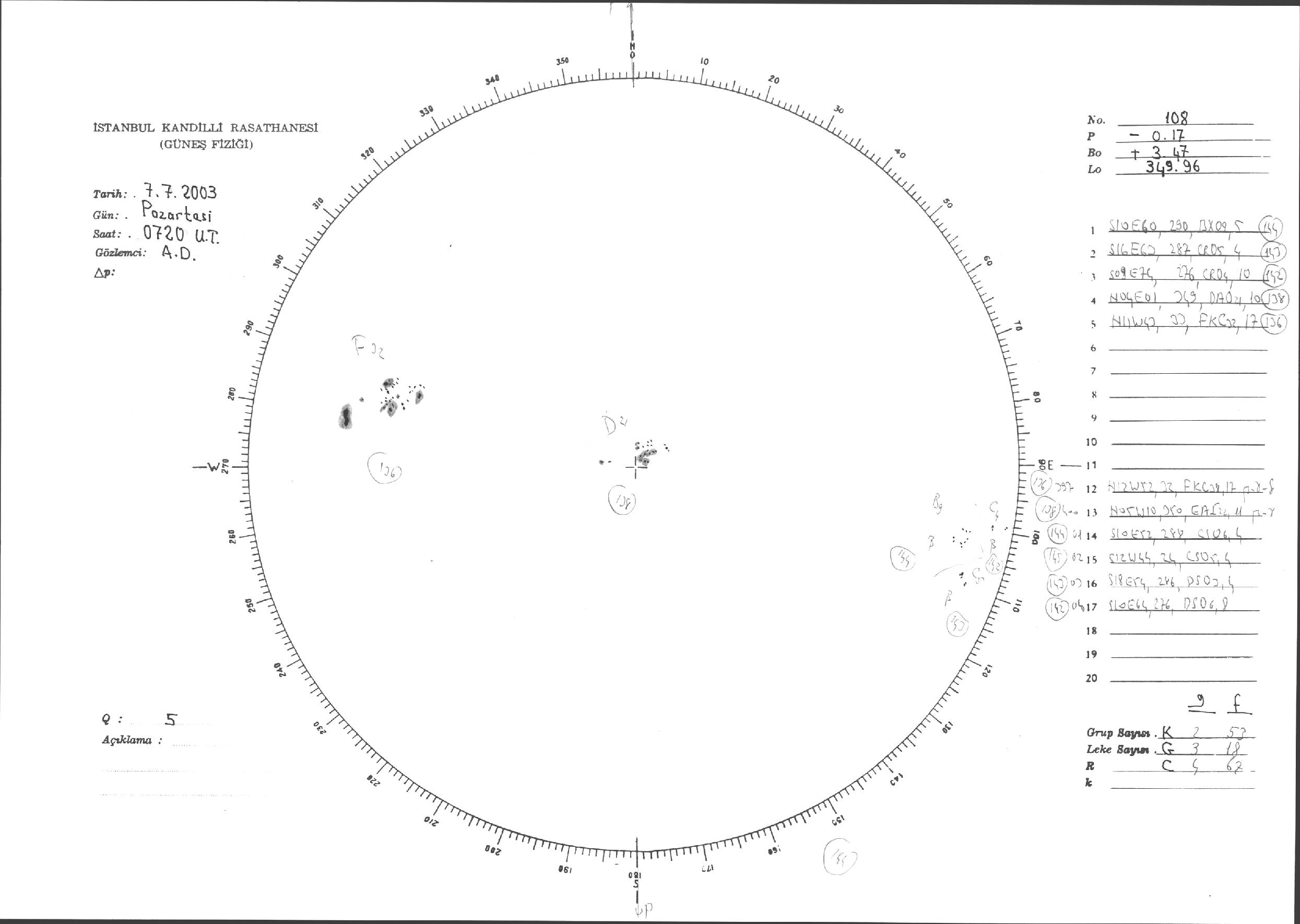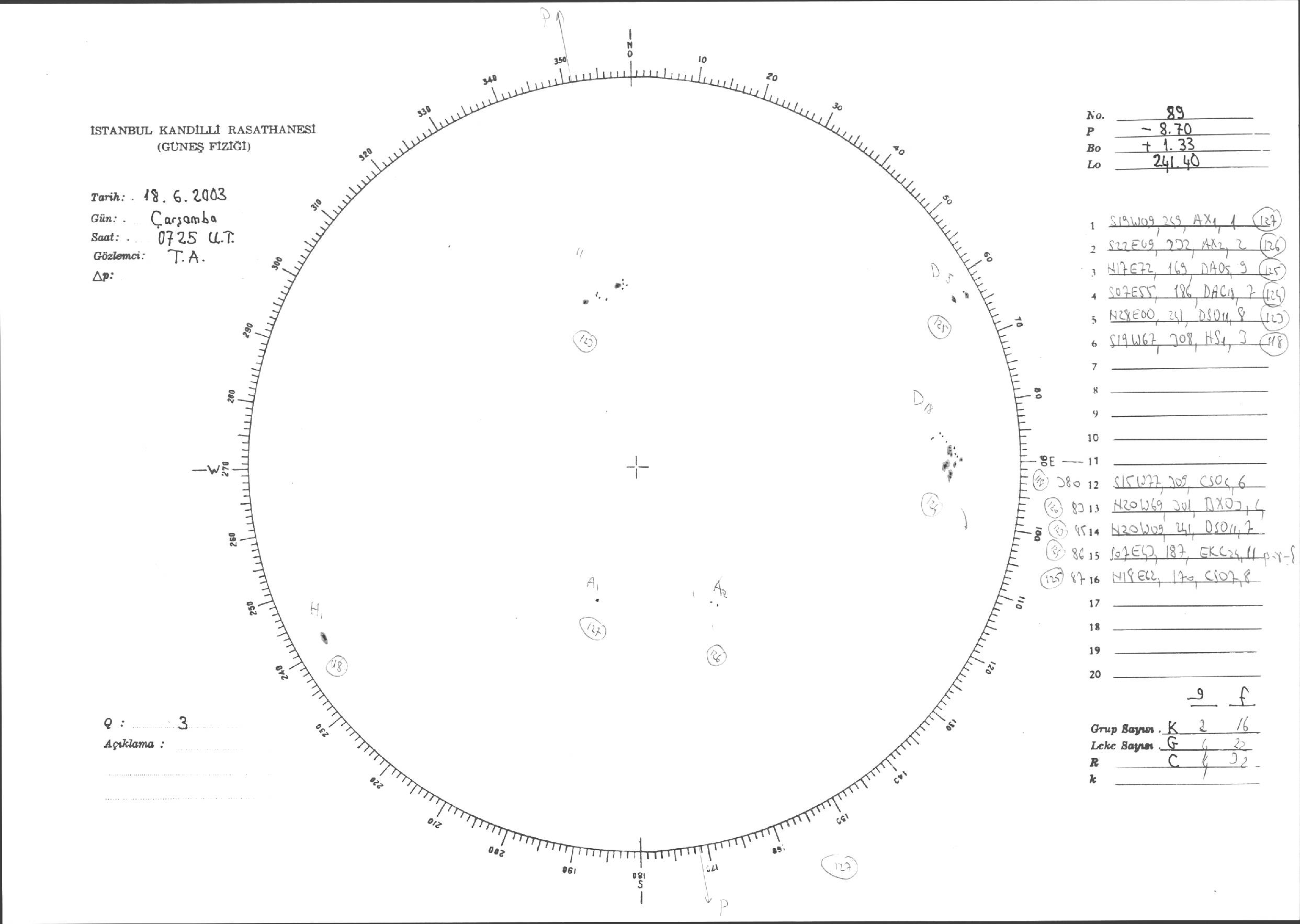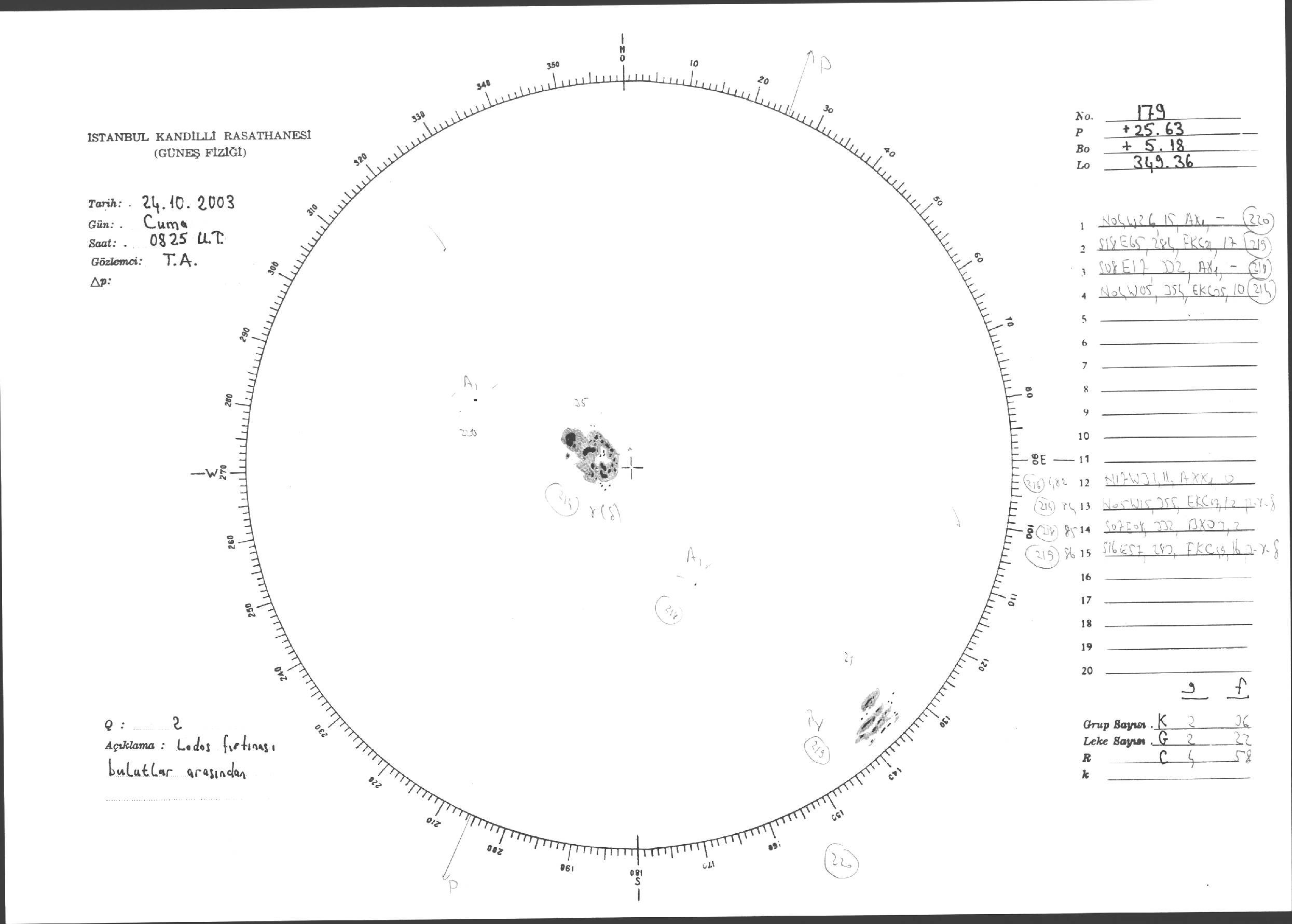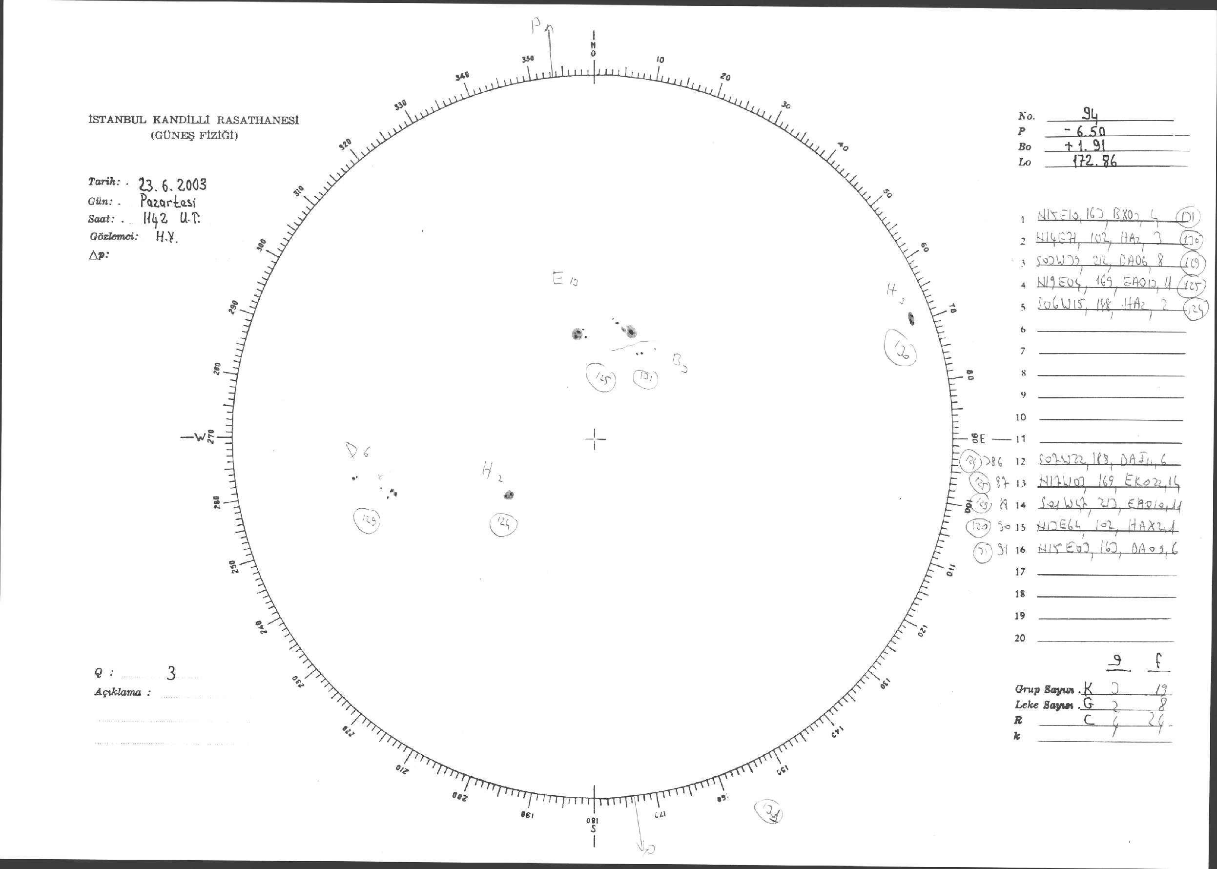 Güneş Lekesi Çizimleri / Kandilli Sunspot Drawings