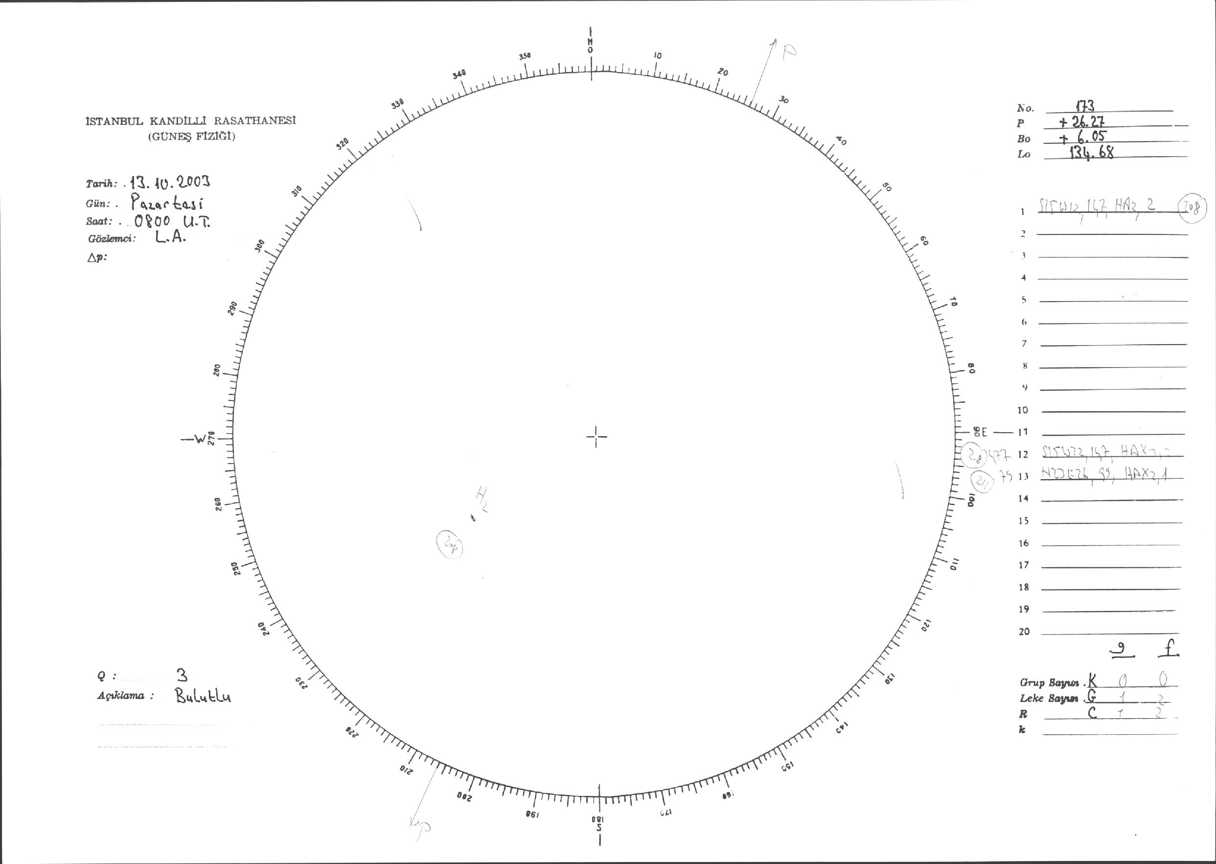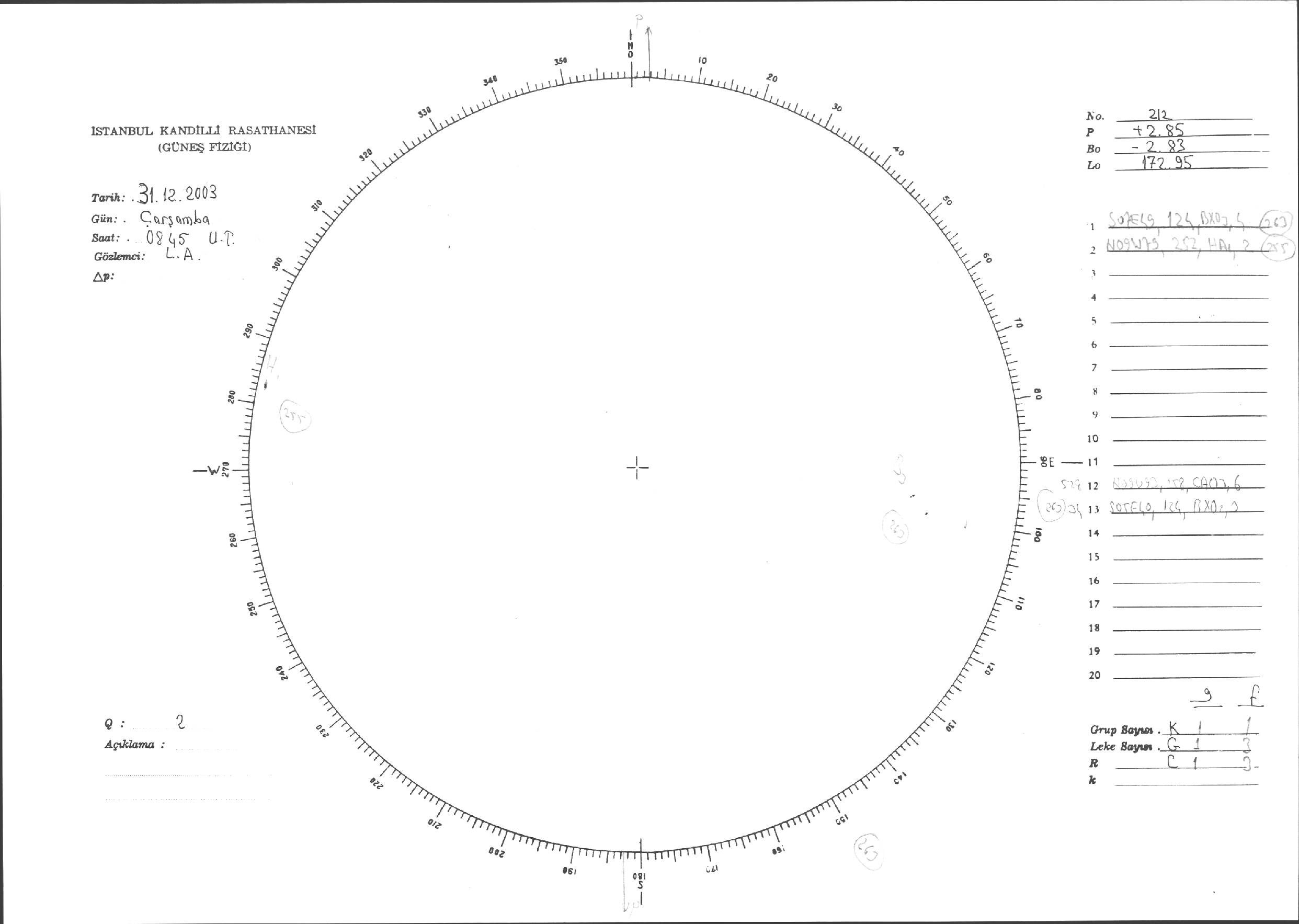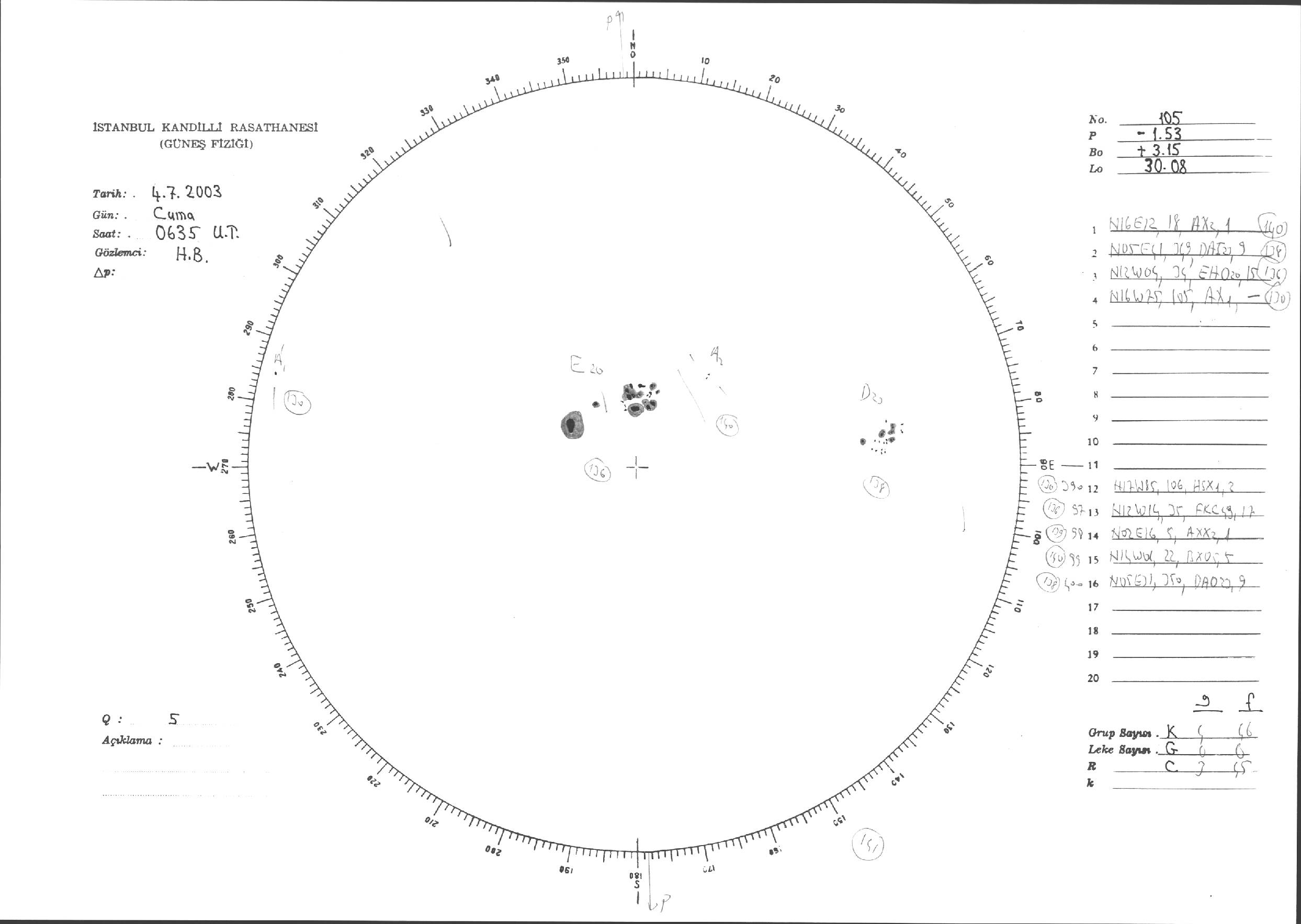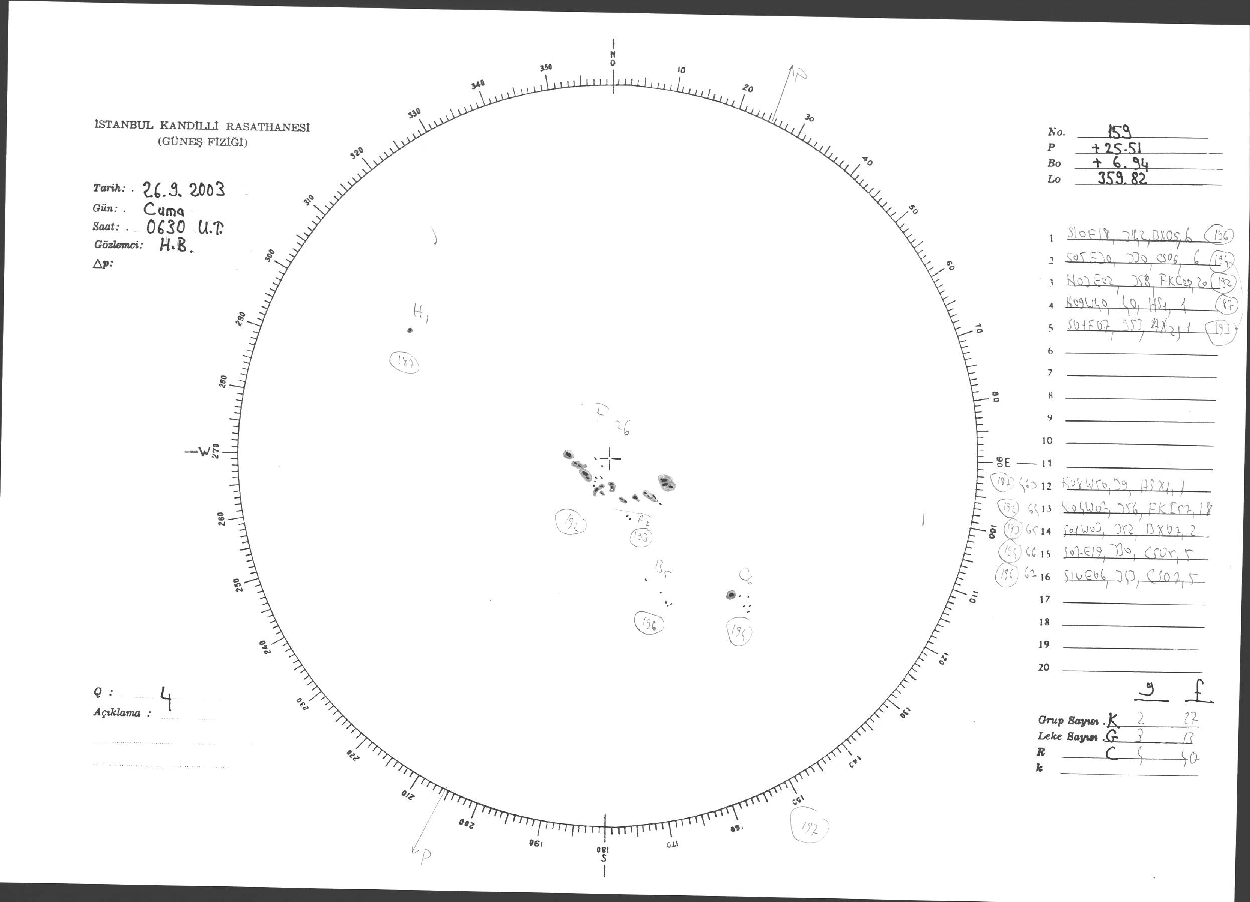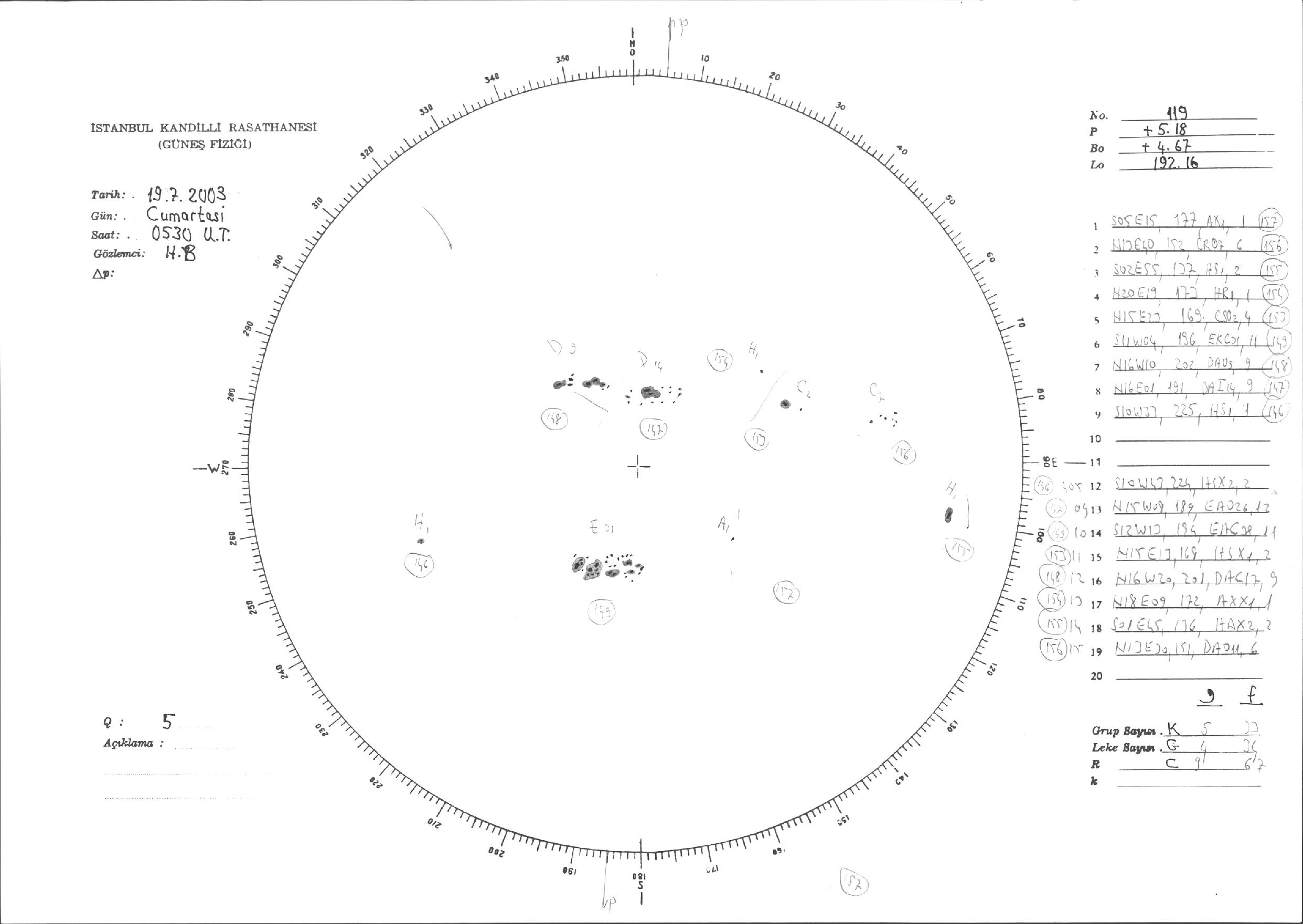 Güneş Lekesi Çizimleri / Kandilli Sunspot Drawings