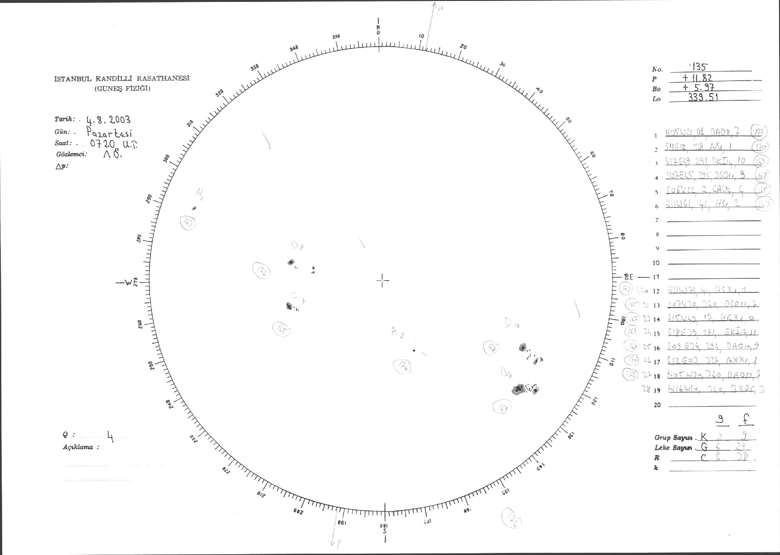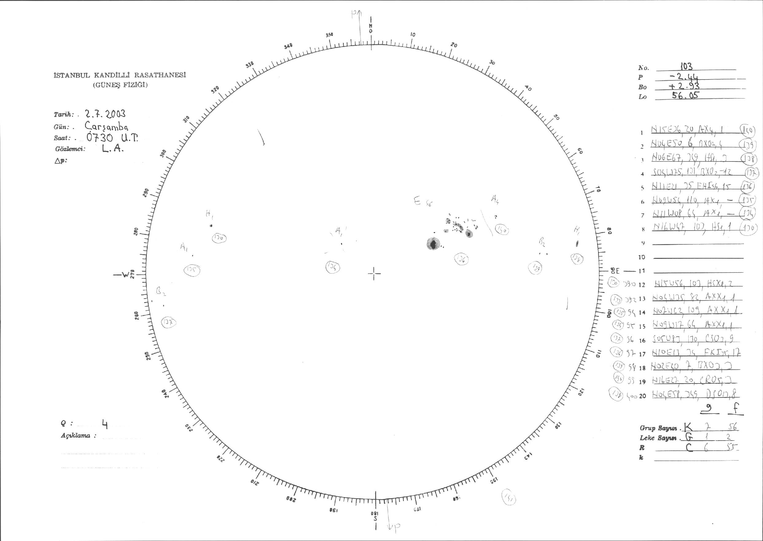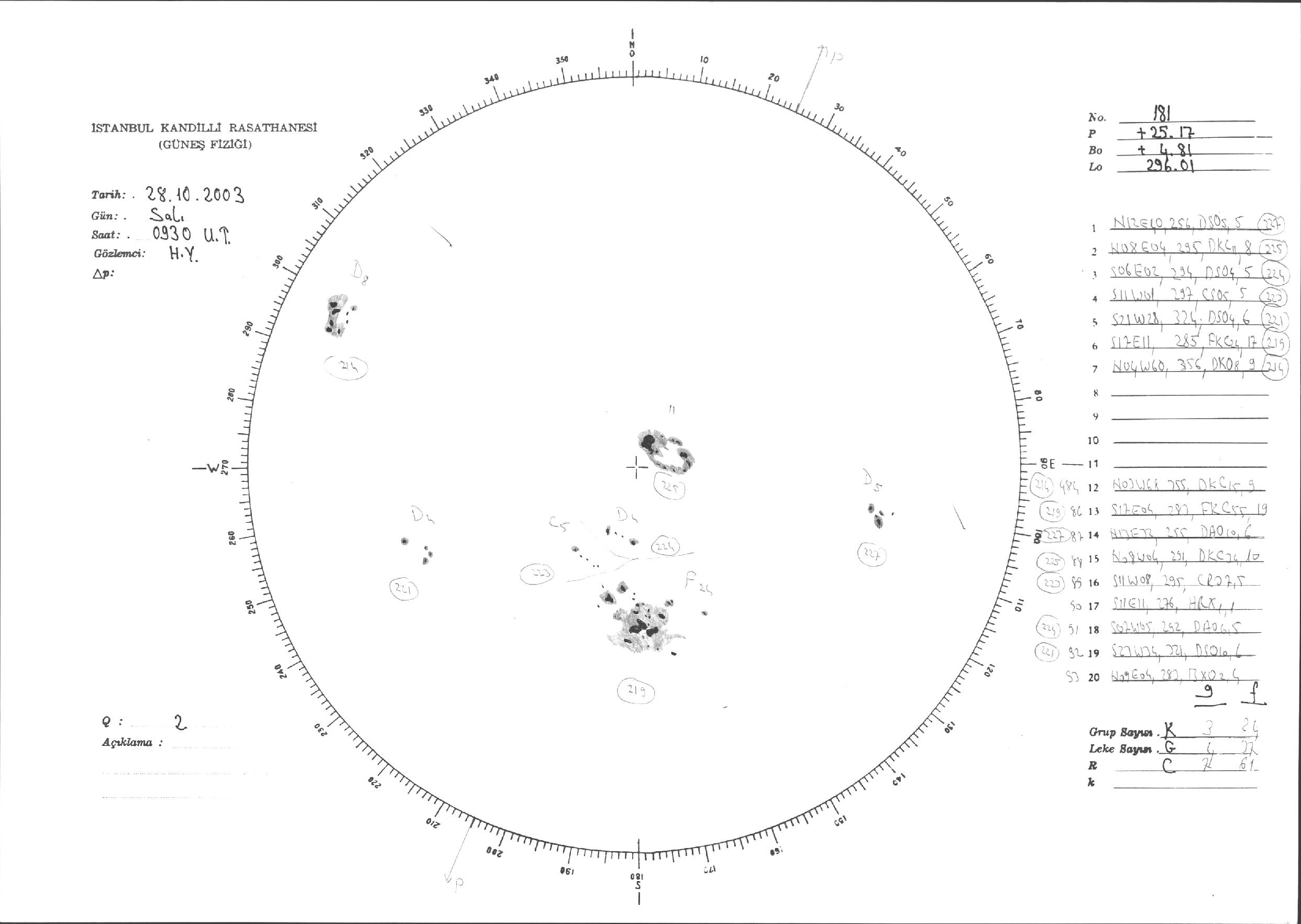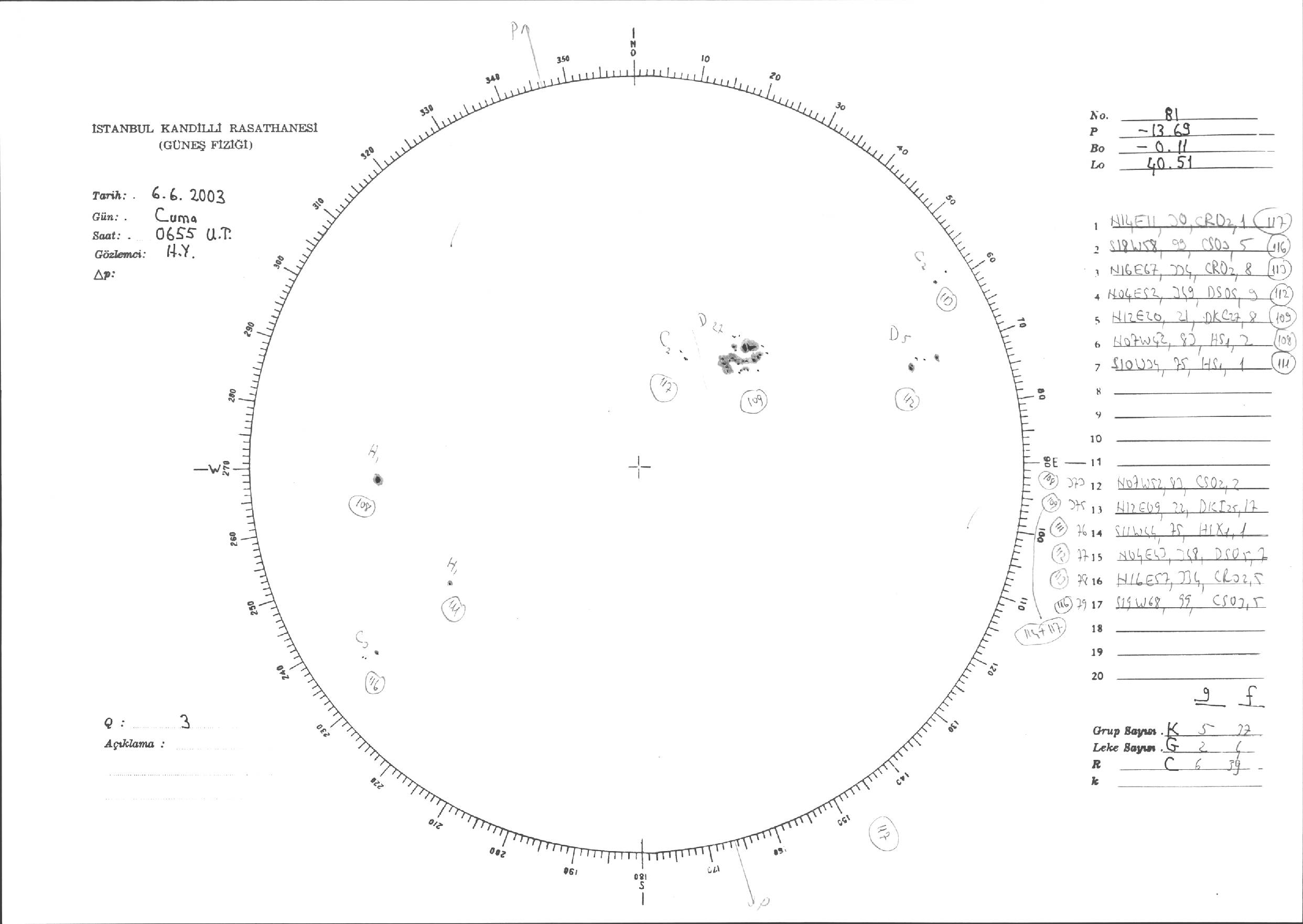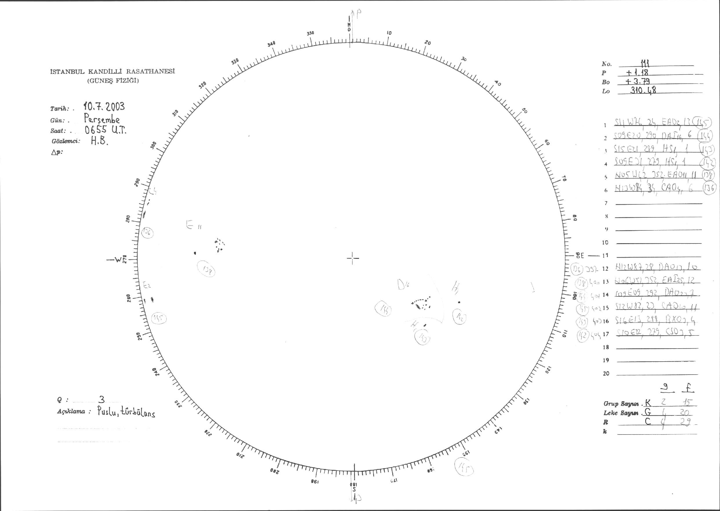 Güneş Lekesi Çizimleri / Kandilli Sunspot Drawings