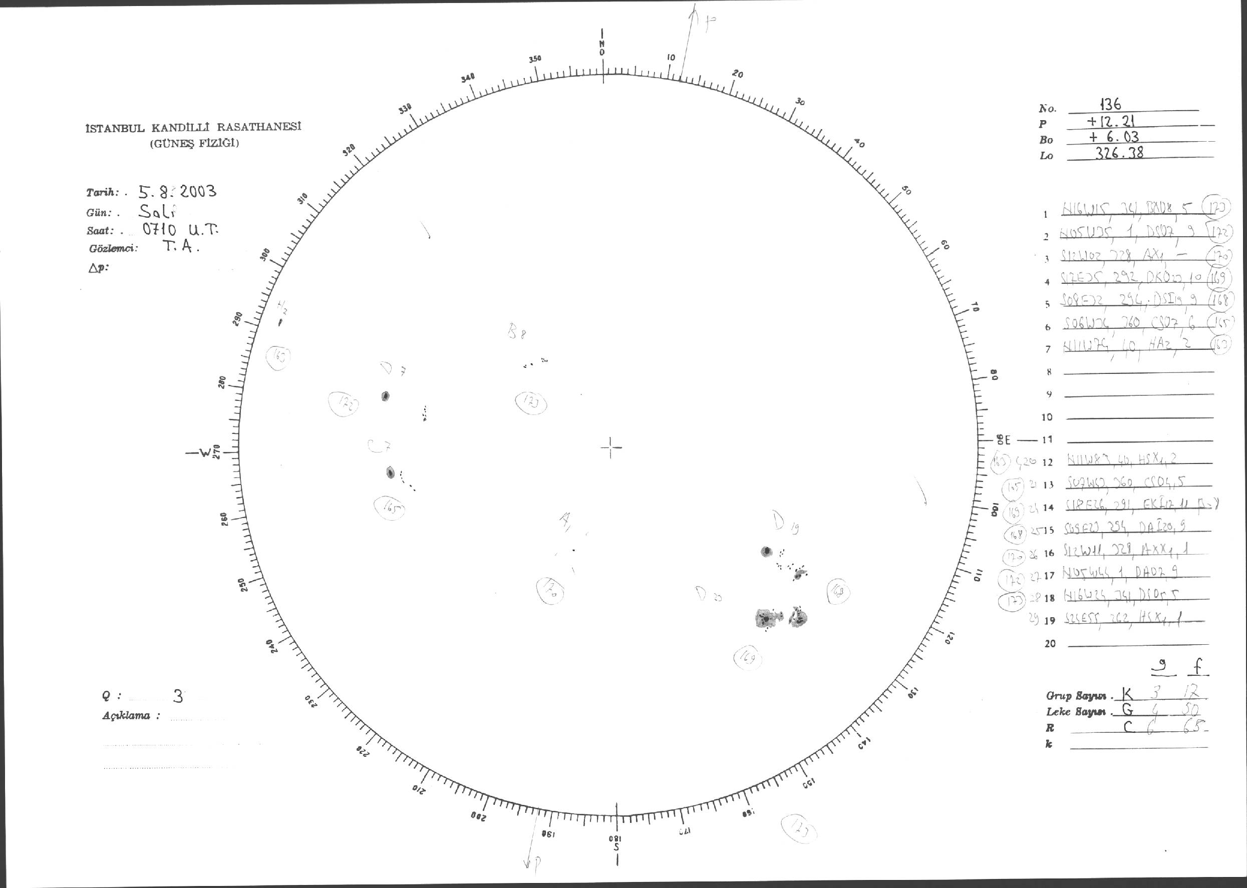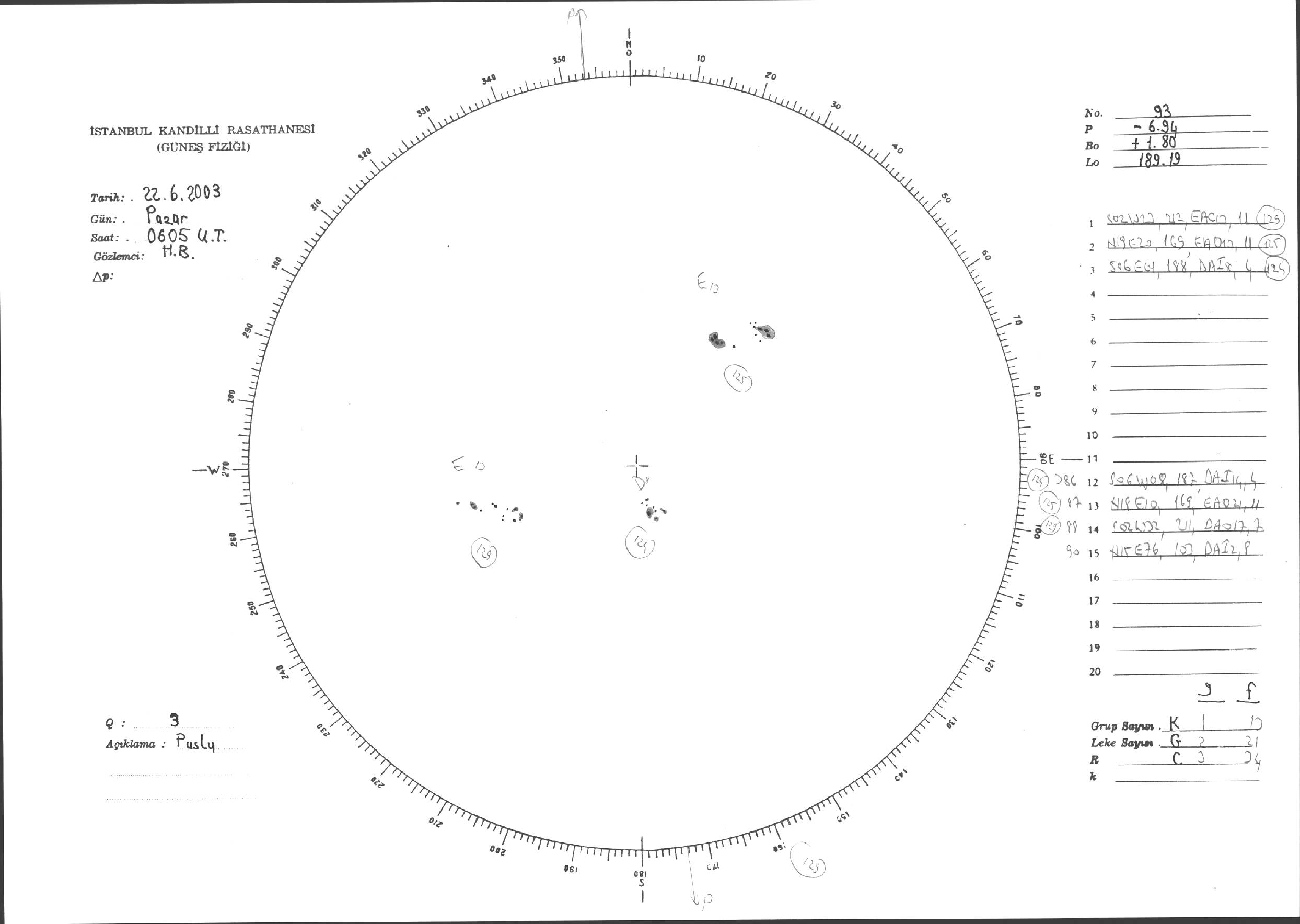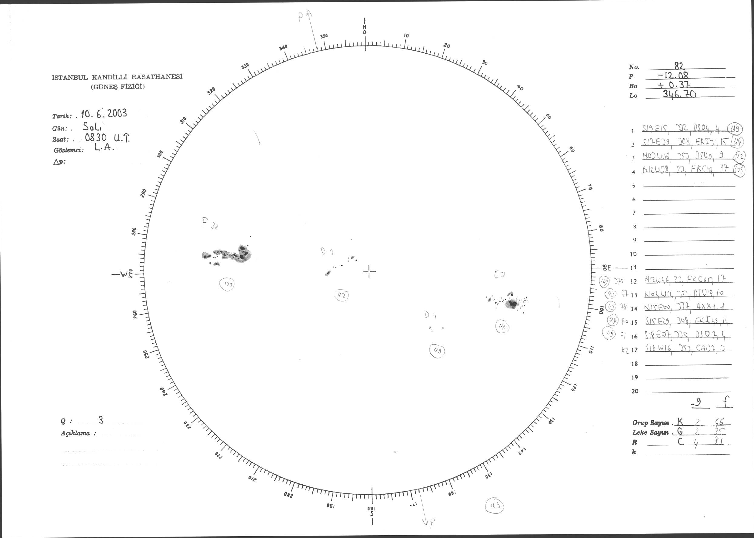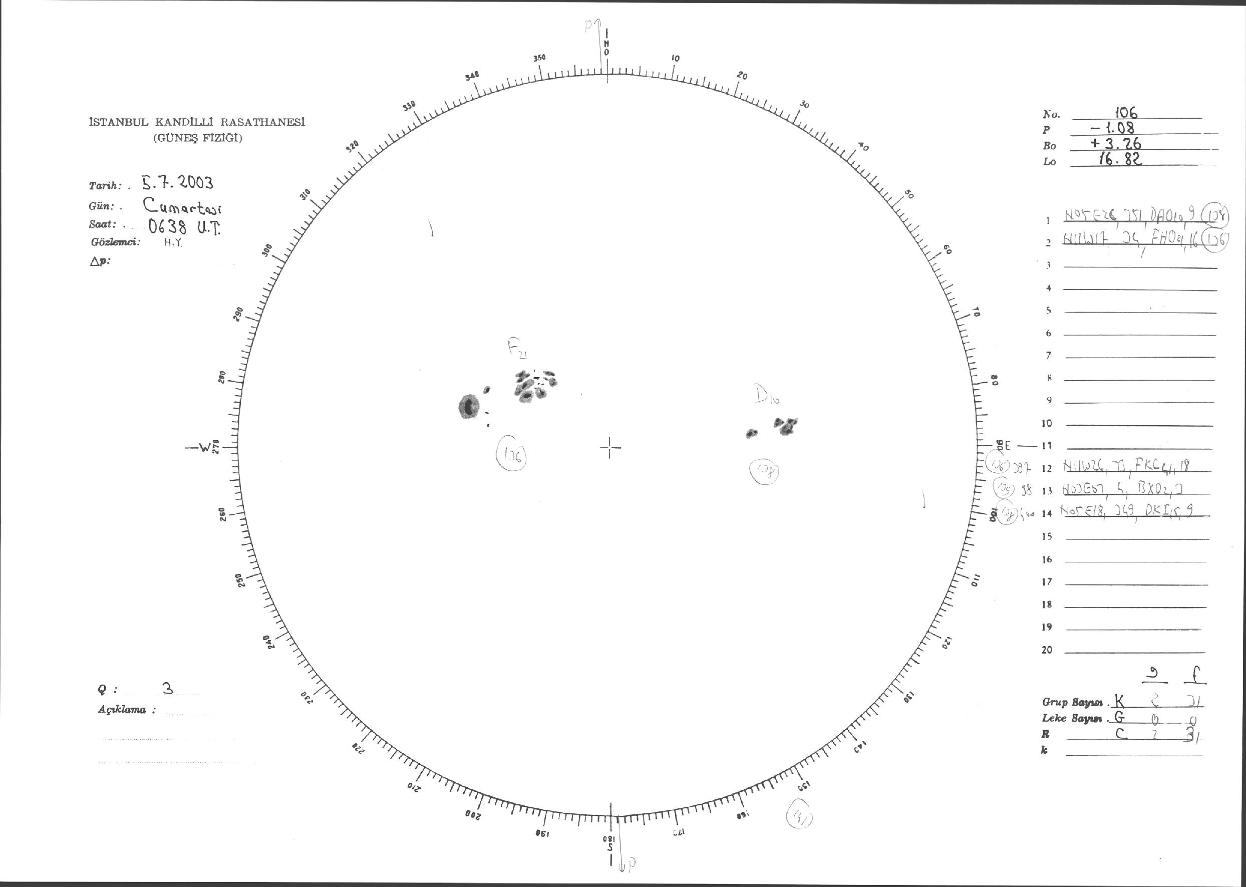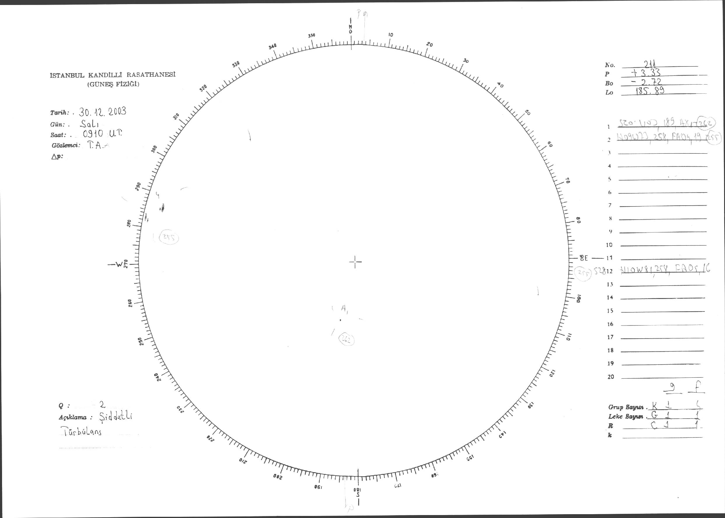 Güneş Lekesi Çizimleri / Kandilli Sunspot Drawings