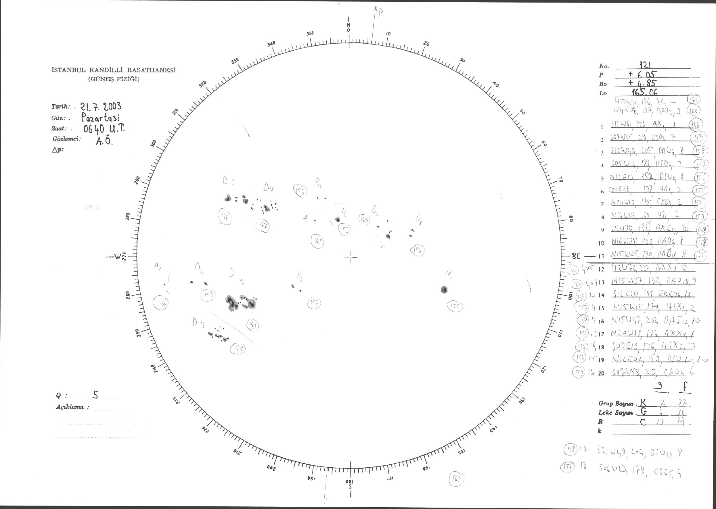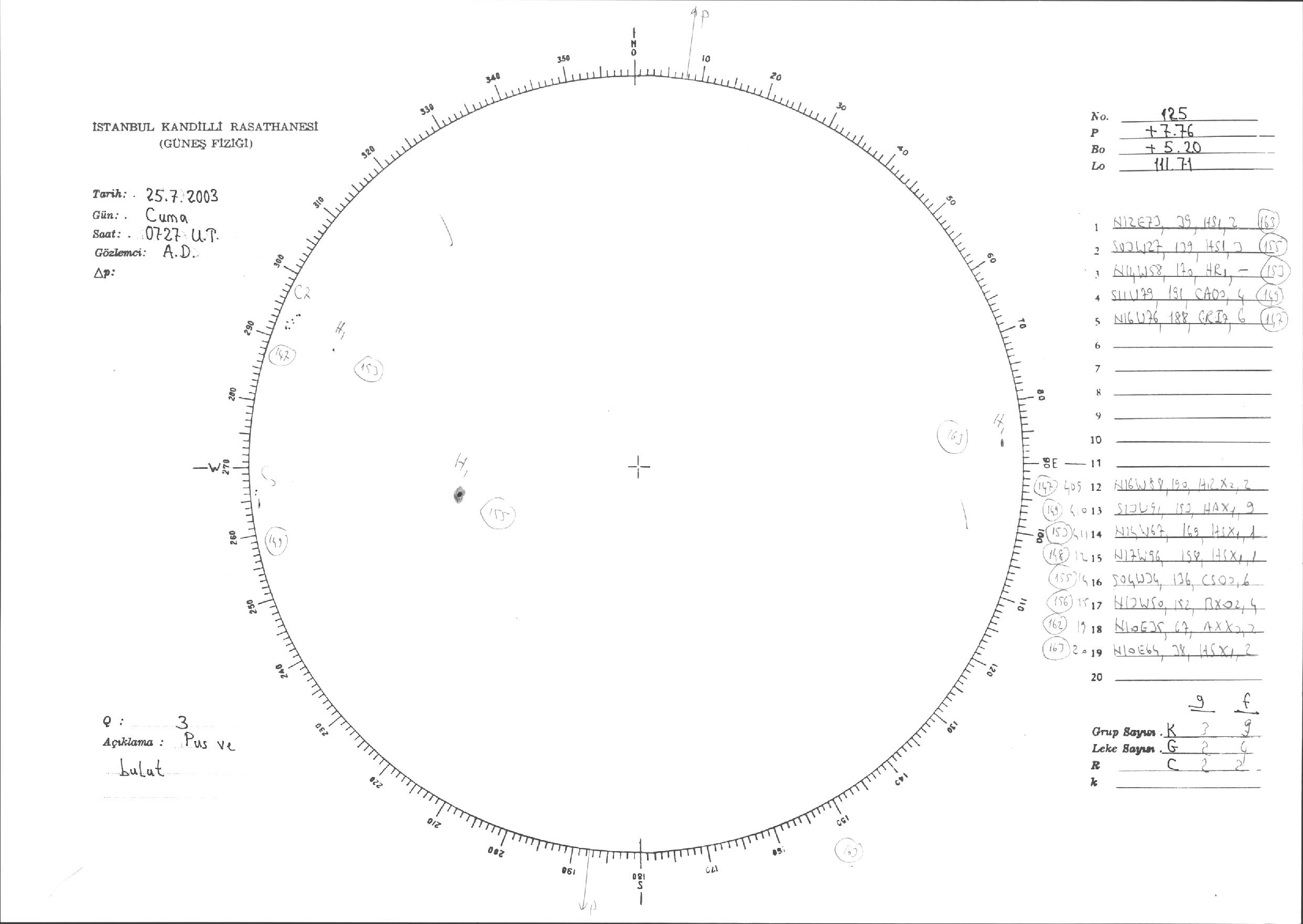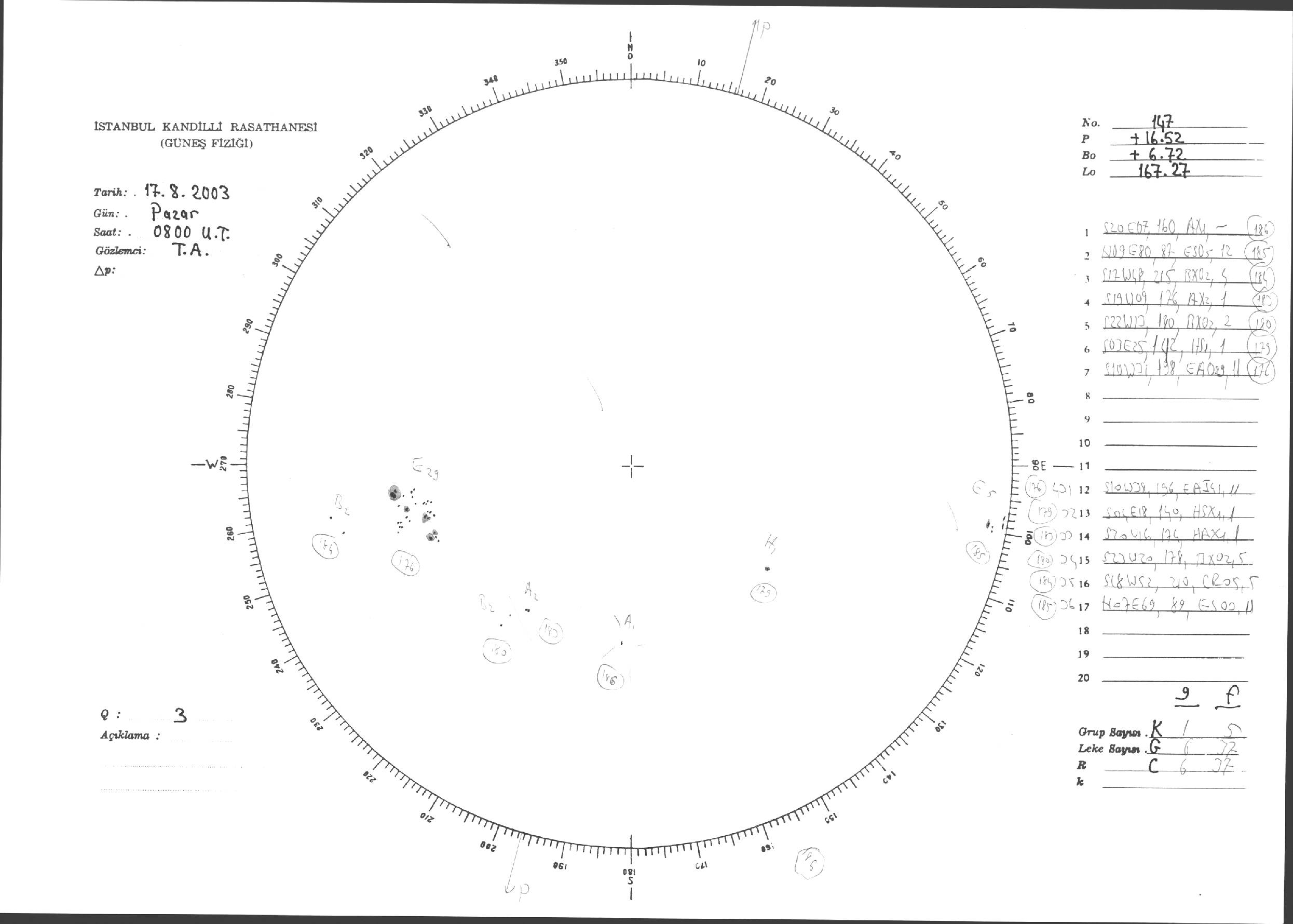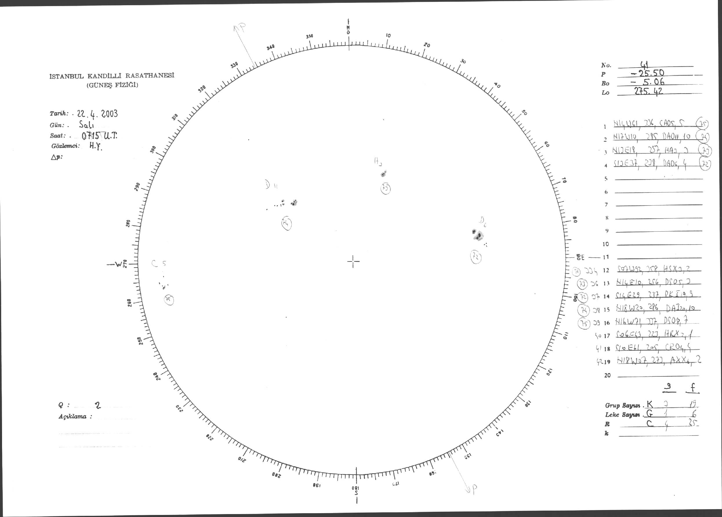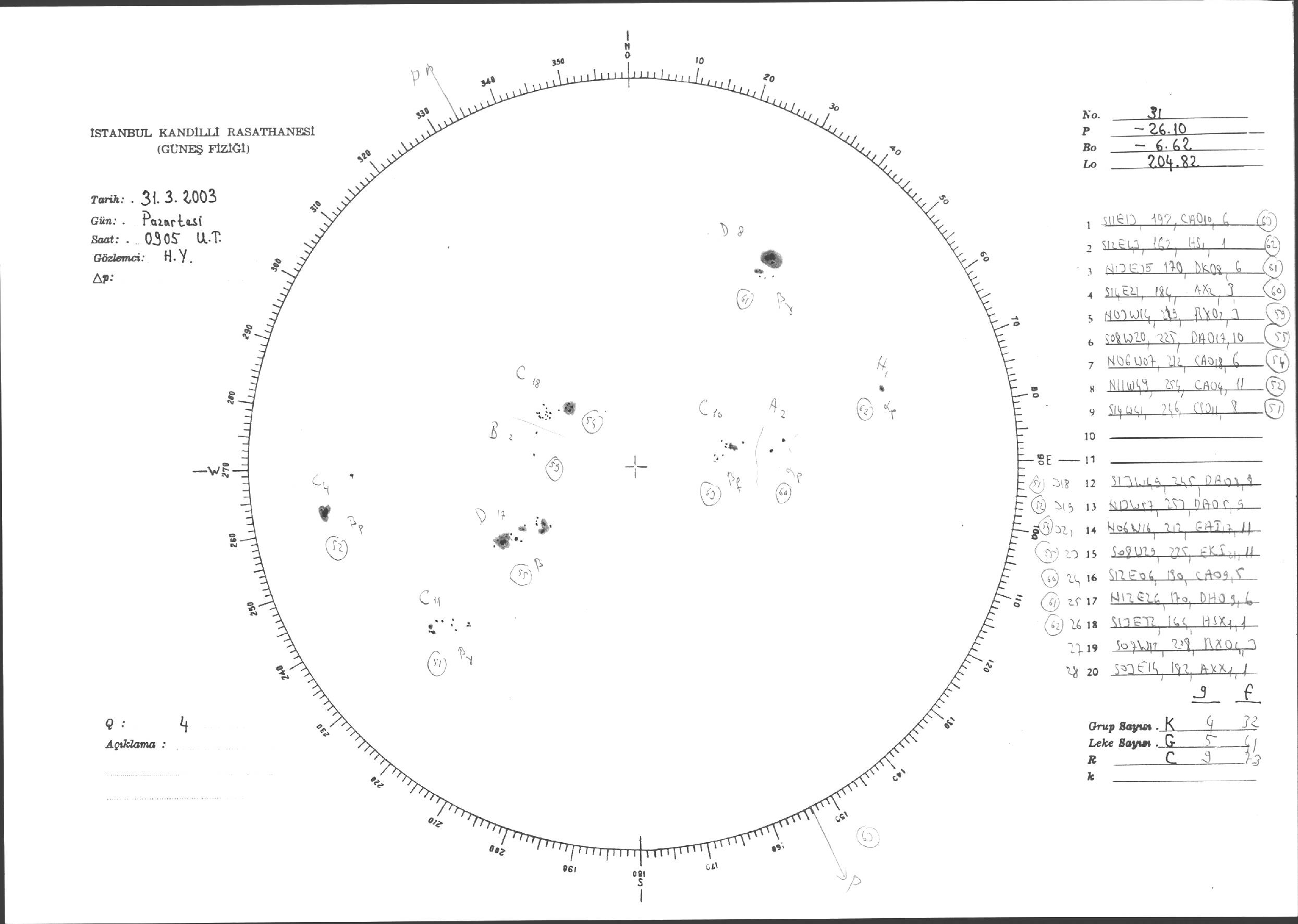 Güneş Lekesi Çizimleri / Kandilli Sunspot Drawings