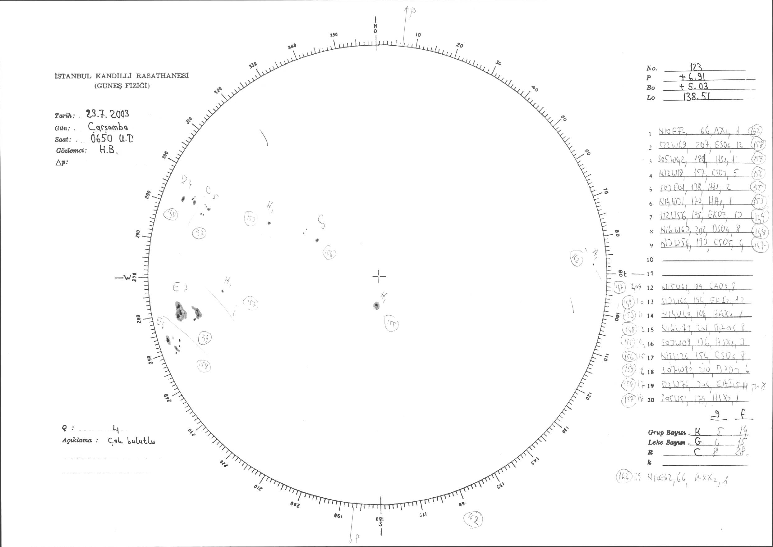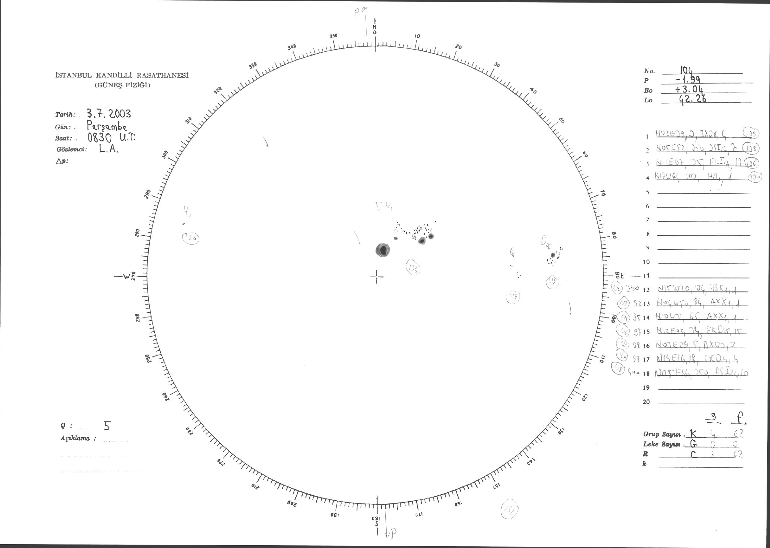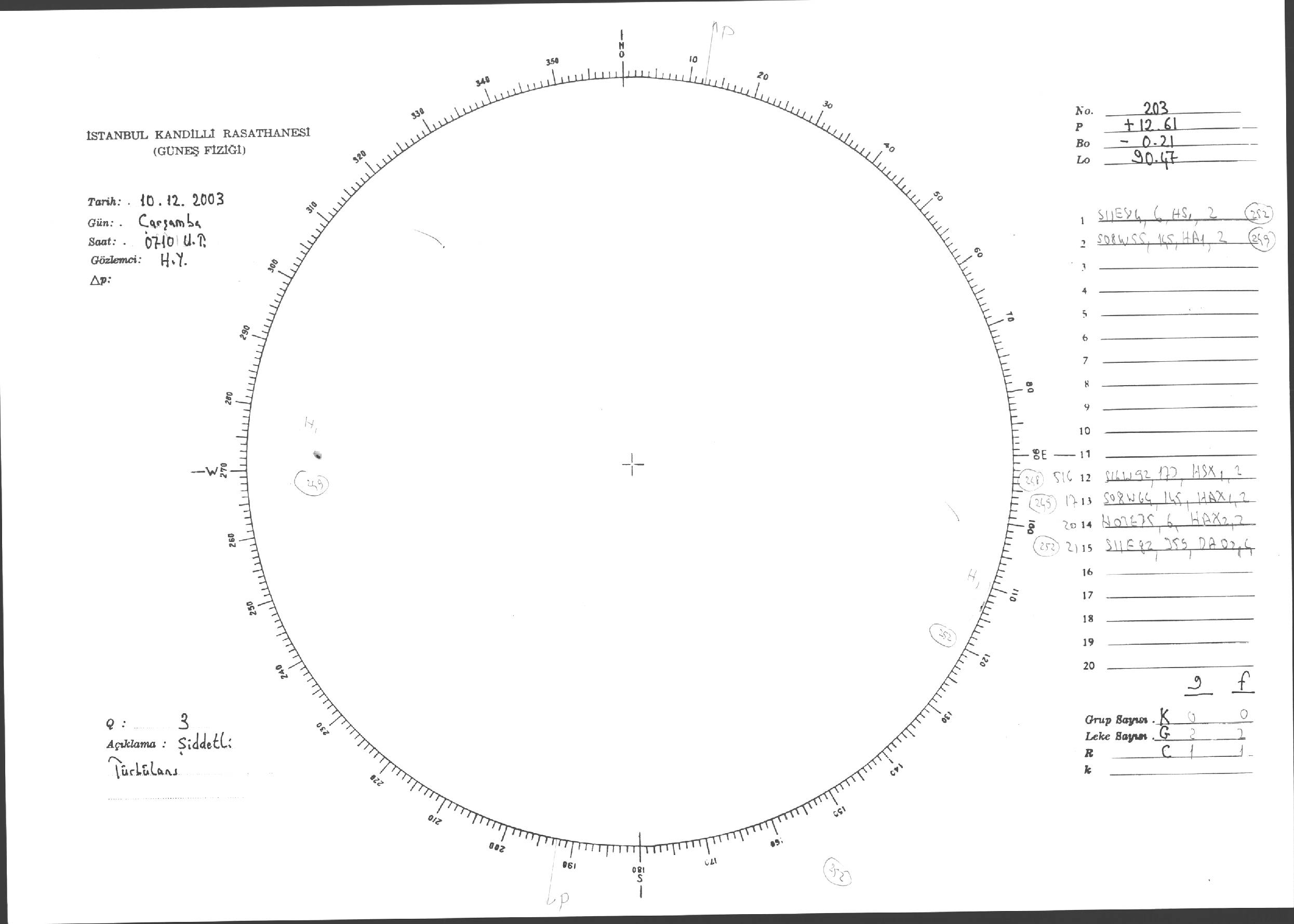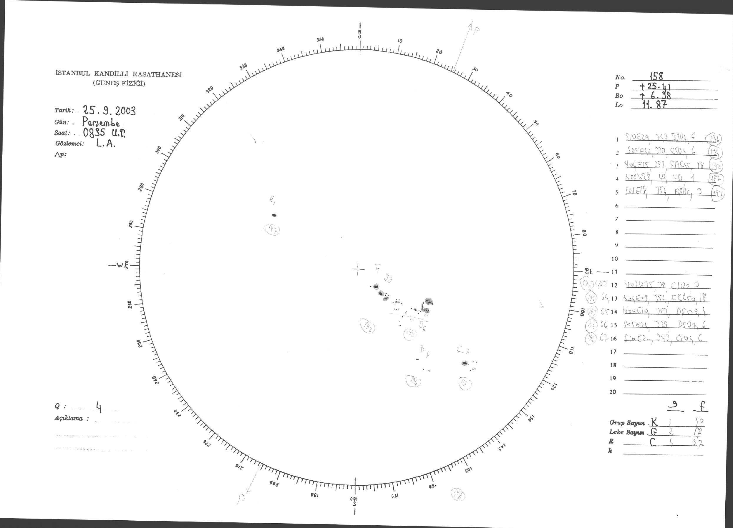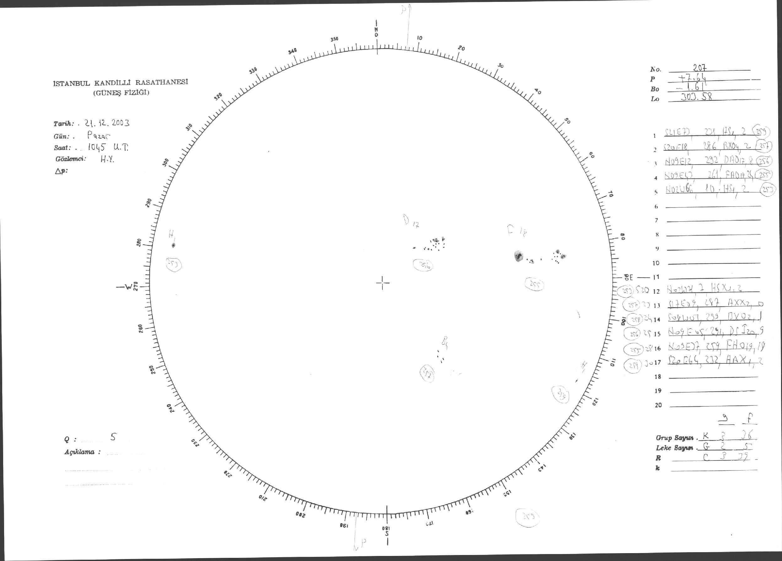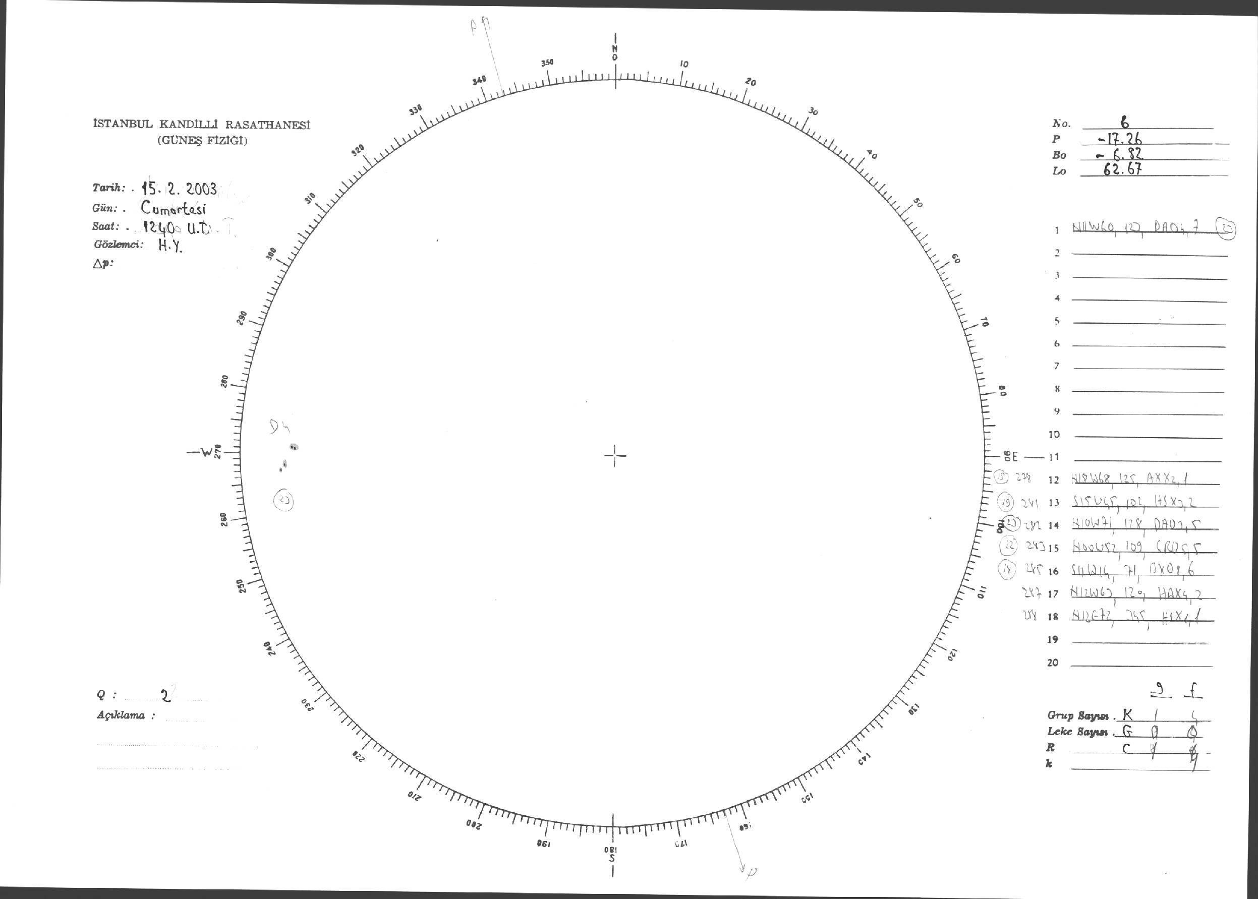 Güneş Lekesi Çizimleri / Kandilli Sunspot Drawings