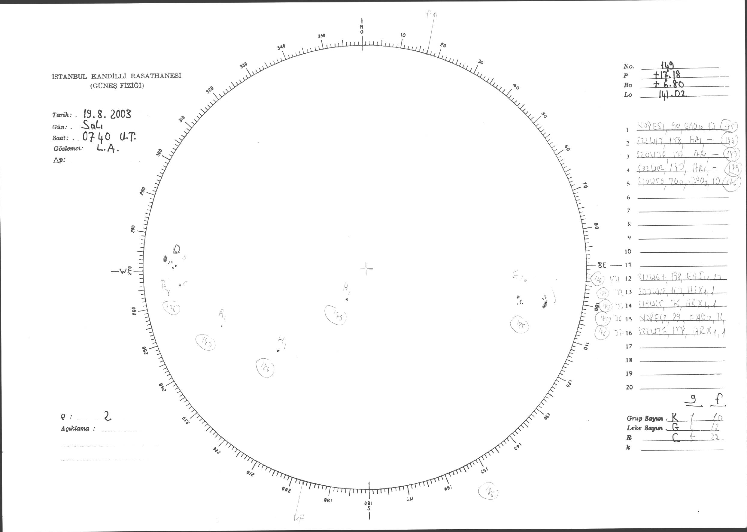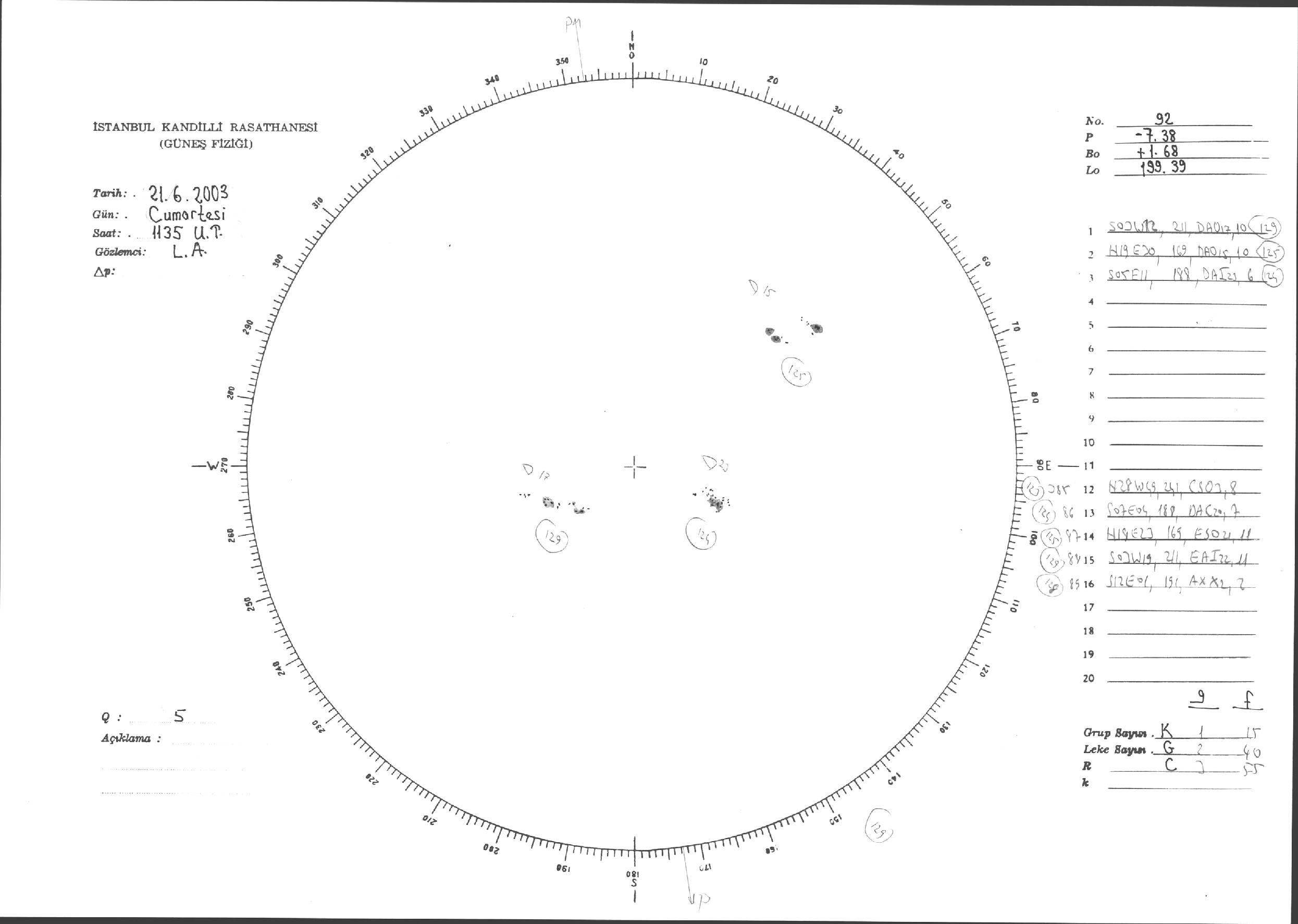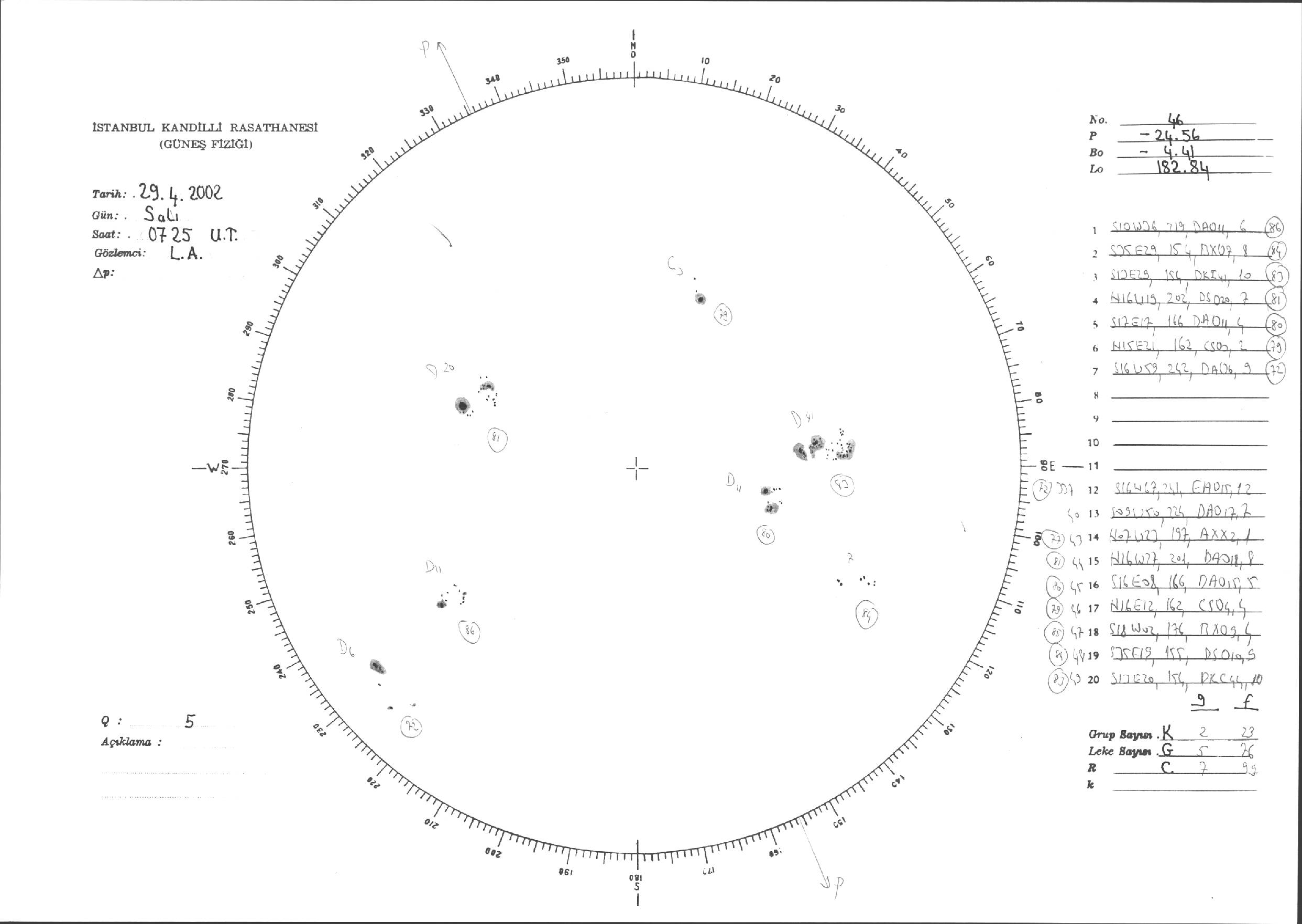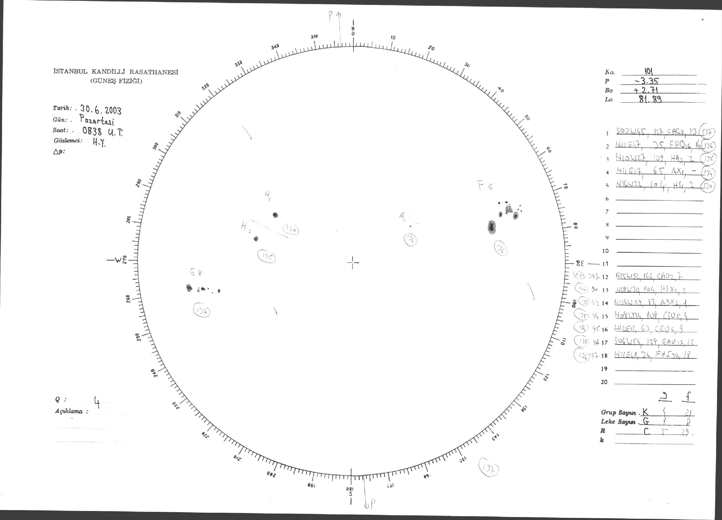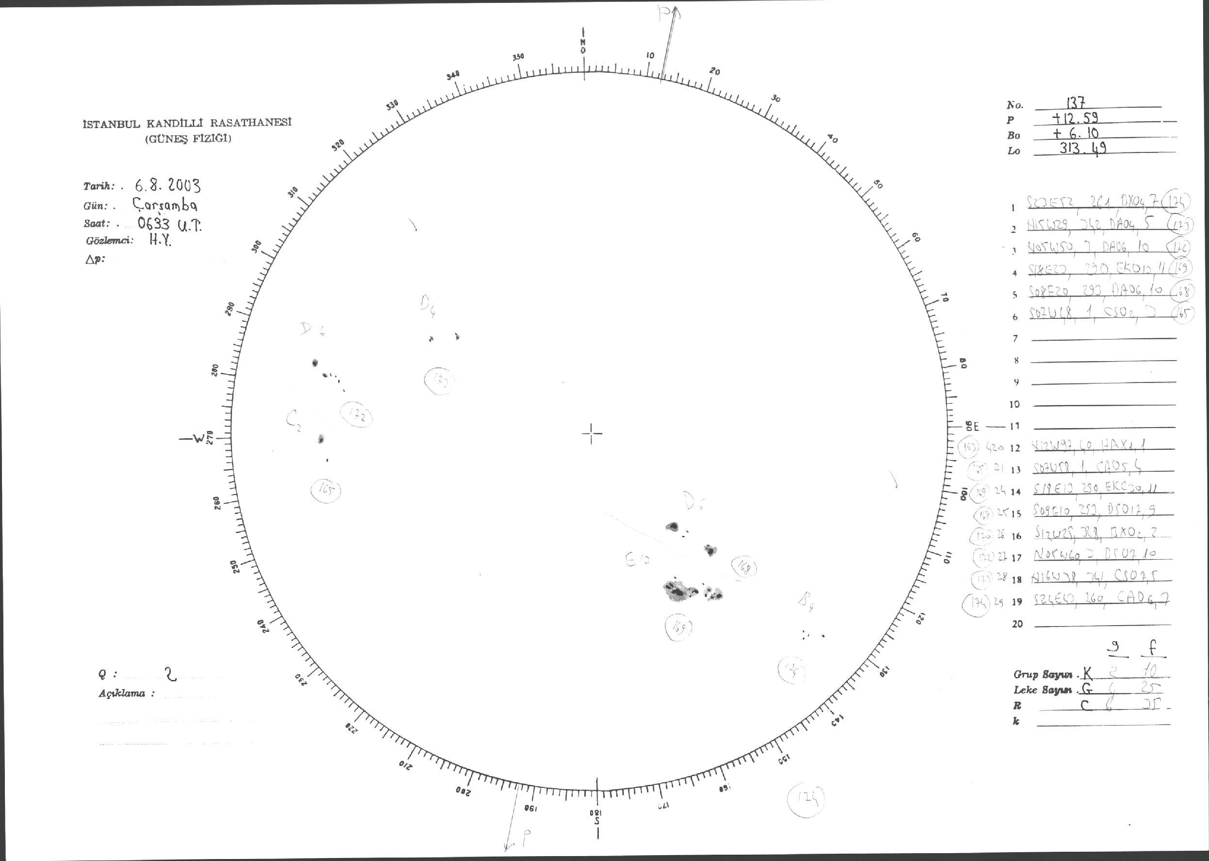 Güneş Lekesi Çizimleri / Kandilli Sunspot Drawings