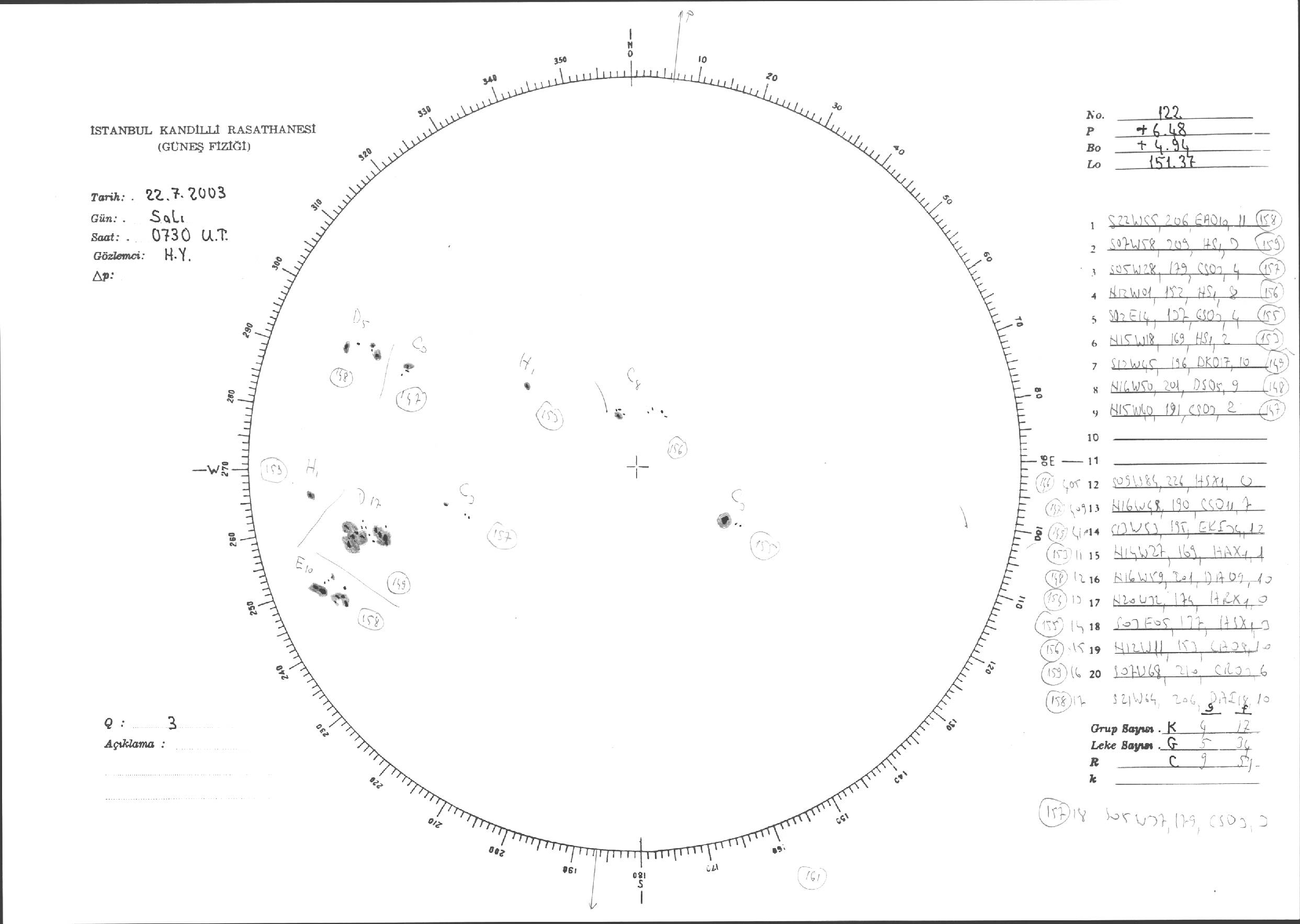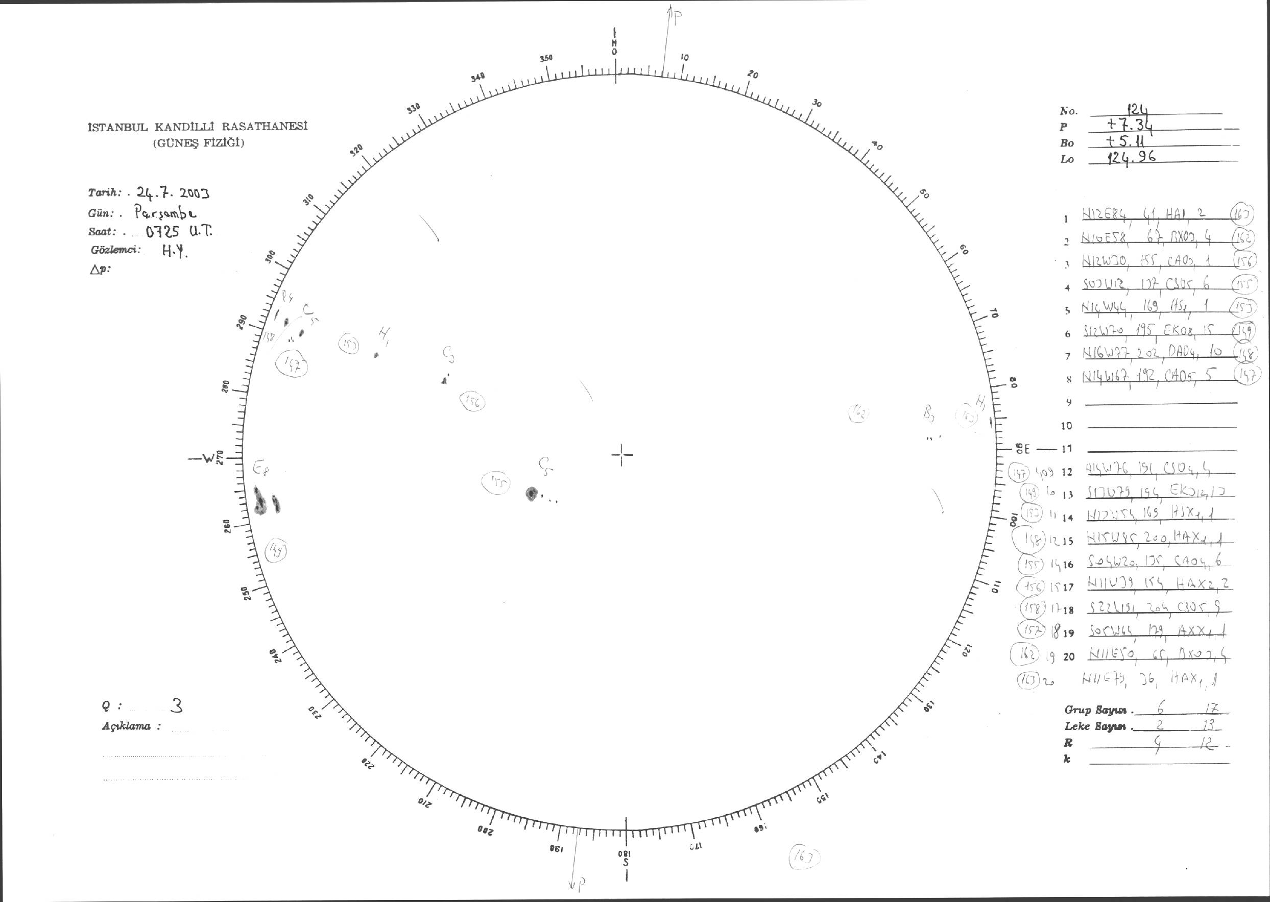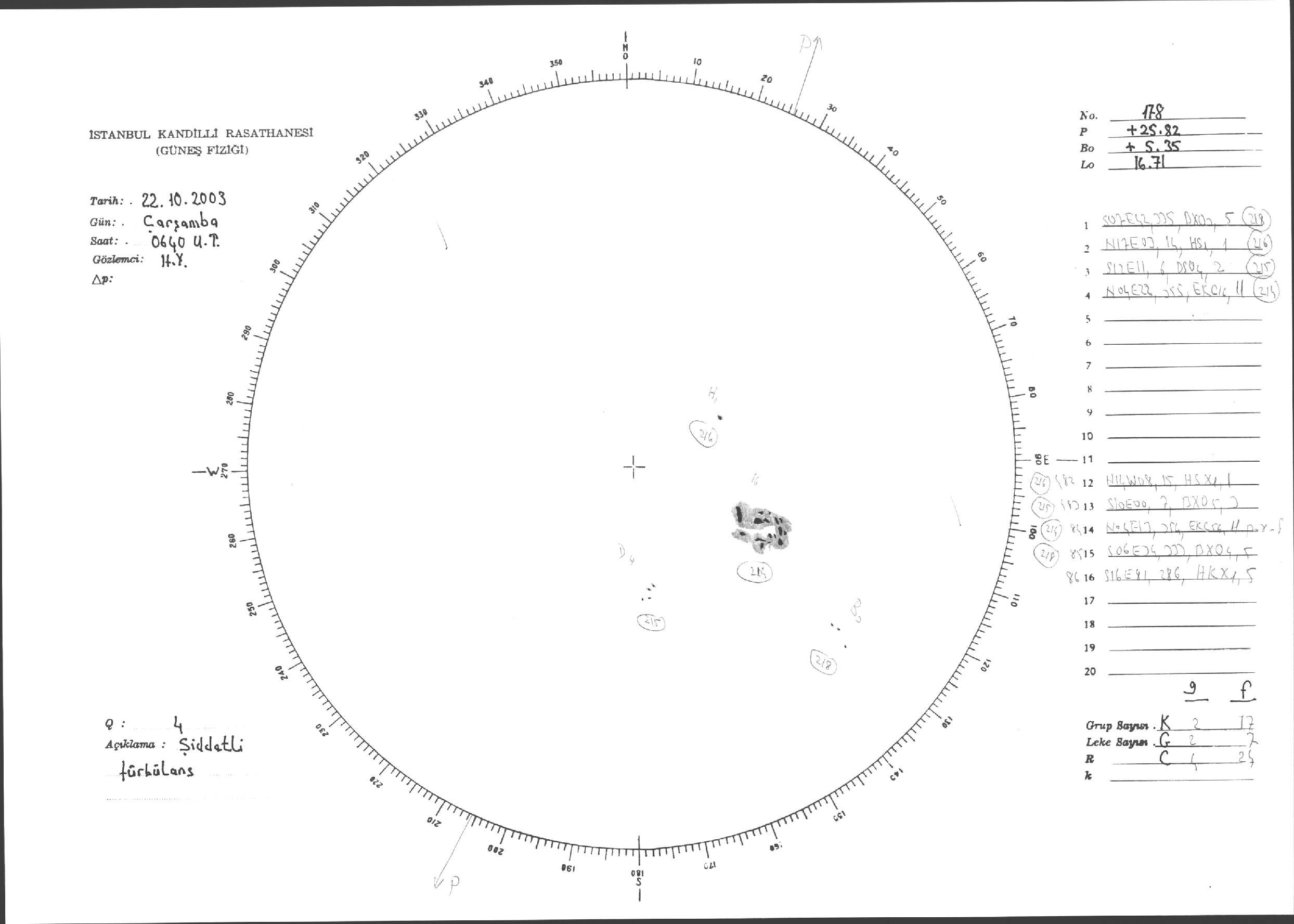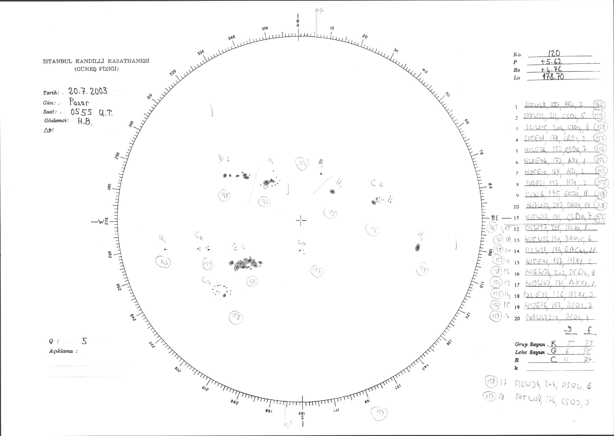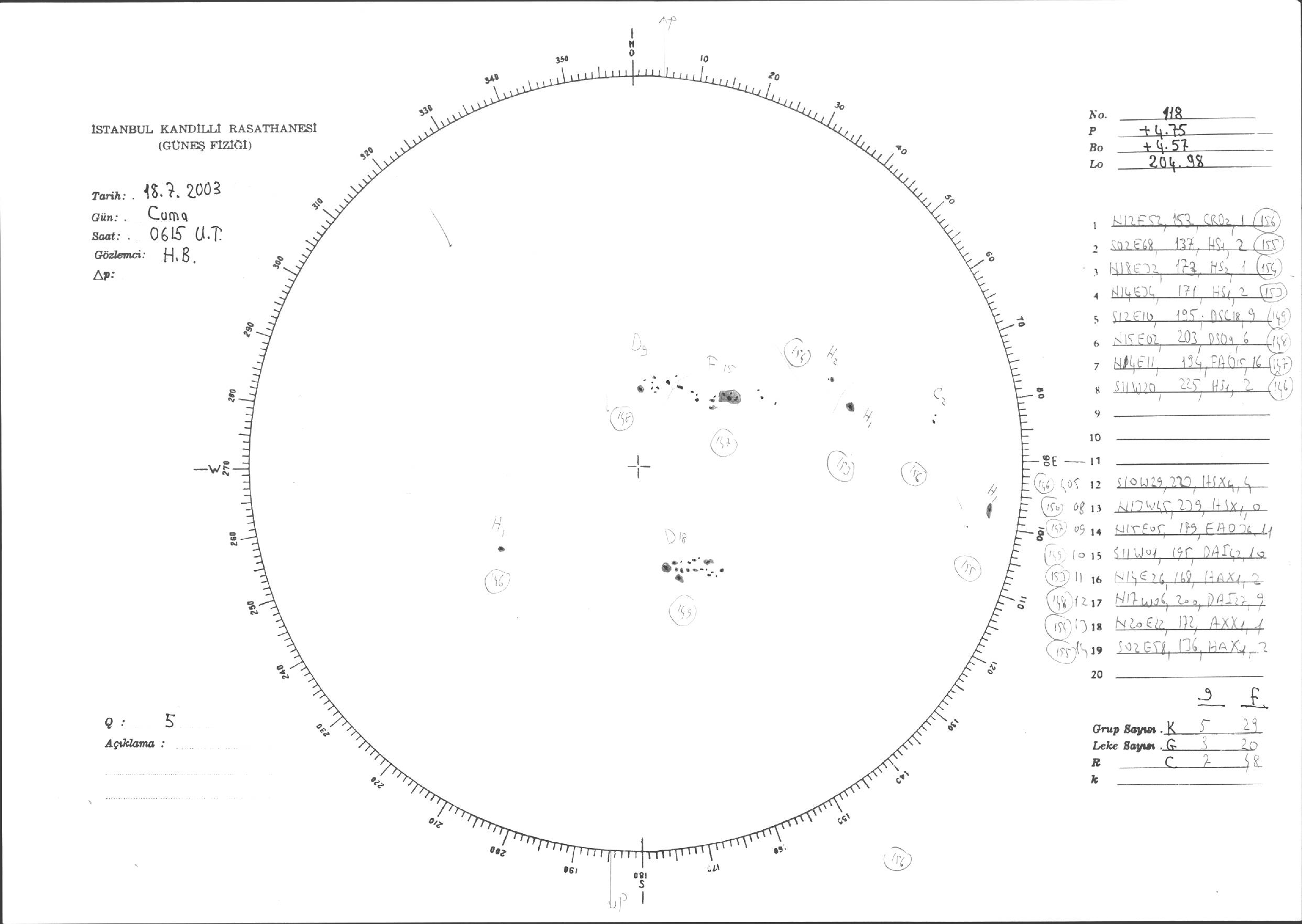 Güneş Lekesi Çizimleri / Kandilli Sunspot Drawings