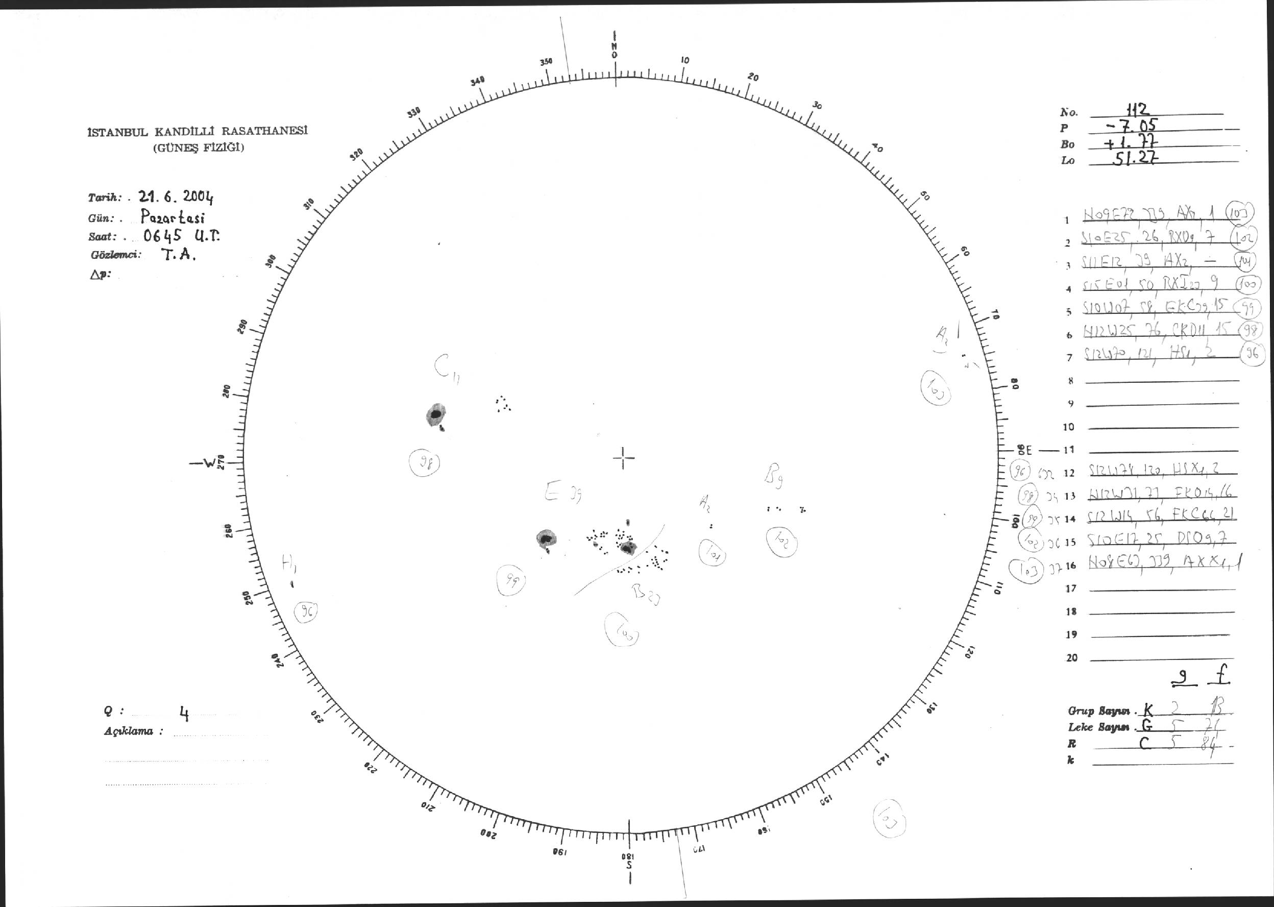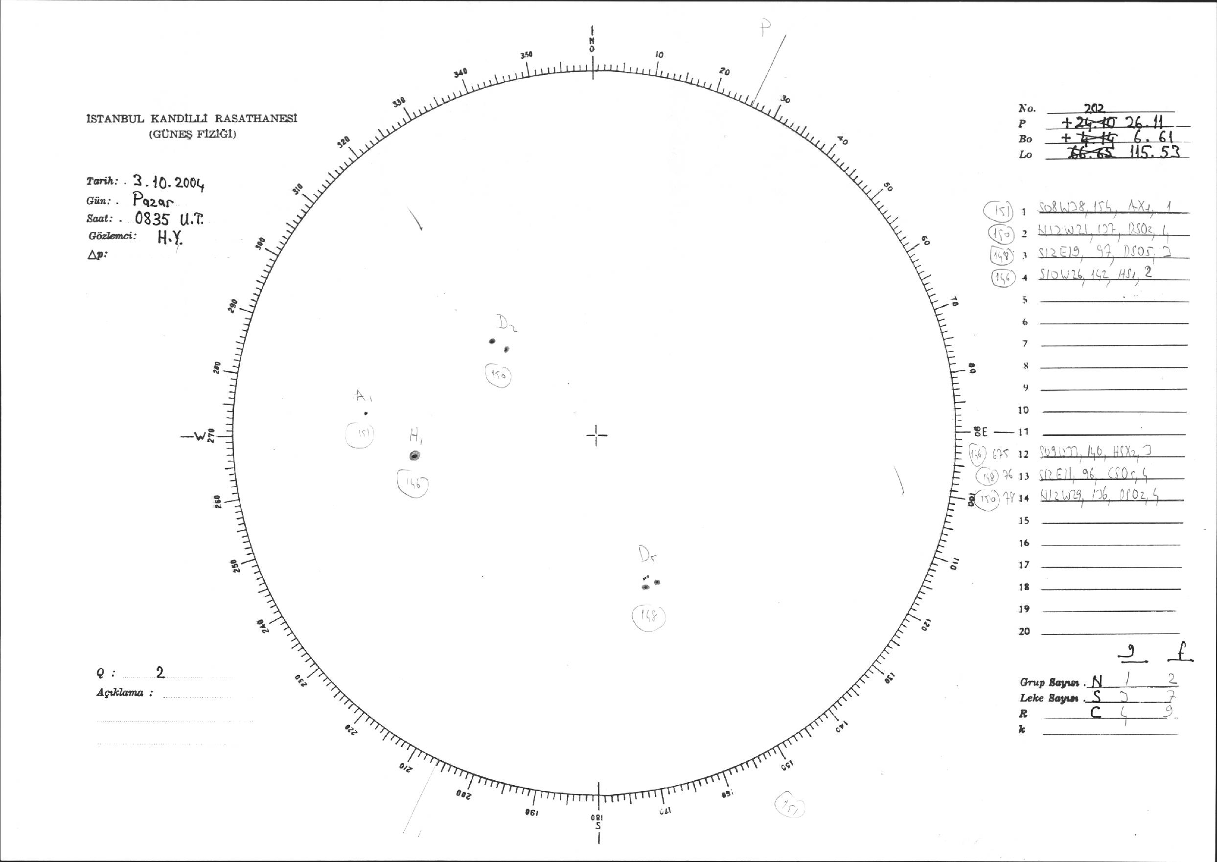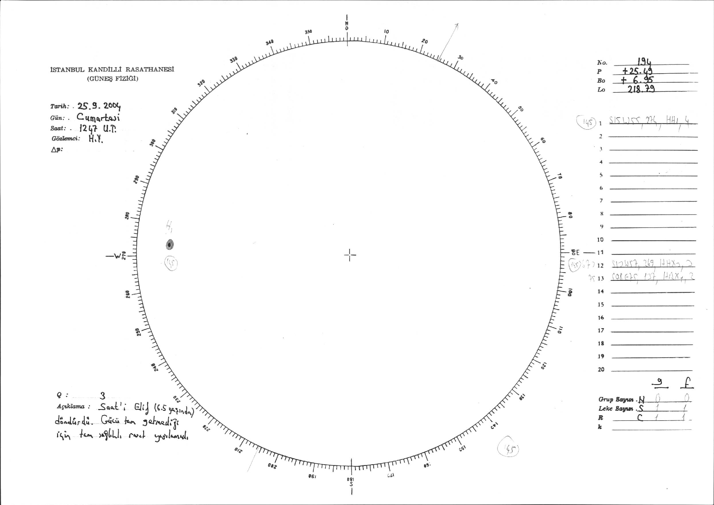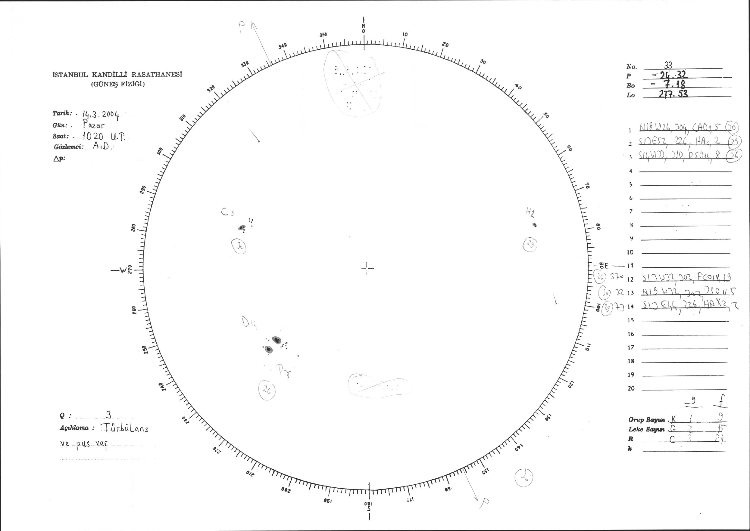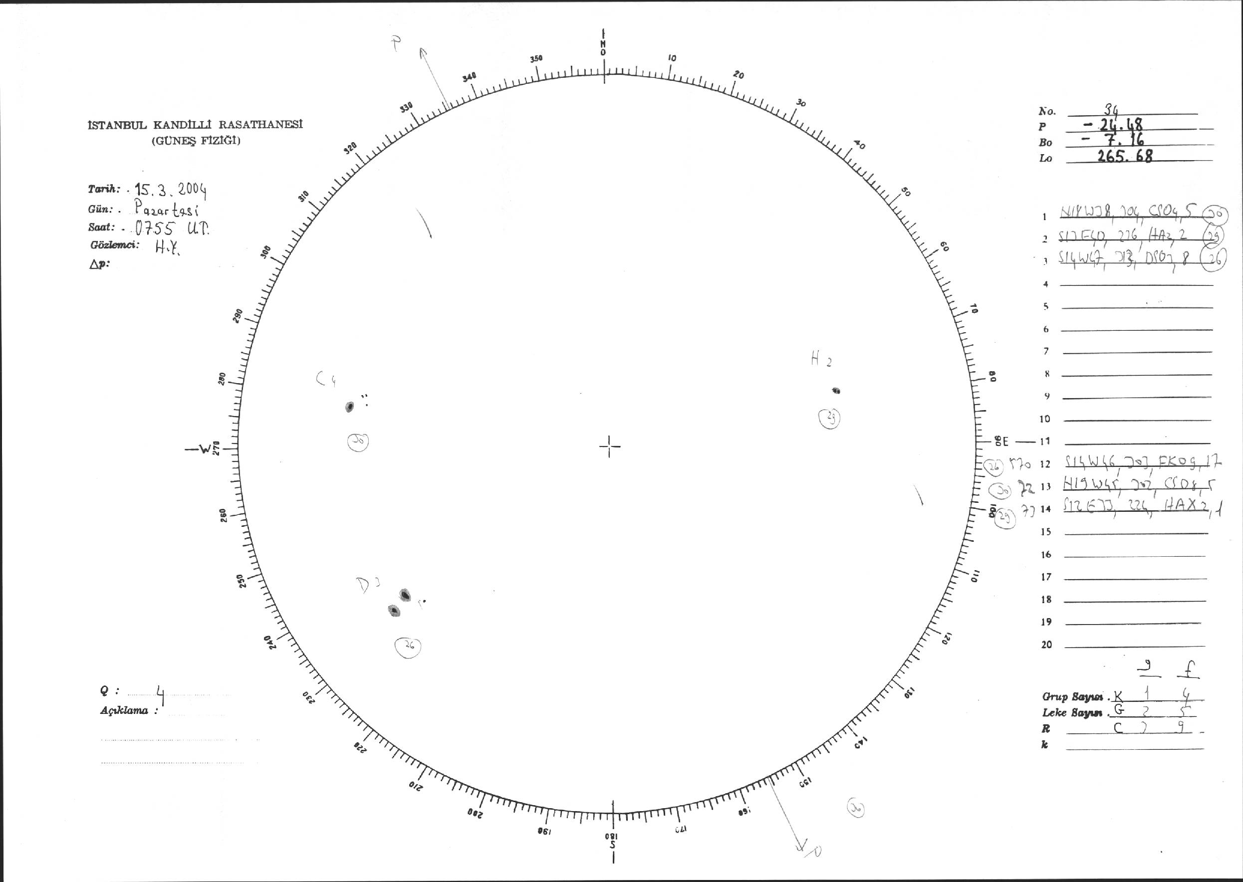 Güneş Lekesi Çizimleri / Kandilli Sunspot Drawings