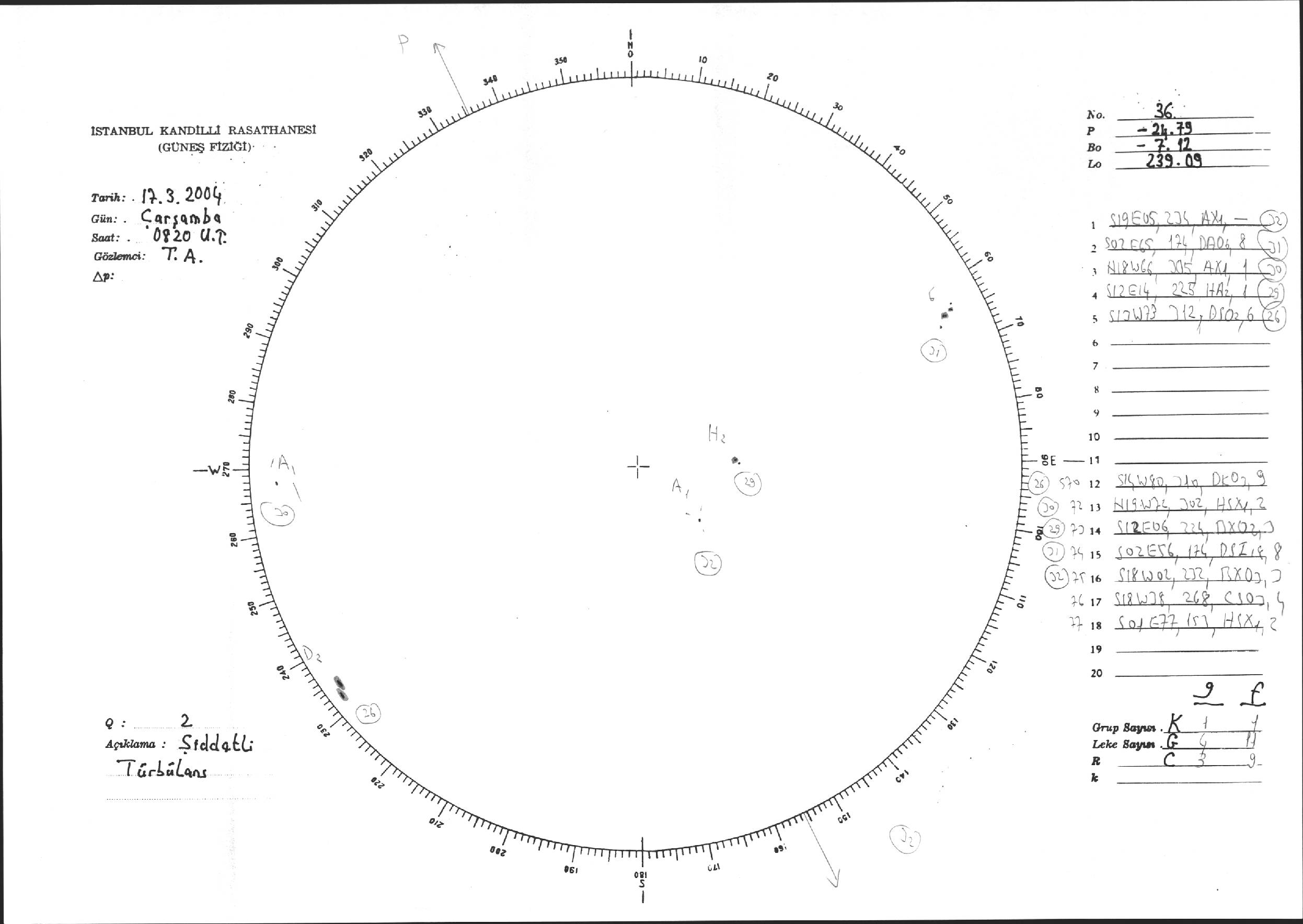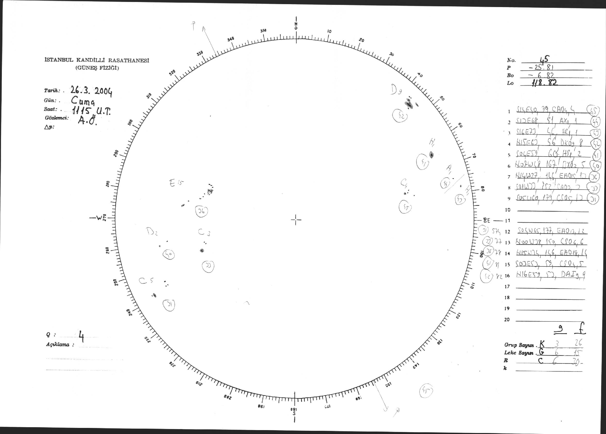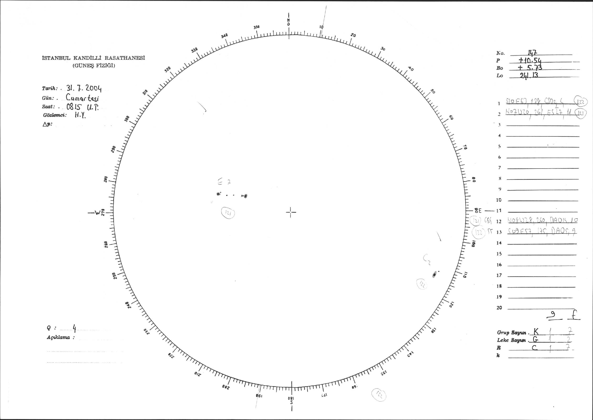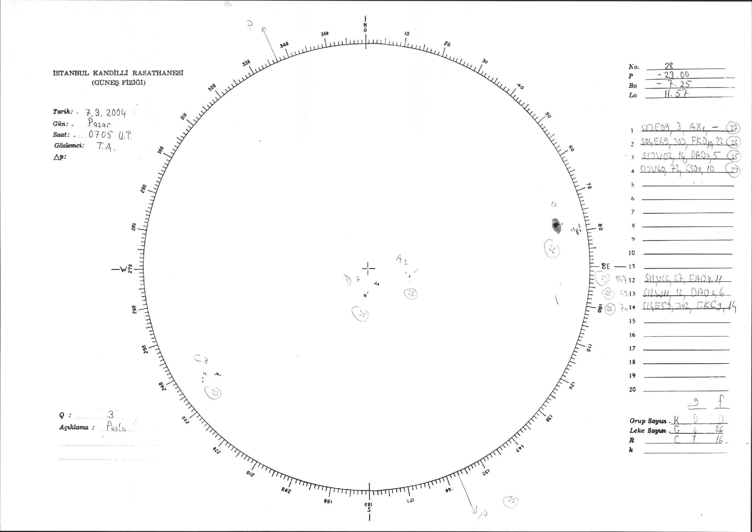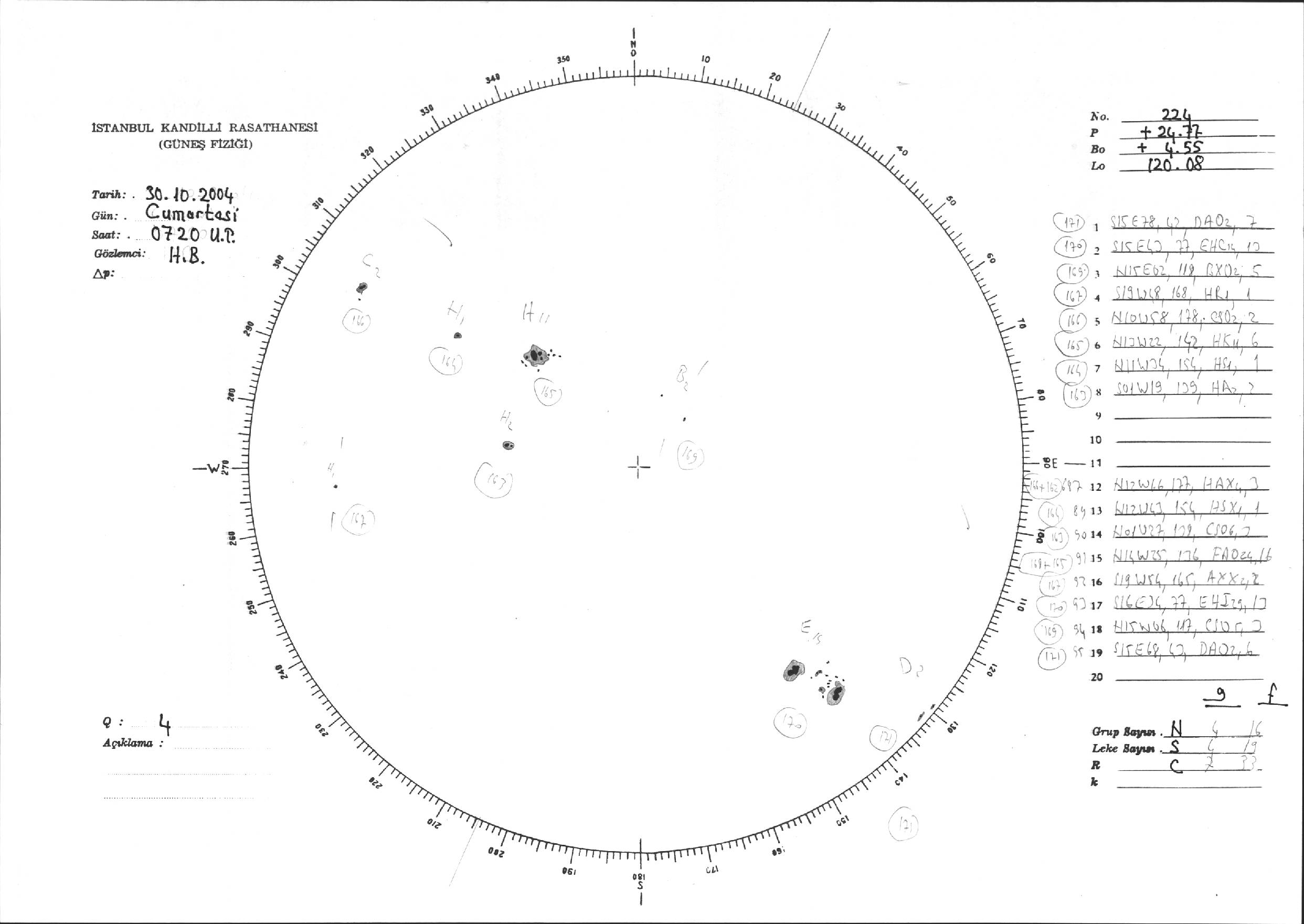 Güneş Lekesi Çizimleri / Kandilli Sunspot Drawings