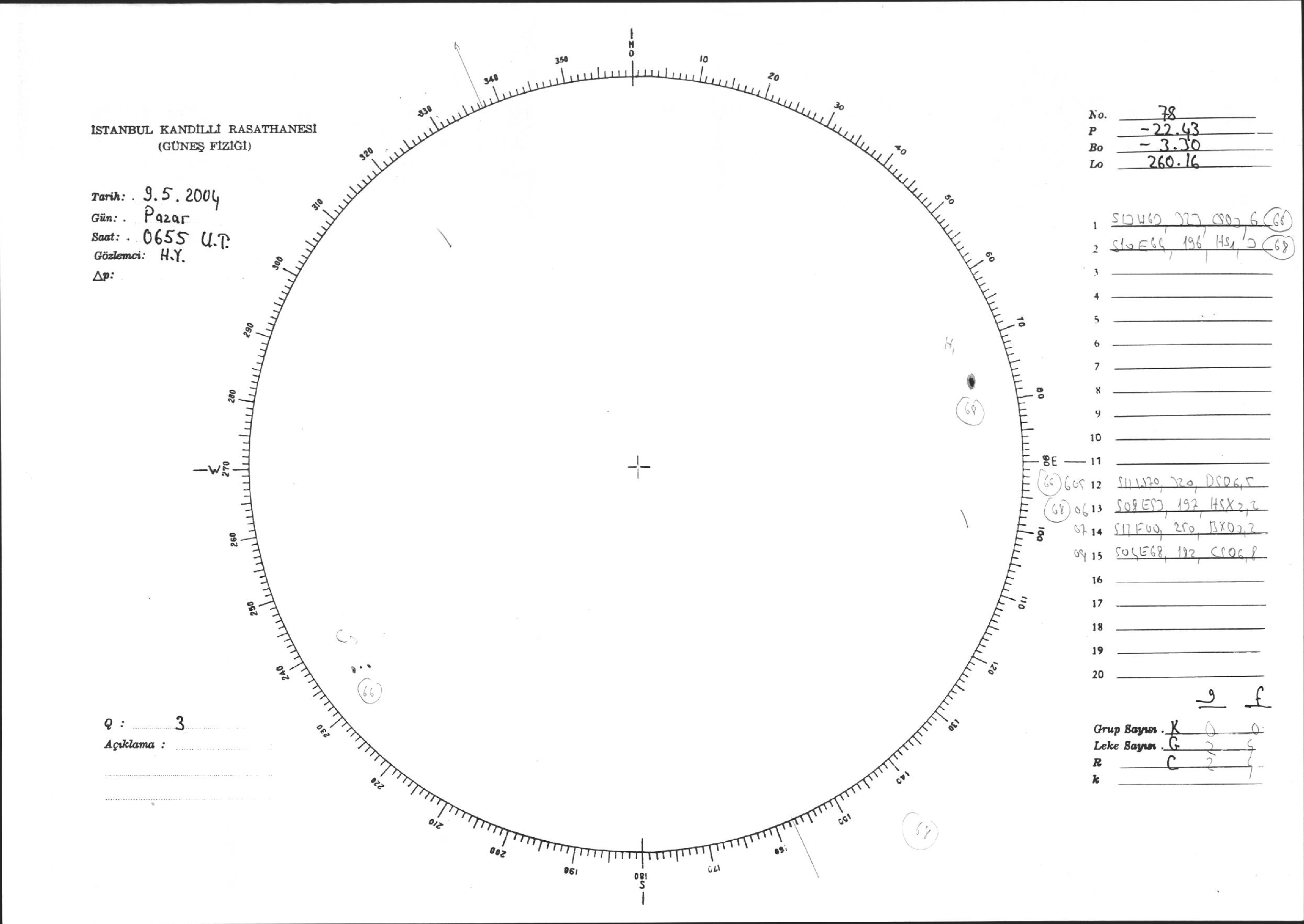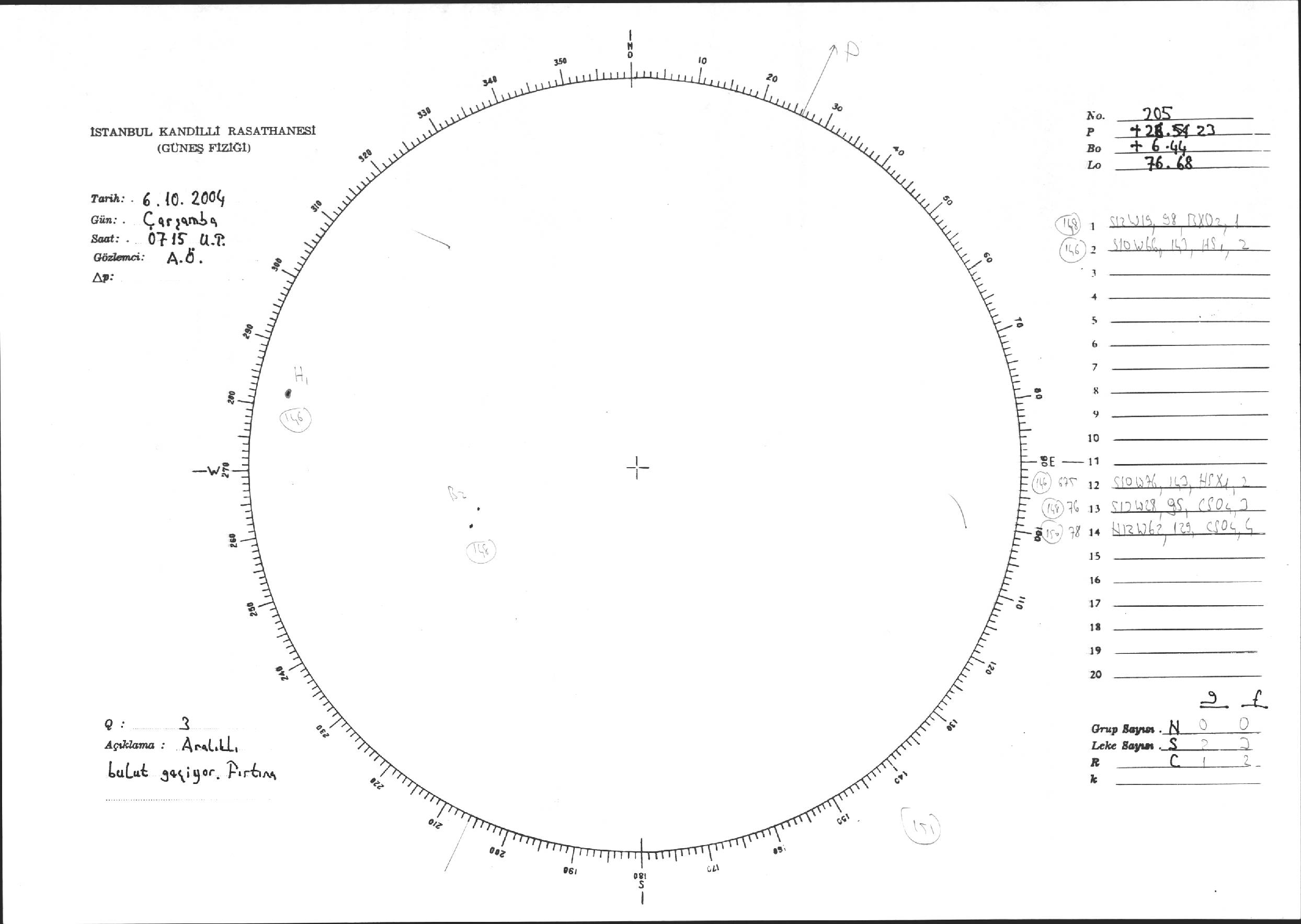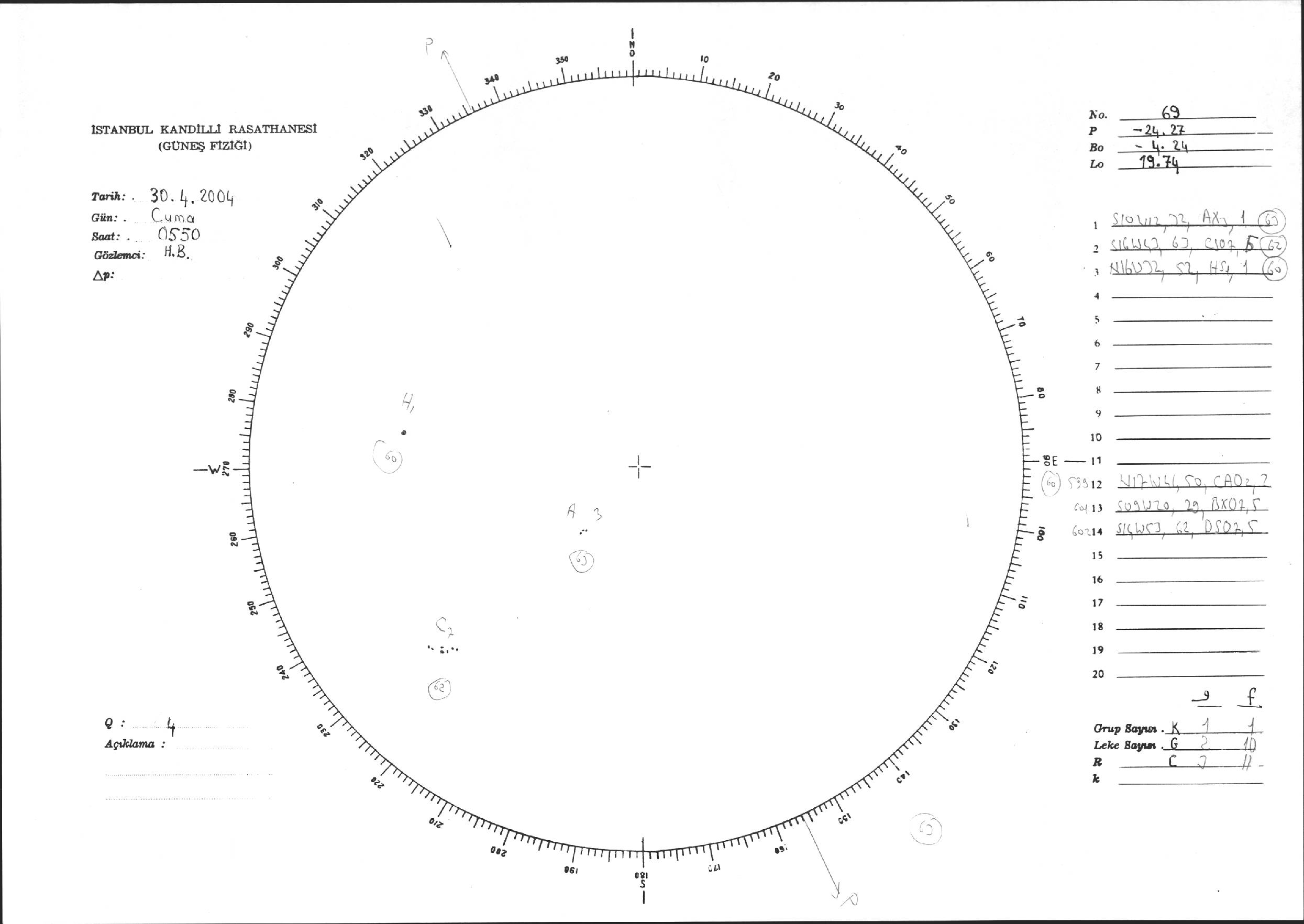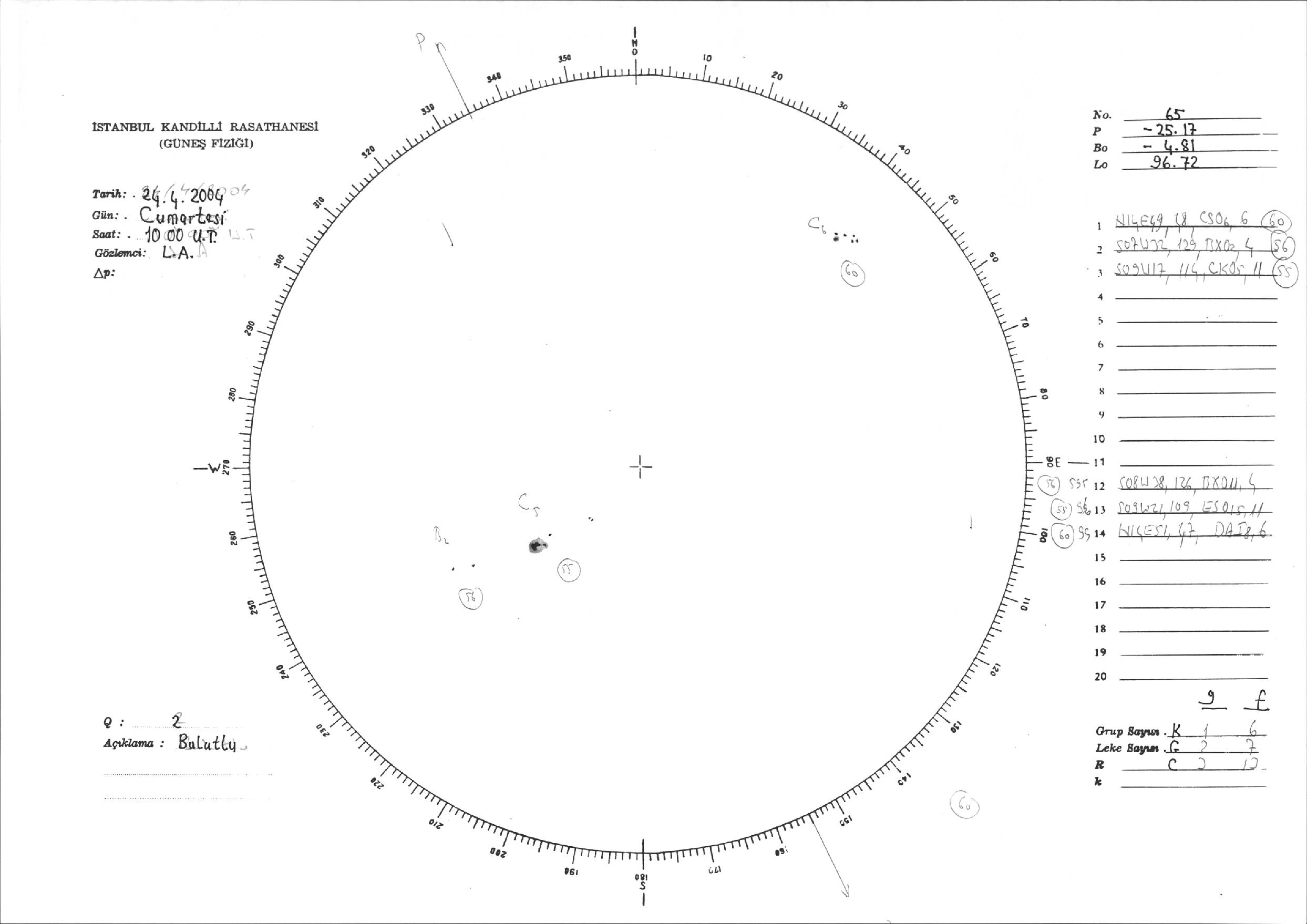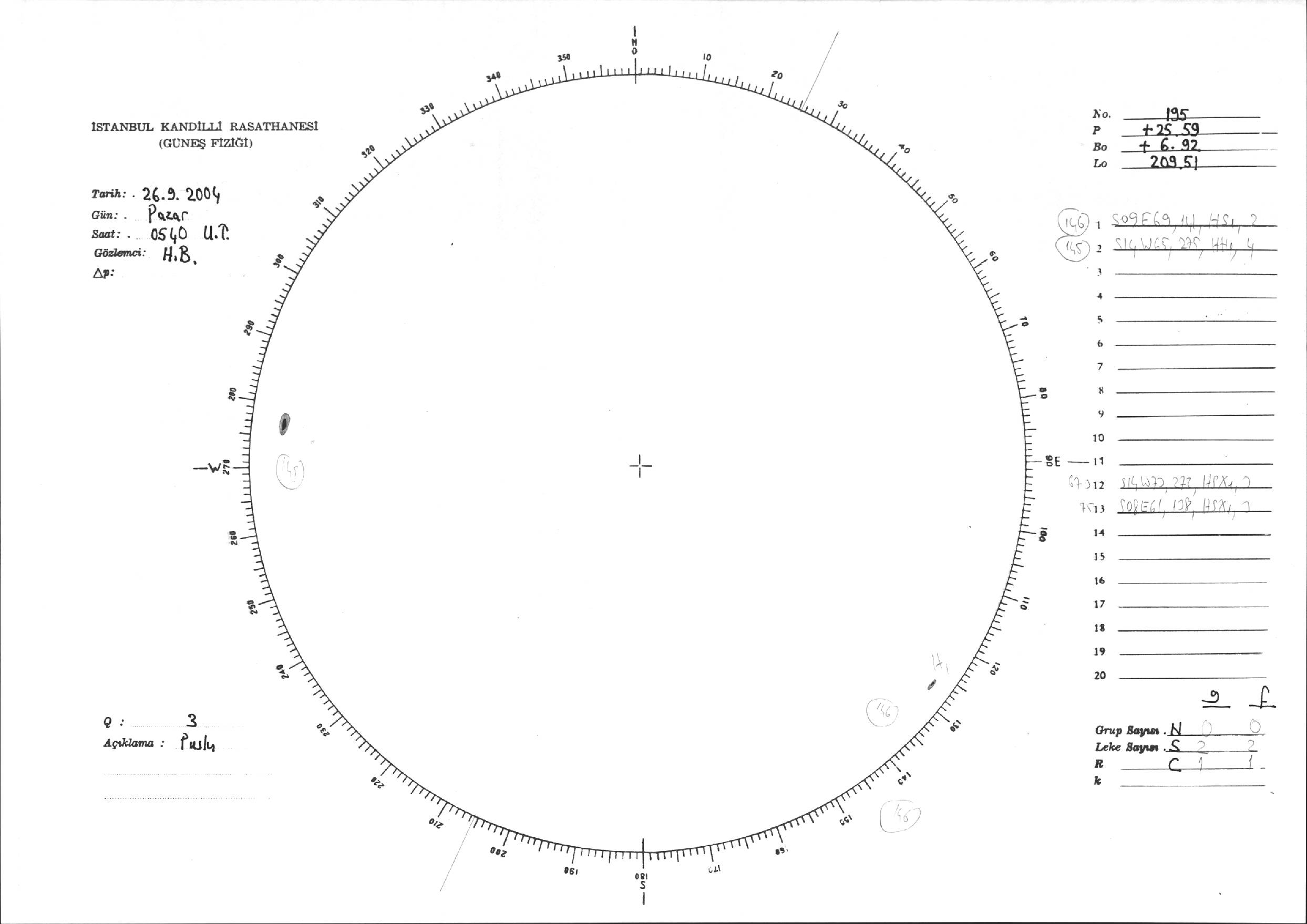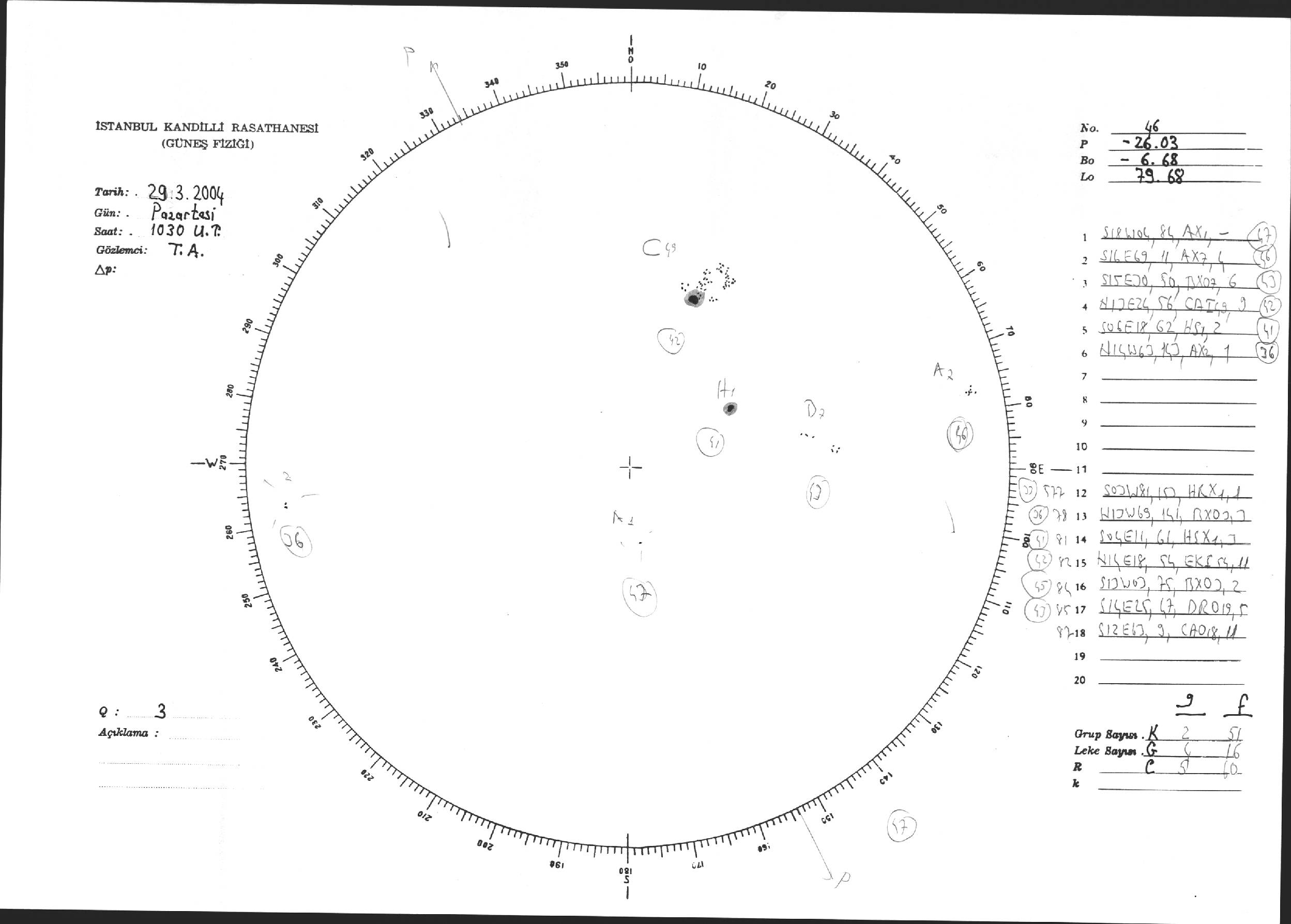 Güneş Lekesi Çizimleri / Kandilli Sunspot Drawings