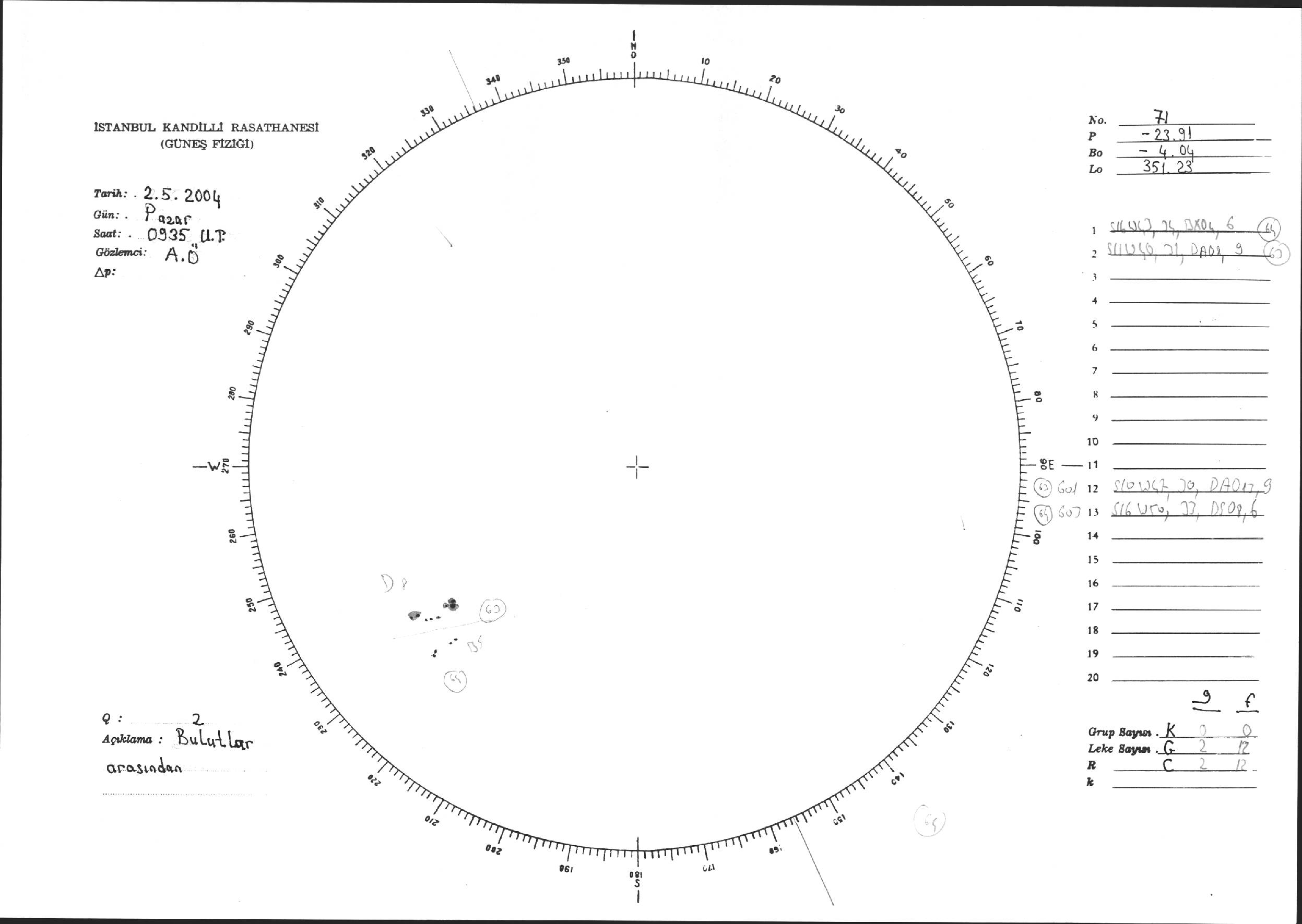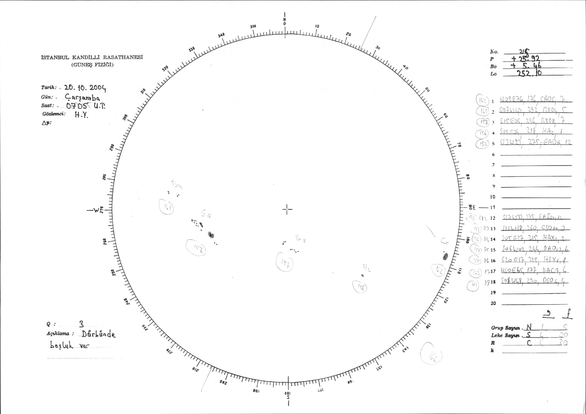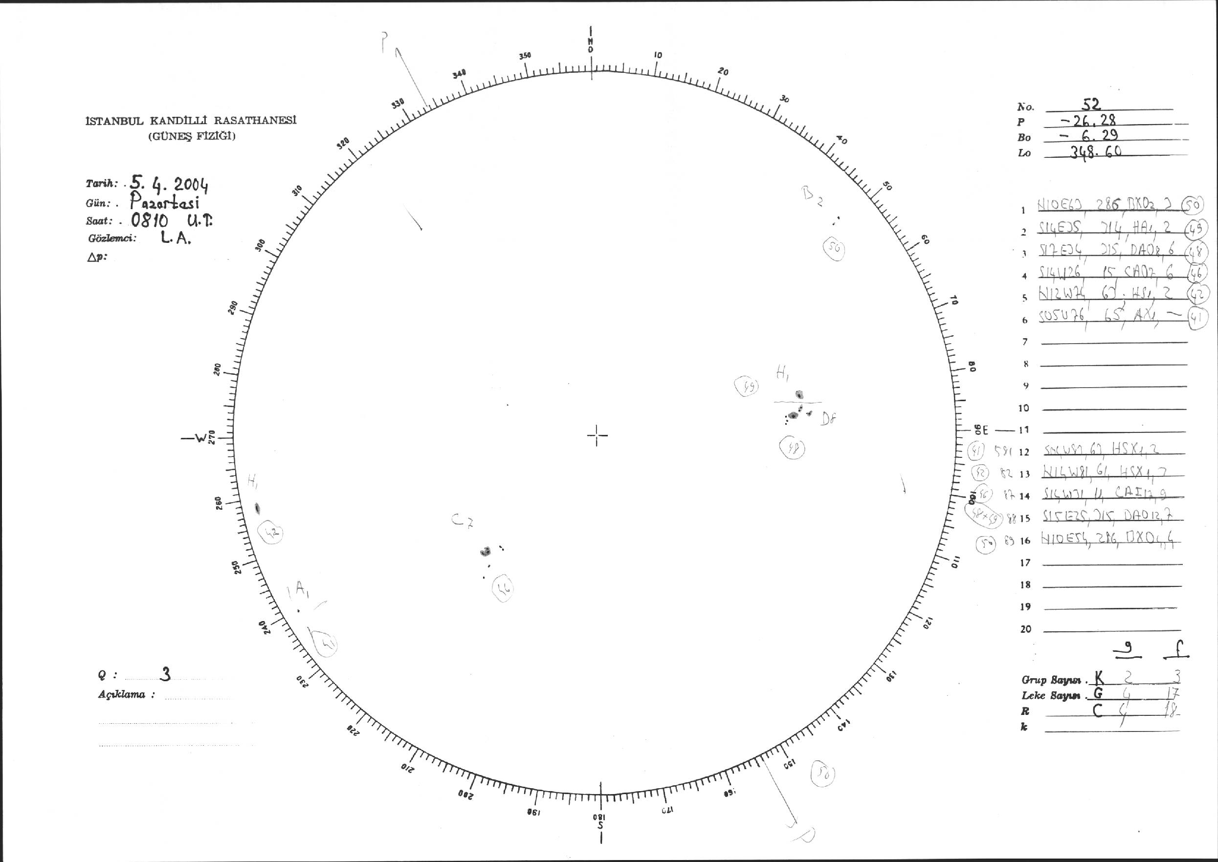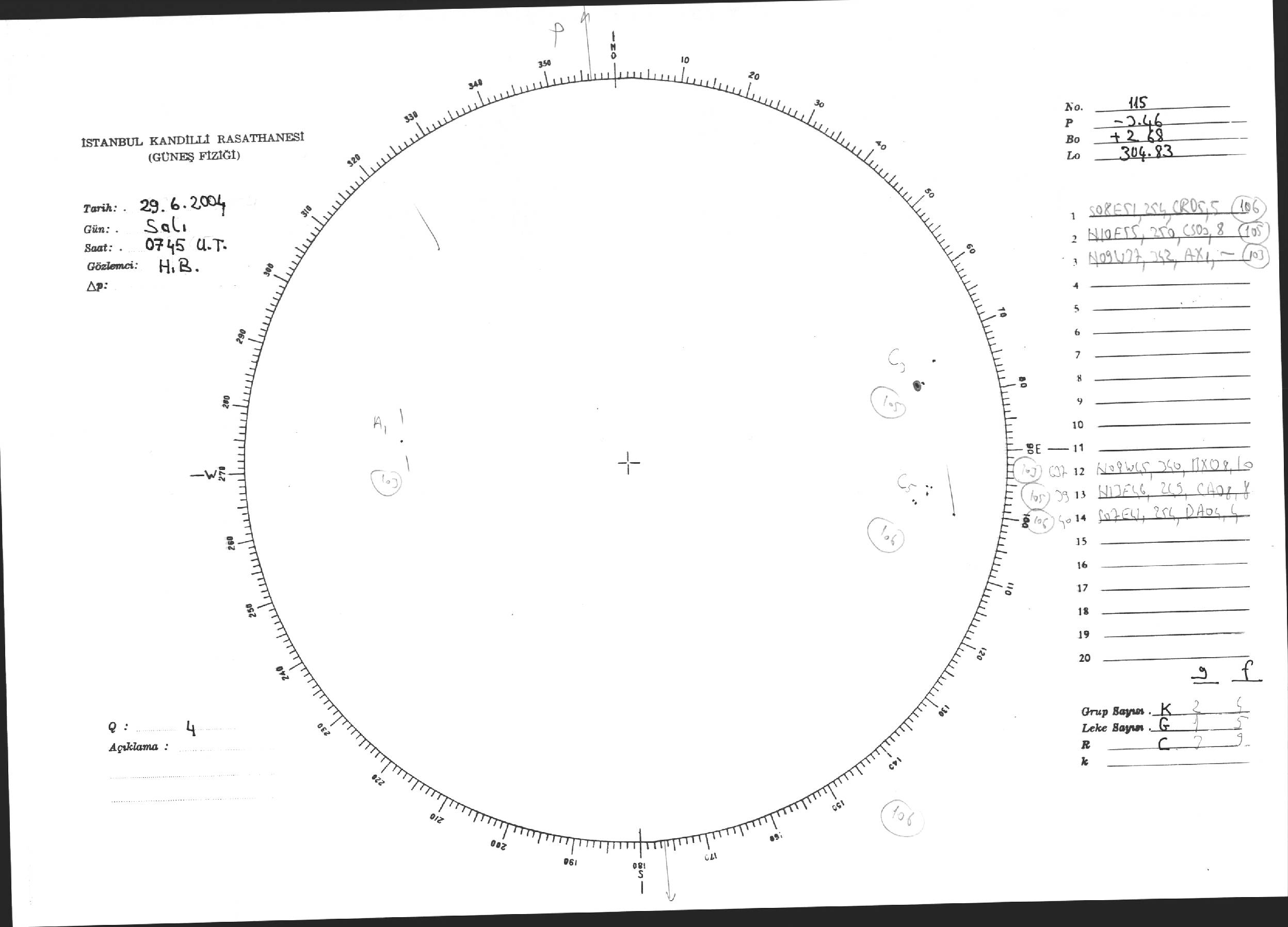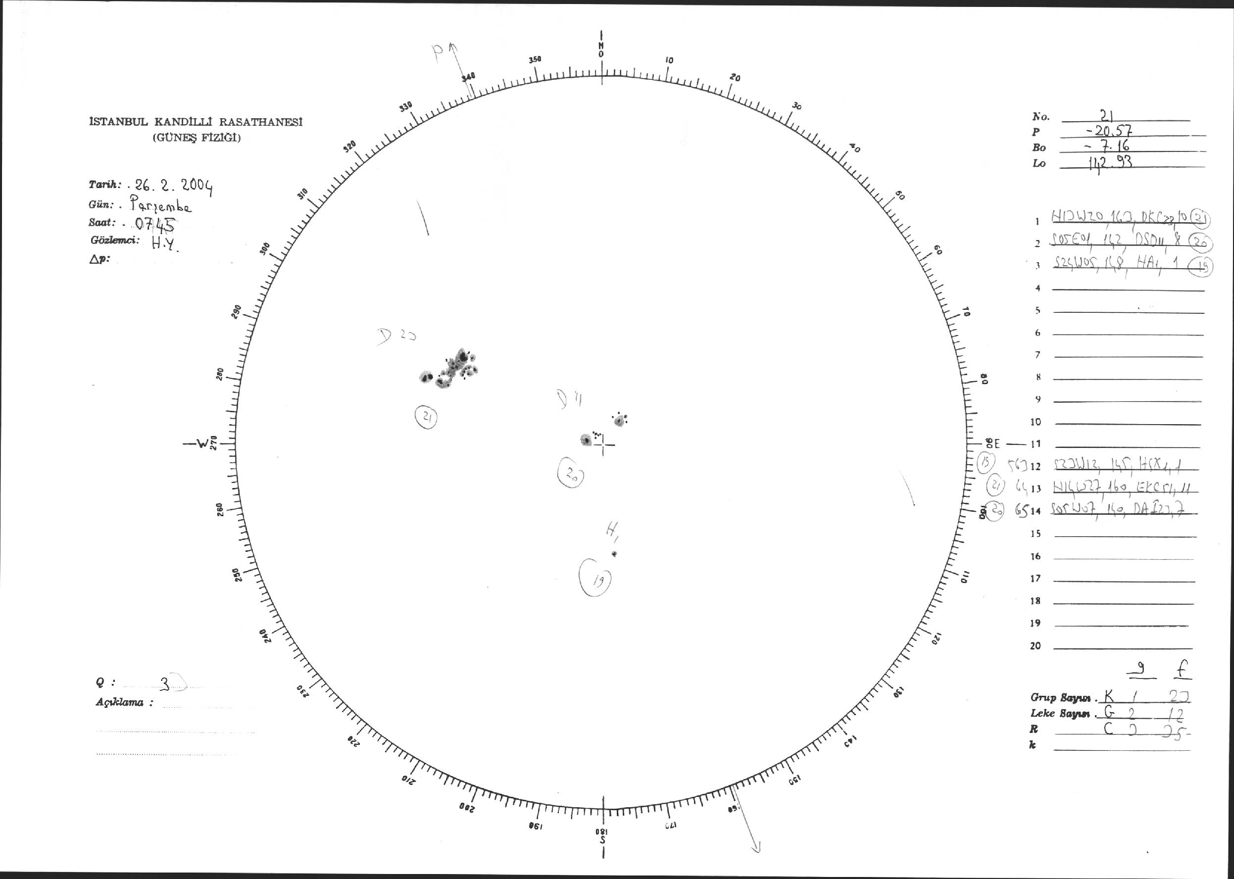 Güneş Lekesi Çizimleri / Kandilli Sunspot Drawings