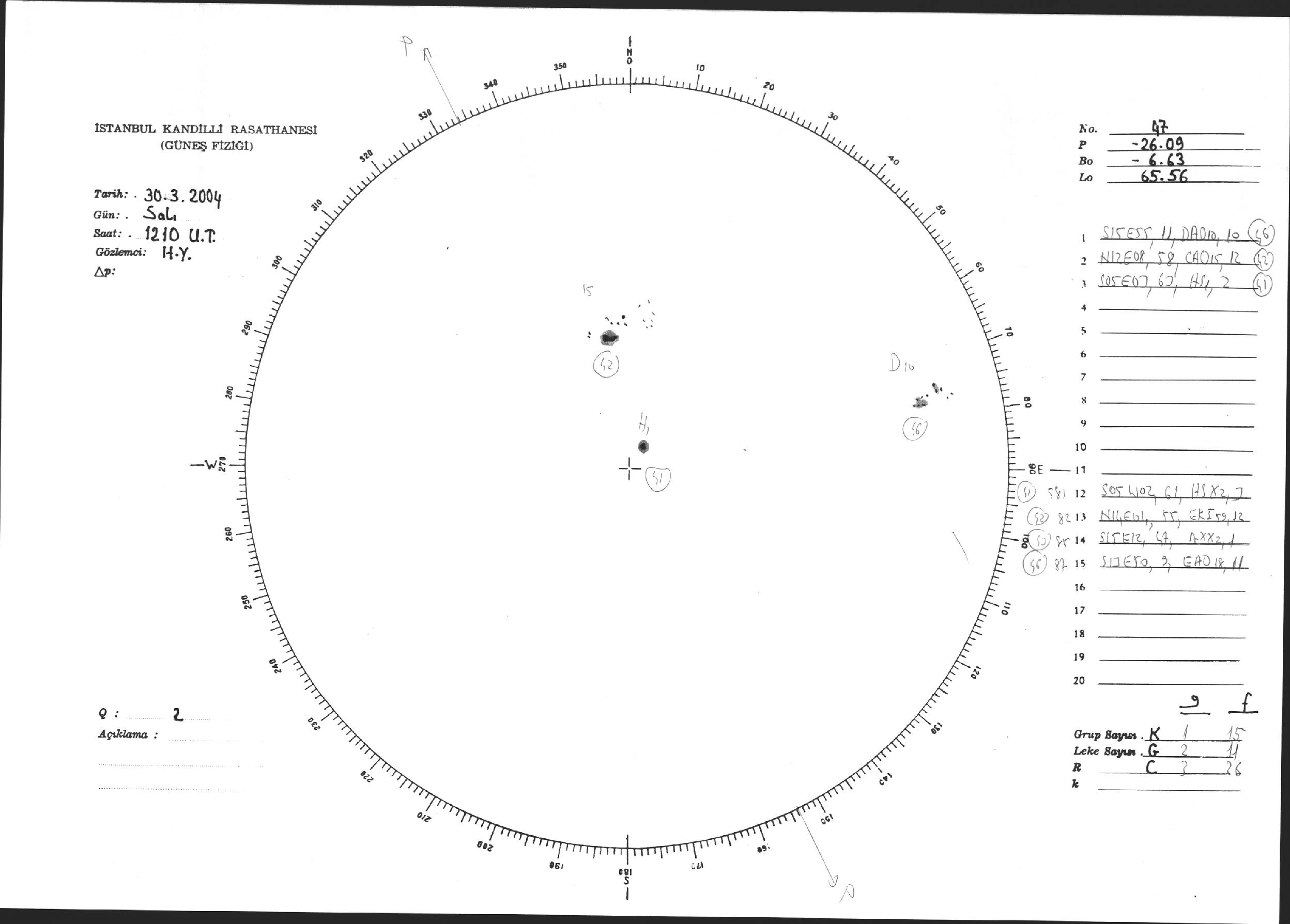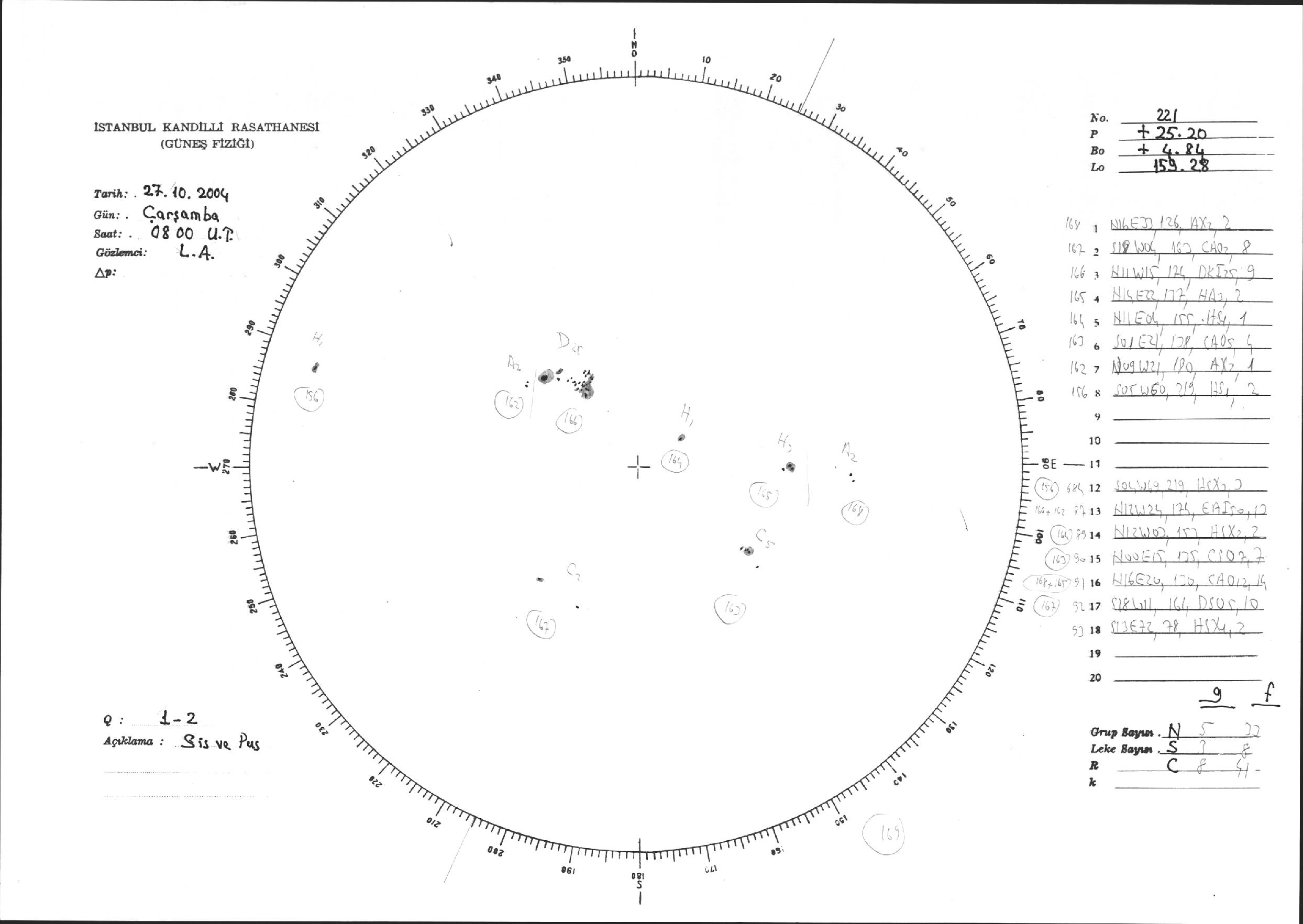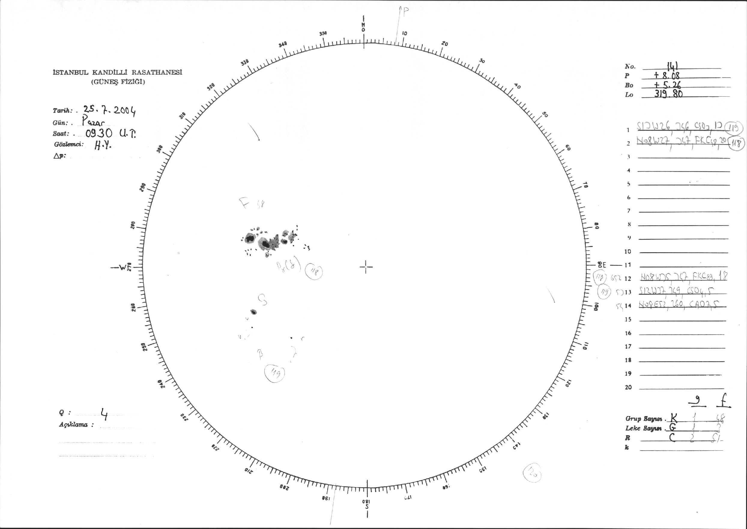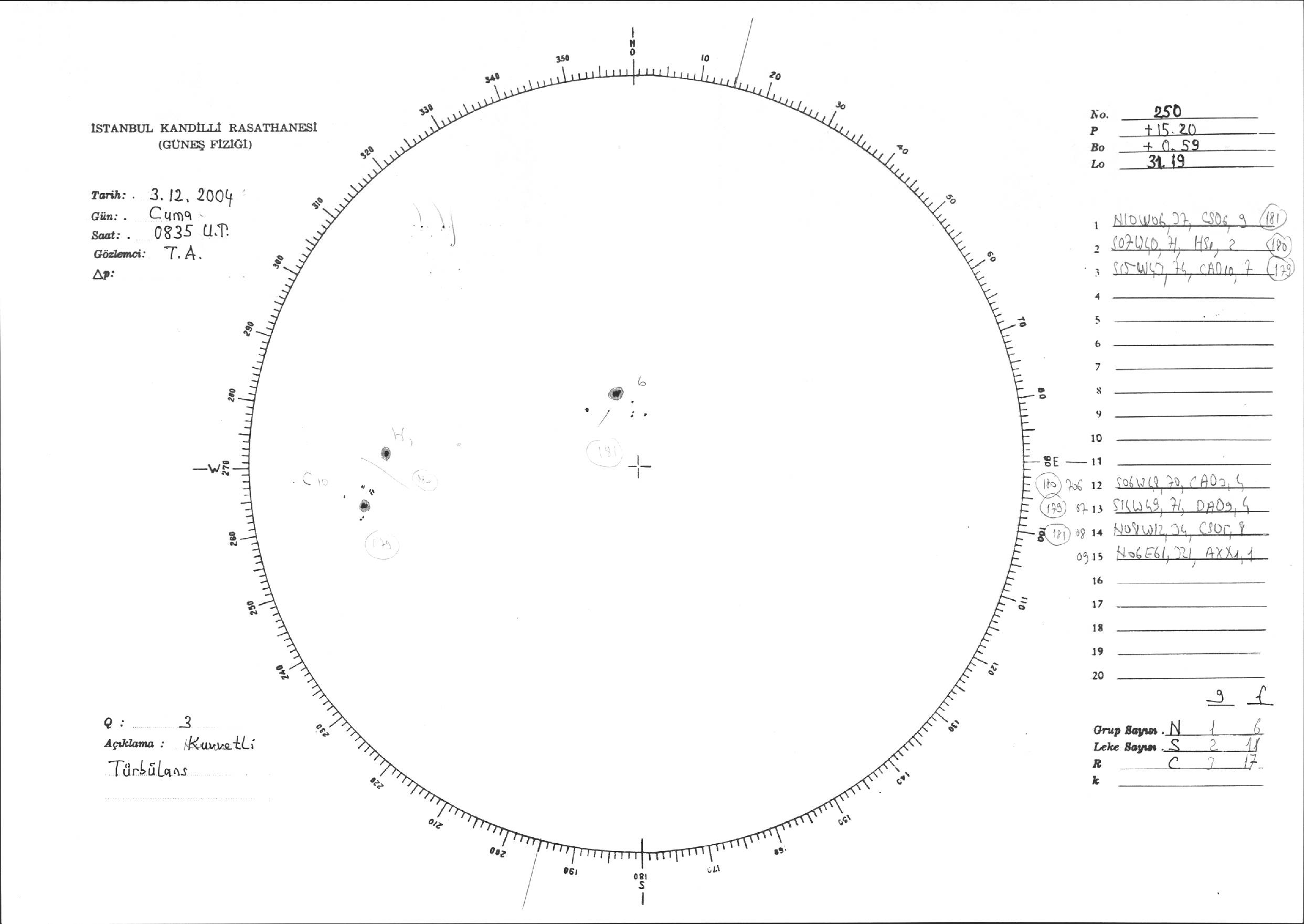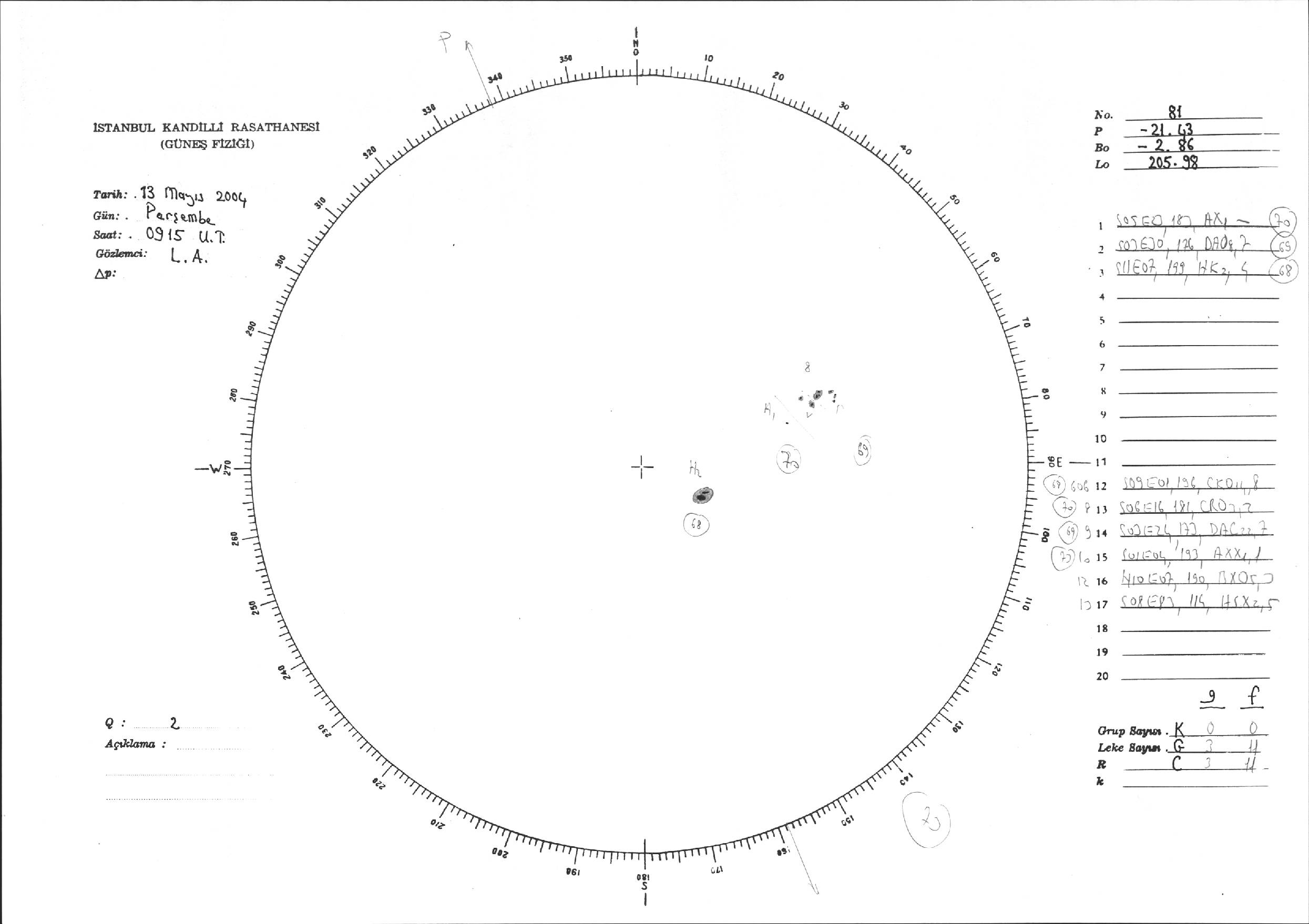 Güneş Lekesi Çizimleri / Kandilli Sunspot Drawings