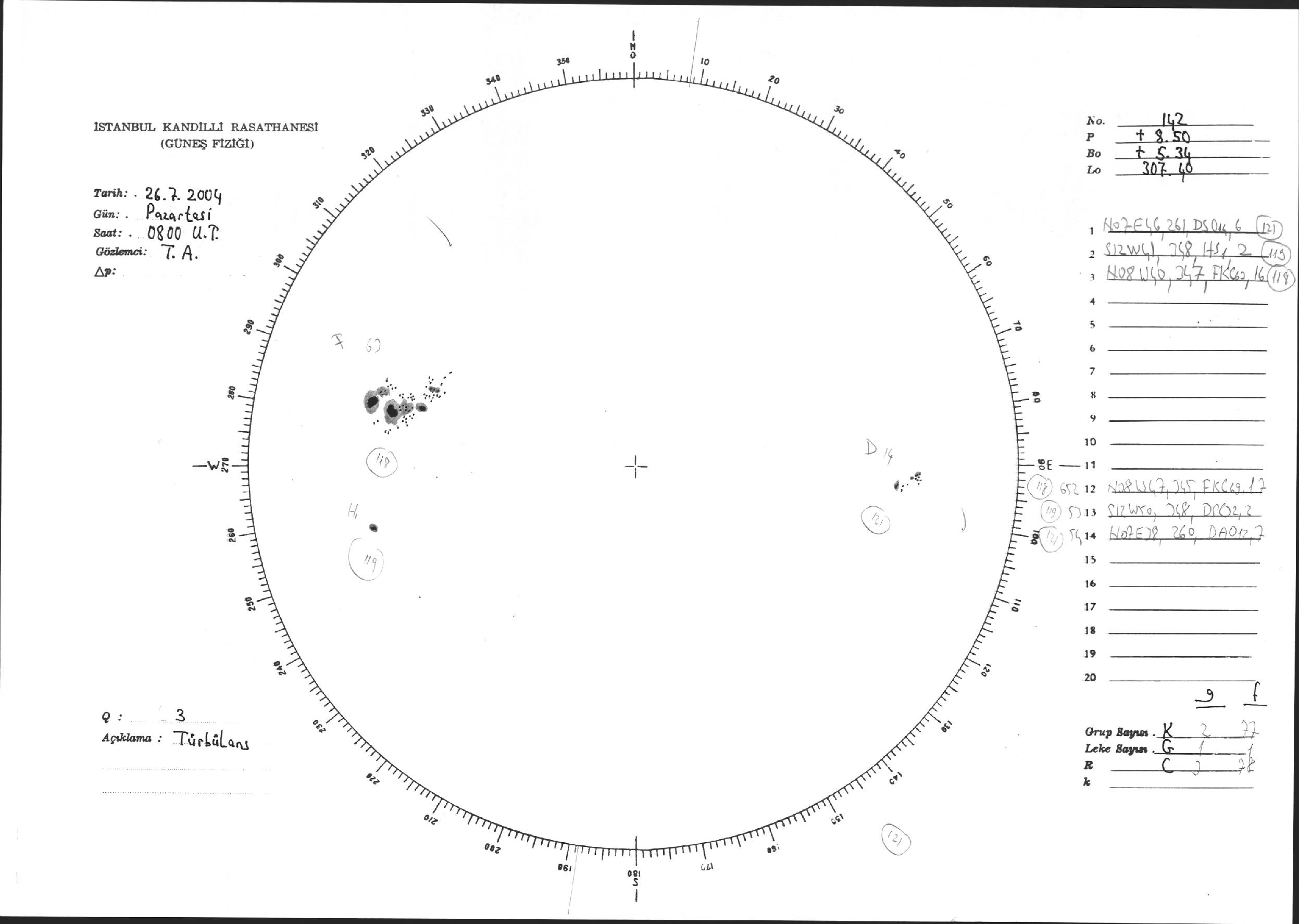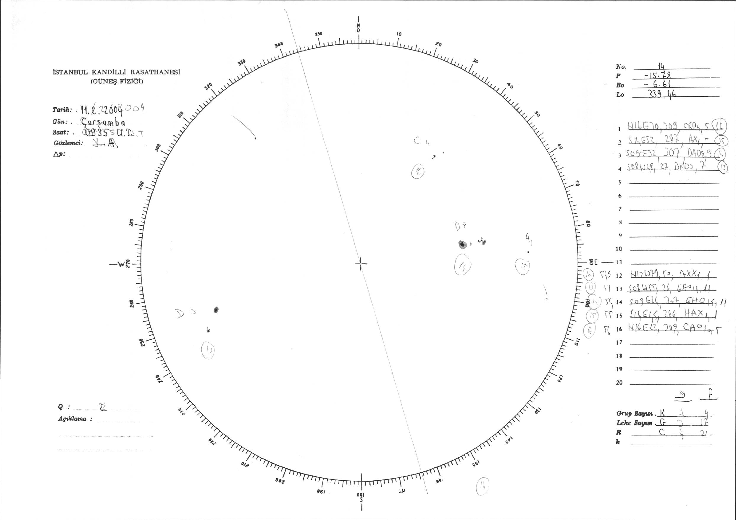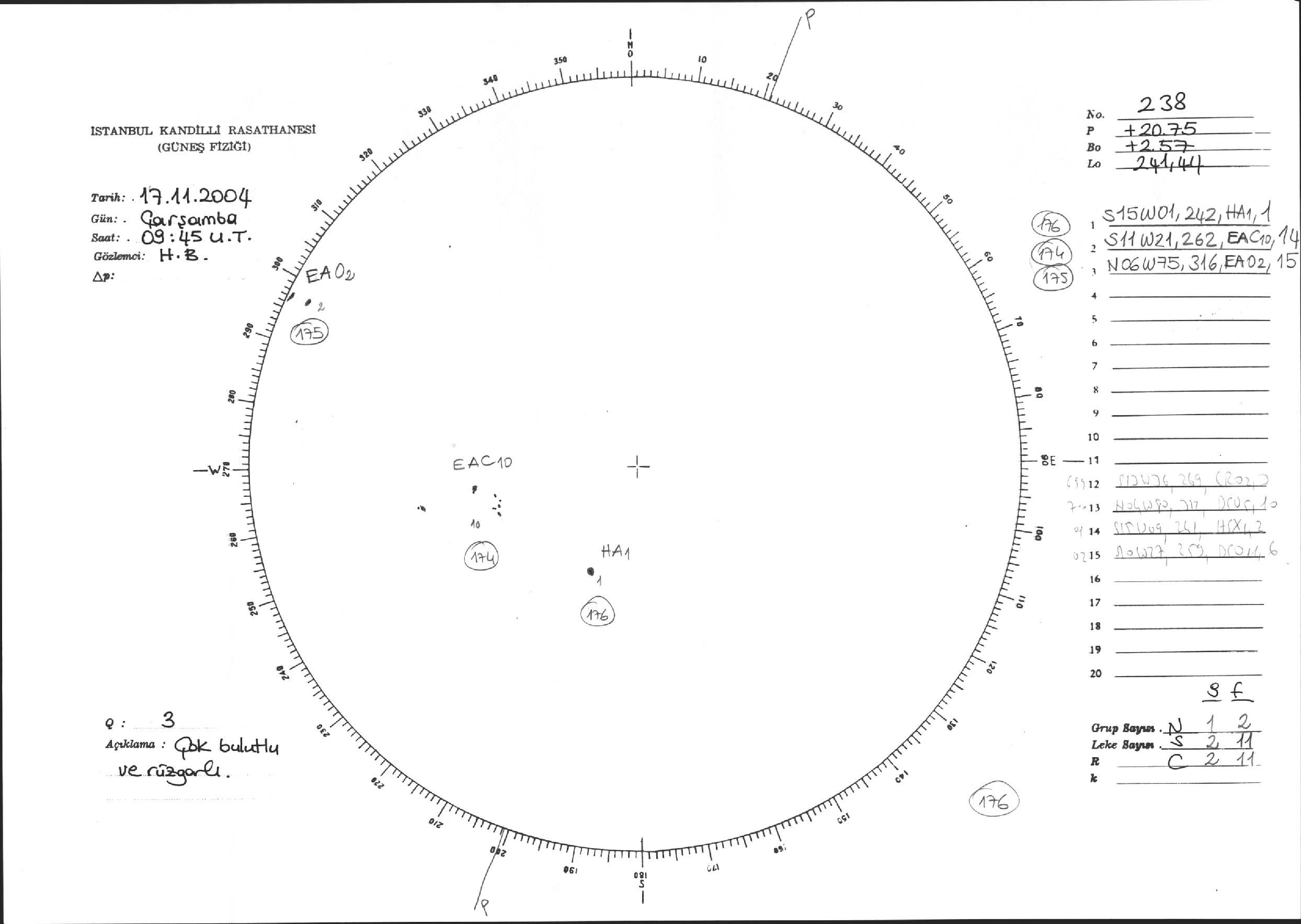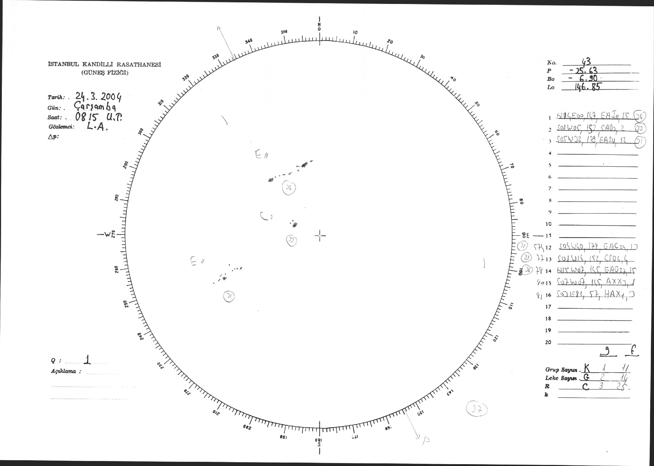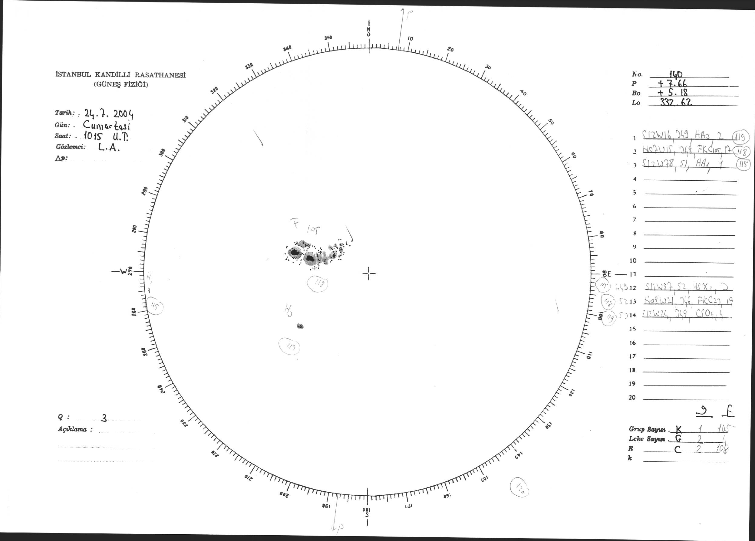 Güneş Lekesi Çizimleri / Kandilli Sunspot Drawings
