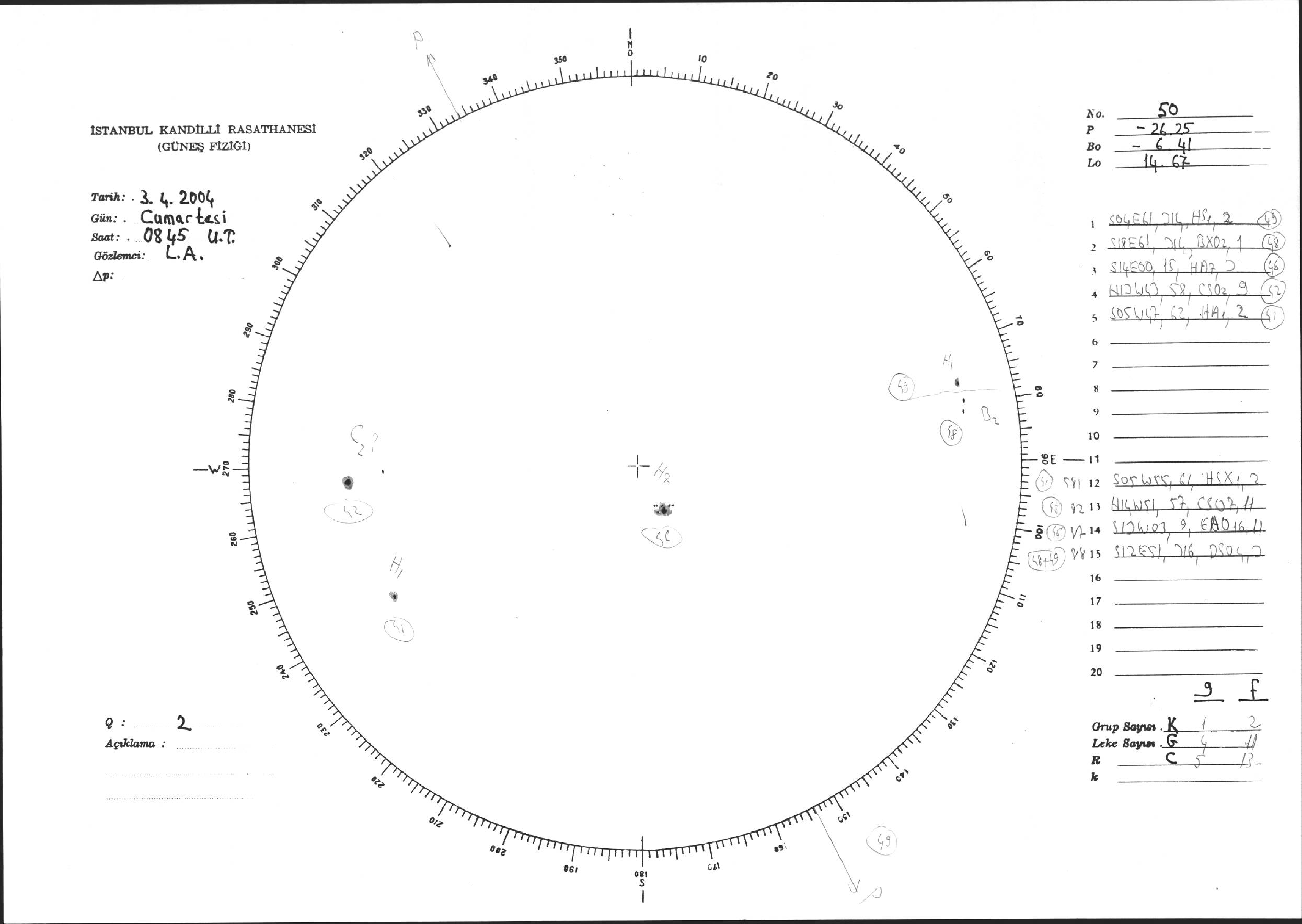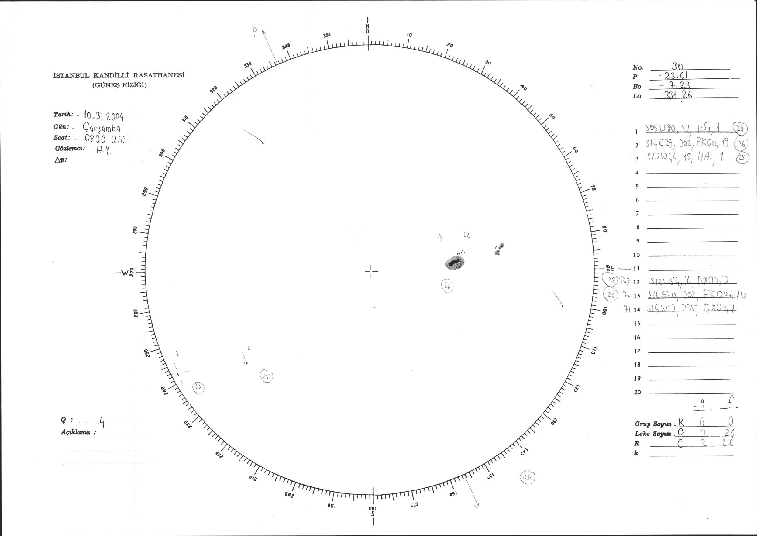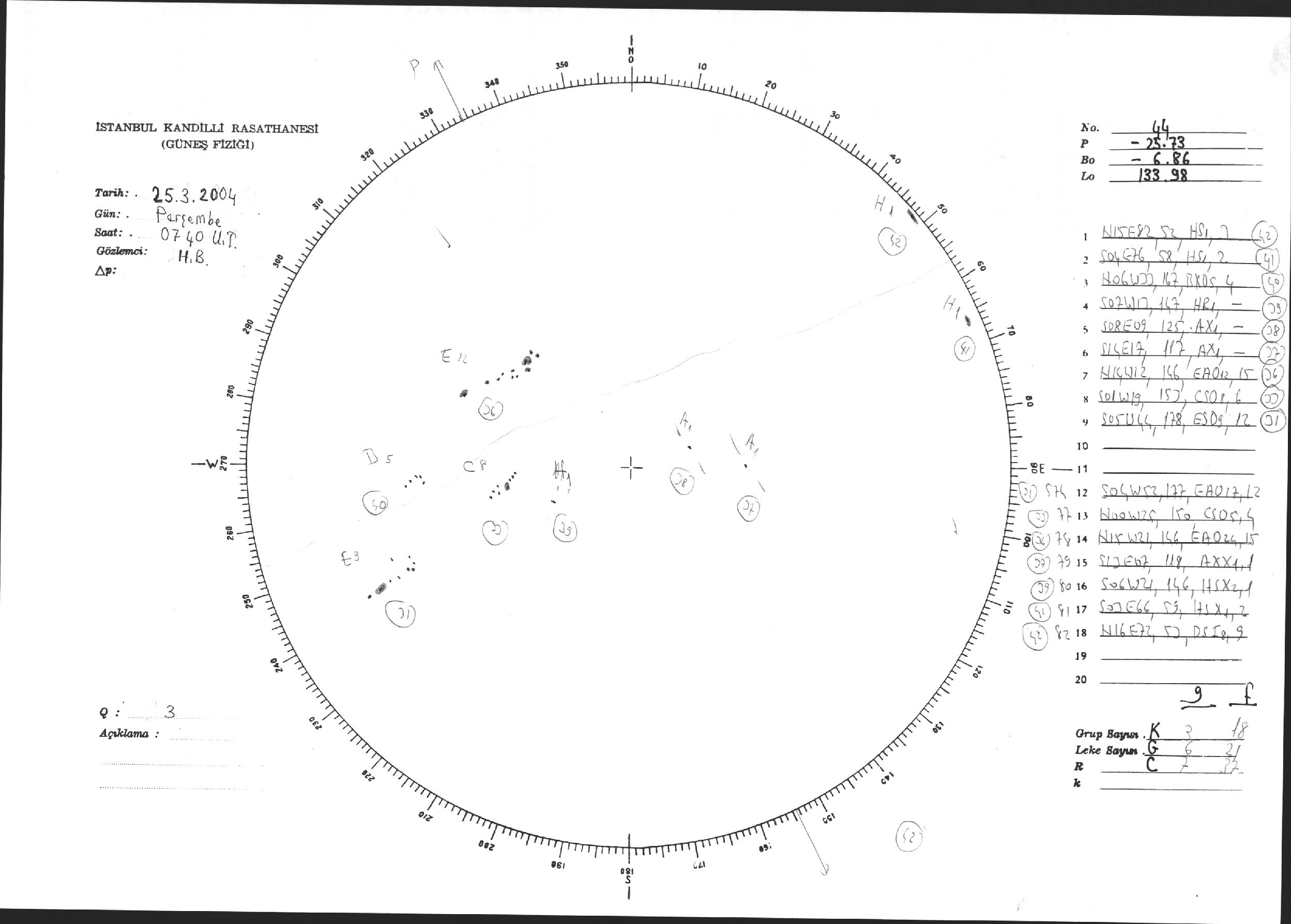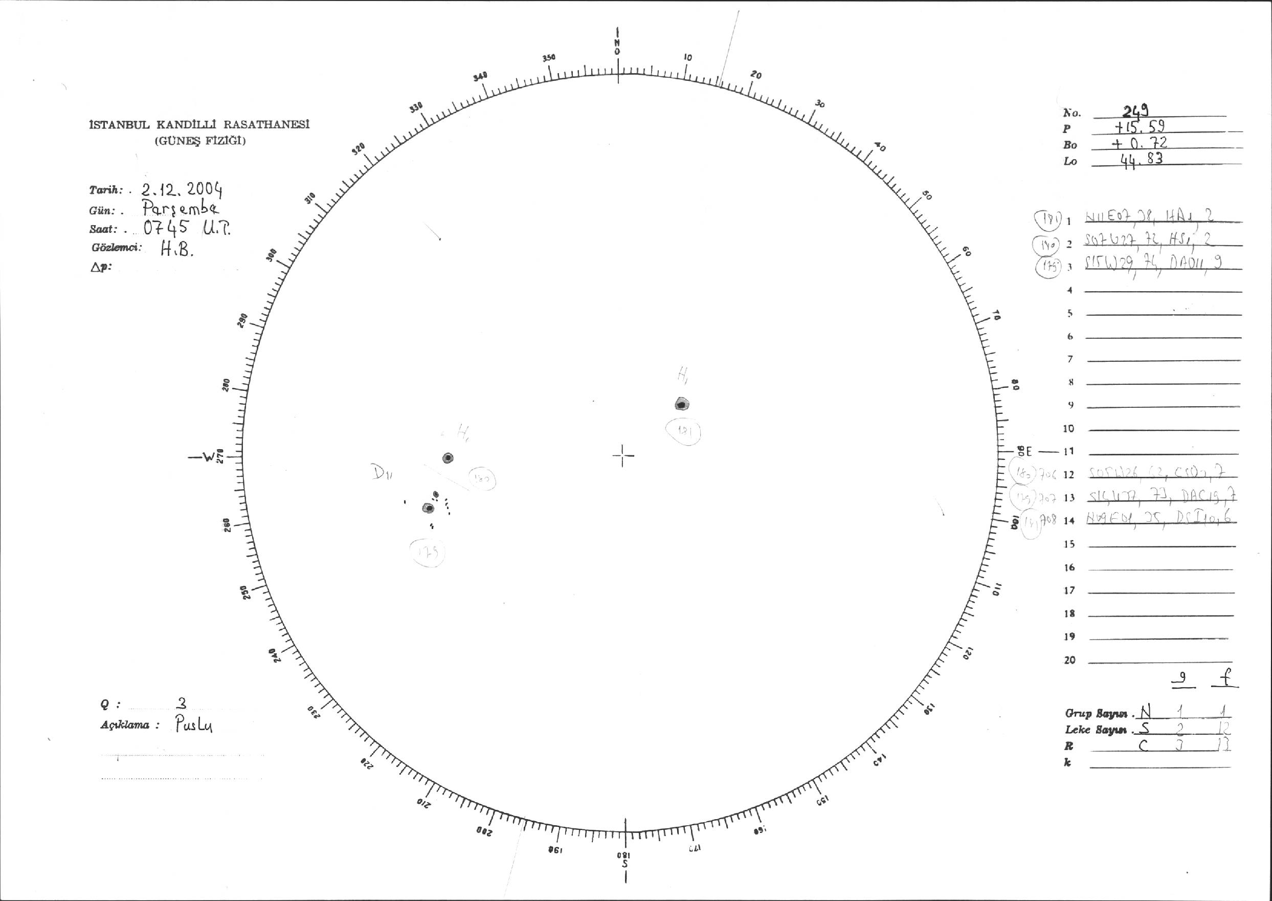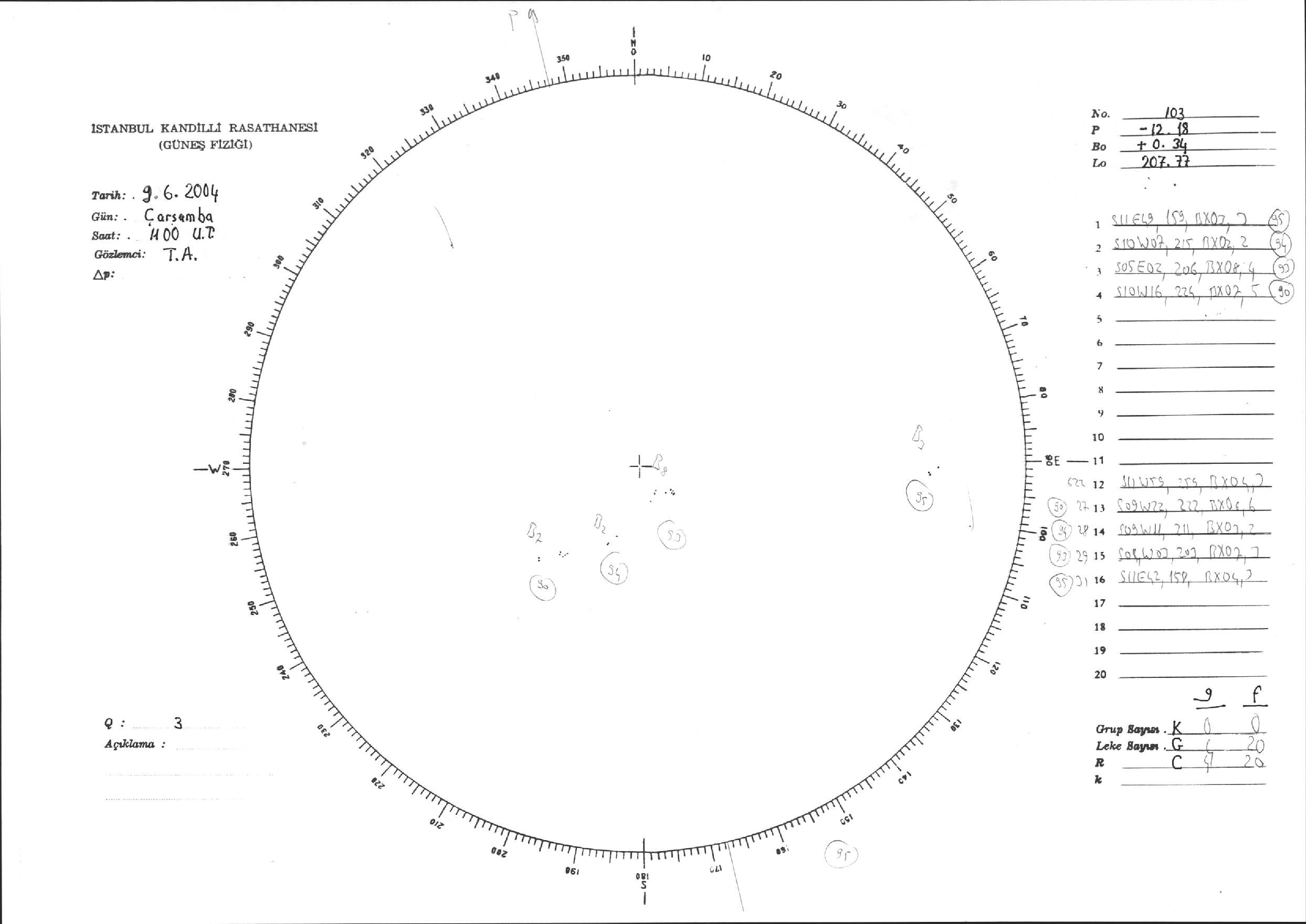 Güneş Lekesi Çizimleri / Kandilli Sunspot Drawings