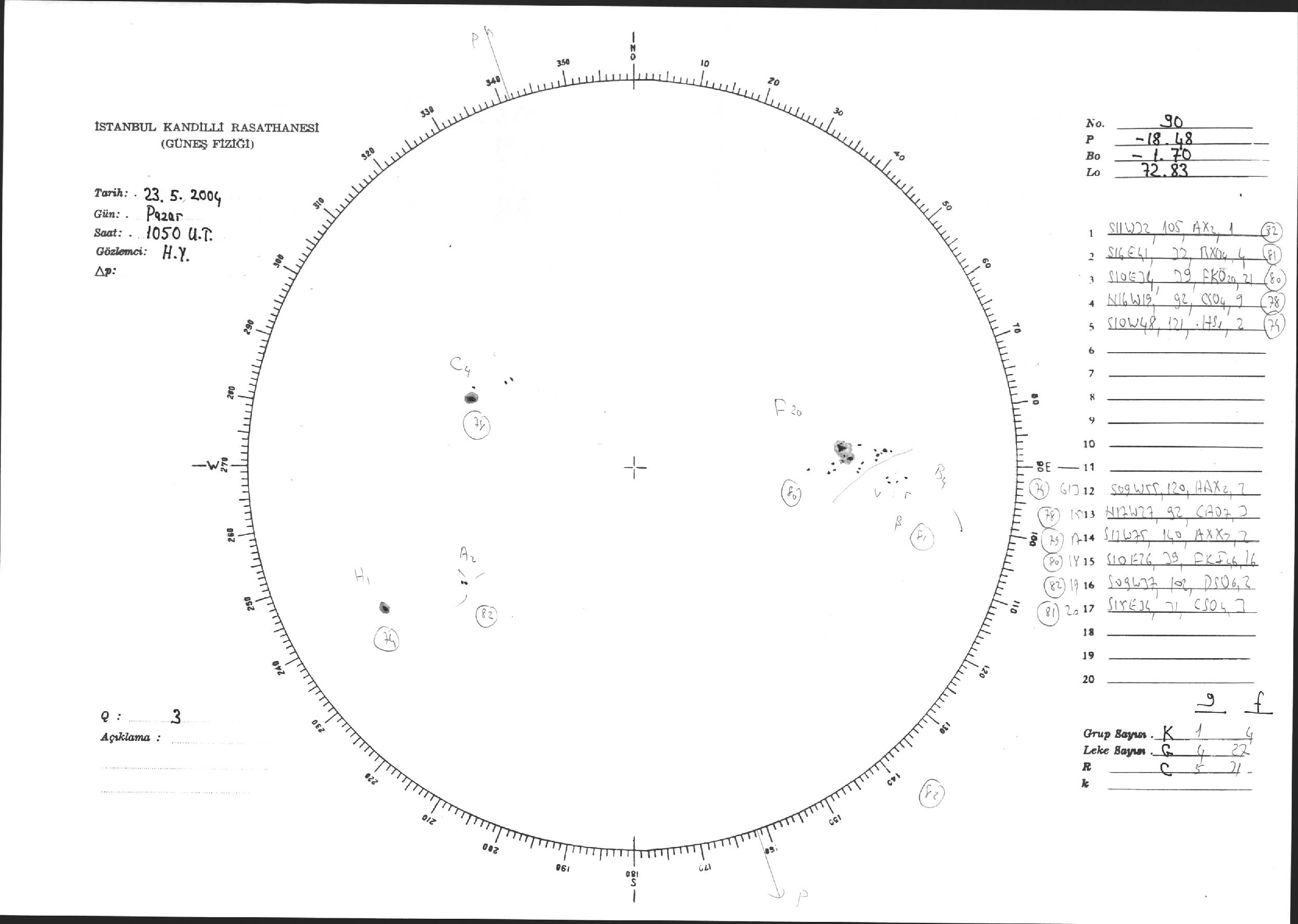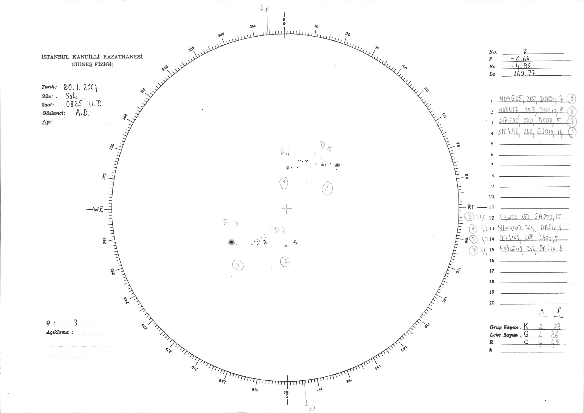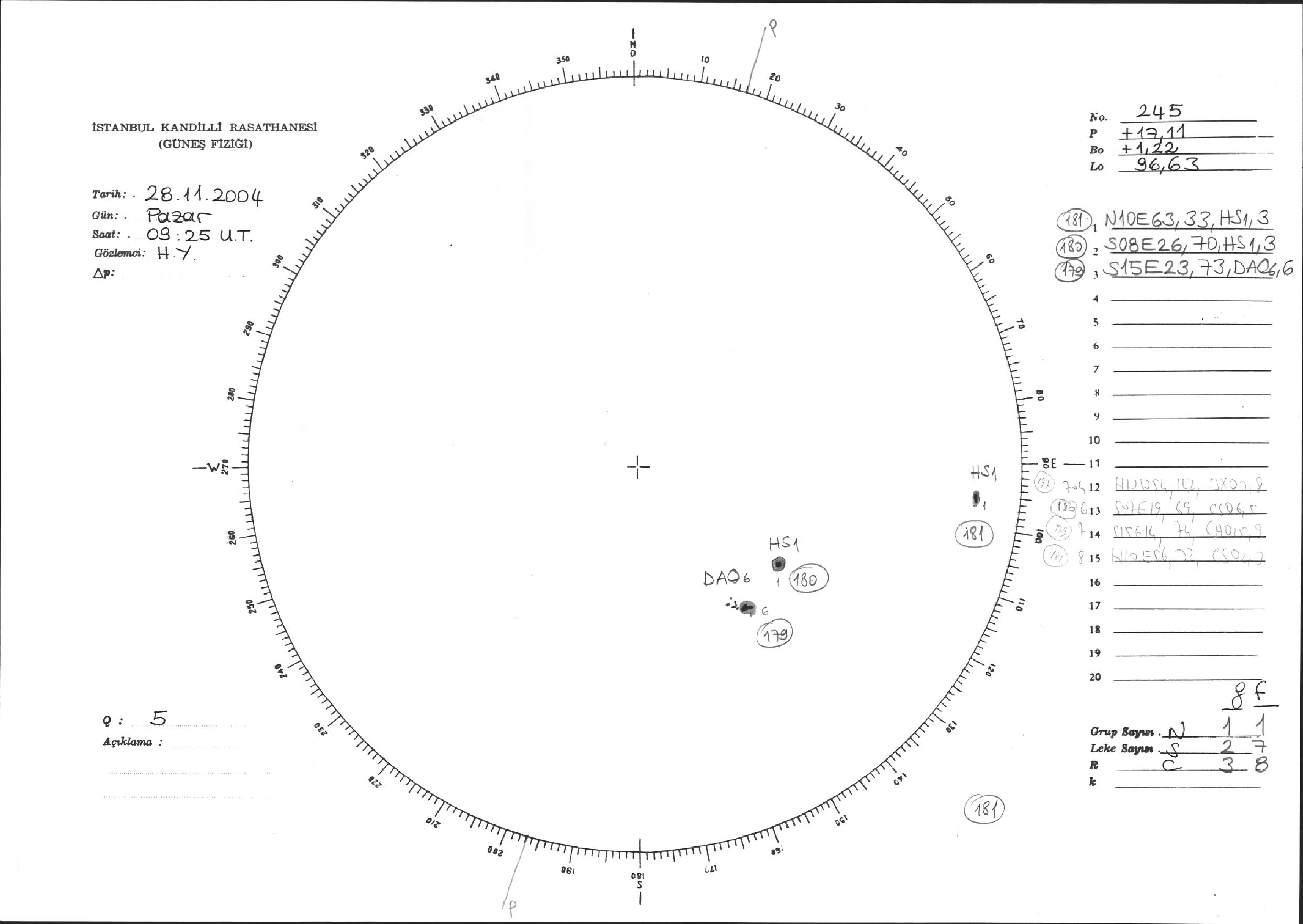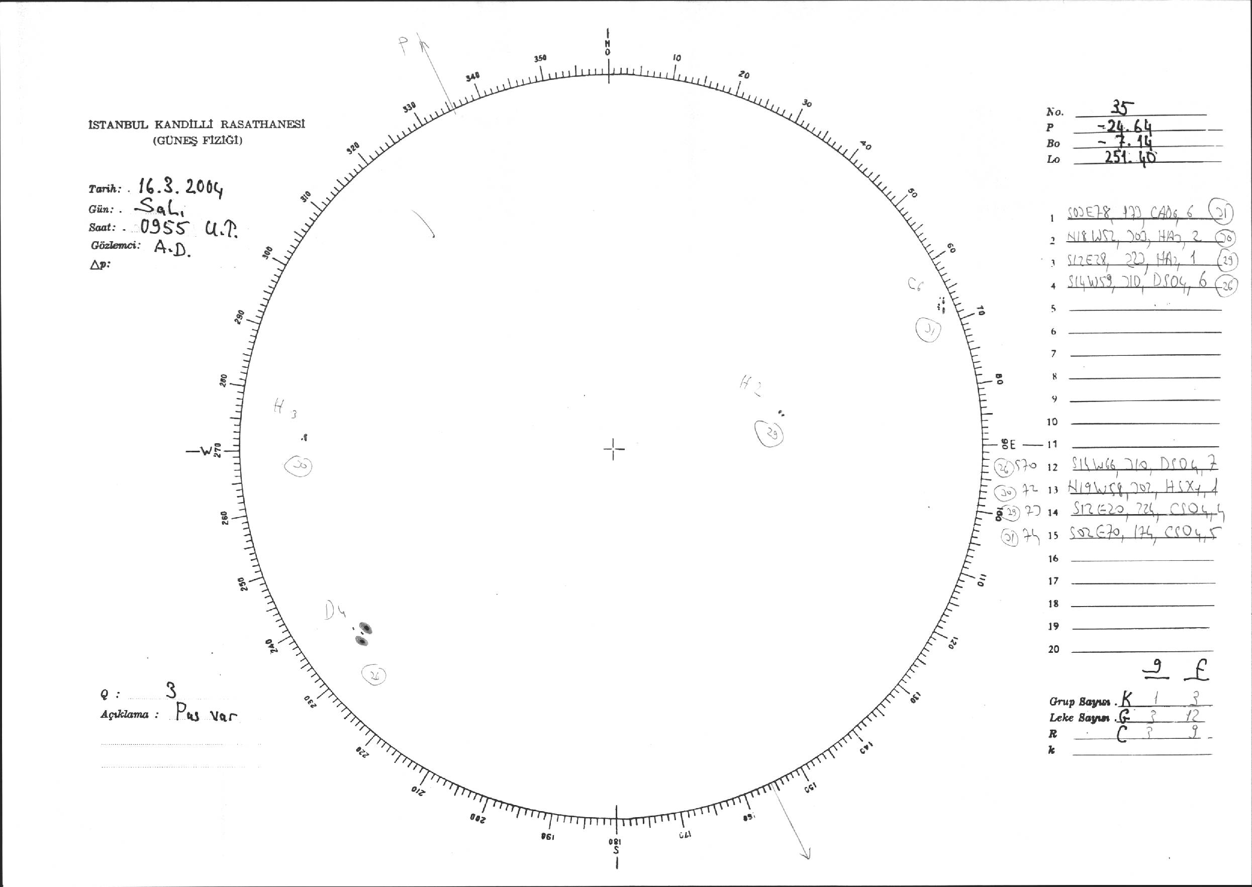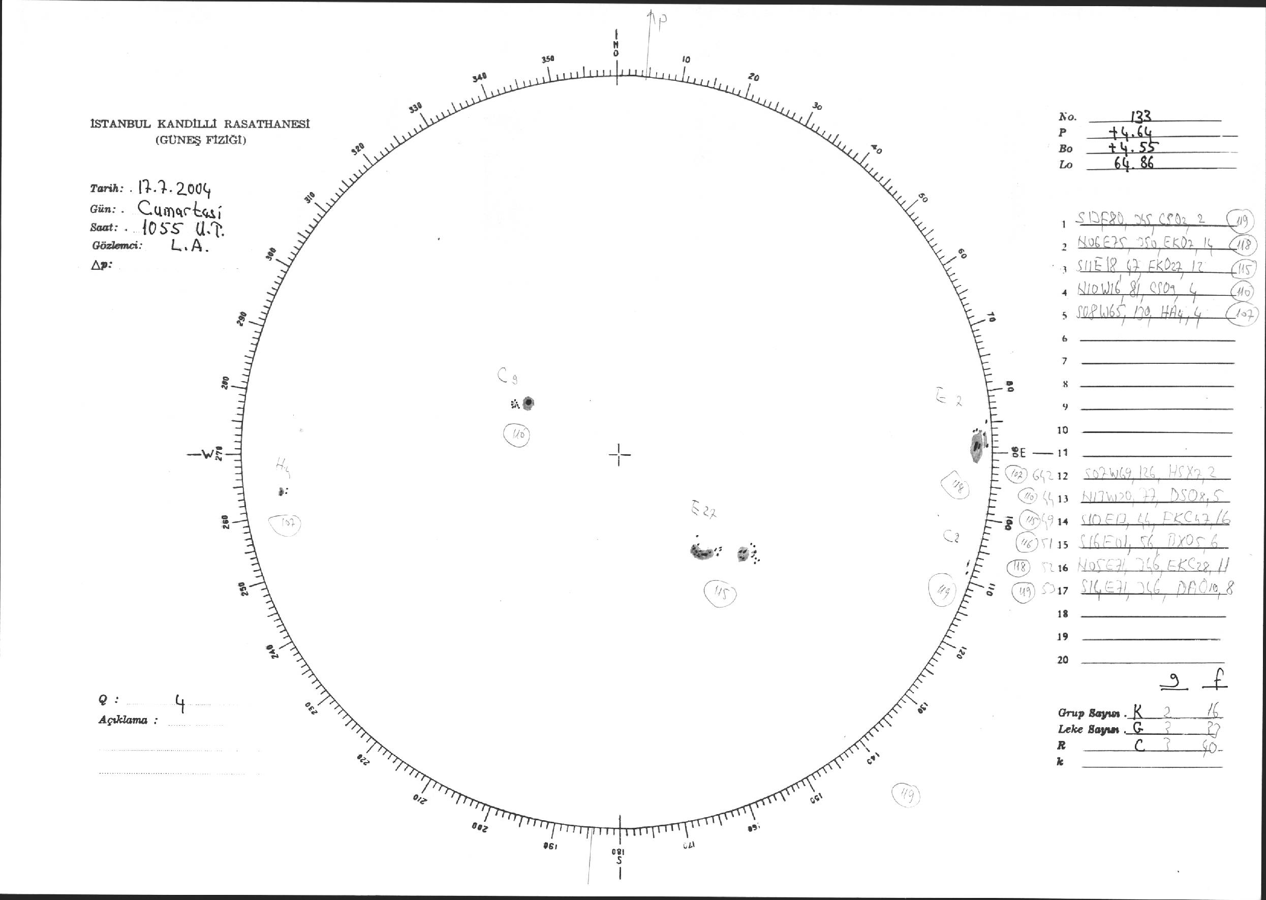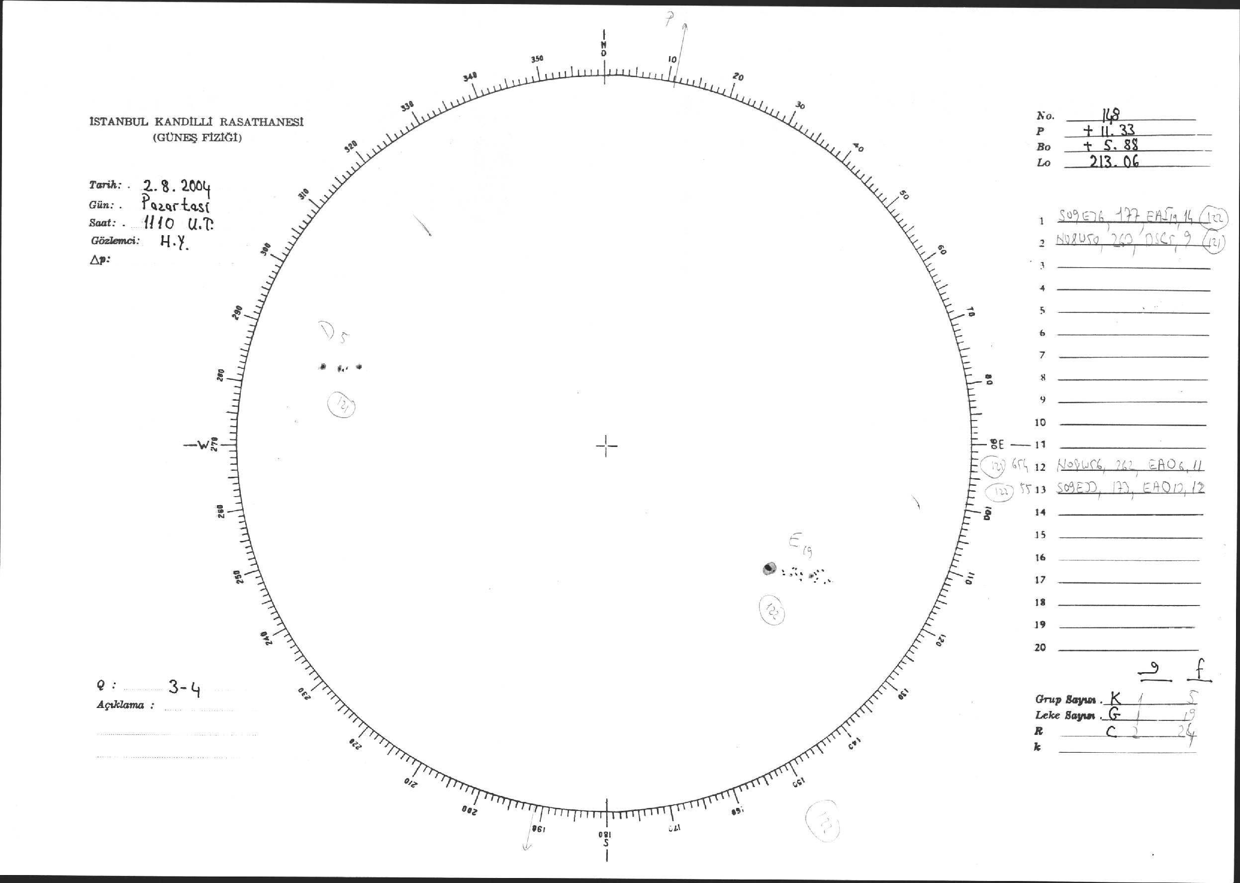 Güneş Lekesi Çizimleri / Kandilli Sunspot Drawings