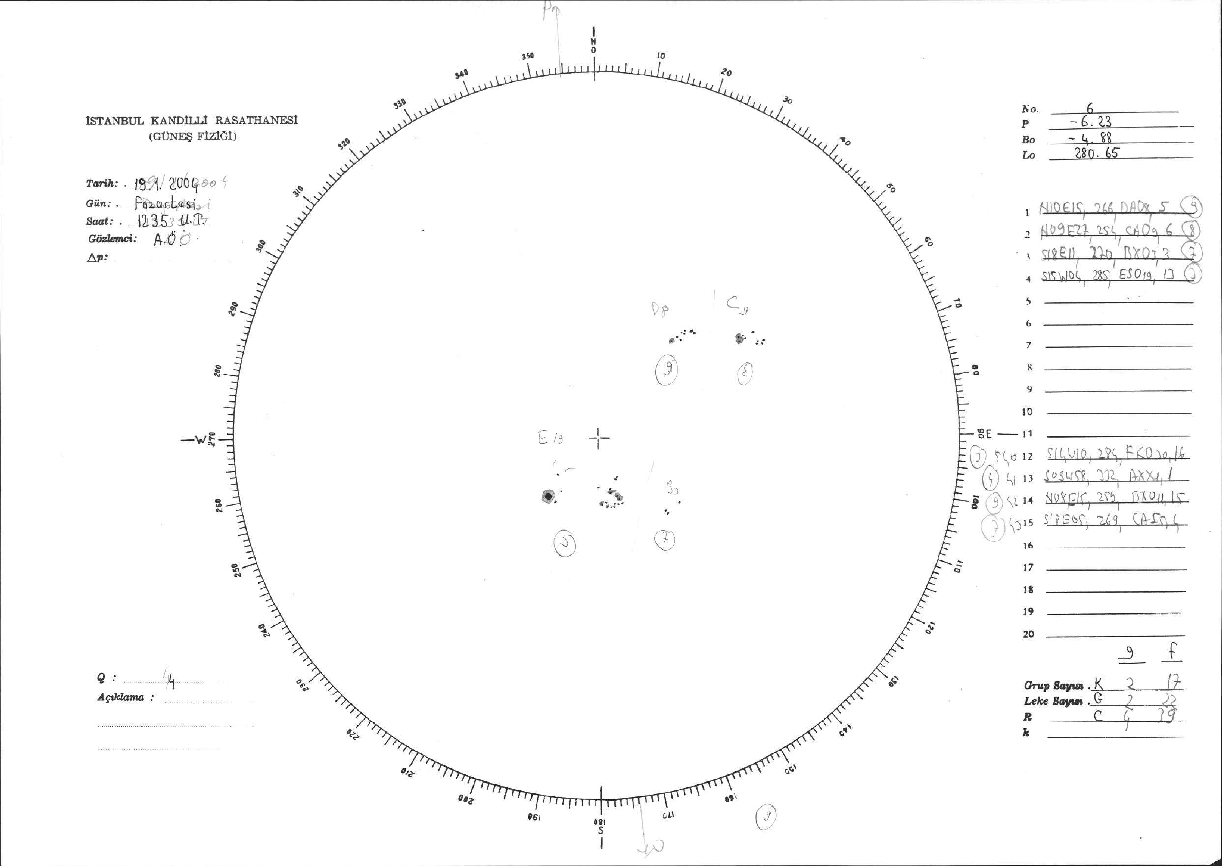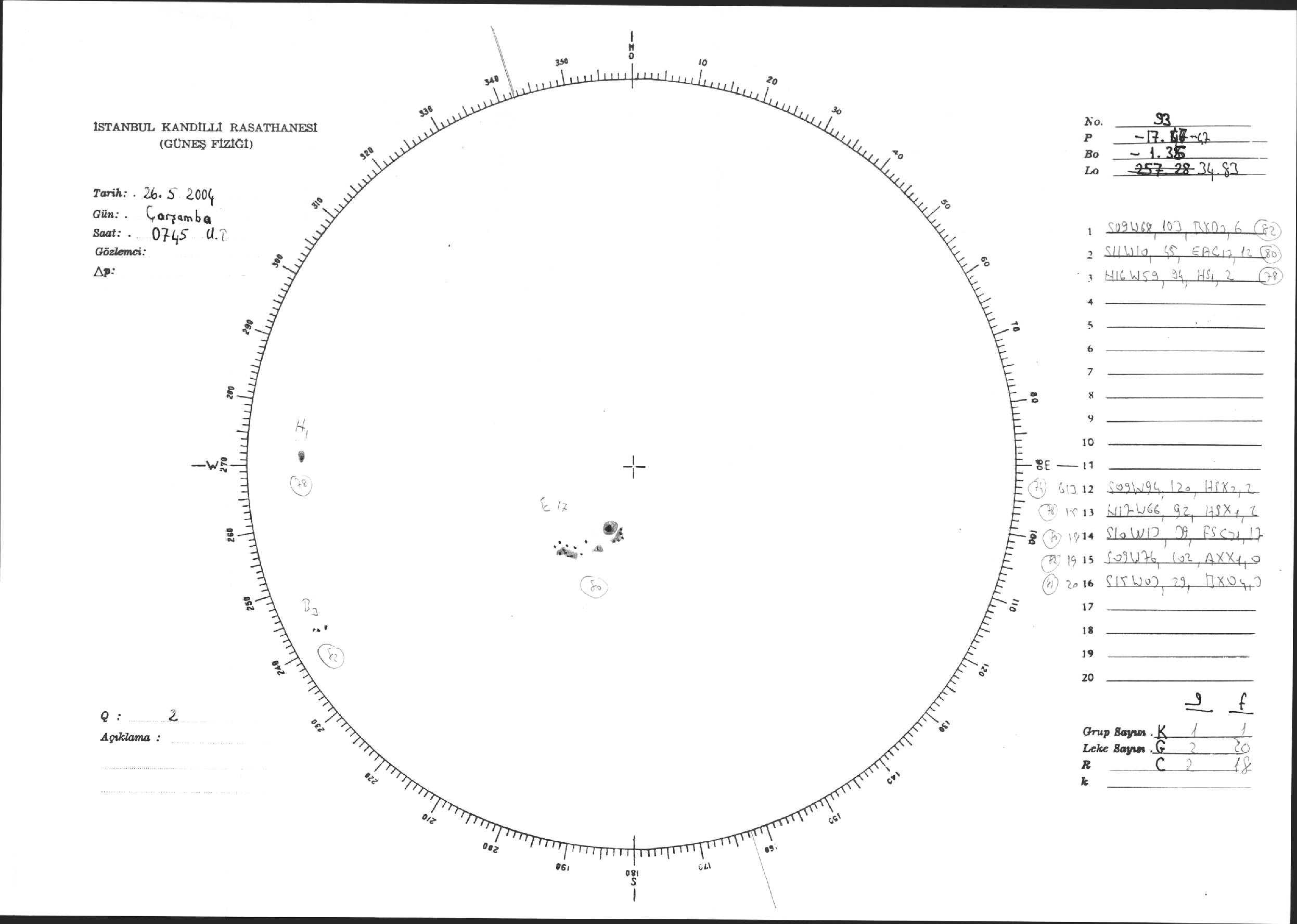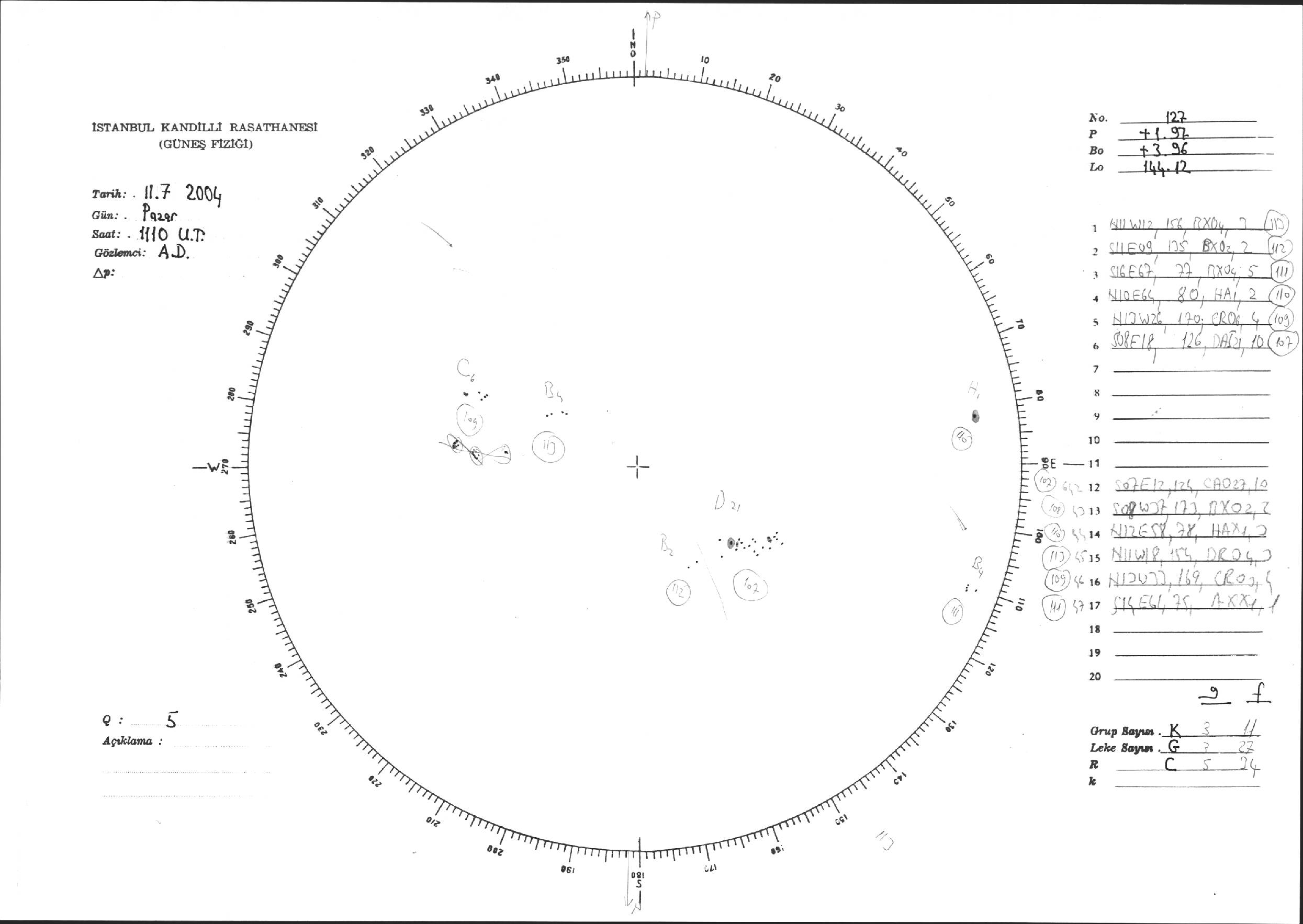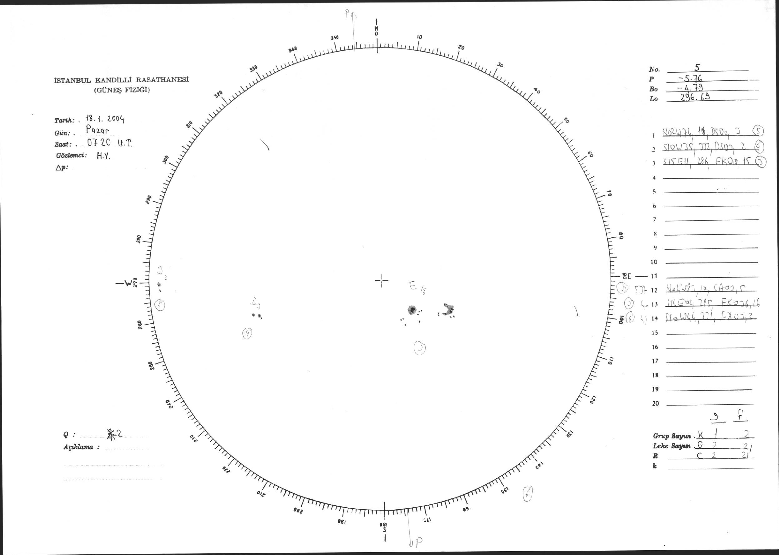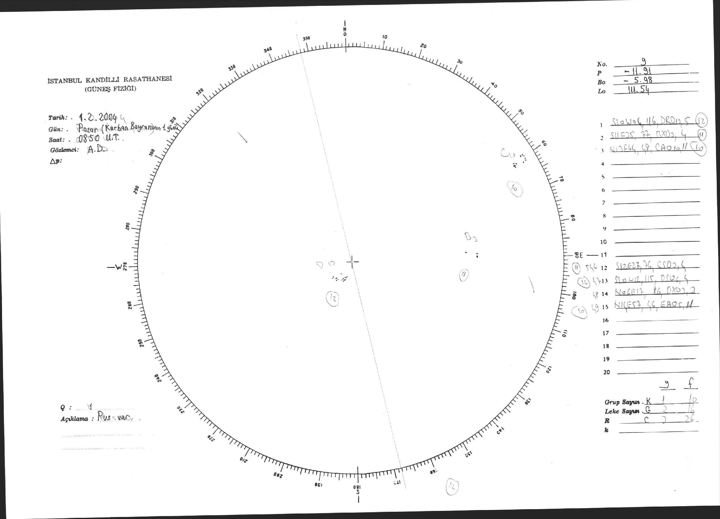 Güneş Lekesi Çizimleri / Kandilli Sunspot Drawings