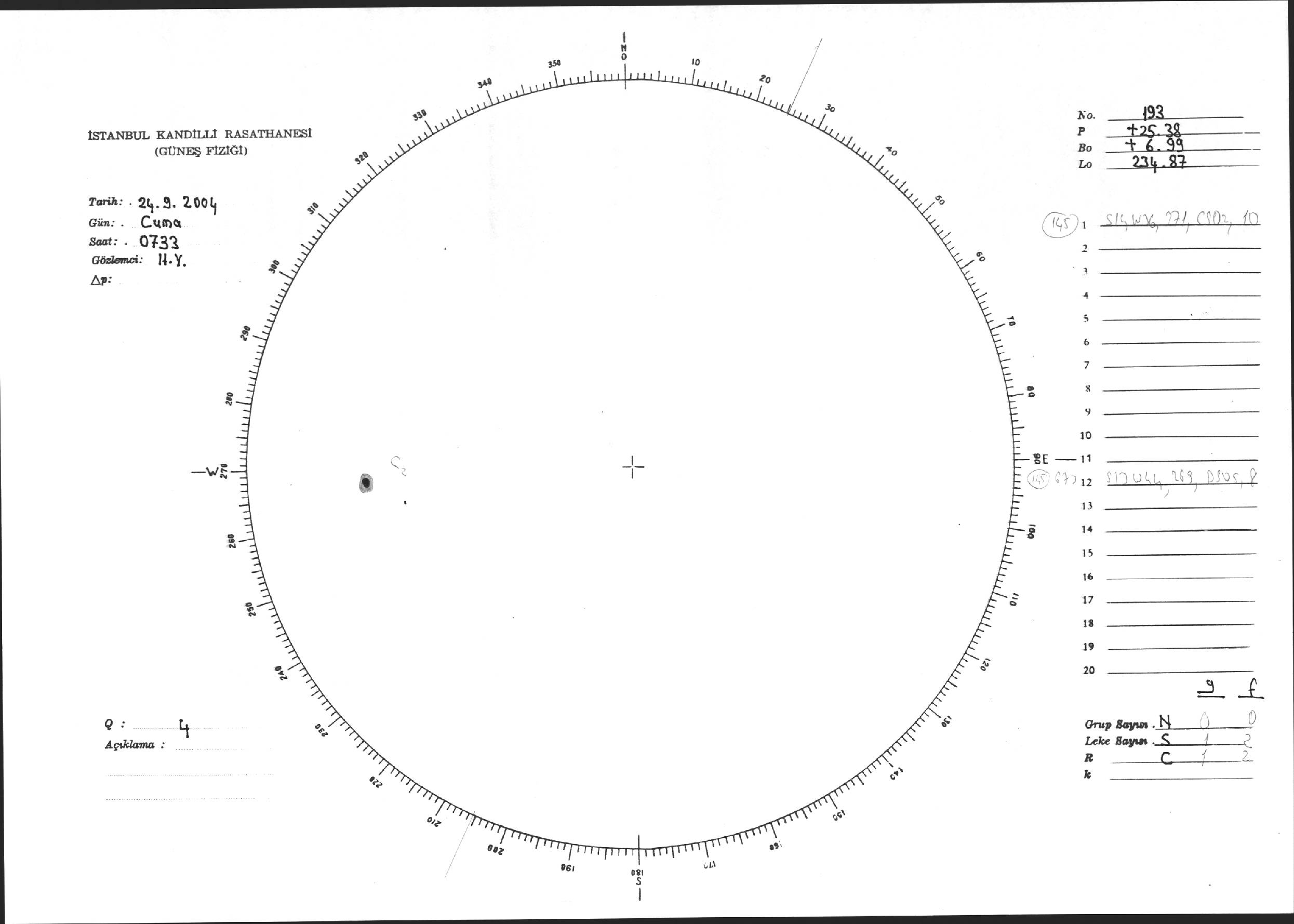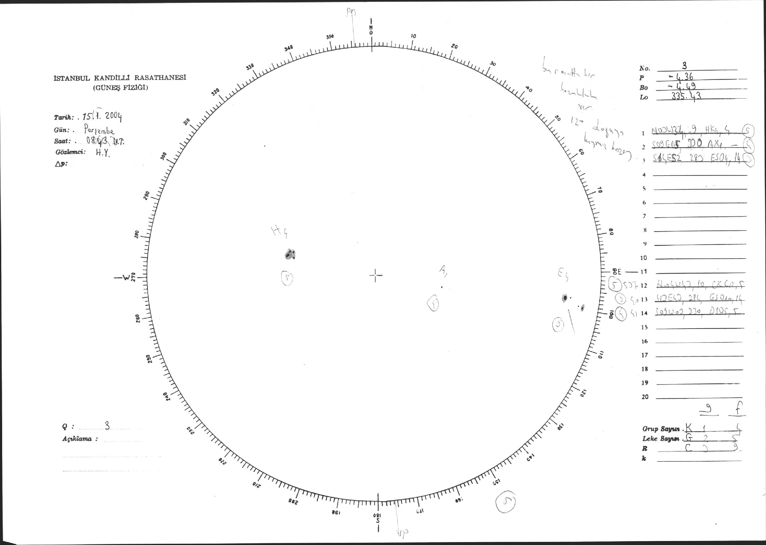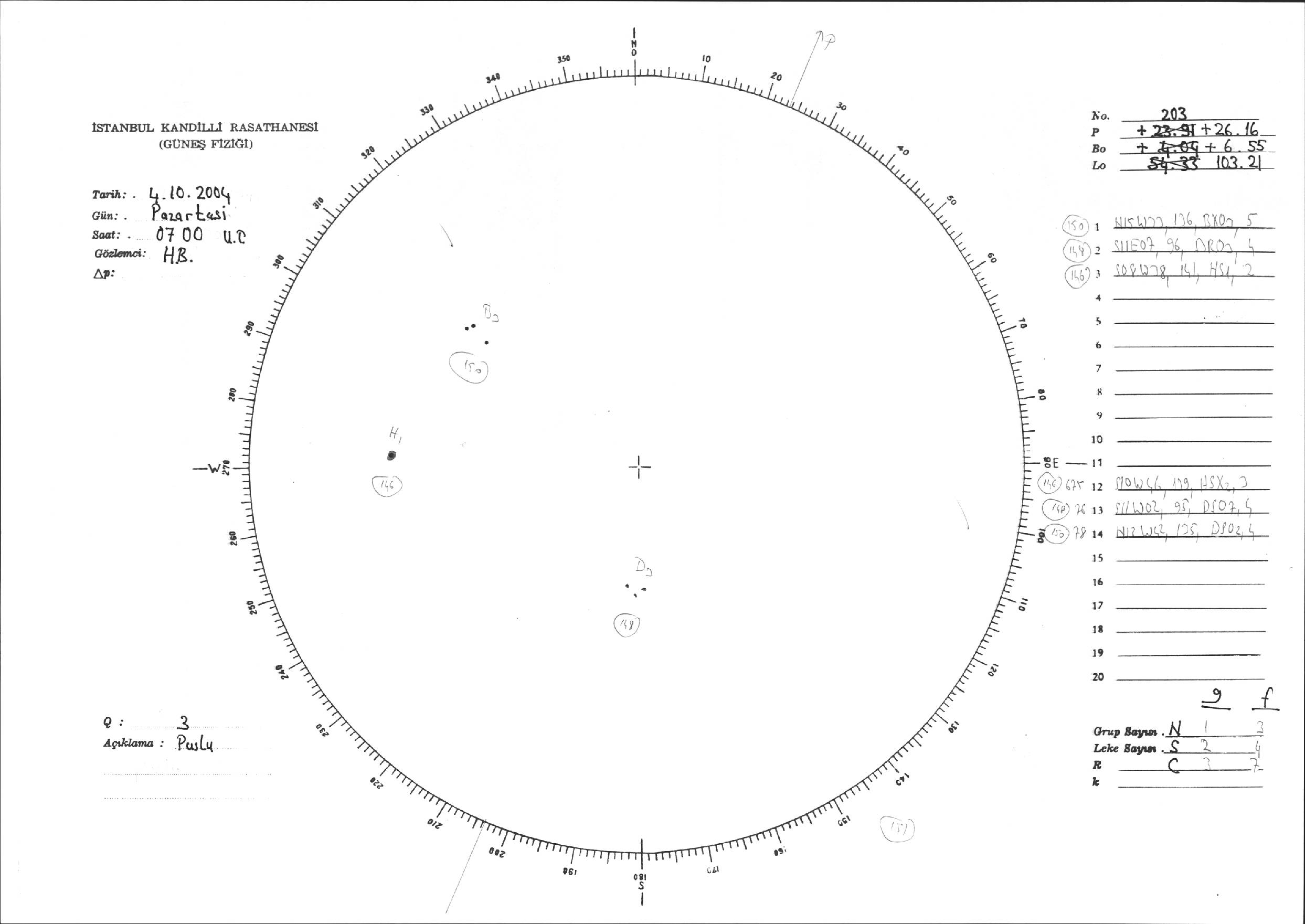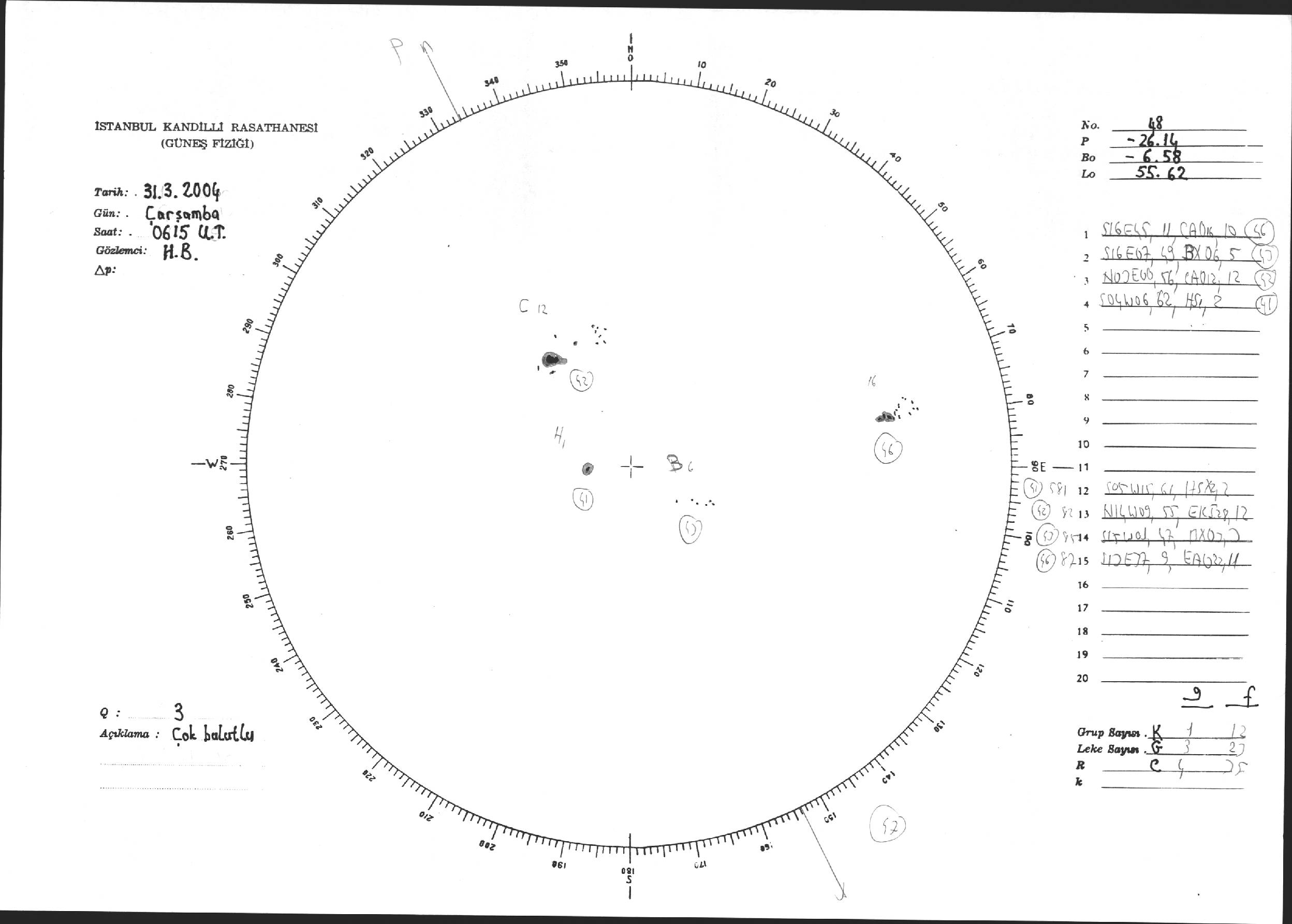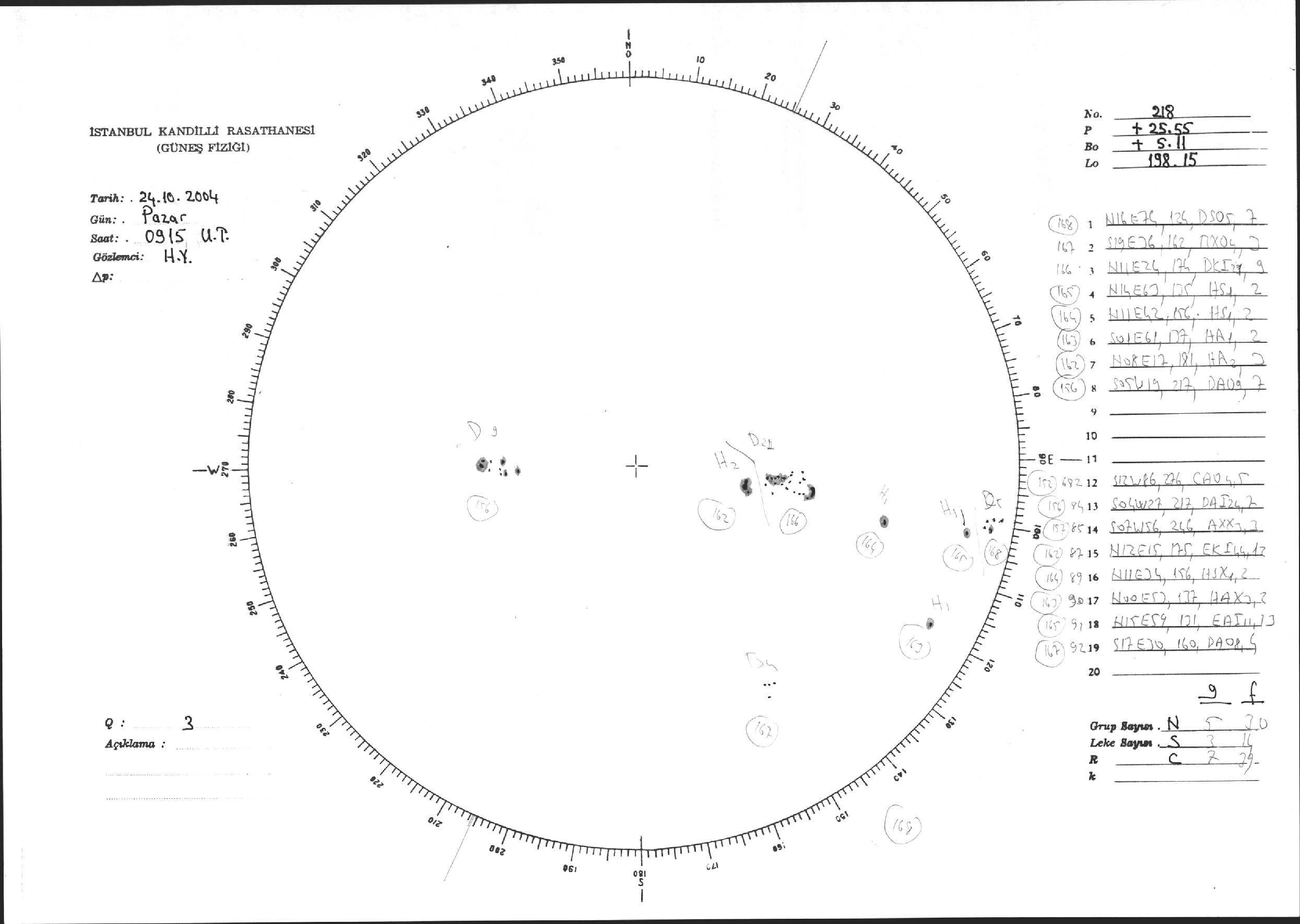 Güneş Lekesi Çizimleri / Kandilli Sunspot Drawings