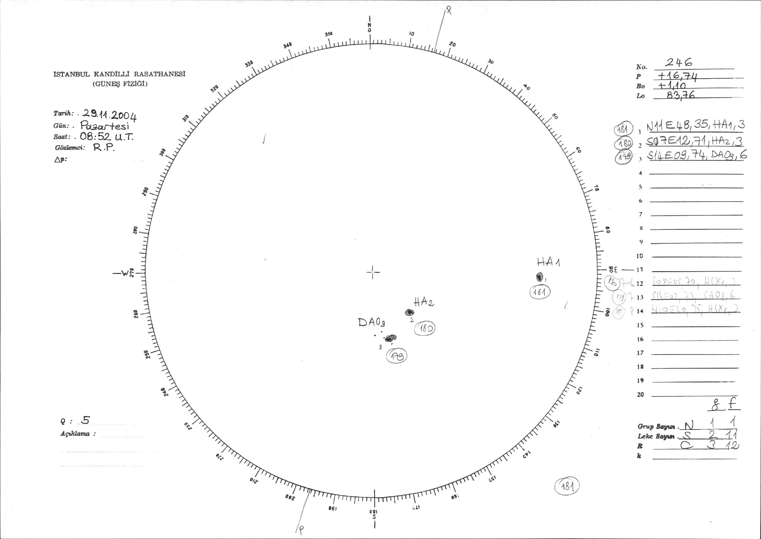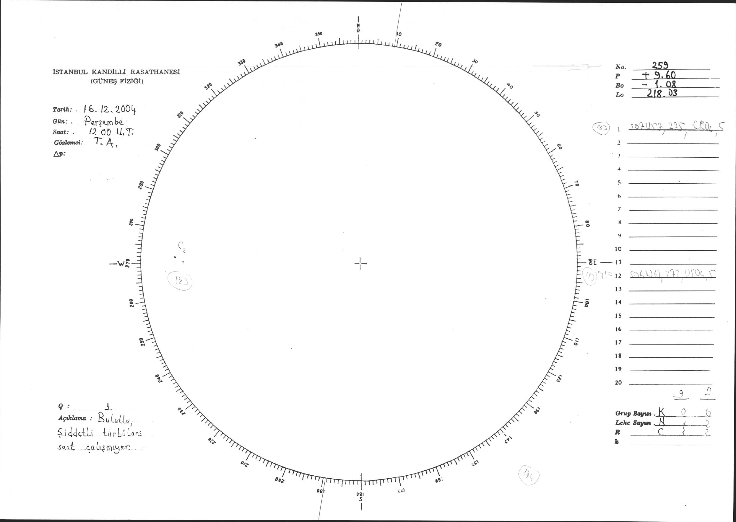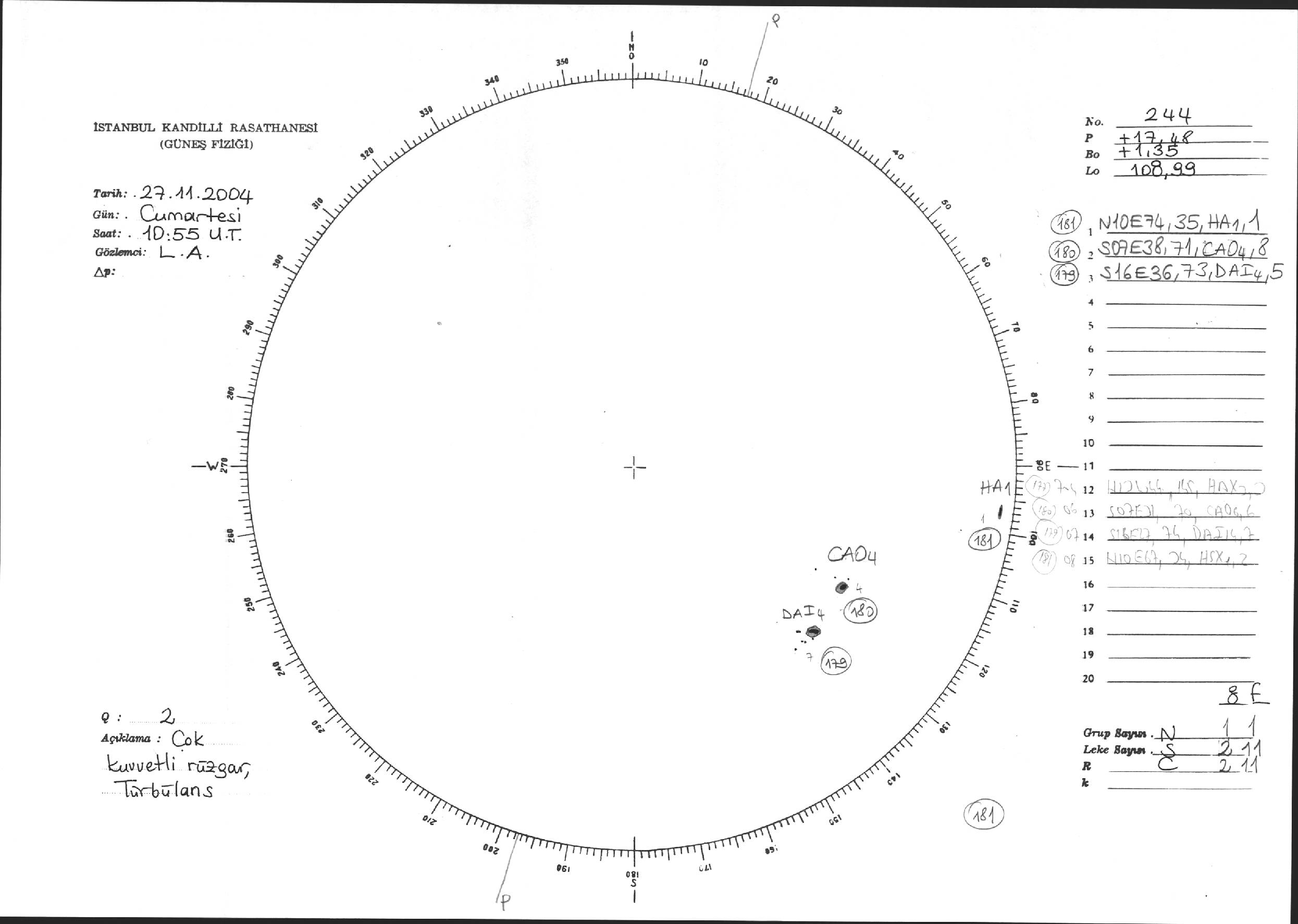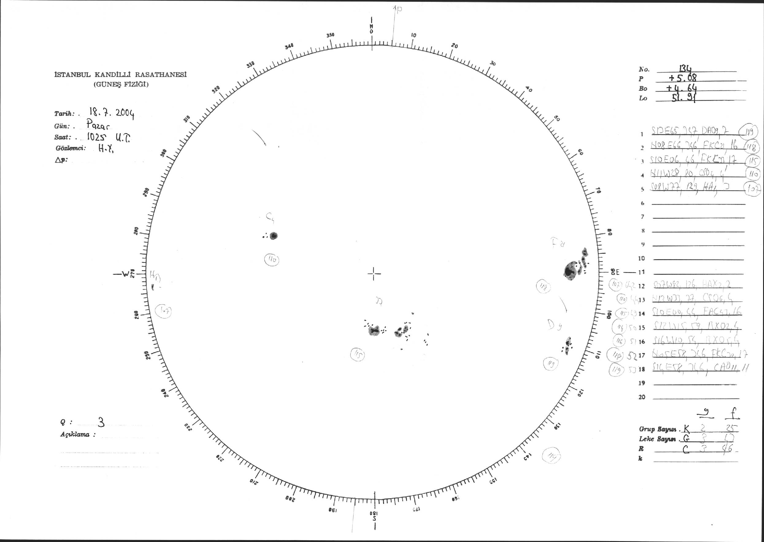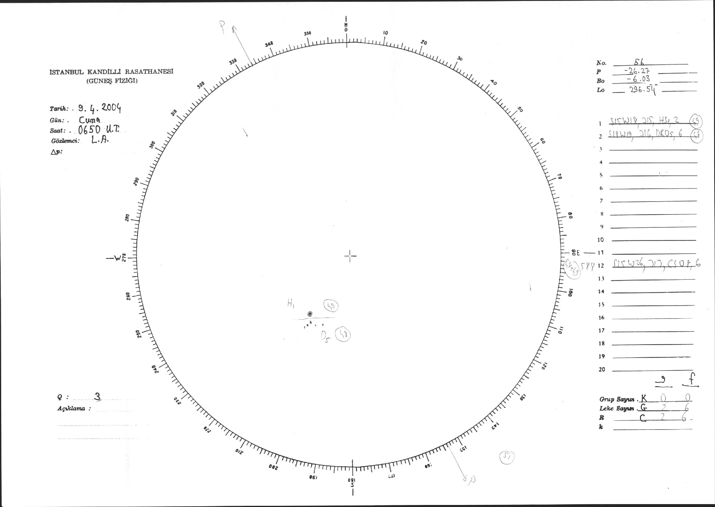 Güneş Lekesi Çizimleri / Kandilli Sunspot Drawings