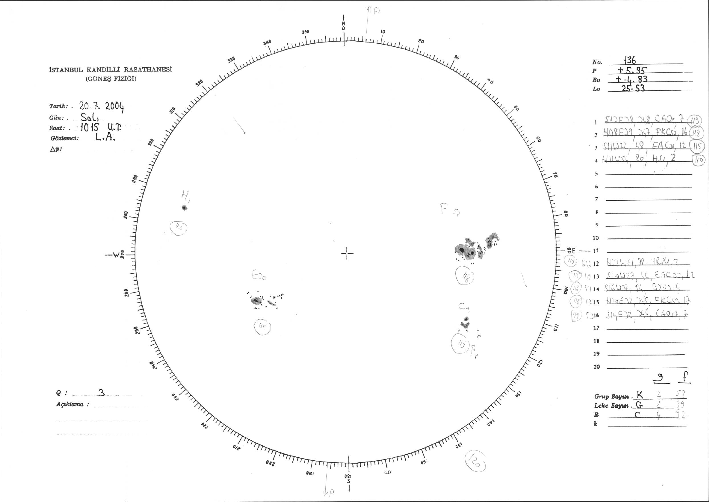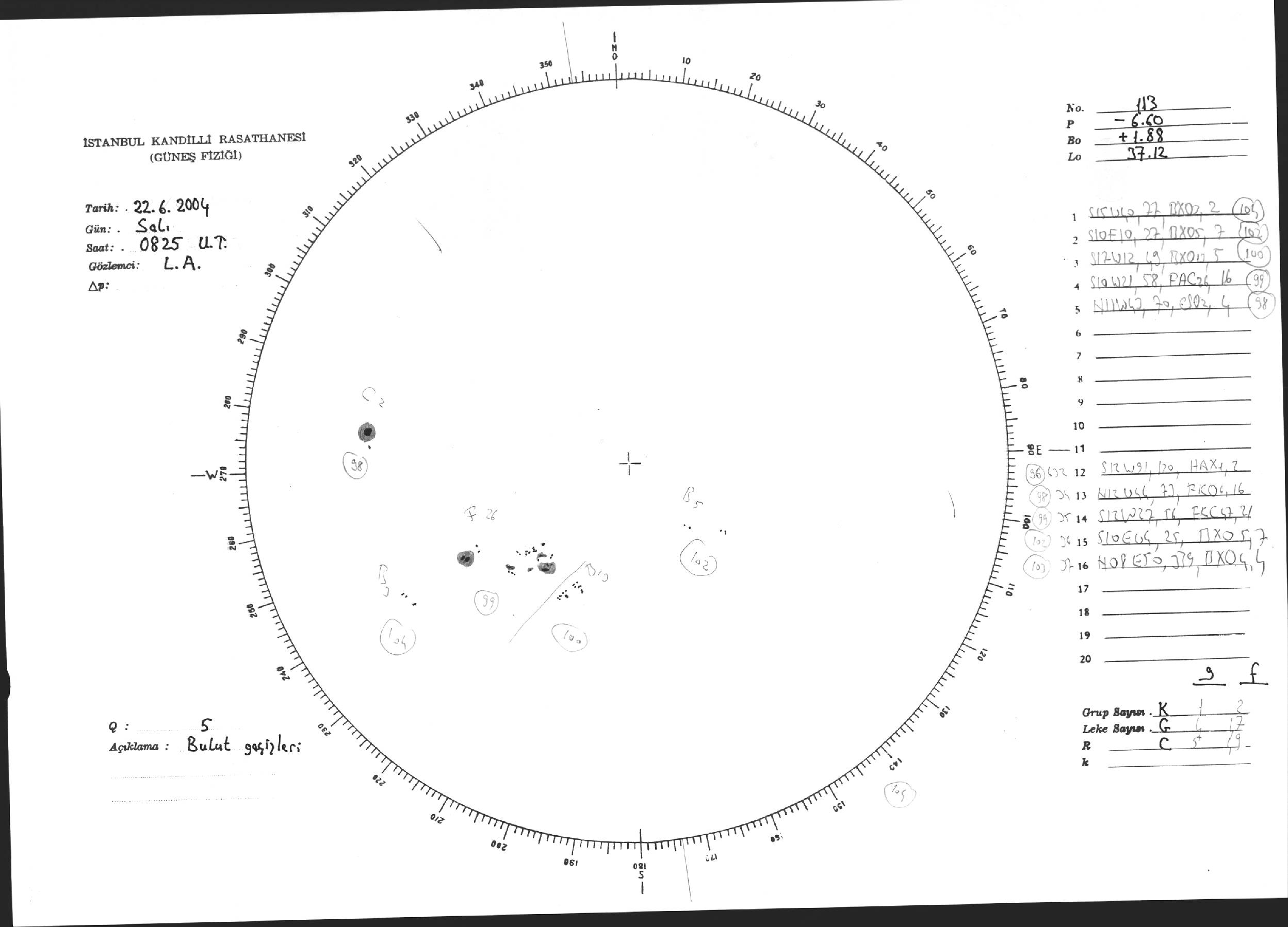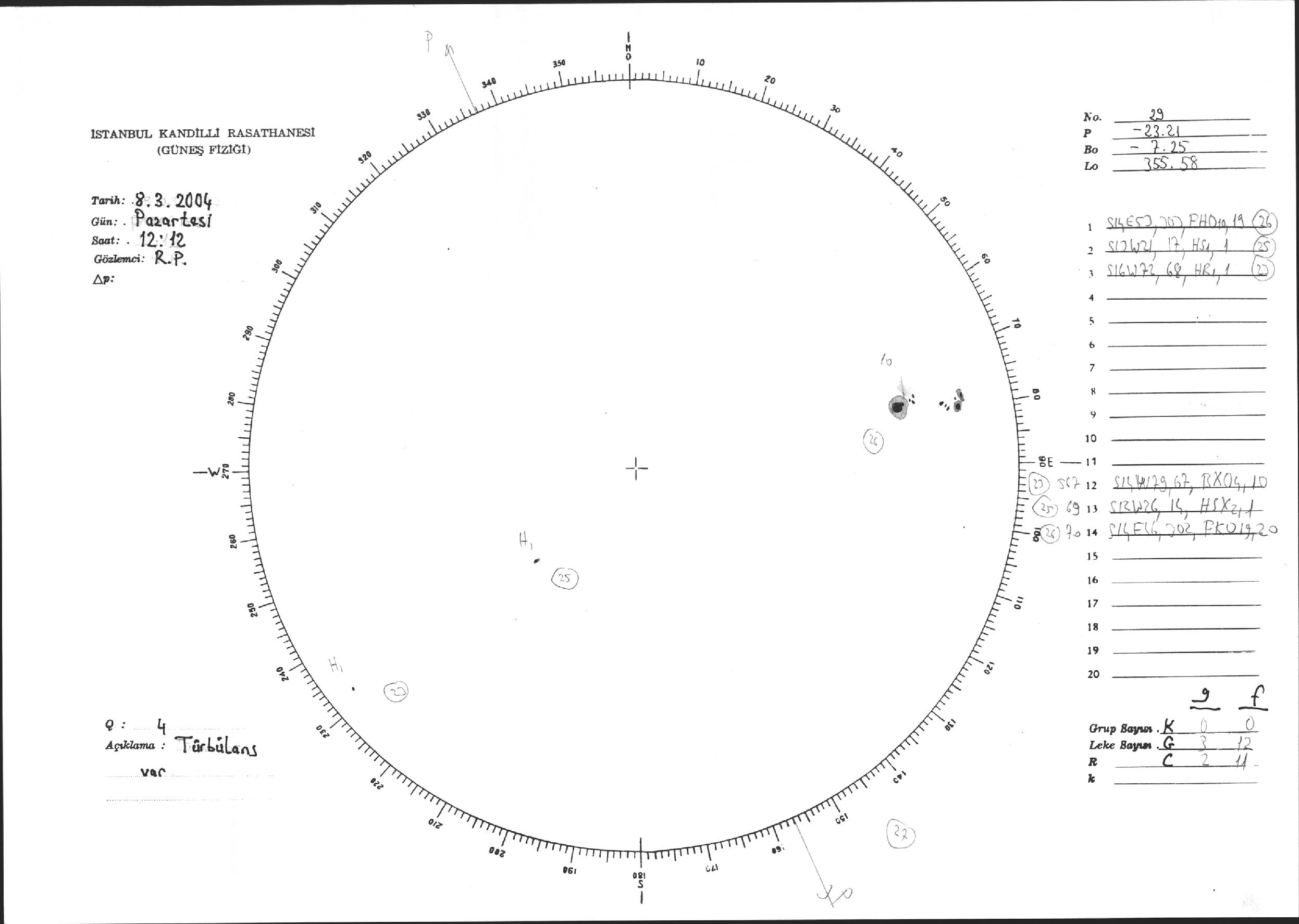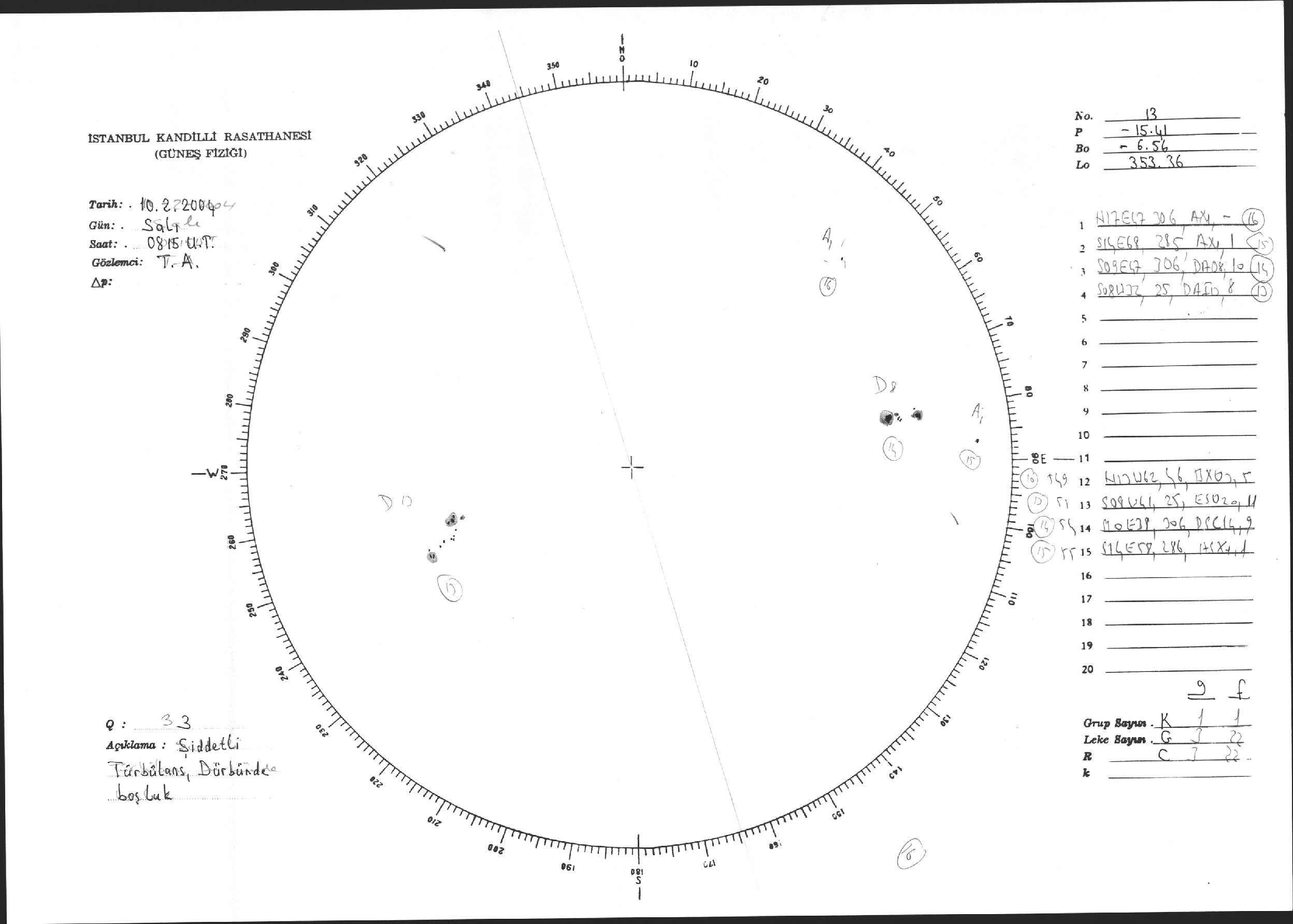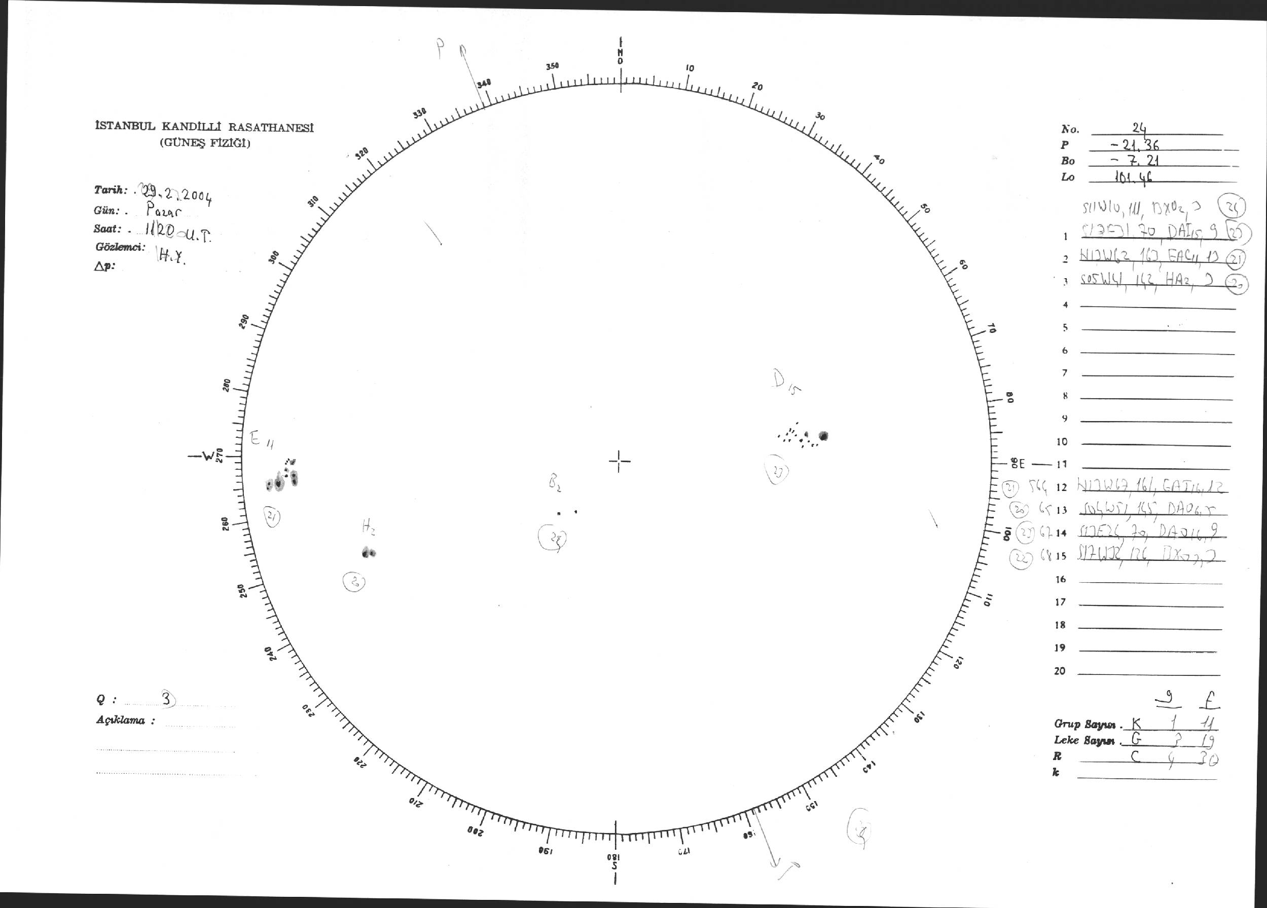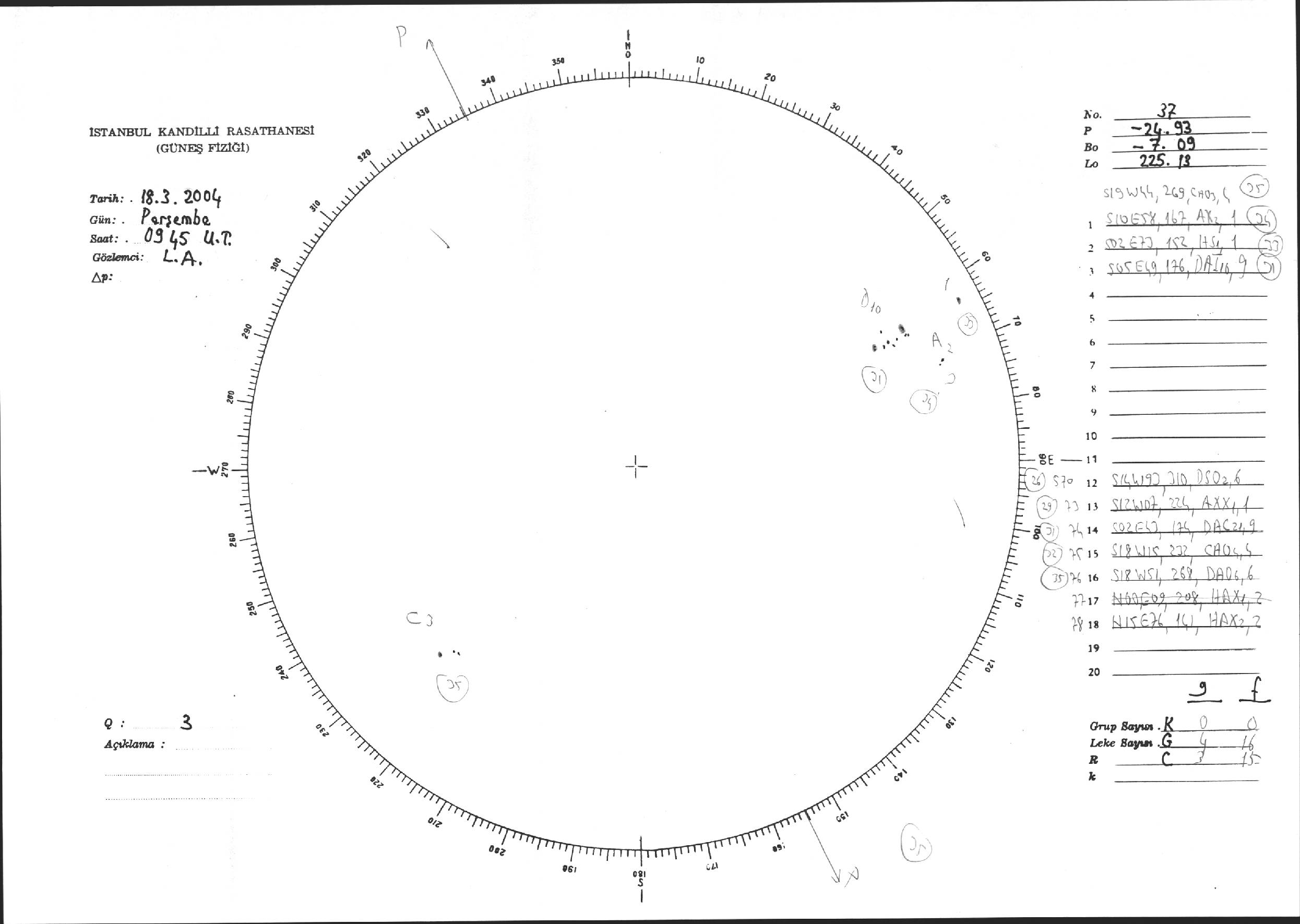Güneş Lekesi Çizimleri / Kandilli Sunspot Drawings