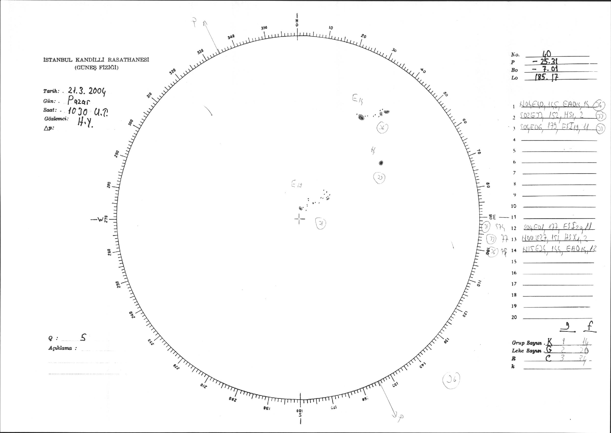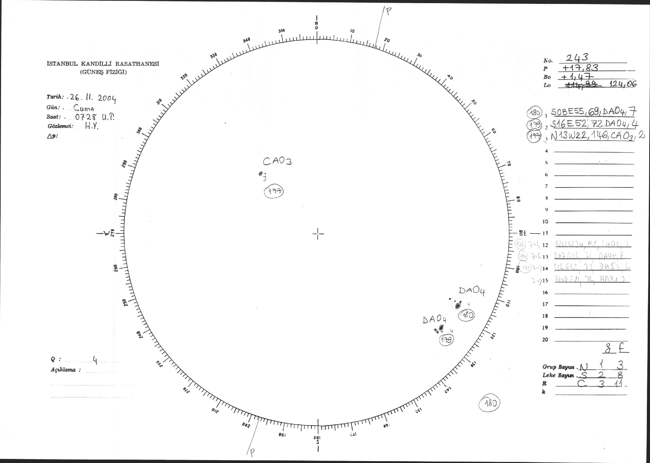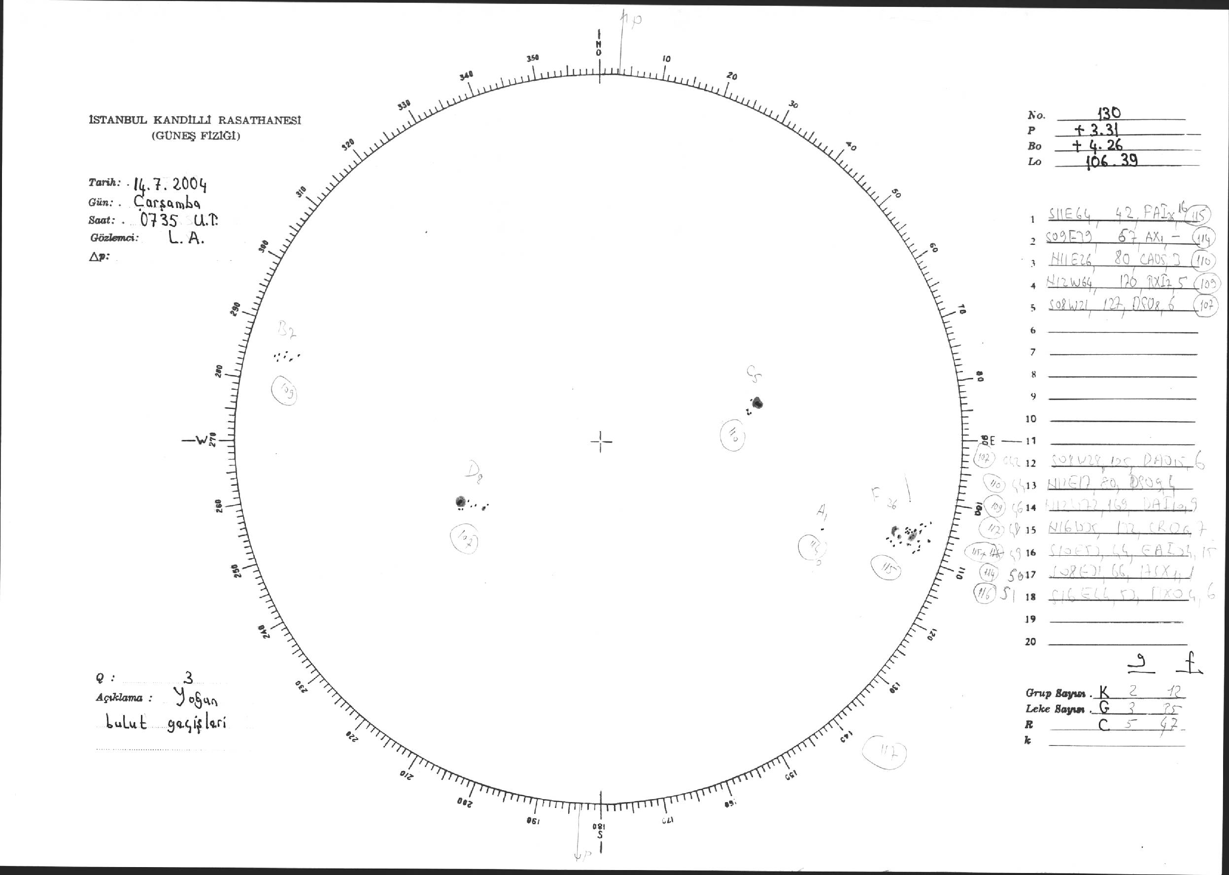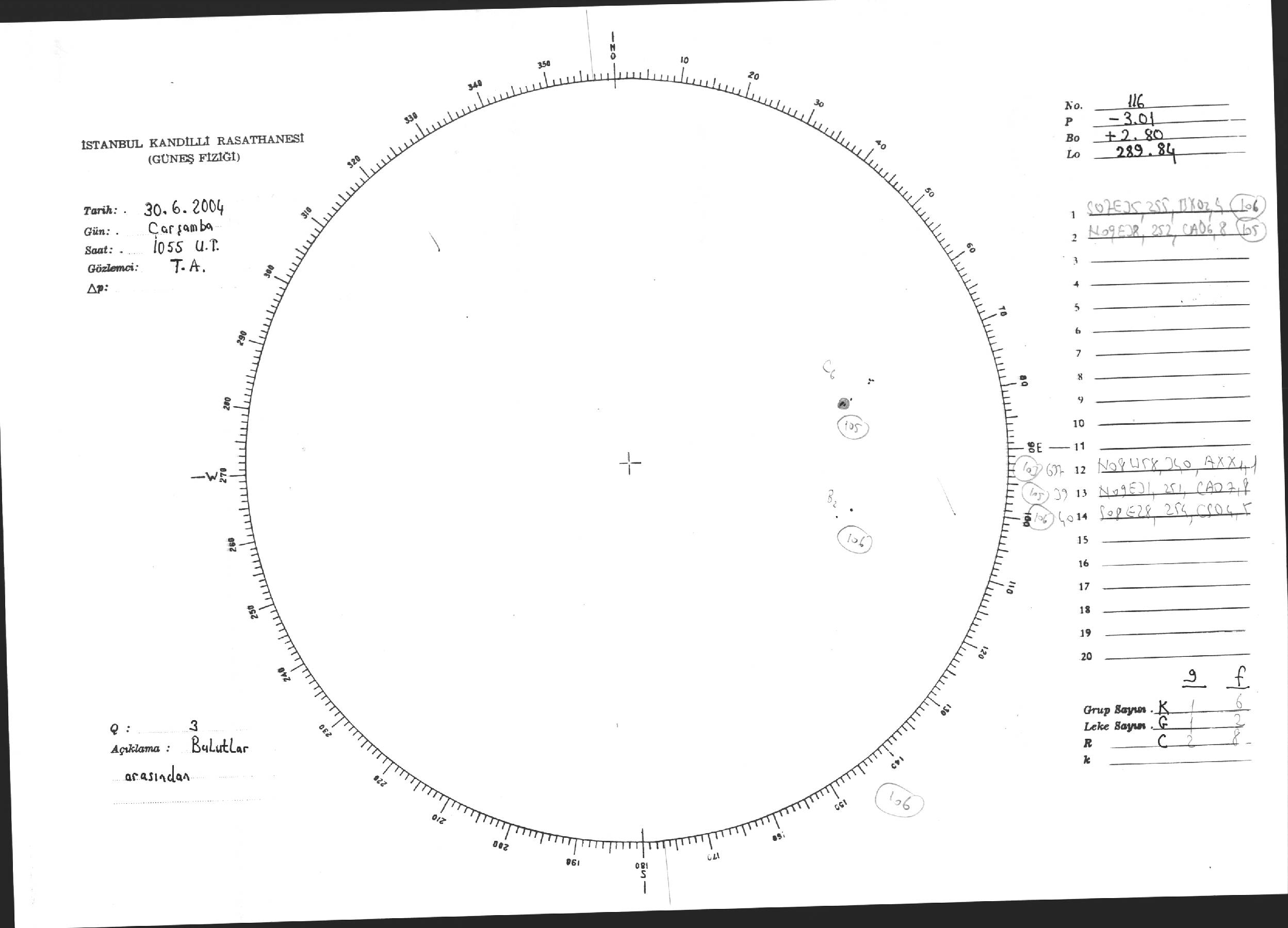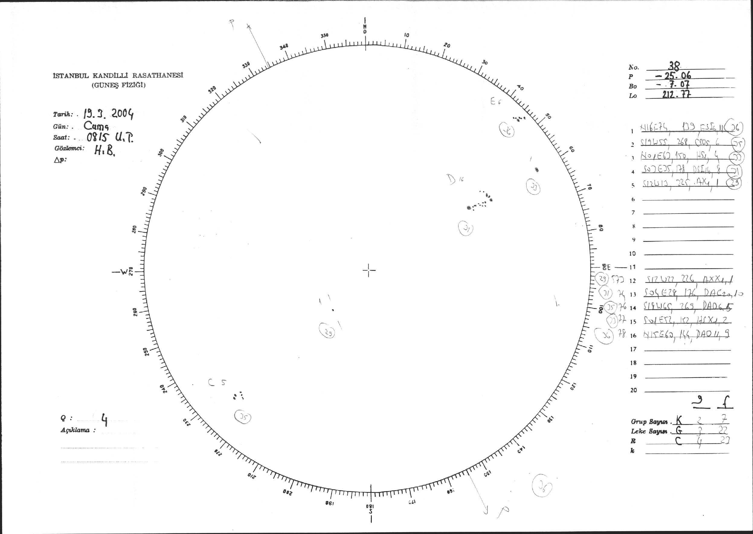 Güneş Lekesi Çizimleri / Kandilli Sunspot Drawings