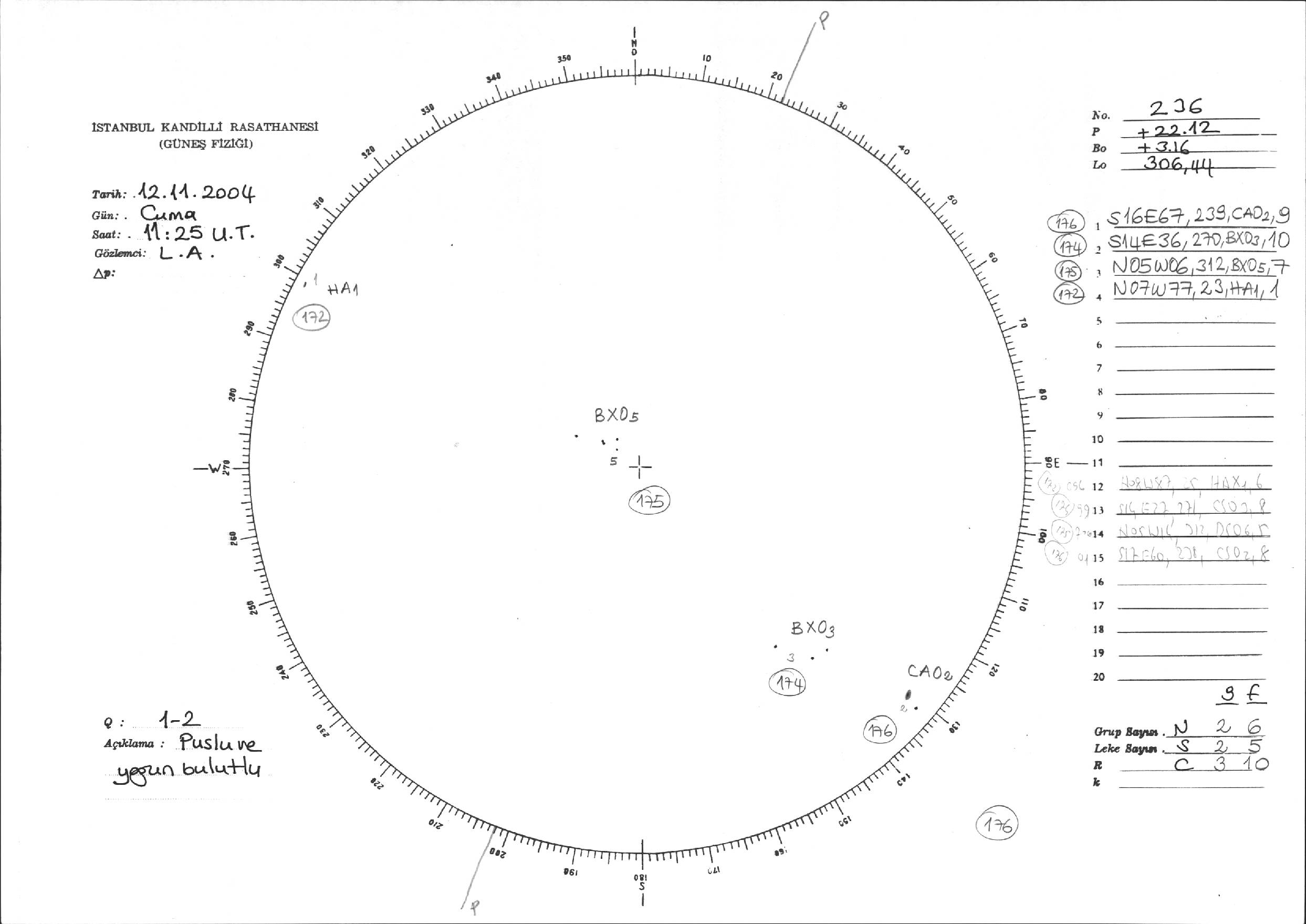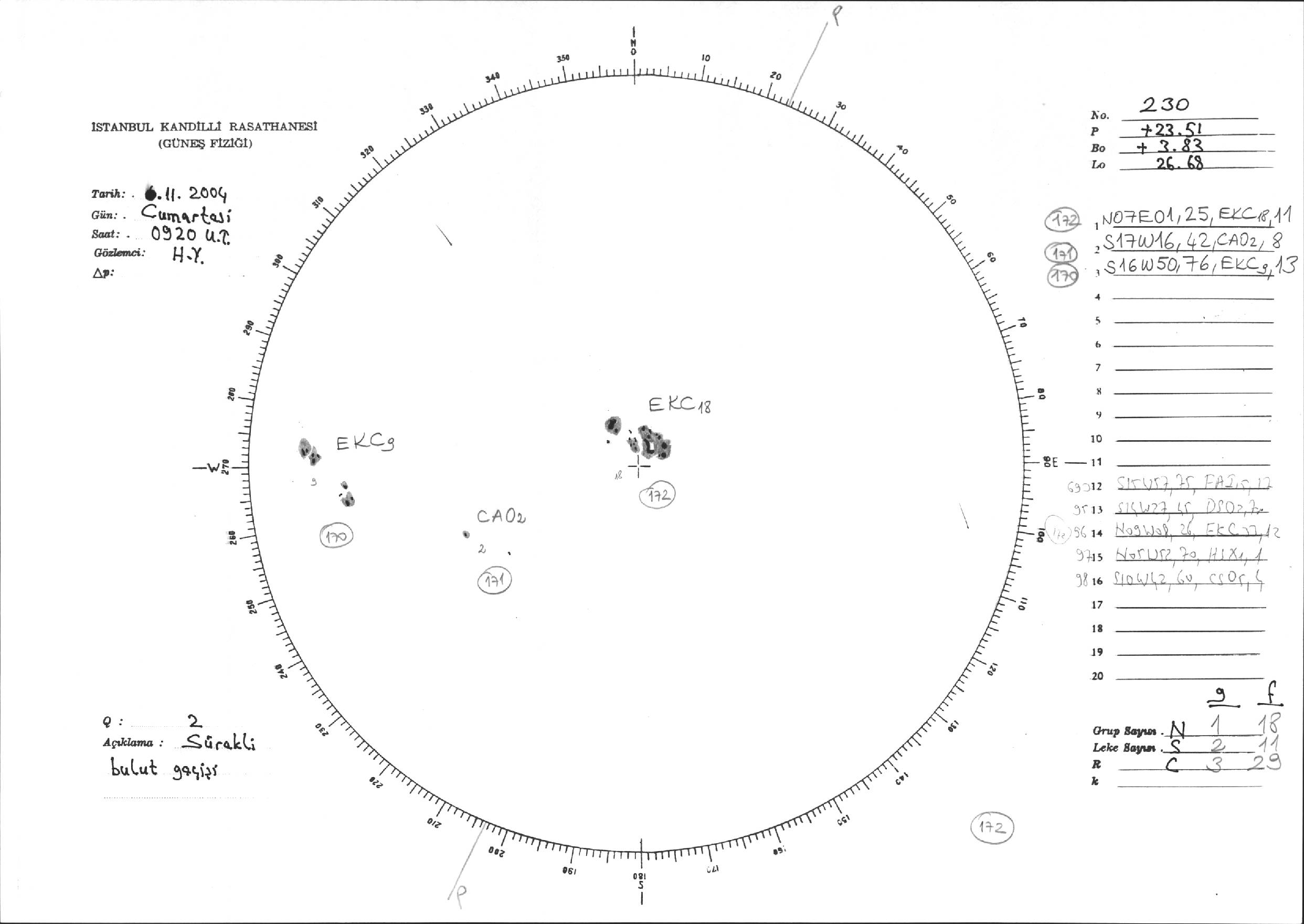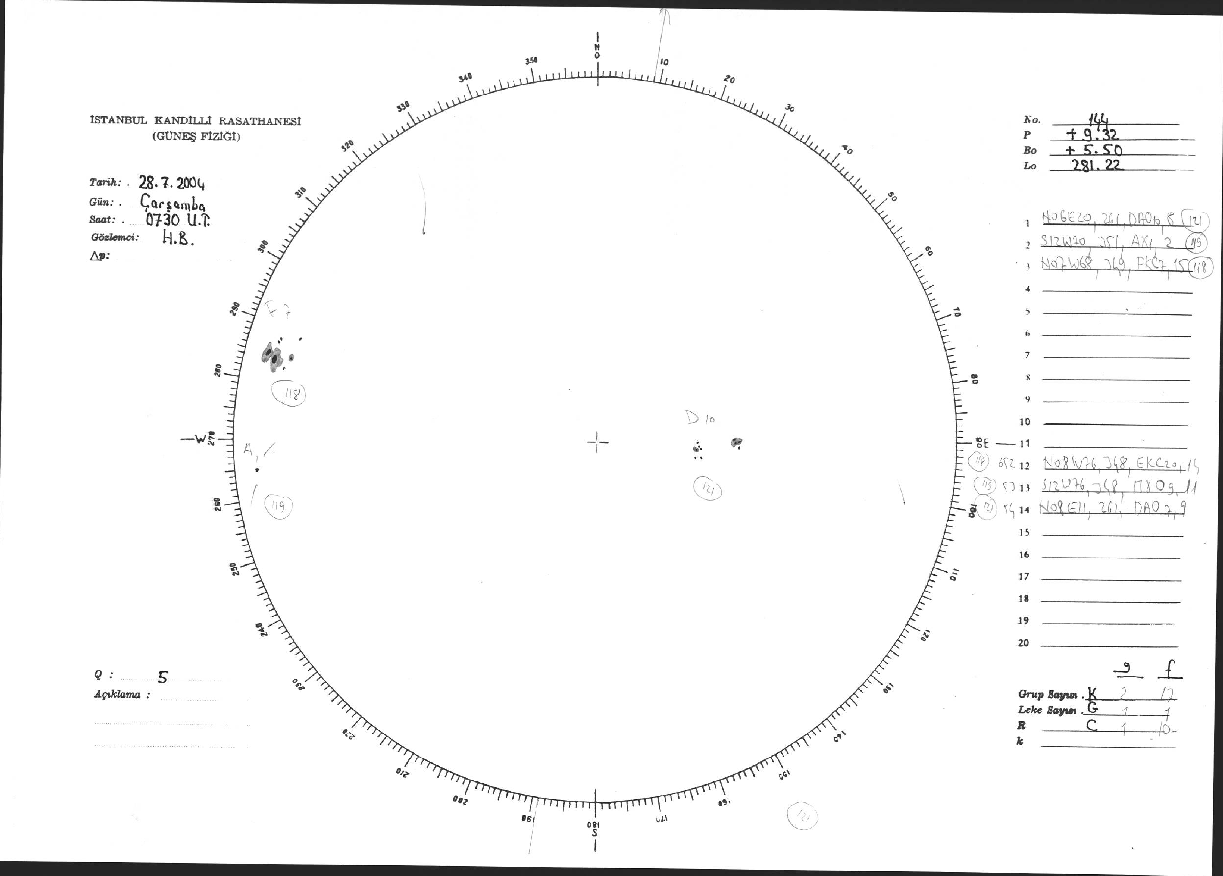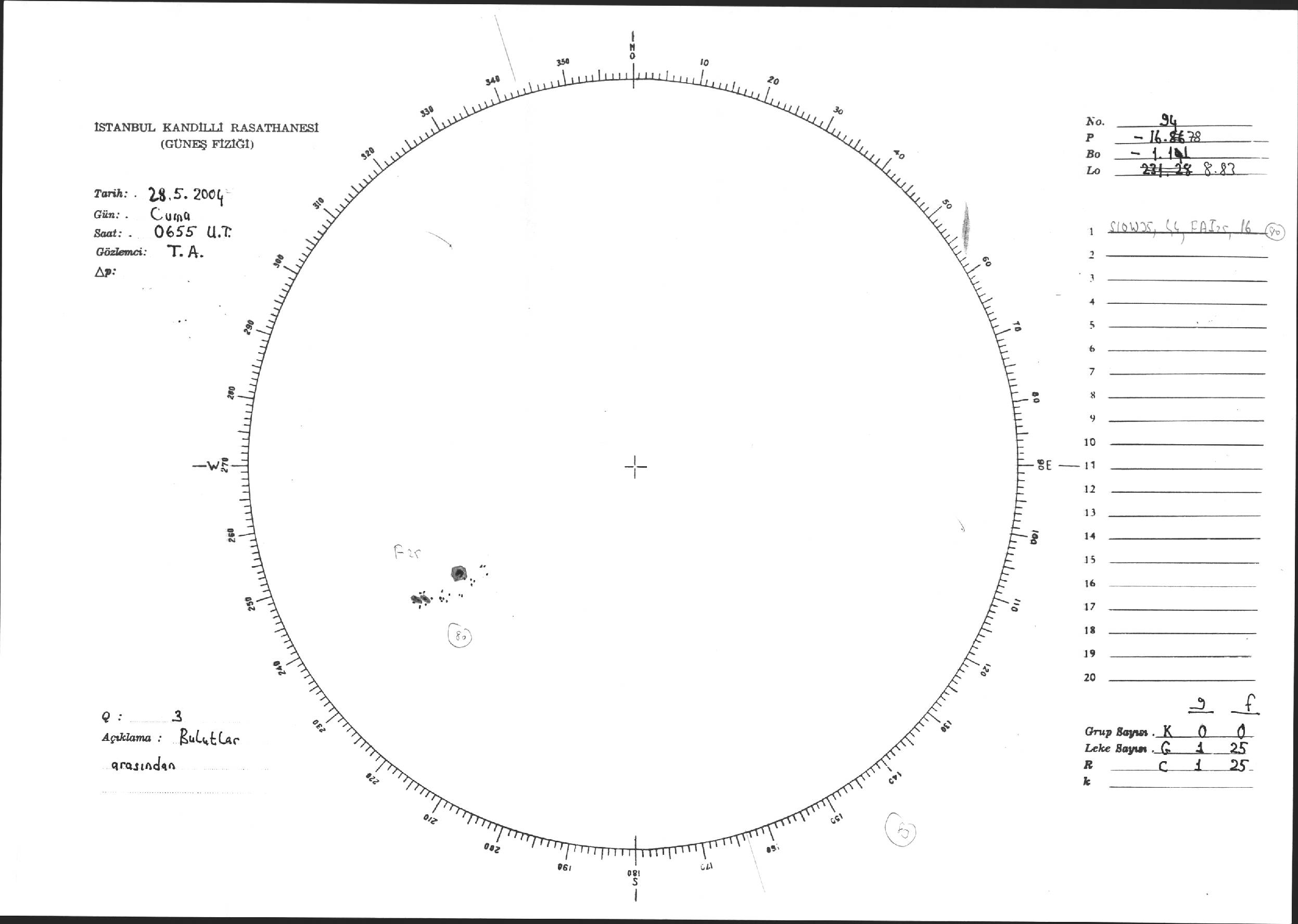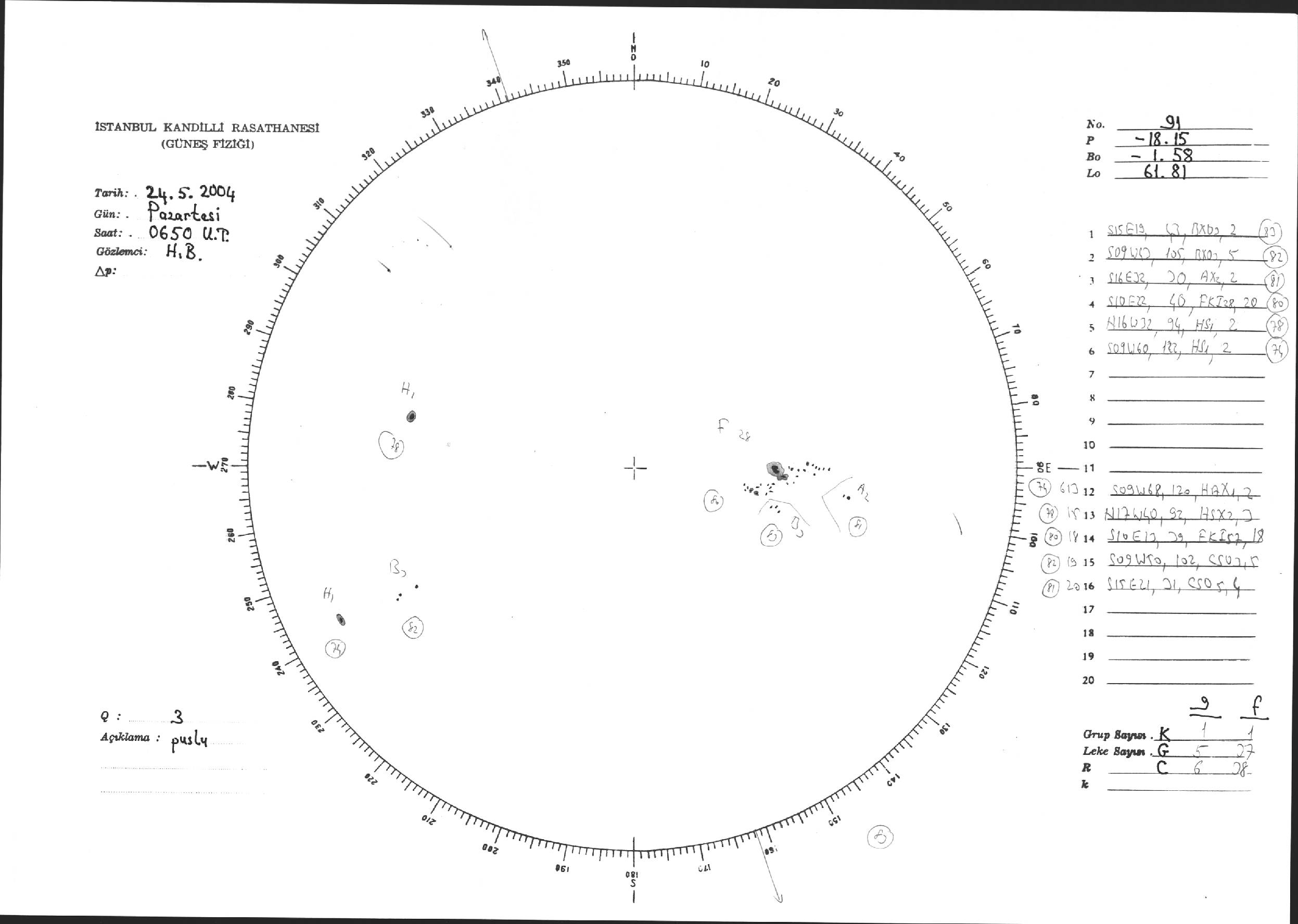 Güneş Lekesi Çizimleri / Kandilli Sunspot Drawings