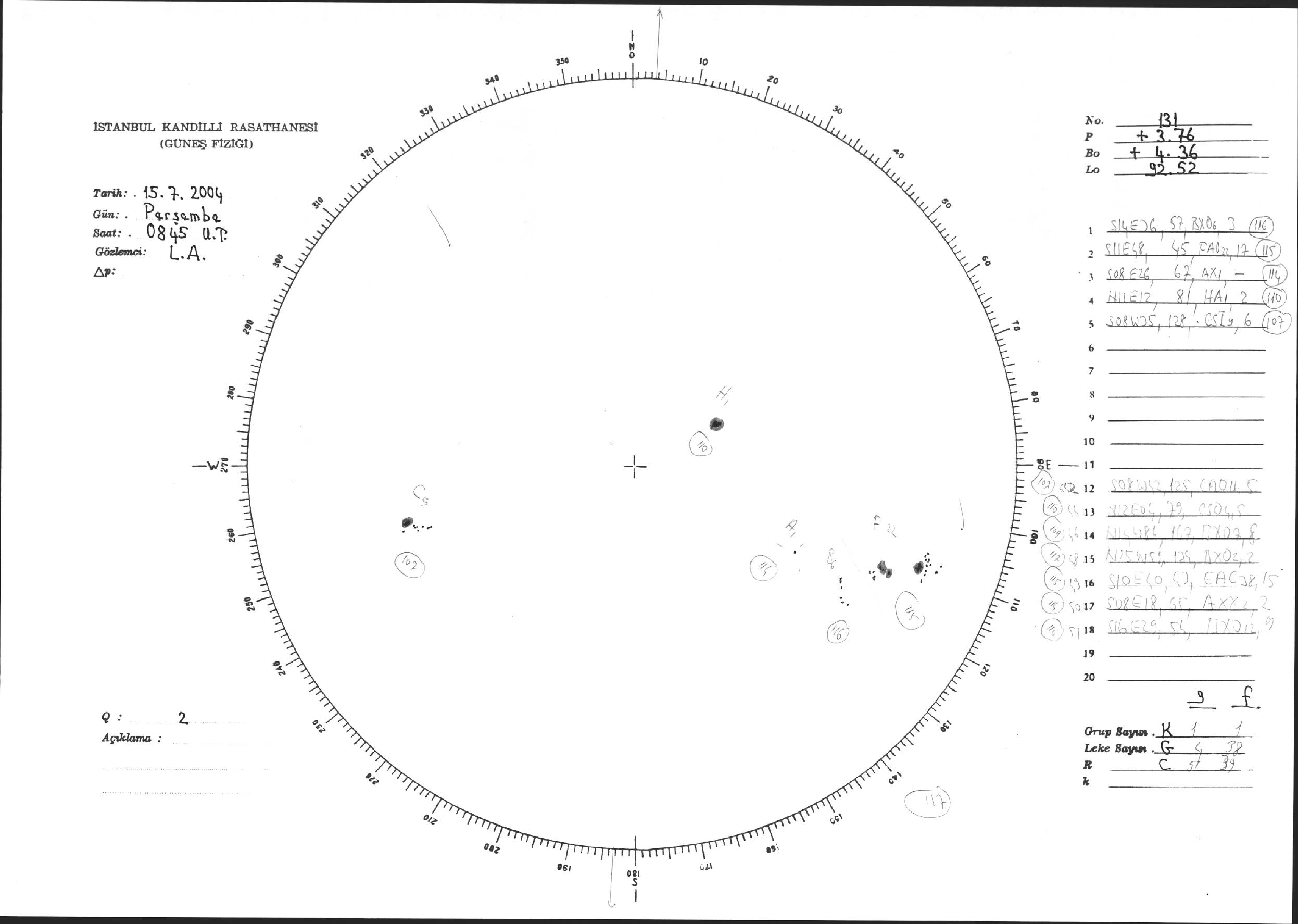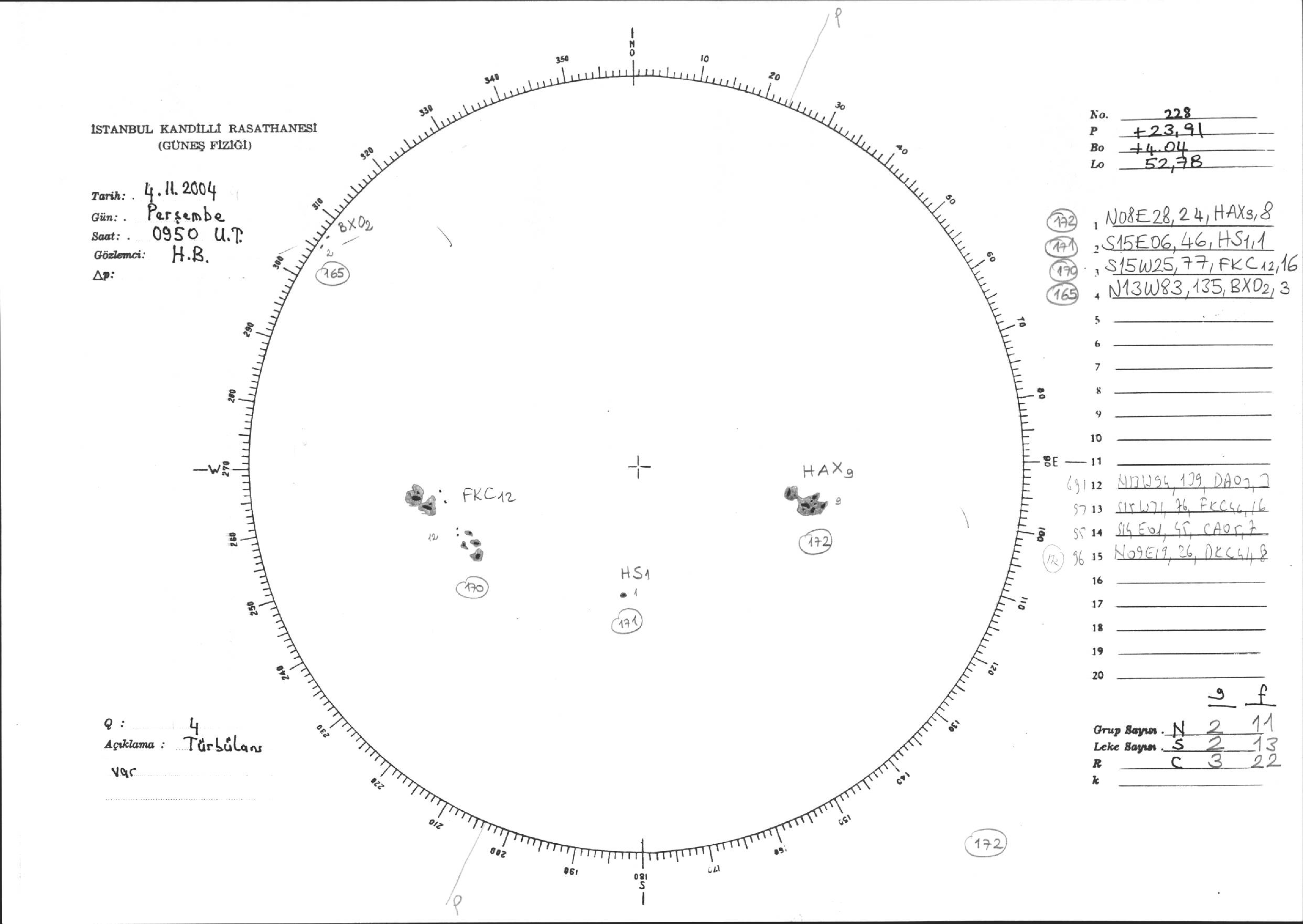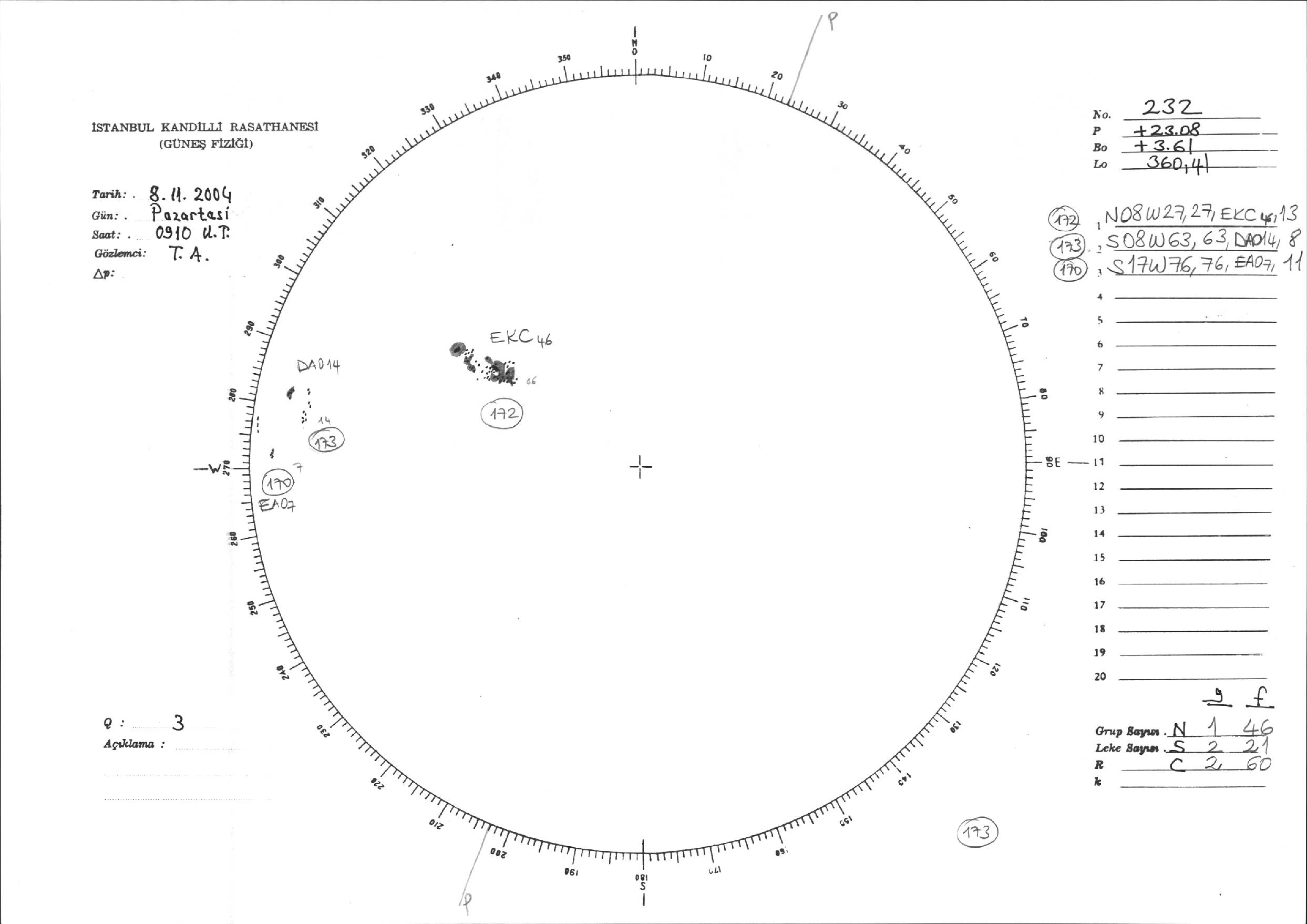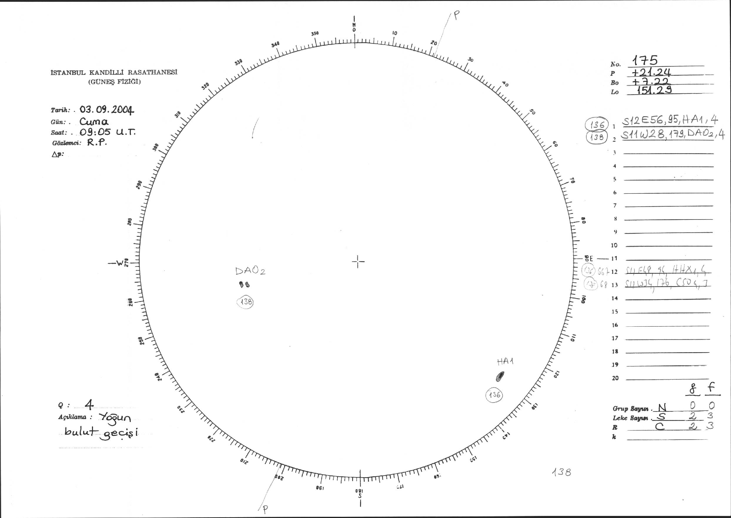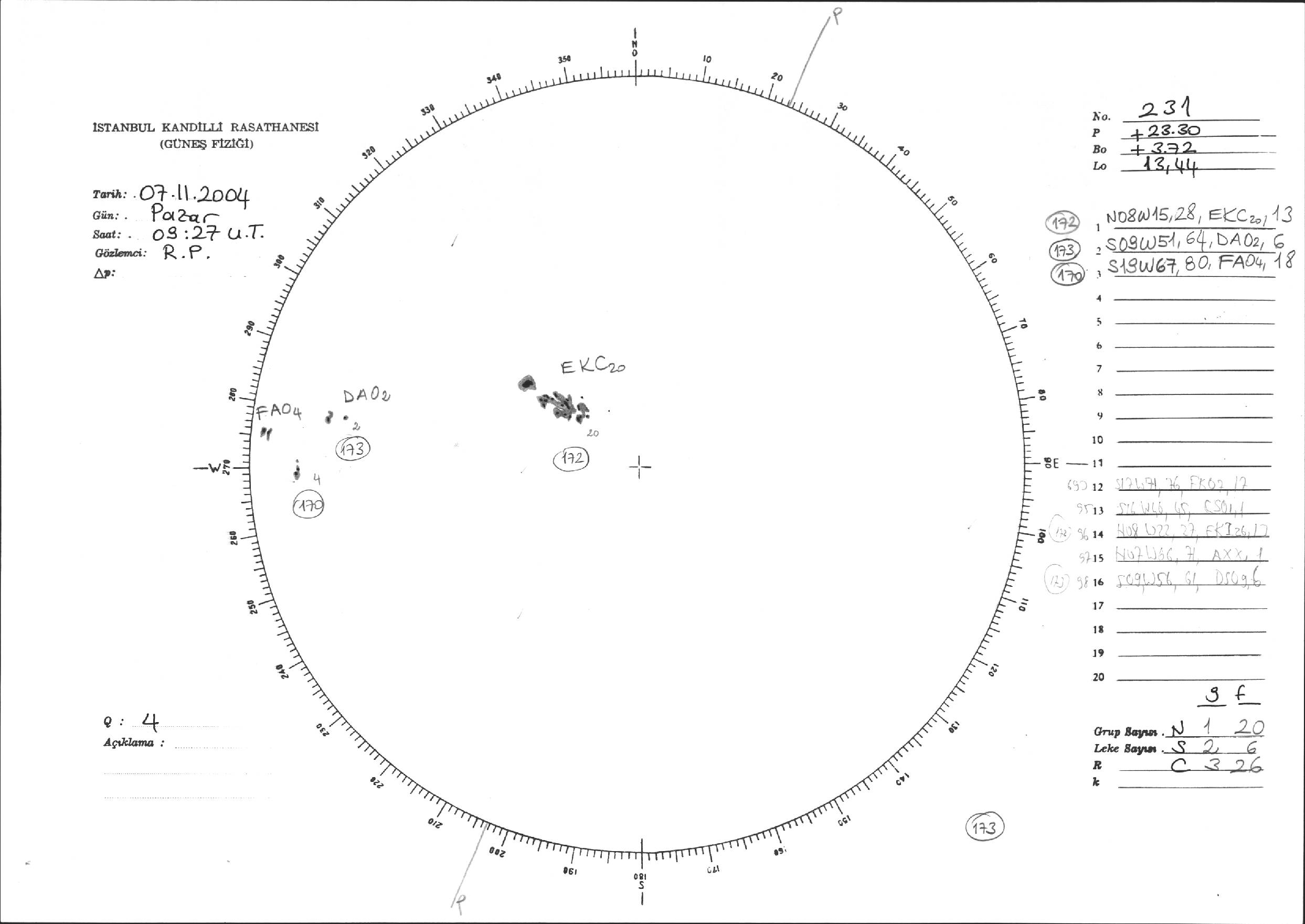 Güneş Lekesi Çizimleri / Kandilli Sunspot Drawings
