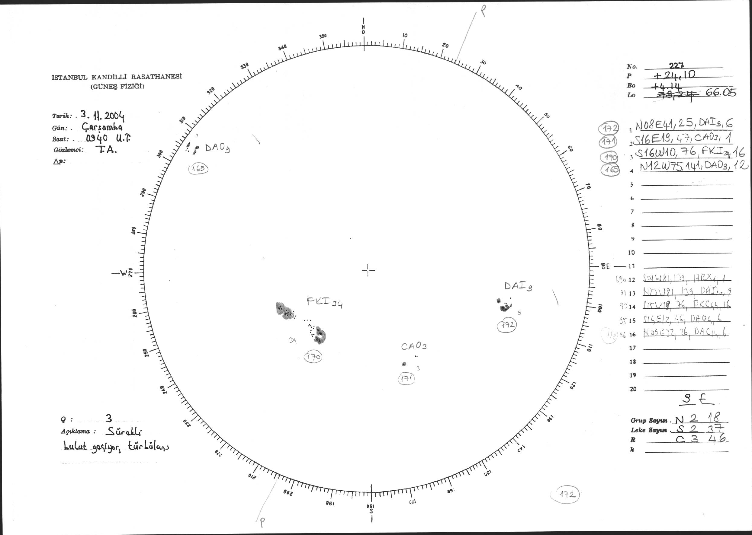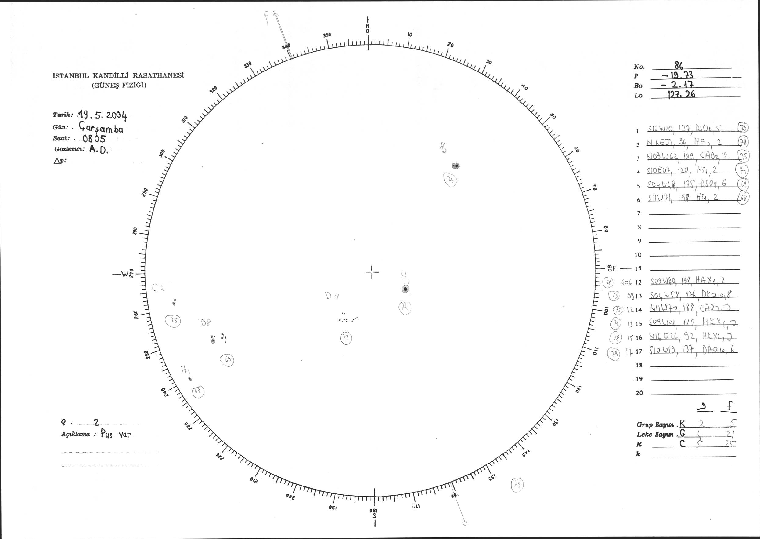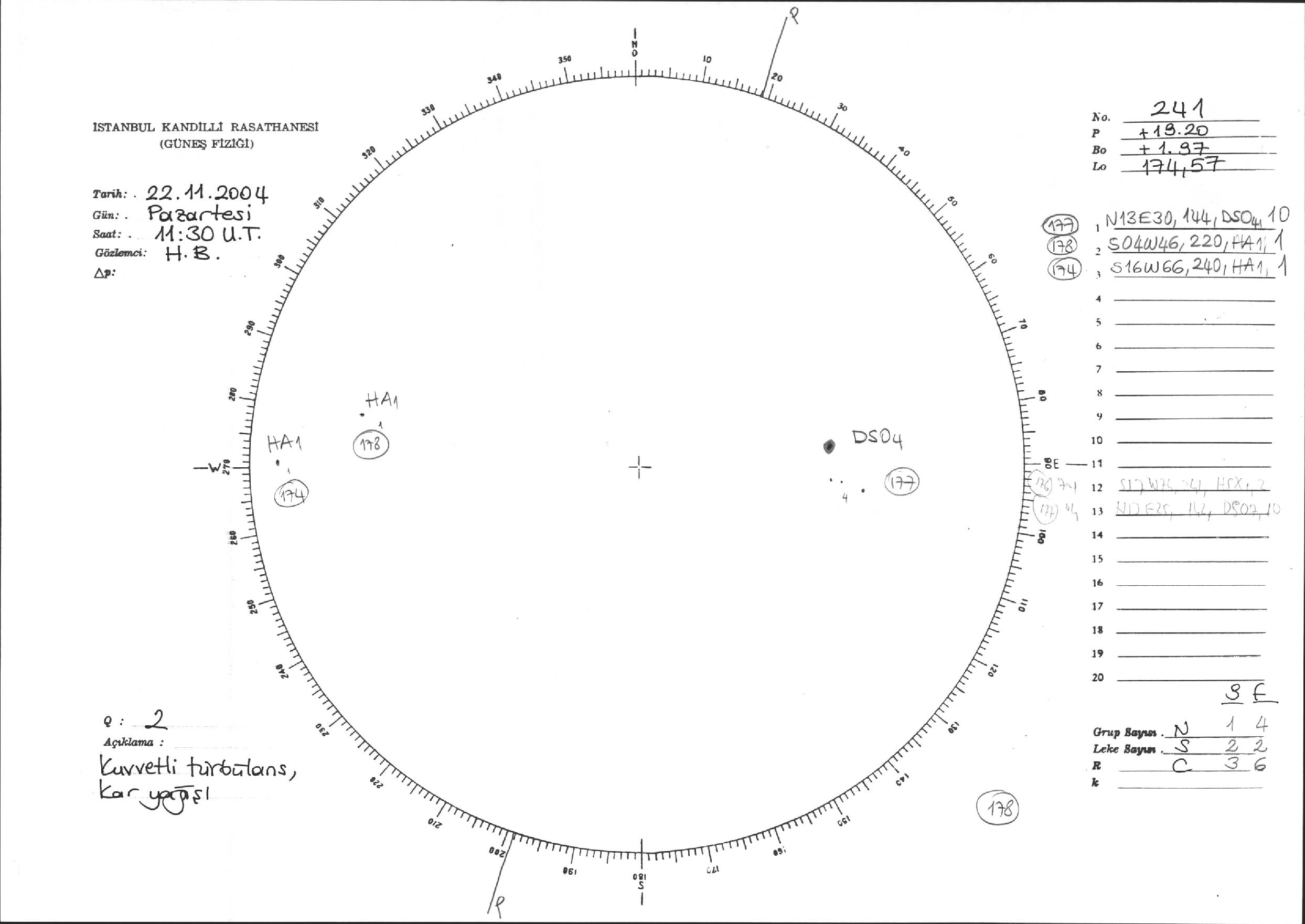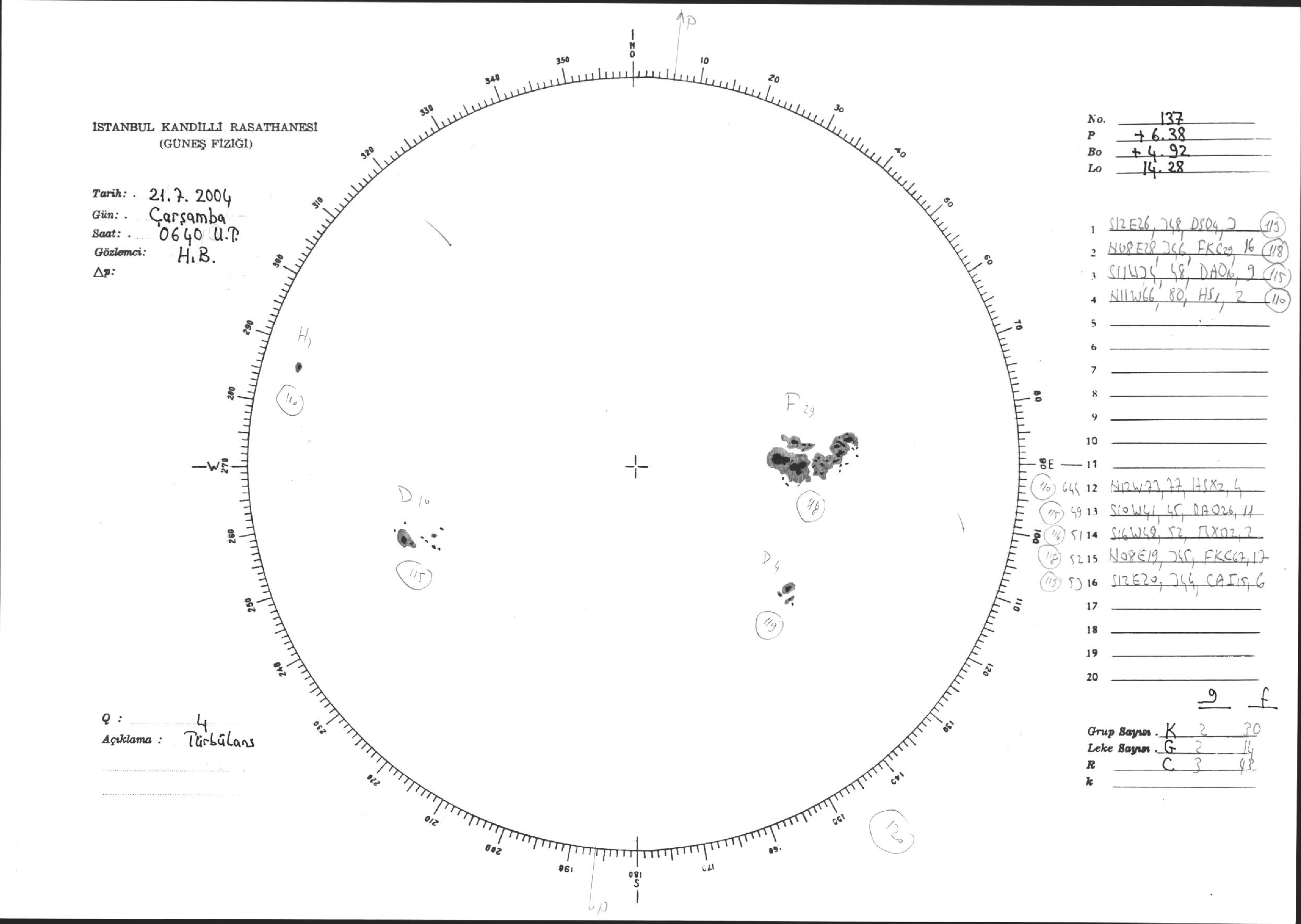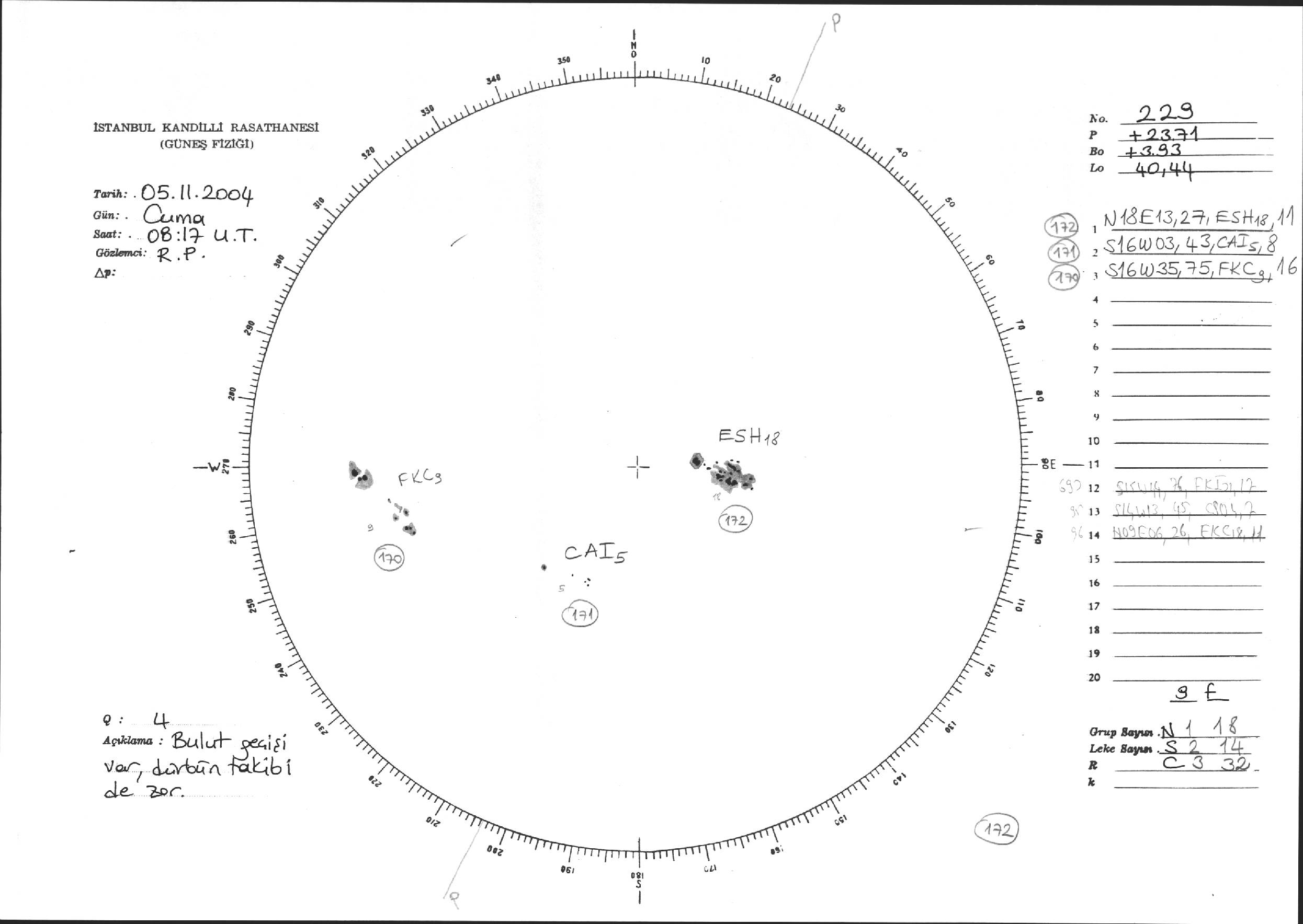Güneş Lekesi Çizimleri / Kandilli Sunspot Drawings