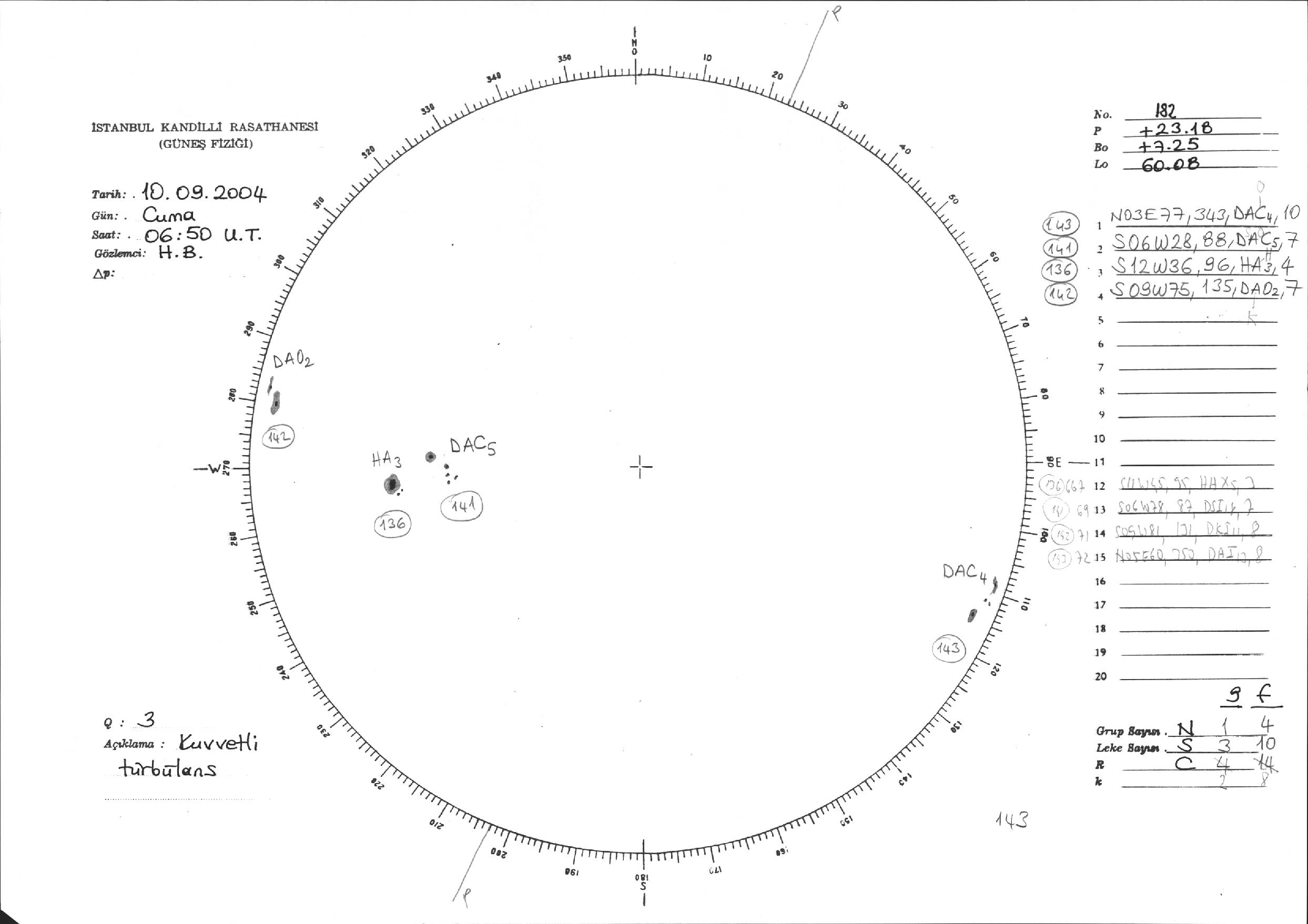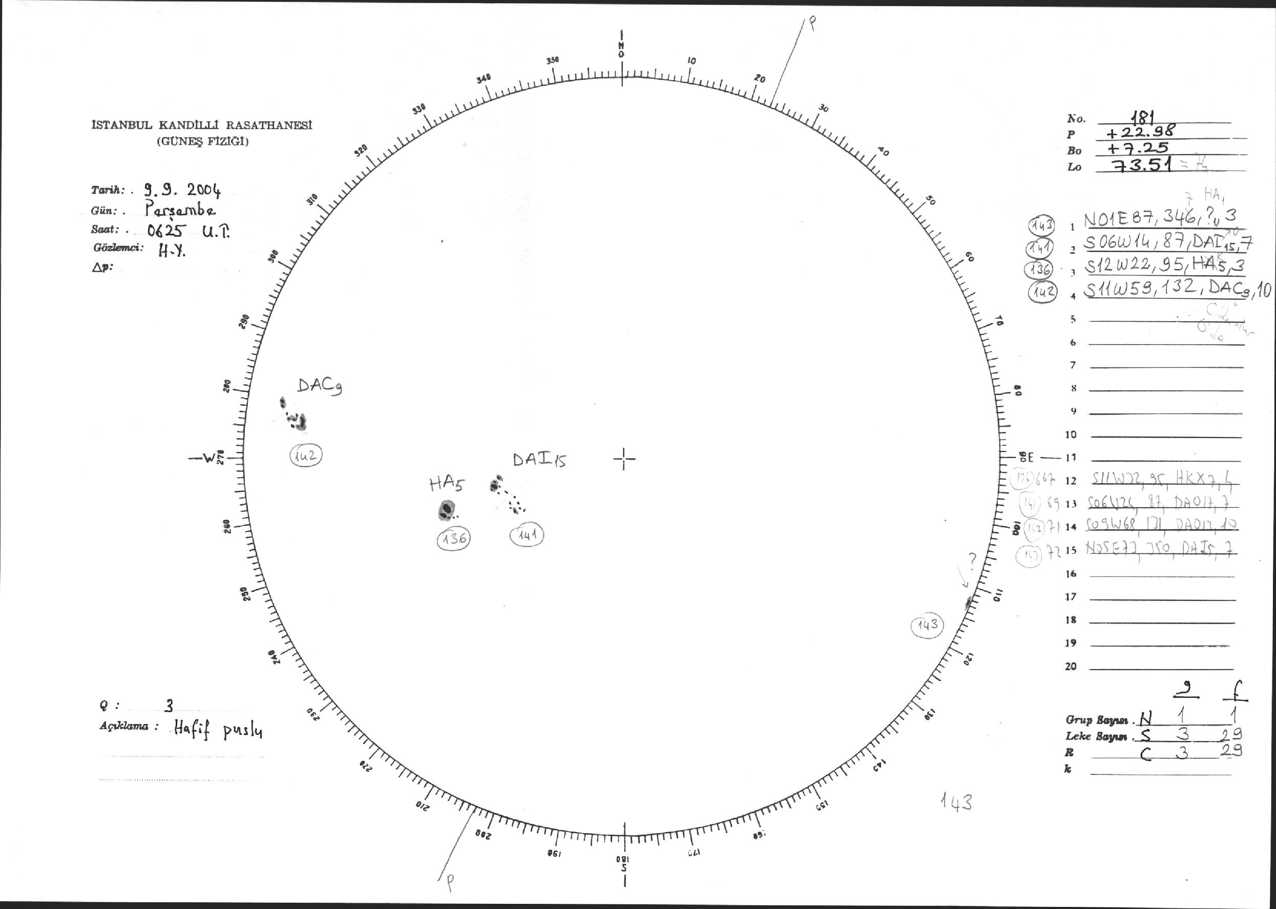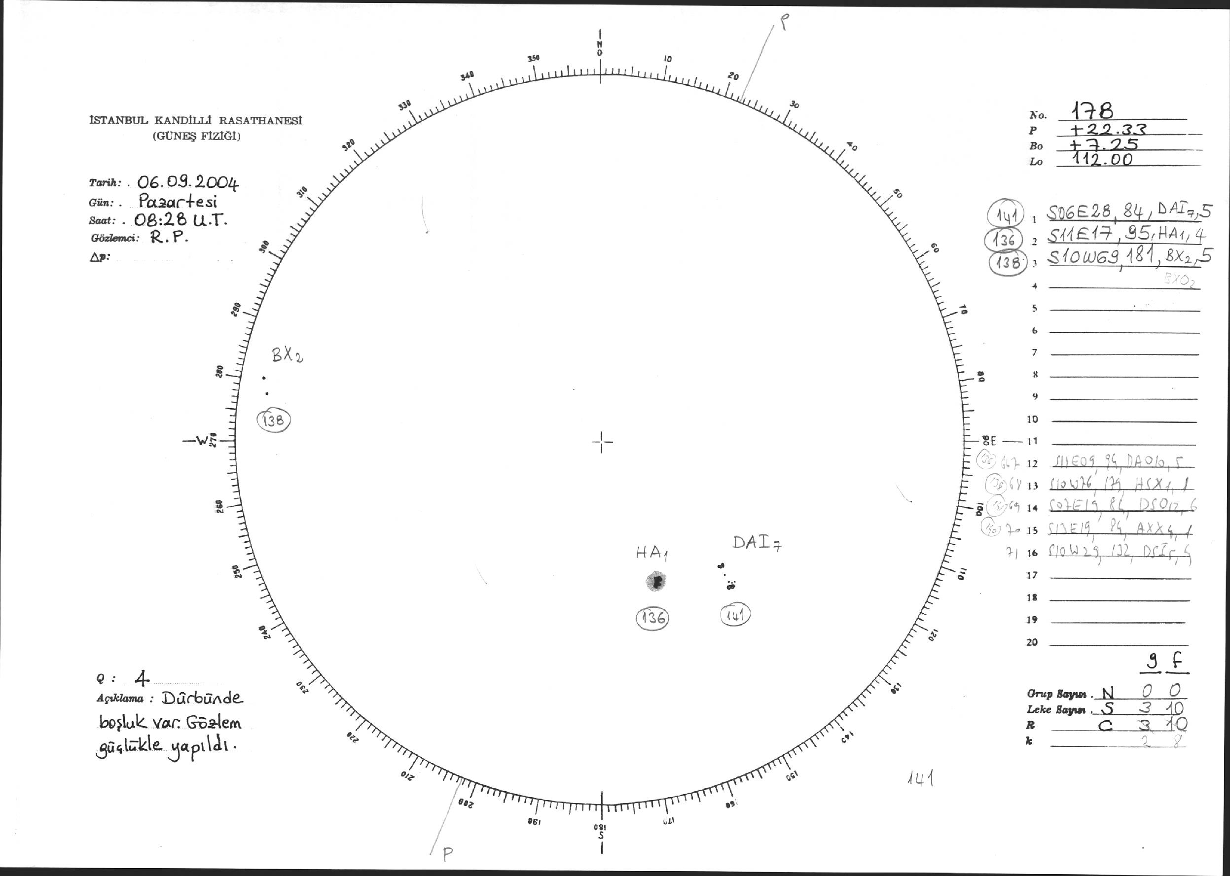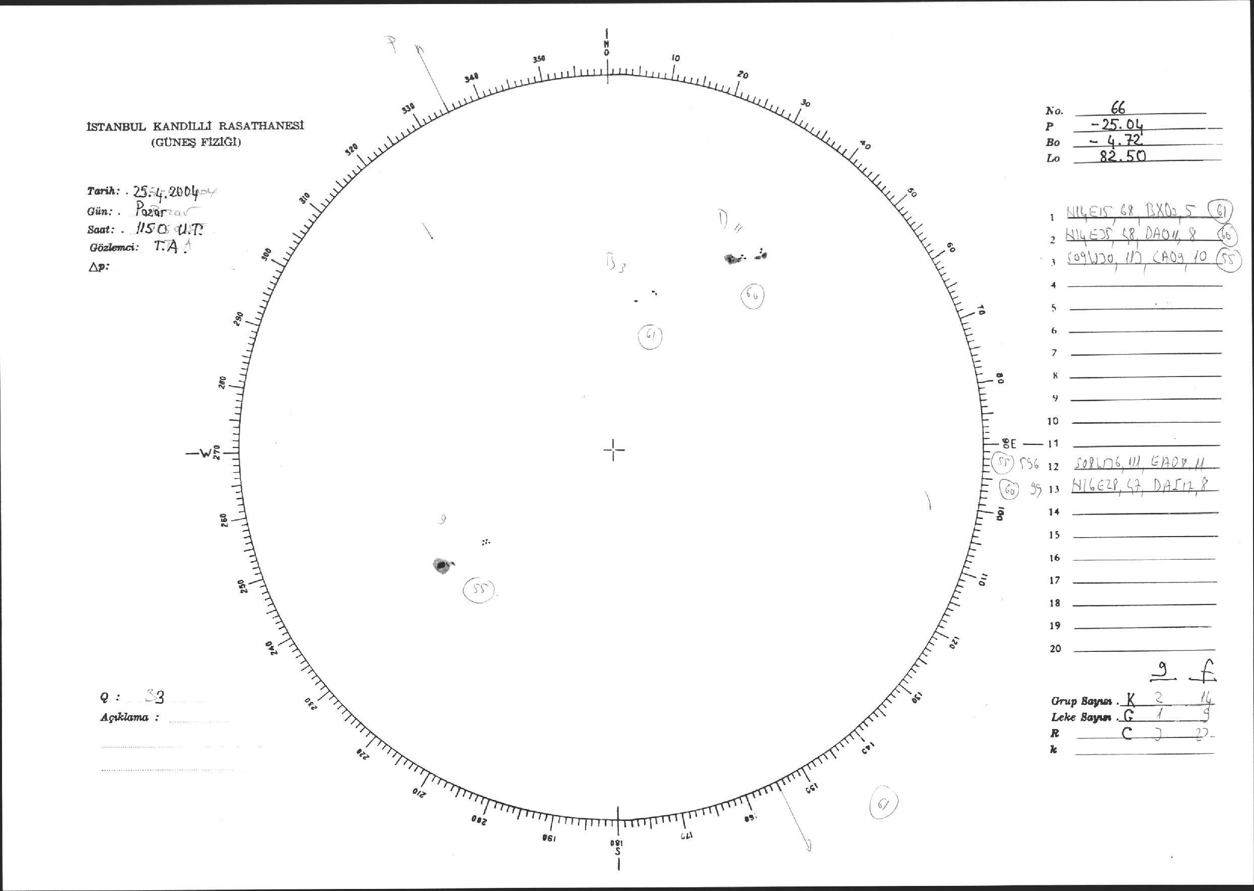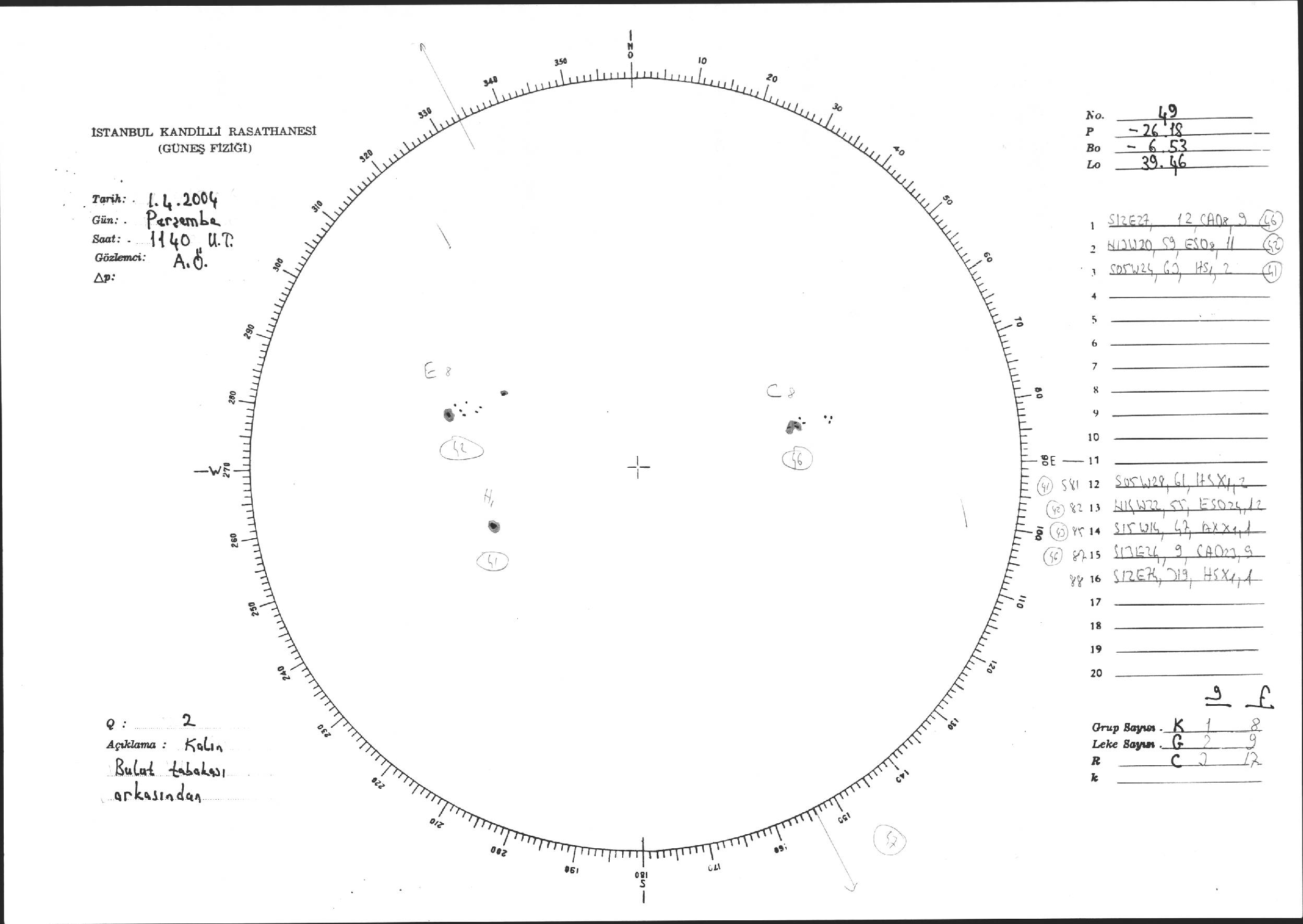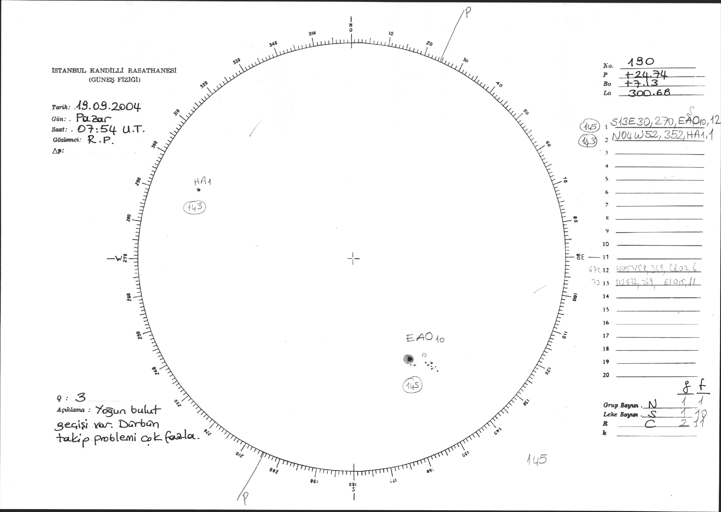 Güneş Lekesi Çizimleri / Kandilli Sunspot Drawings