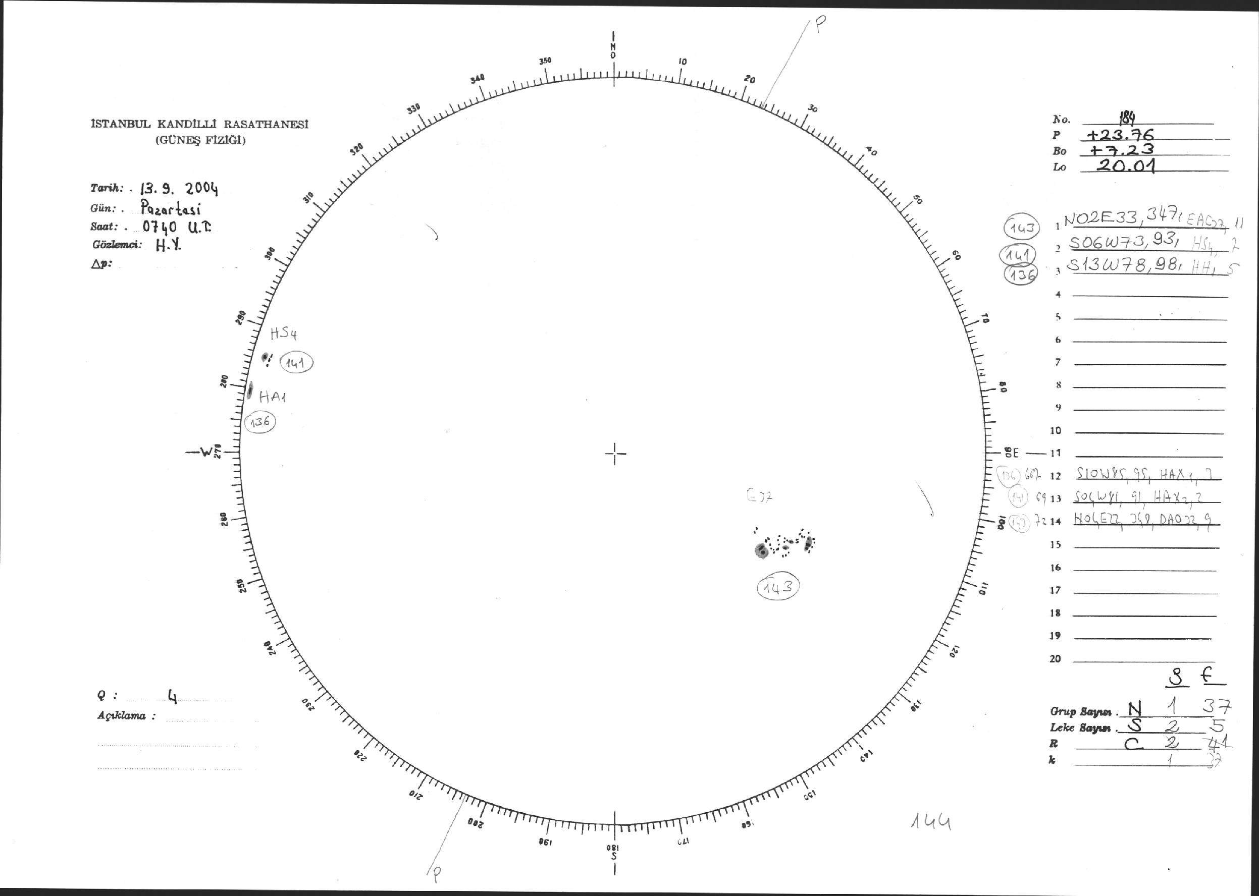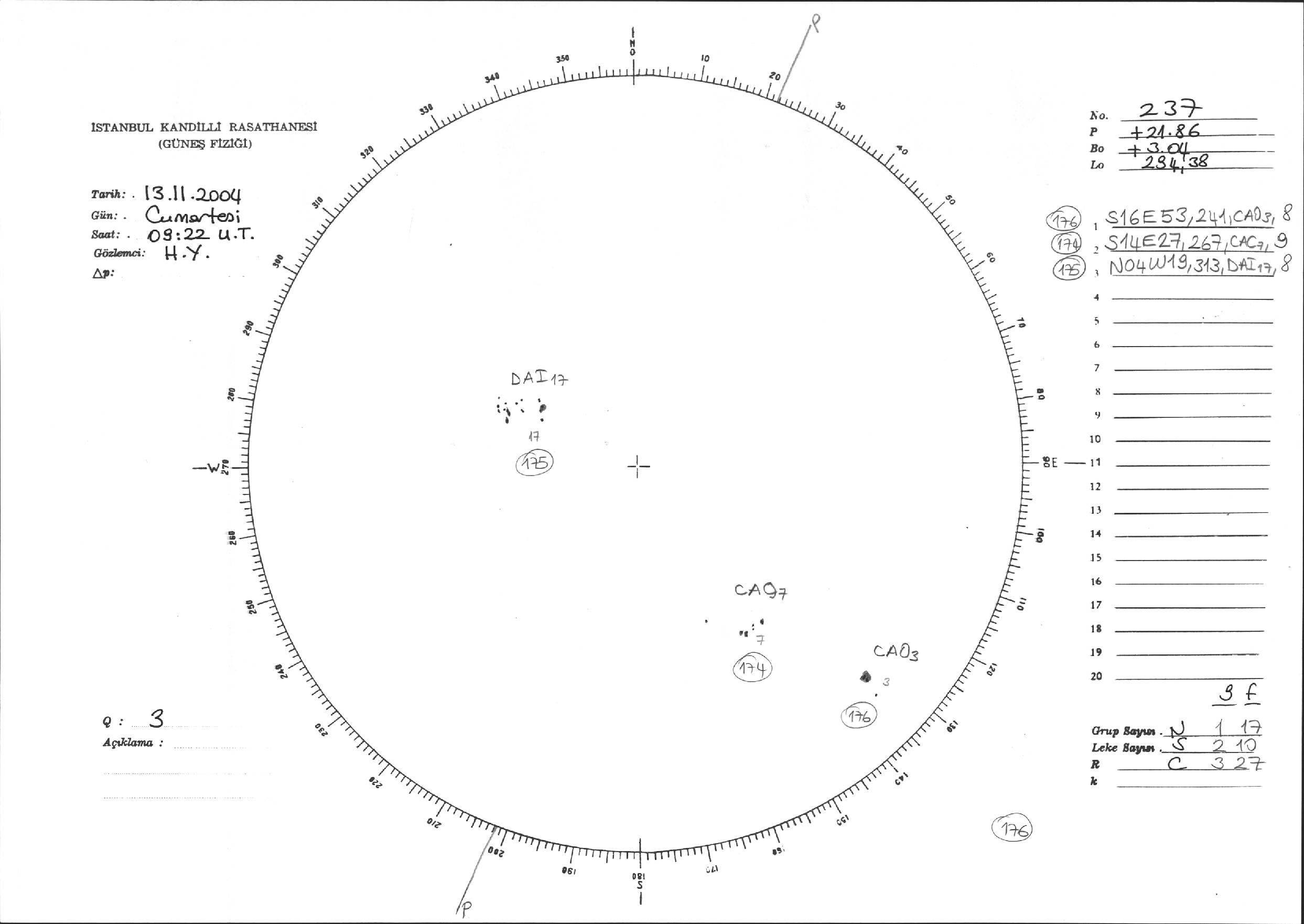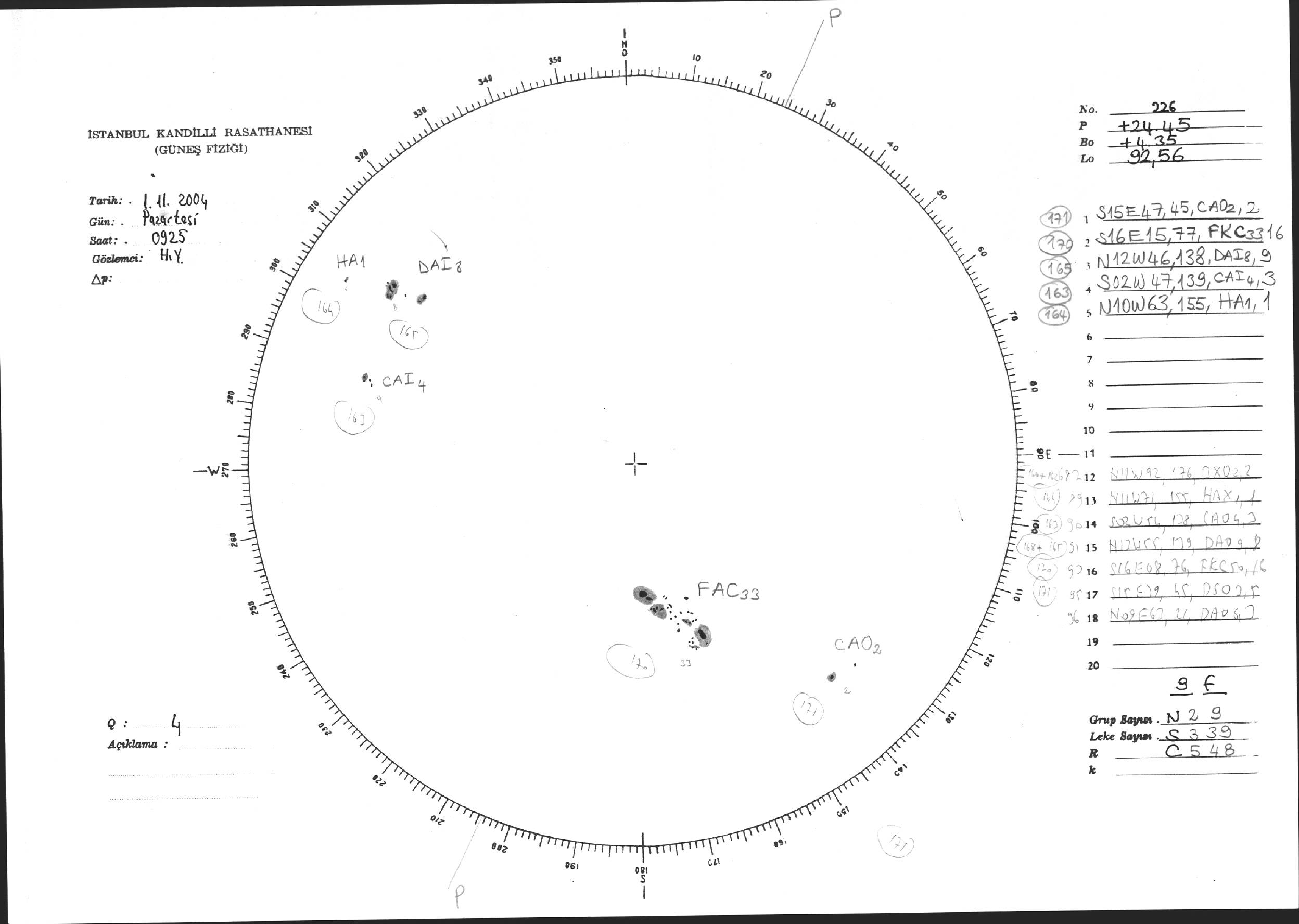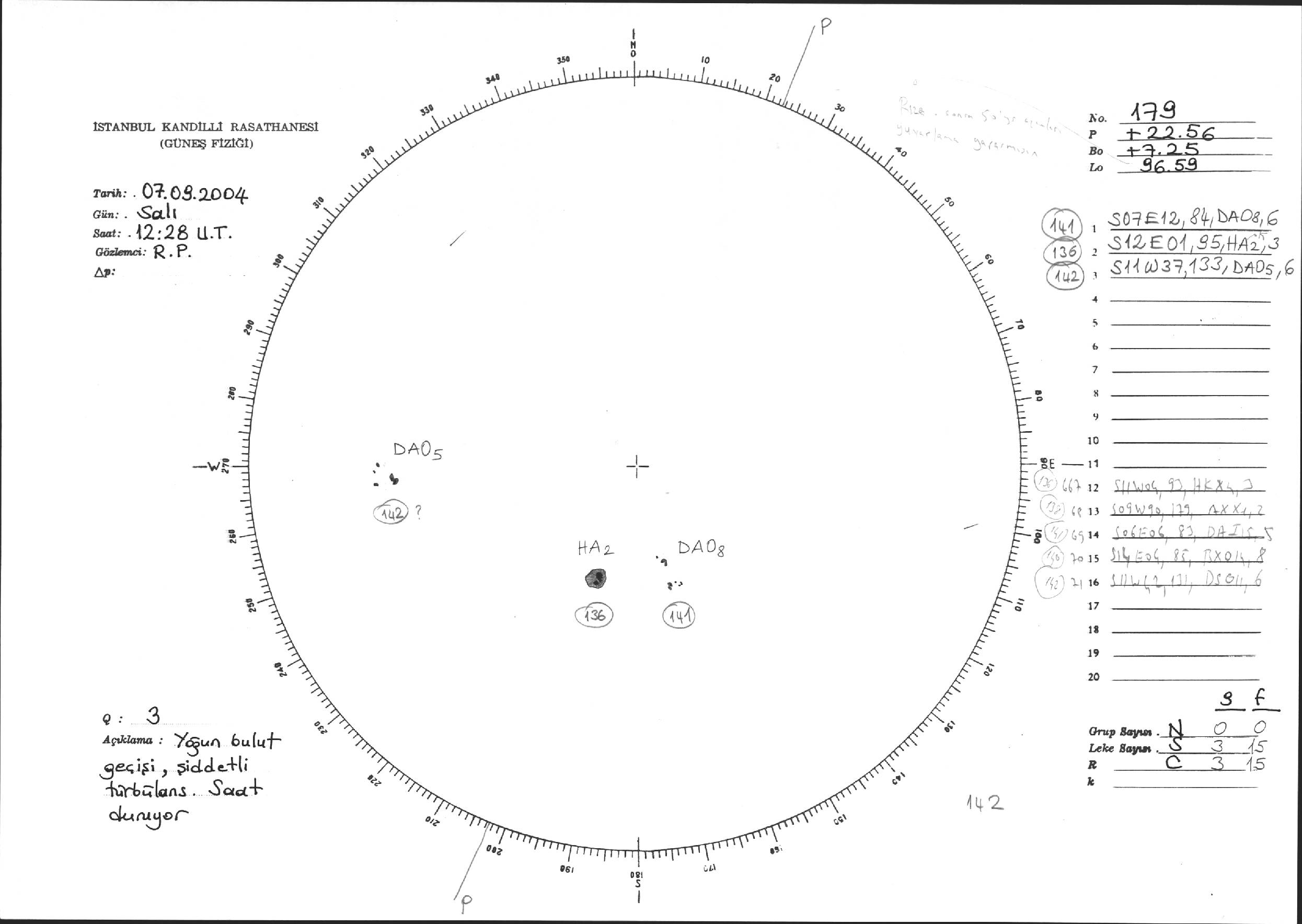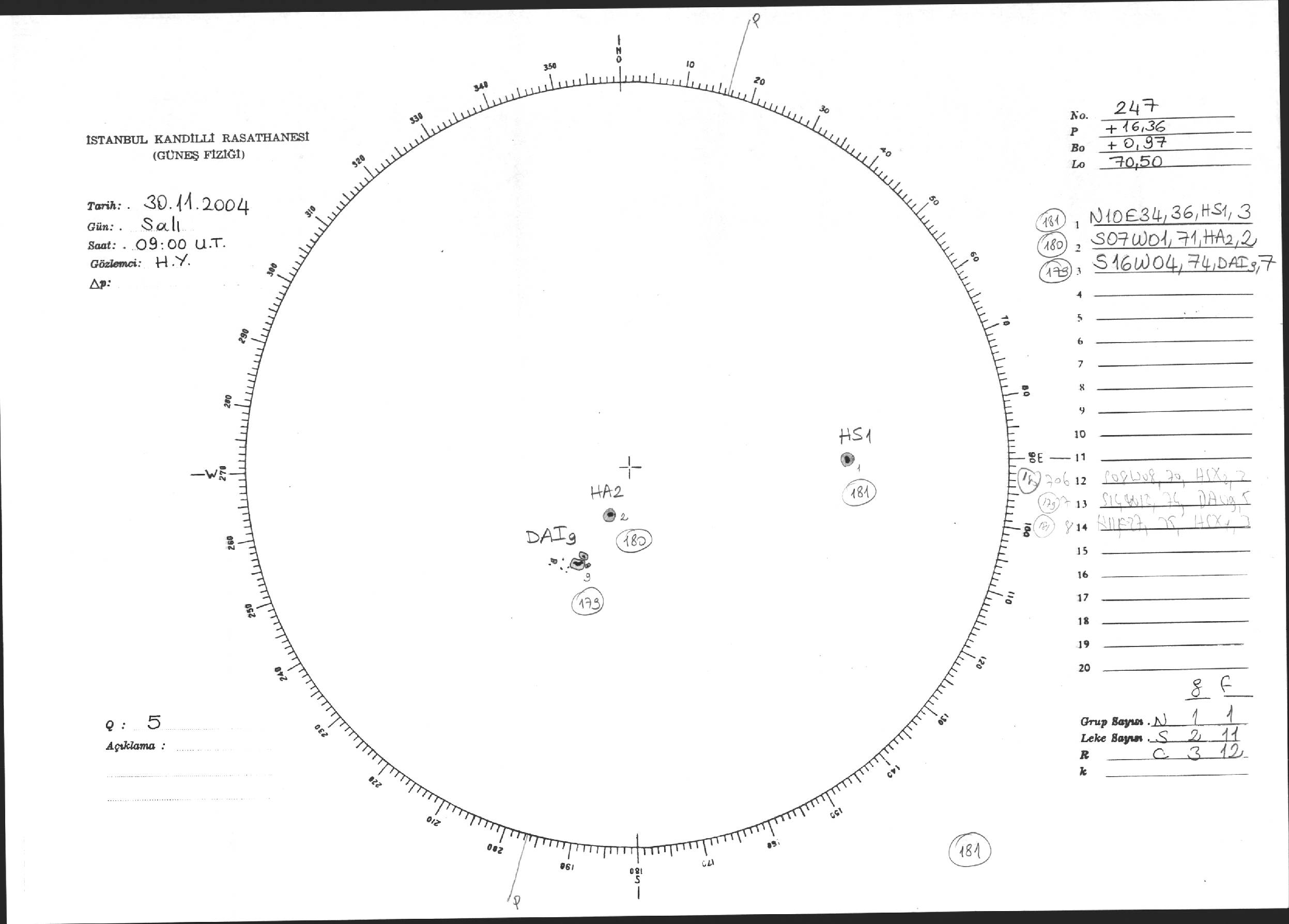 Güneş Lekesi Çizimleri / Kandilli Sunspot Drawings