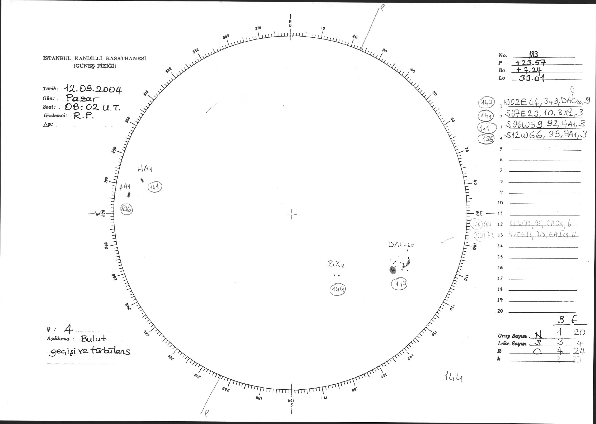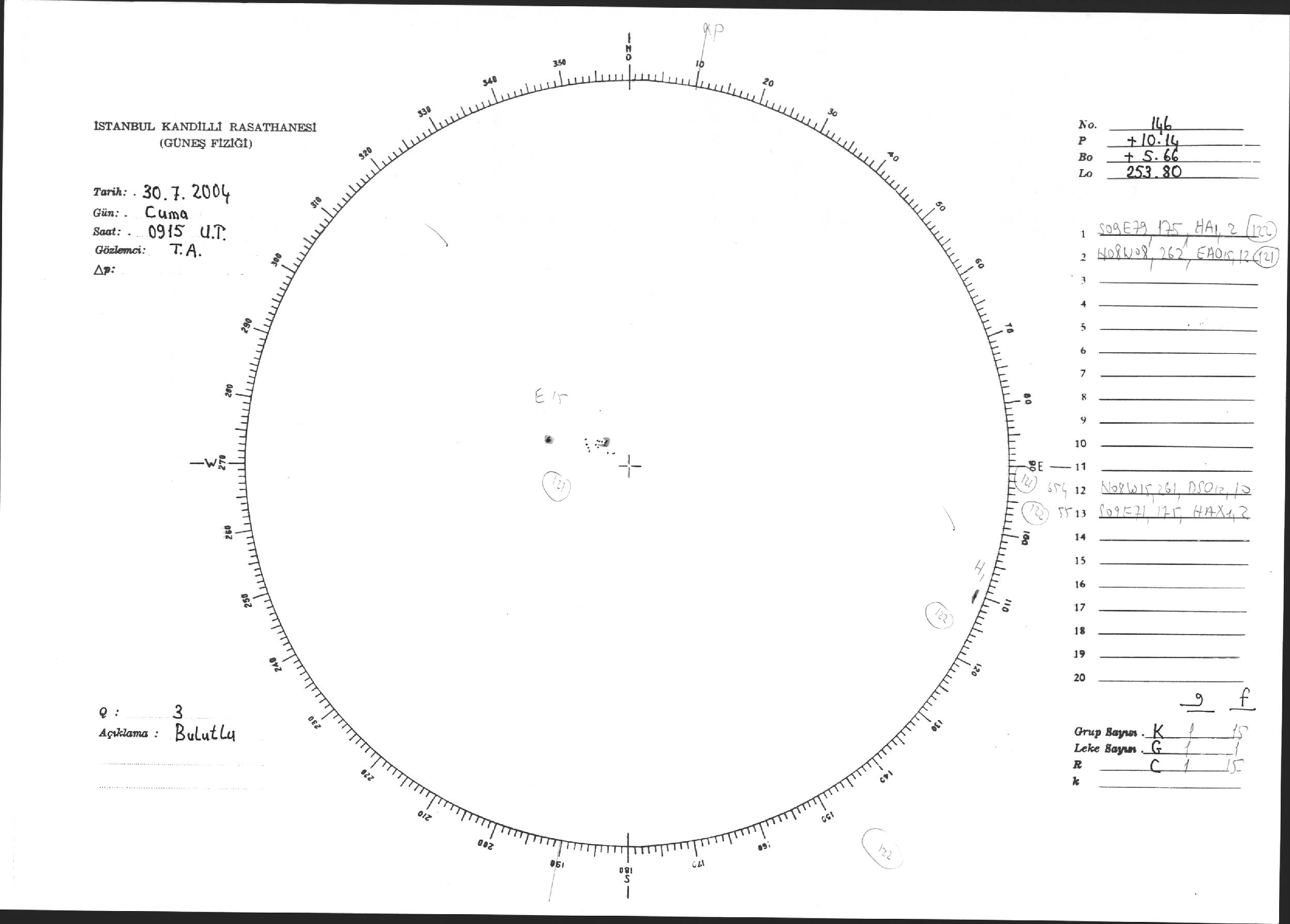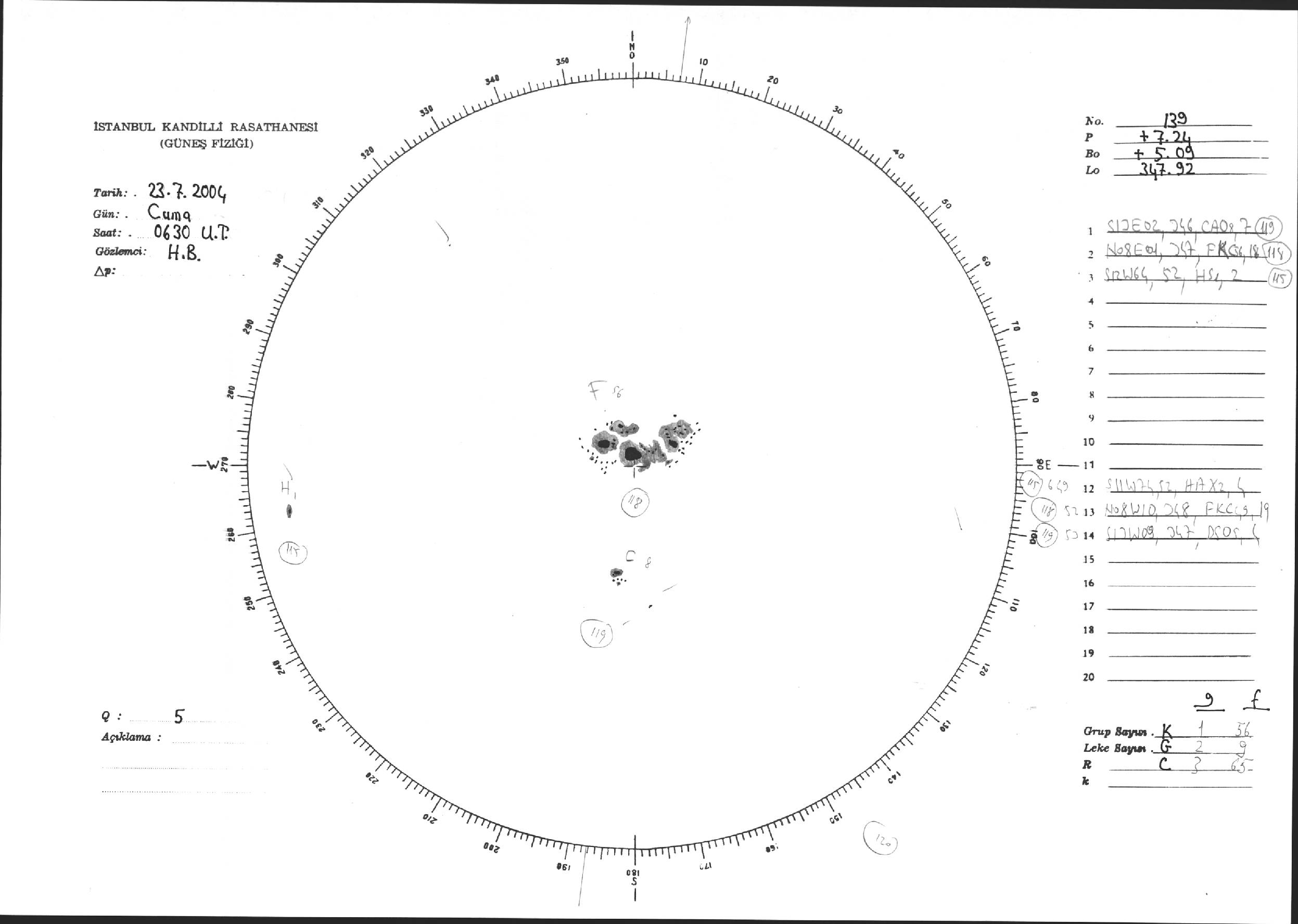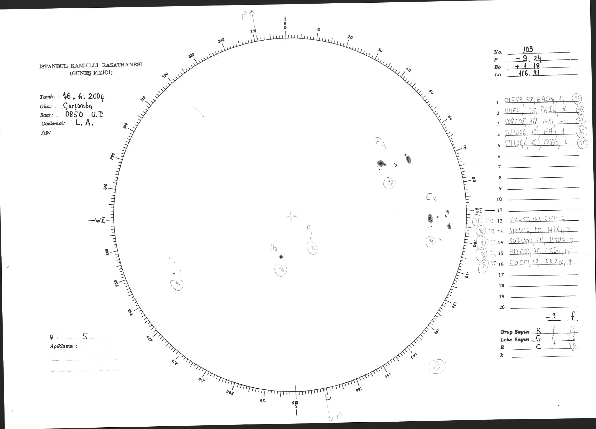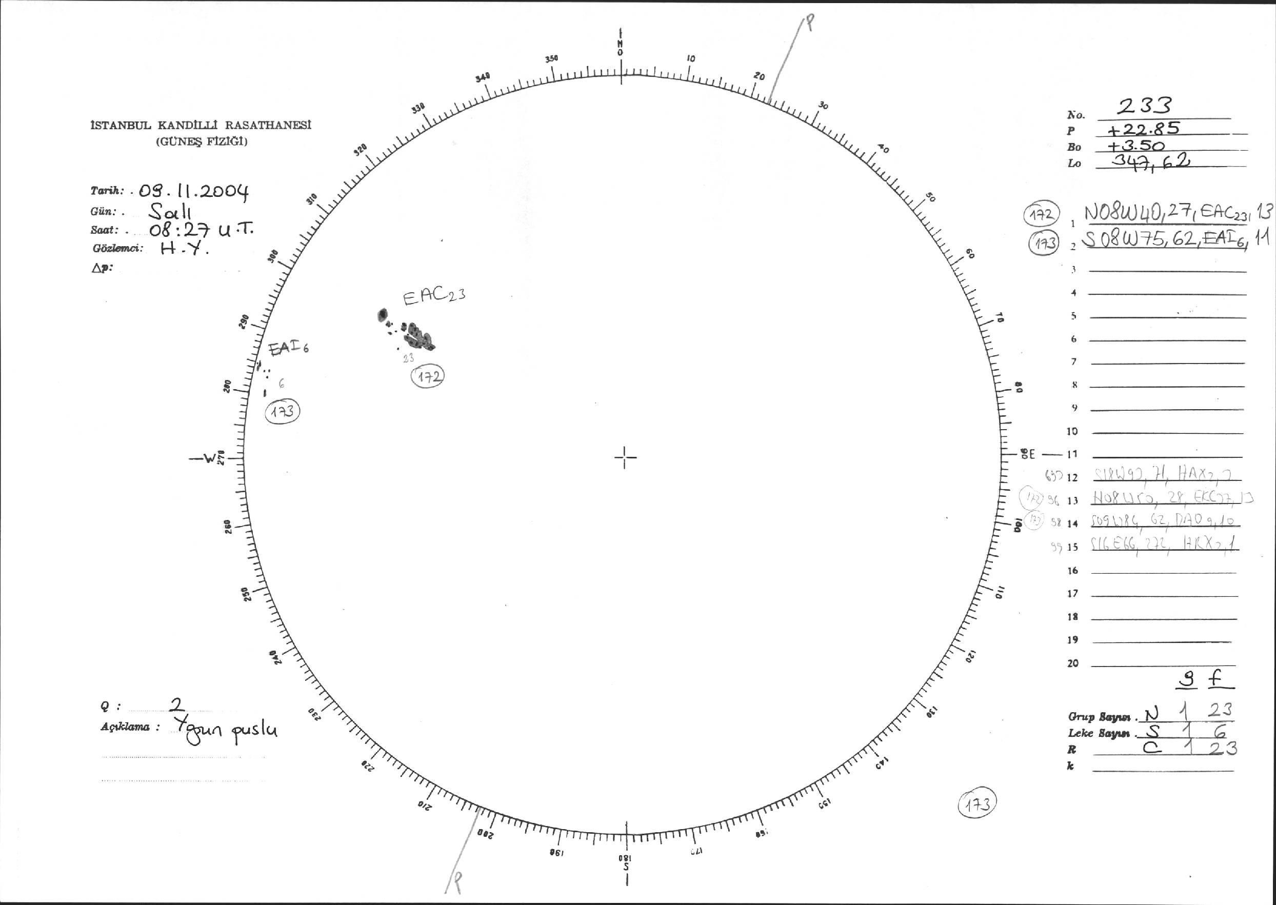 Güneş Lekesi Çizimleri / Kandilli Sunspot Drawings