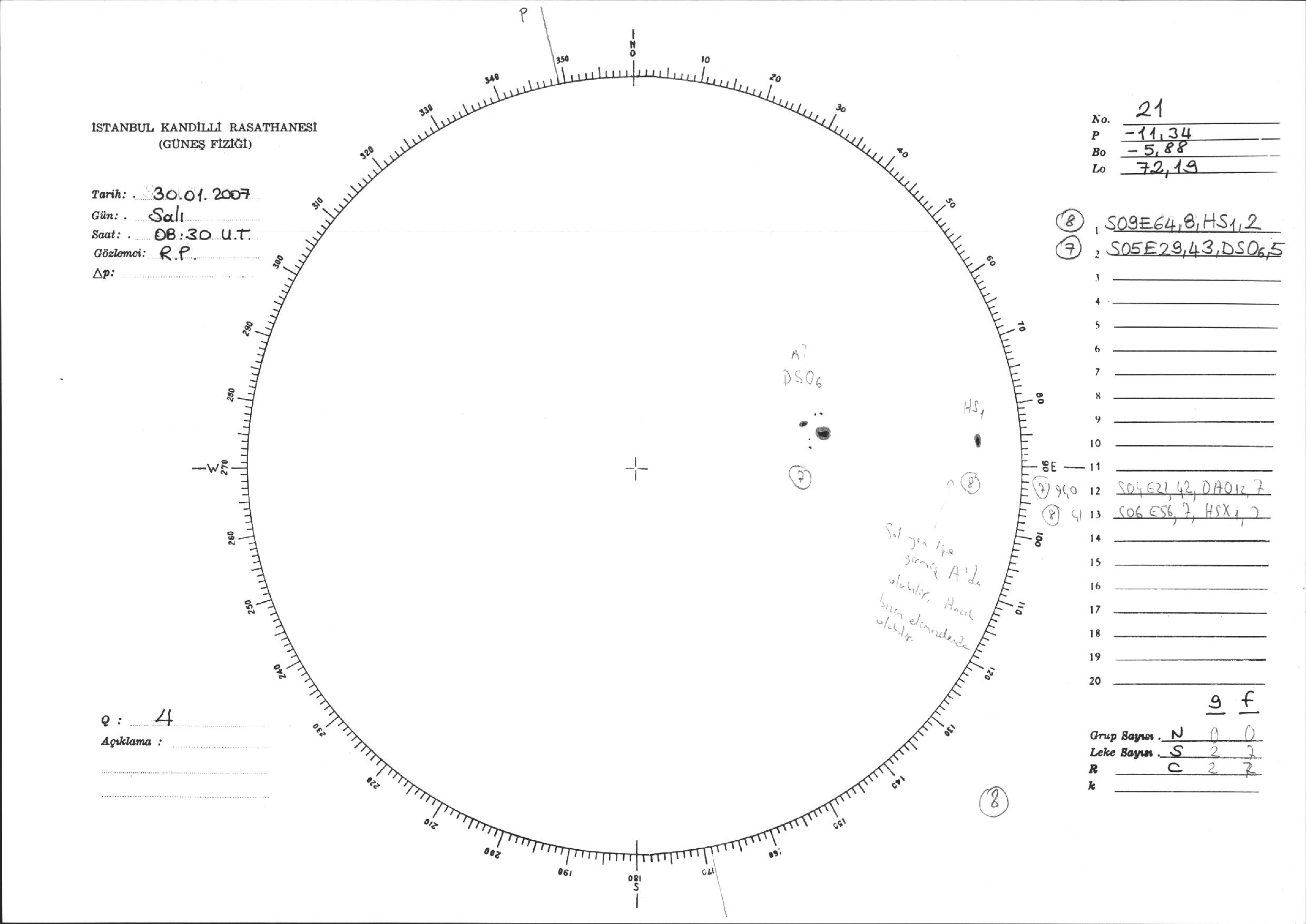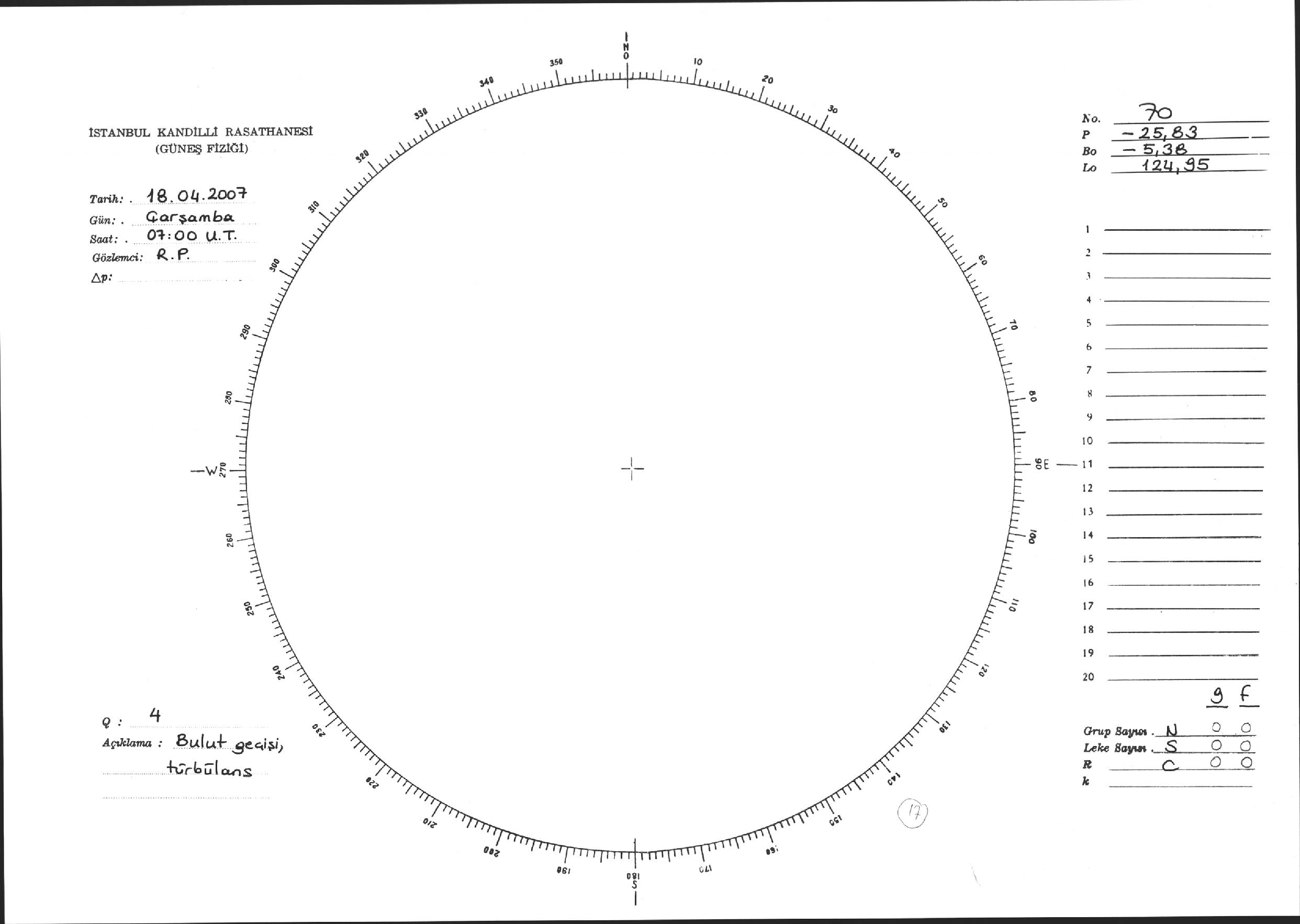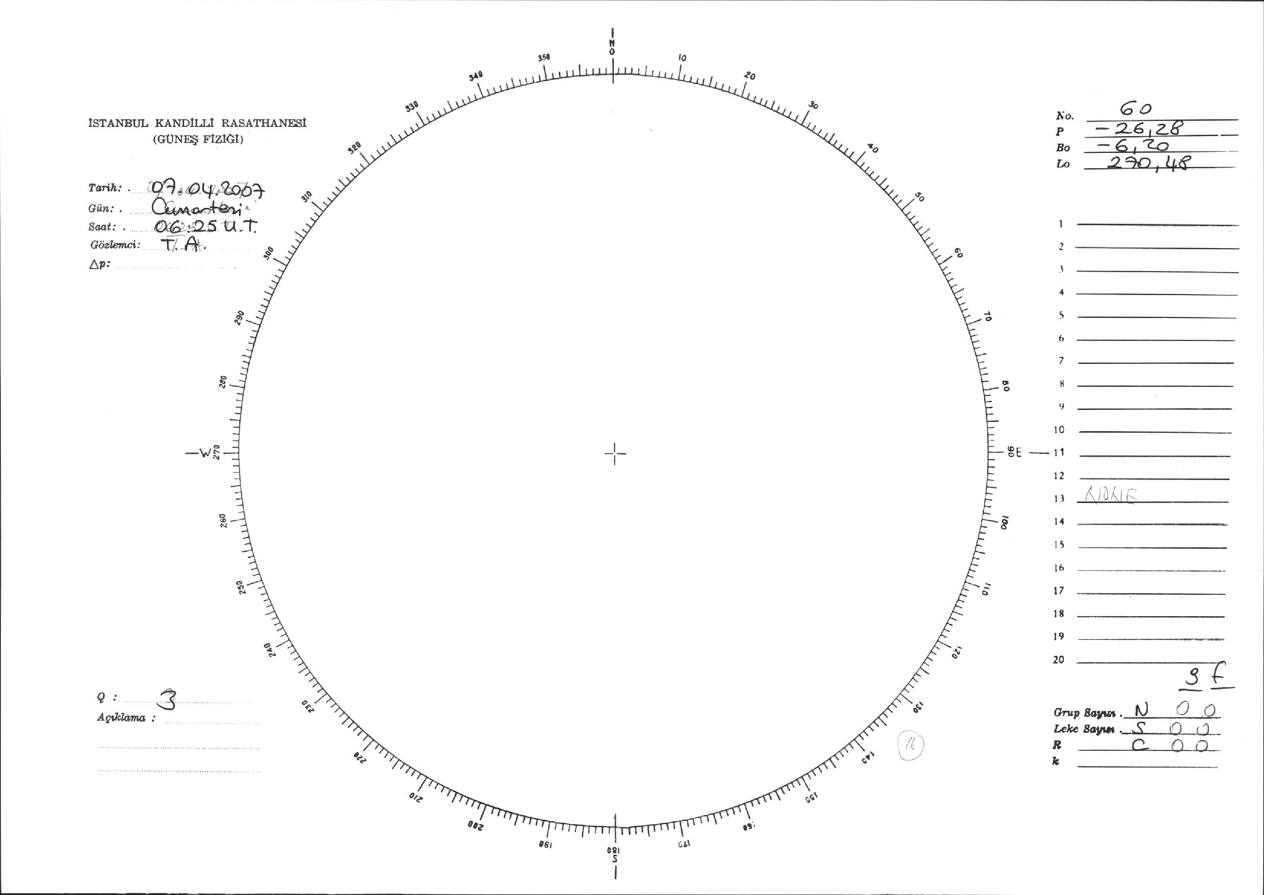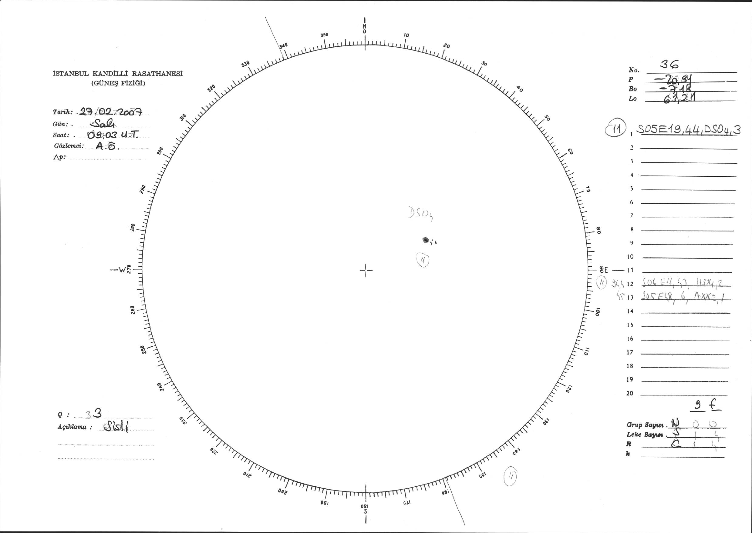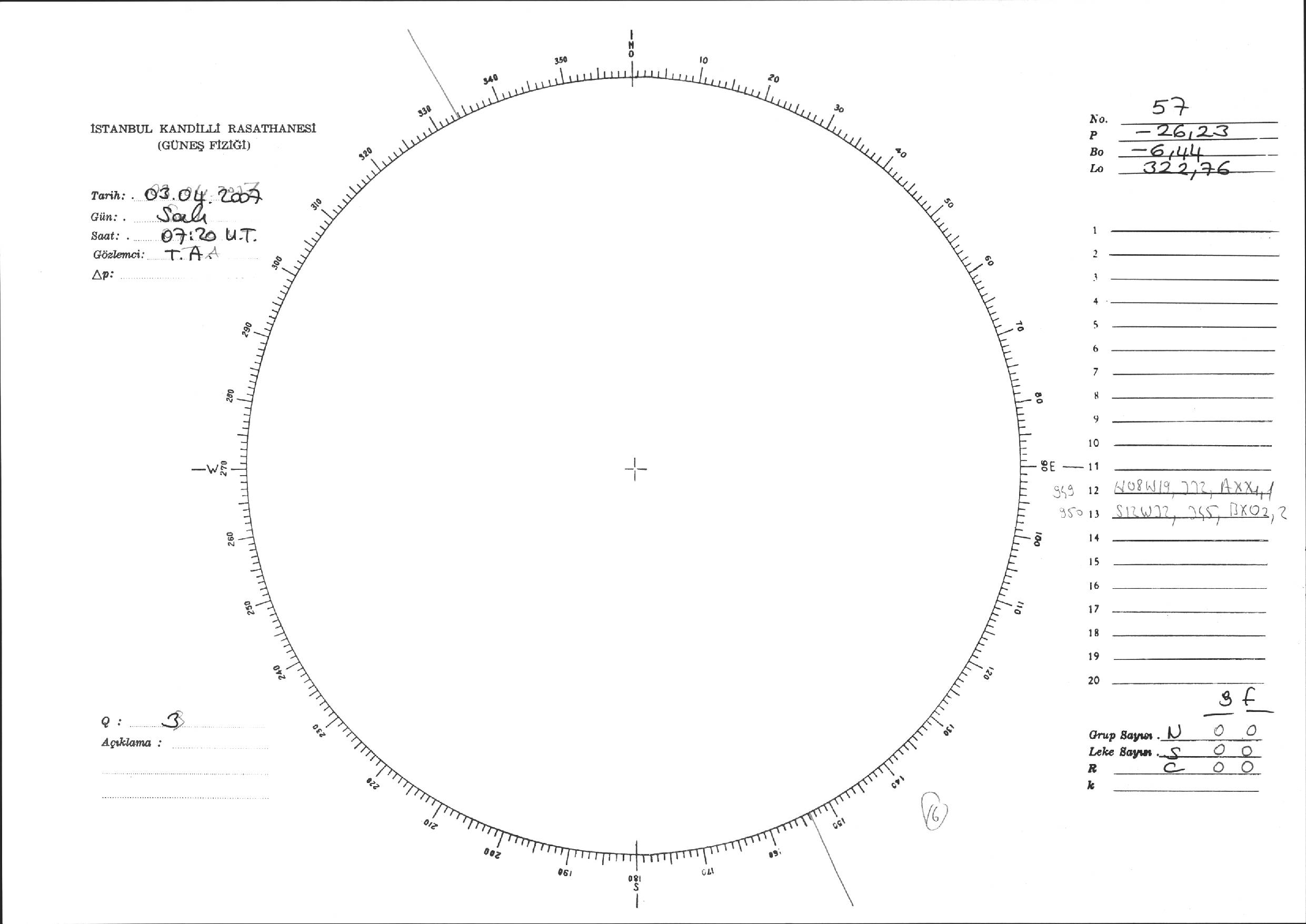 Güneş Lekesi Çizimleri / Kandilli Sunspot Drawings