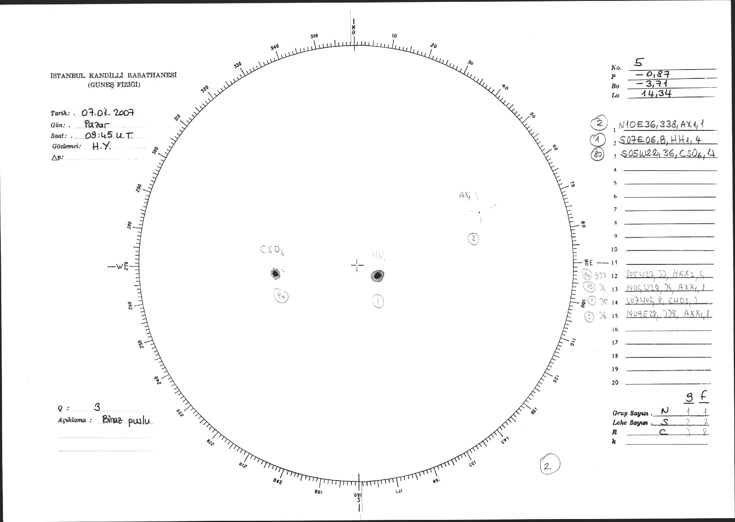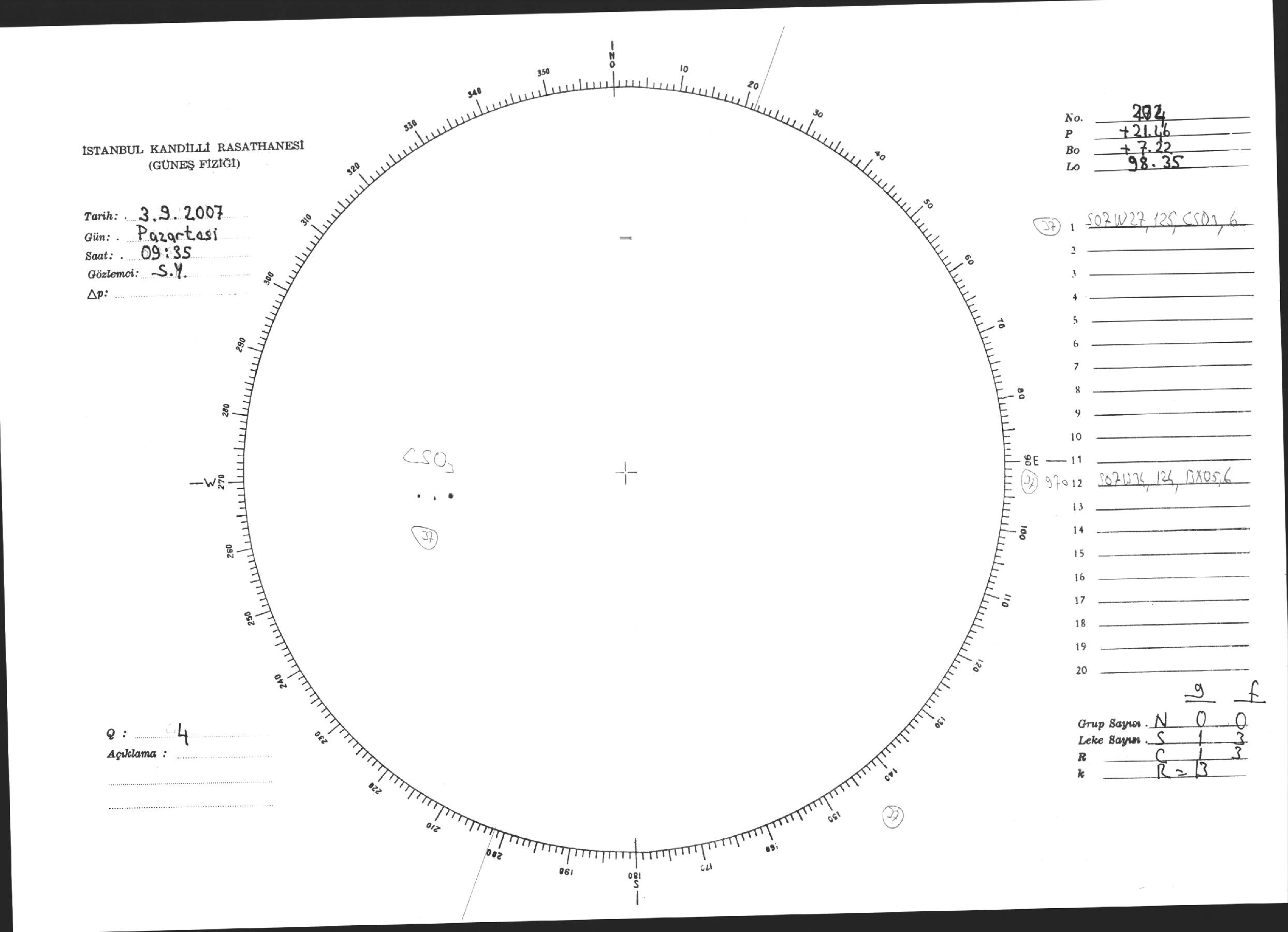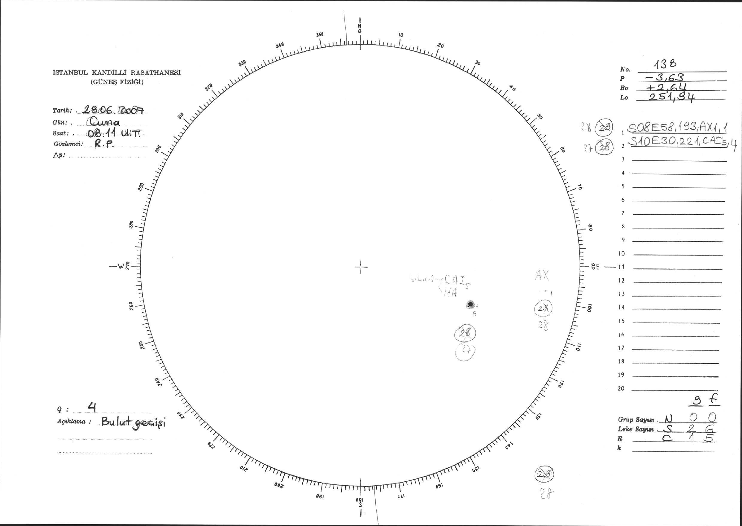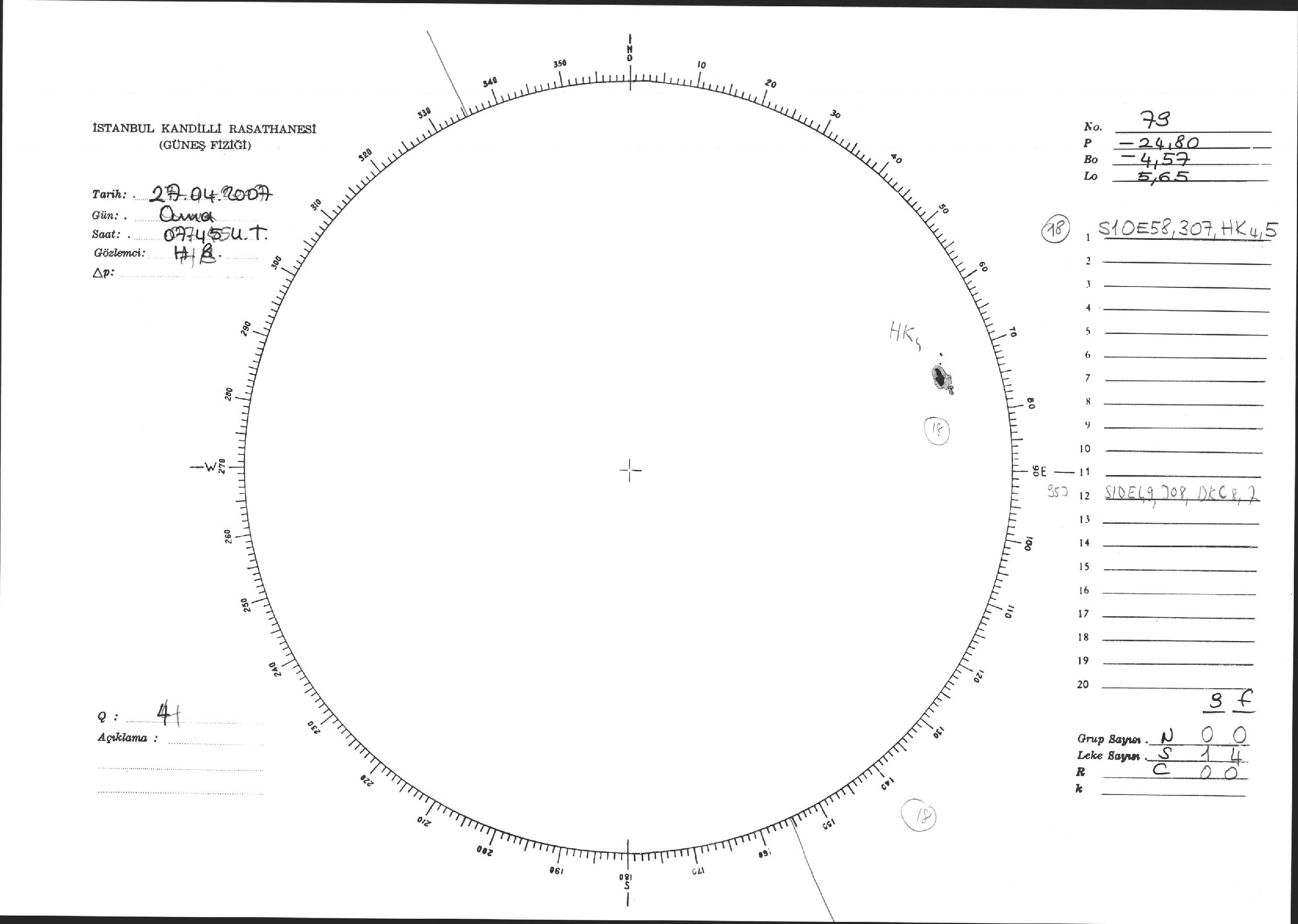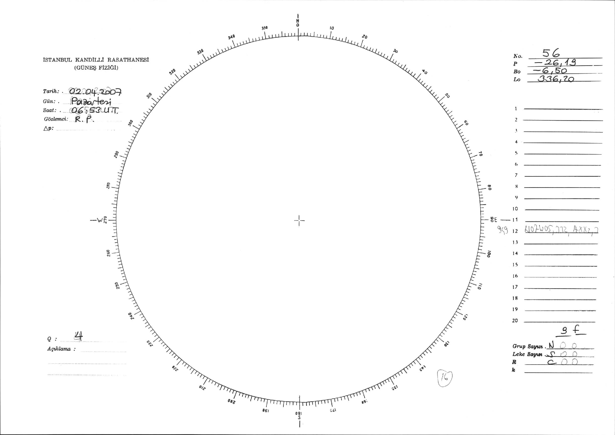 Güneş Lekesi Çizimleri / Kandilli Sunspot Drawings