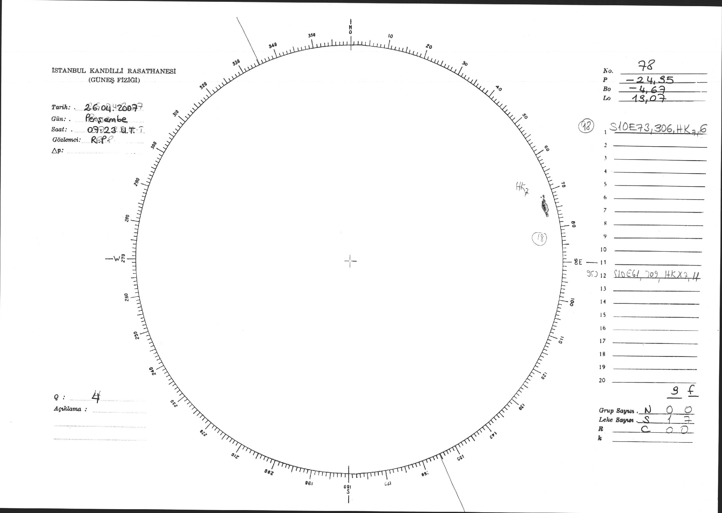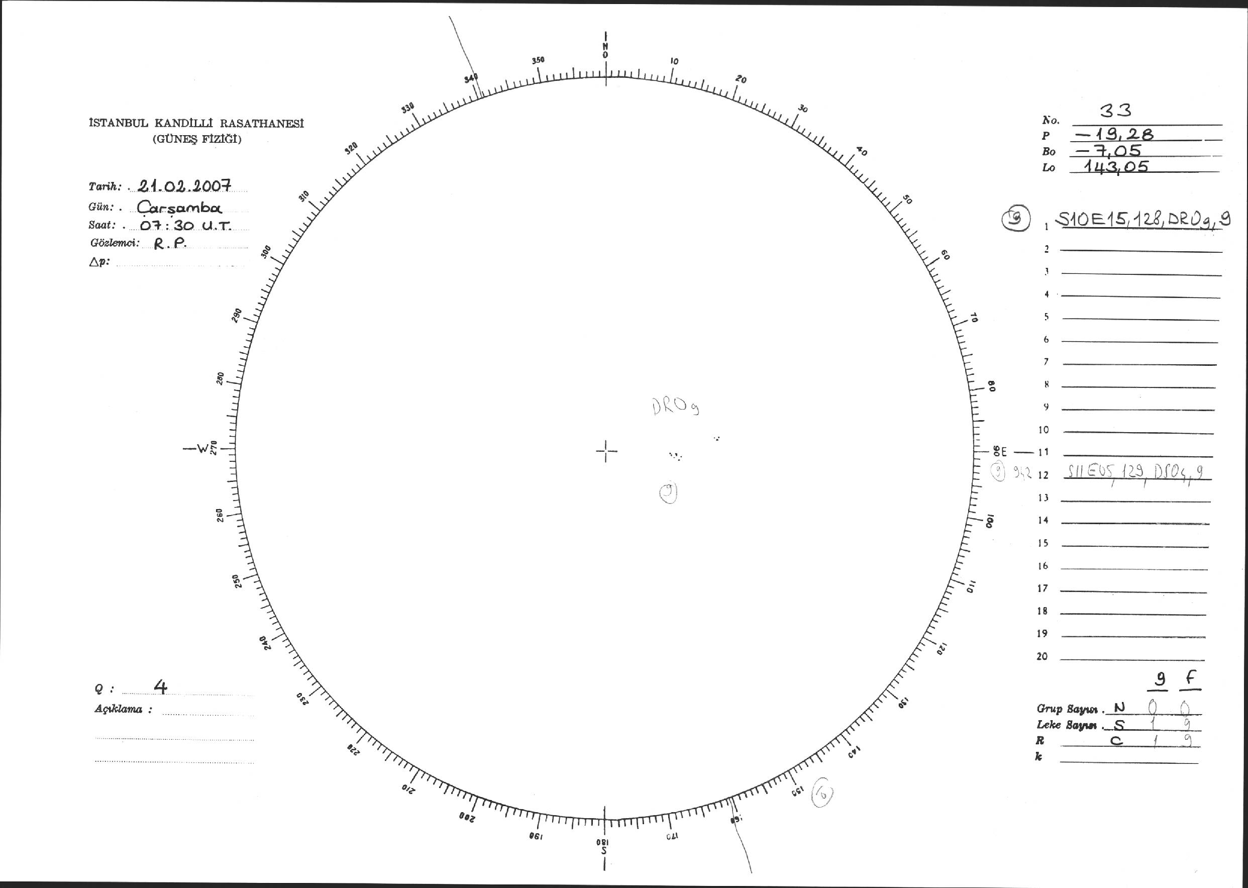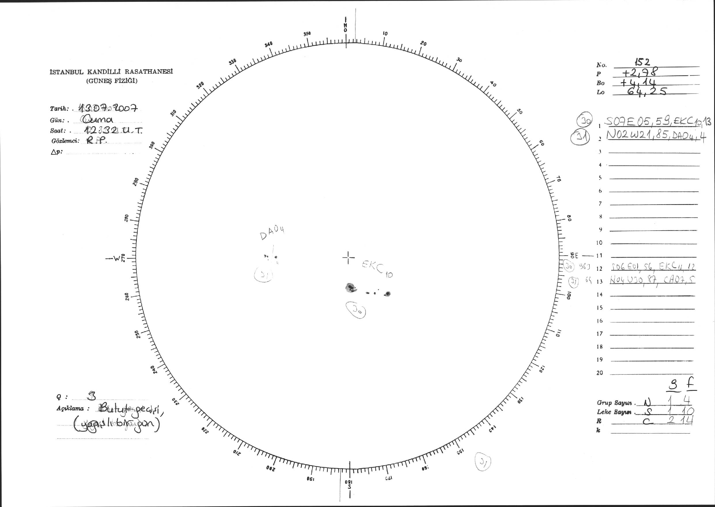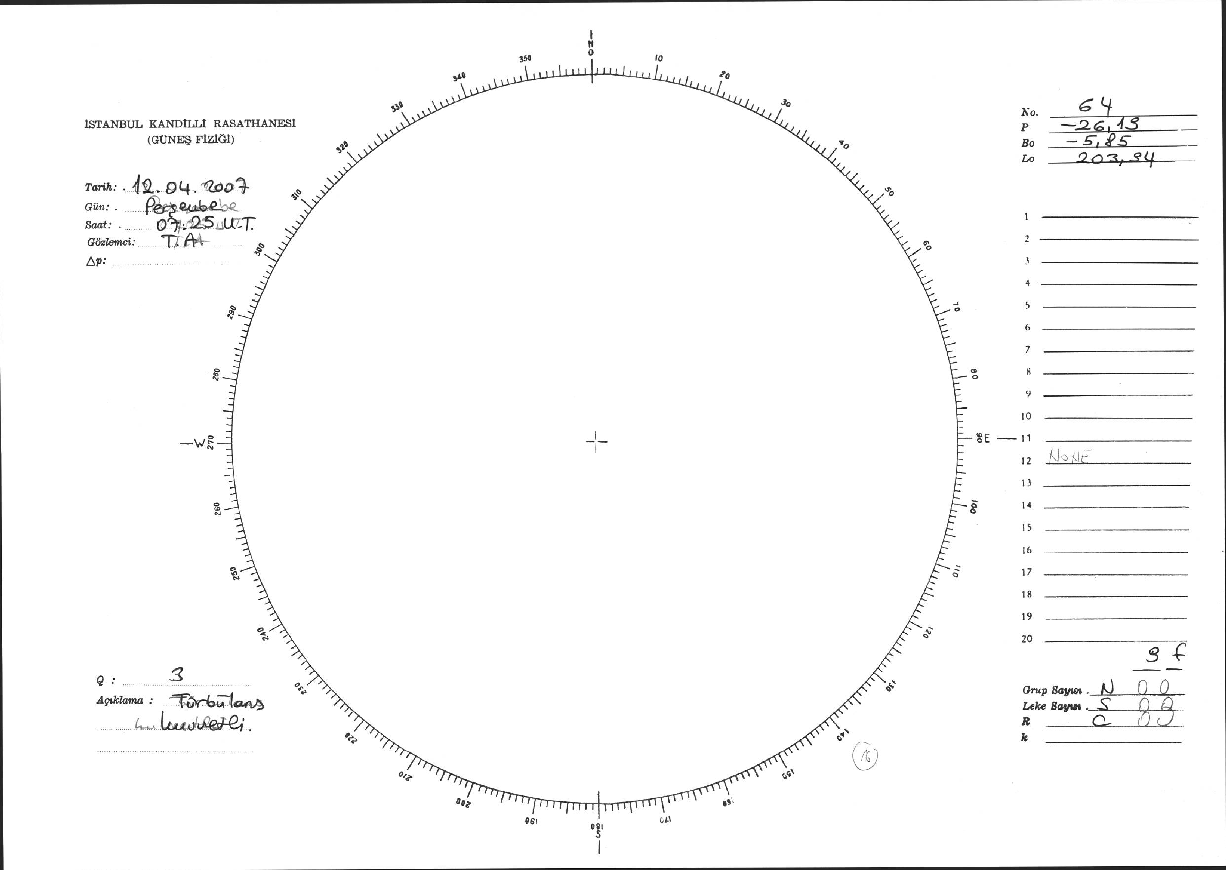 Güneş Lekesi Çizimleri / Kandilli Sunspot Drawings