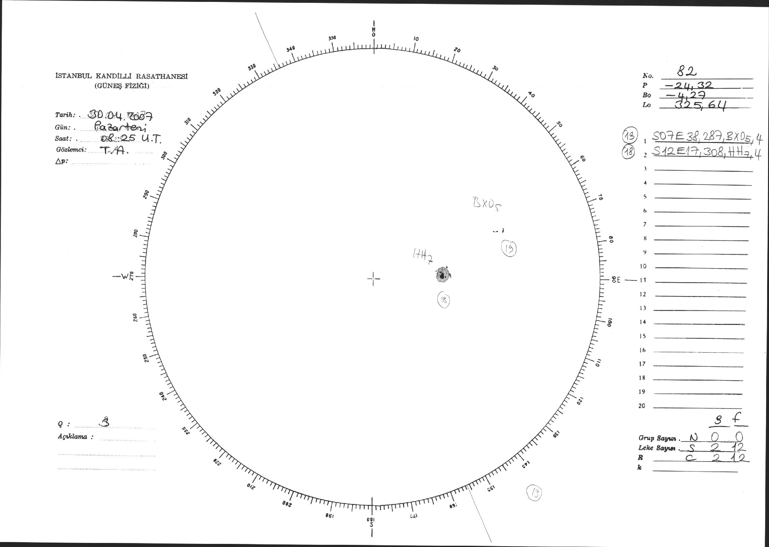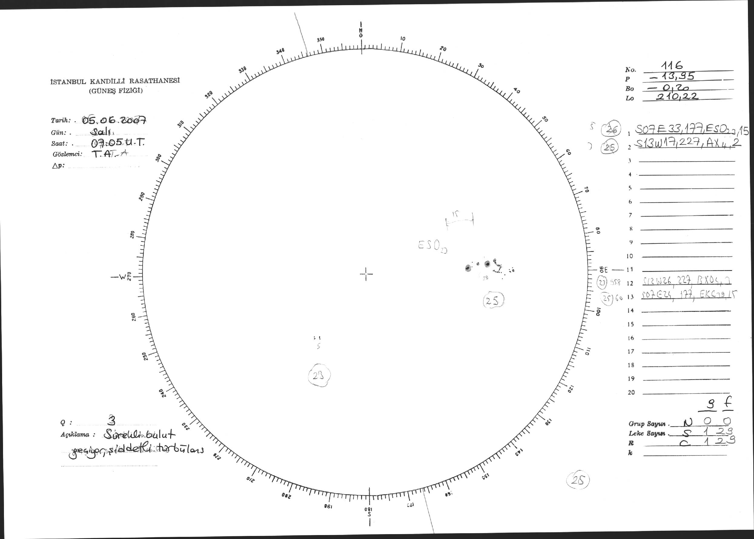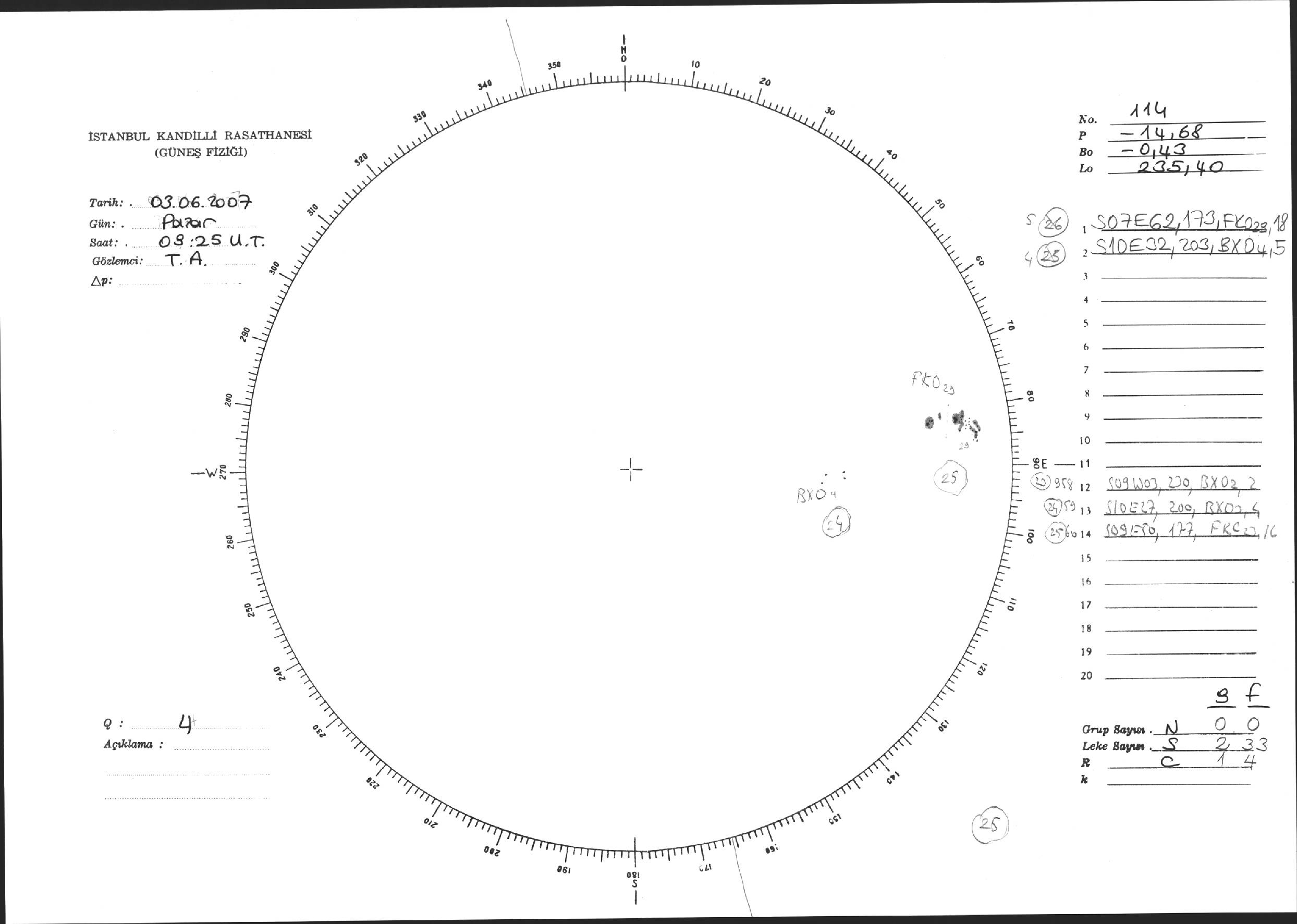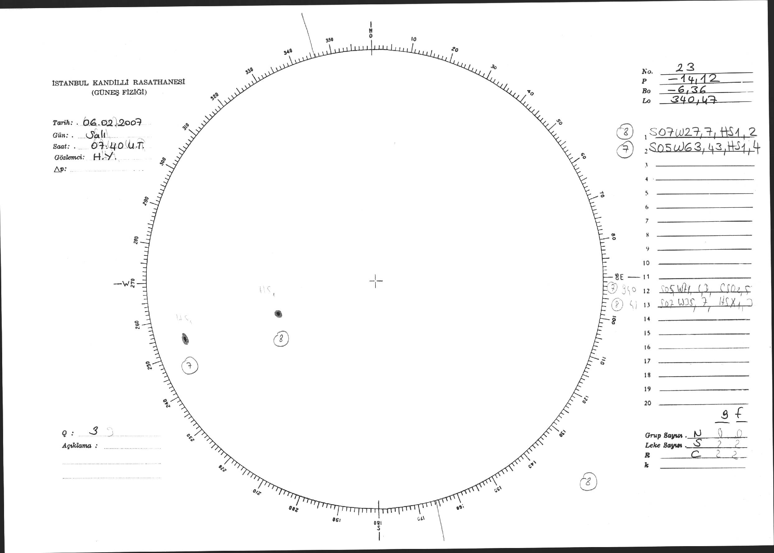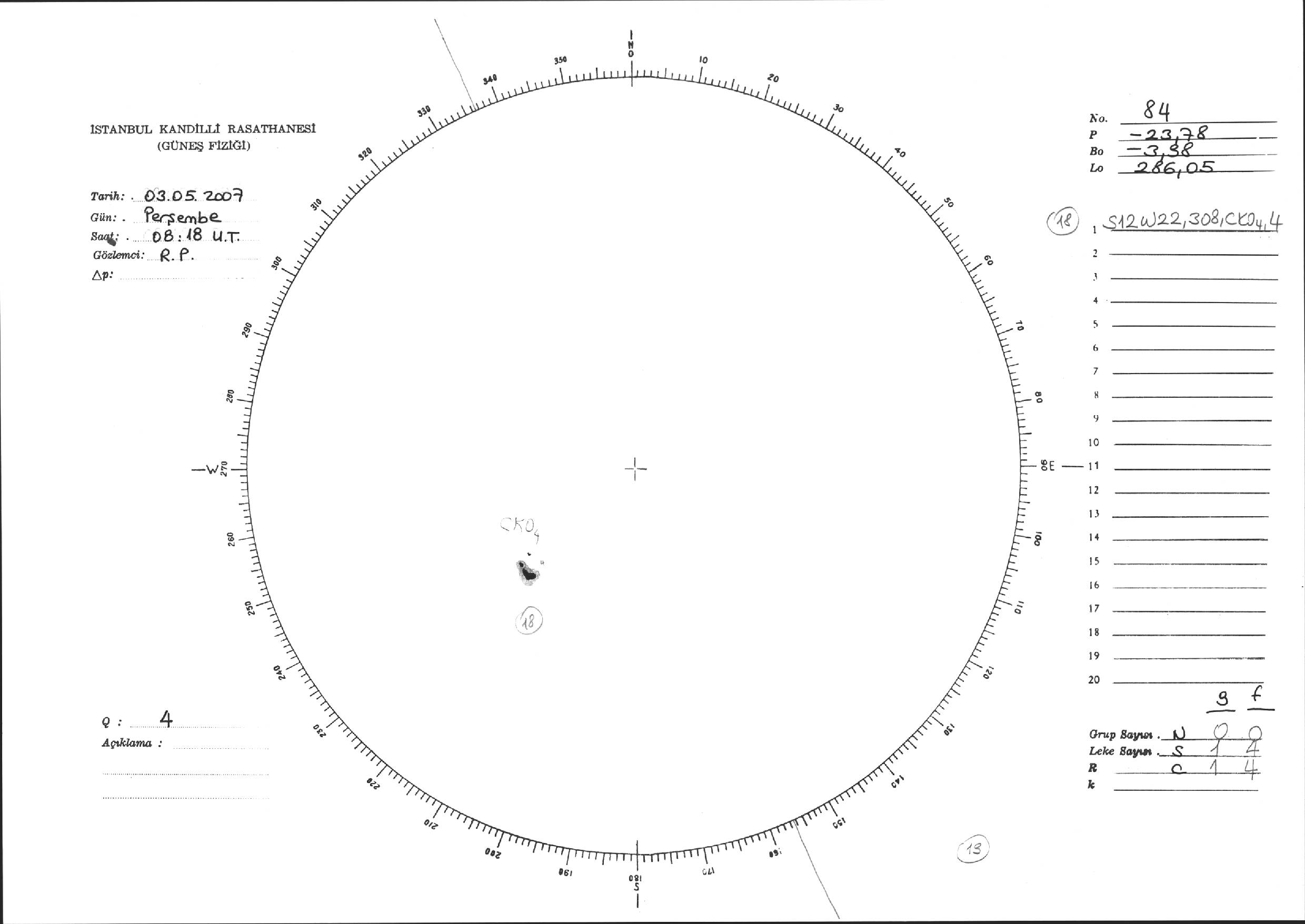Güneş Lekesi Çizimleri / Kandilli Sunspot Drawings