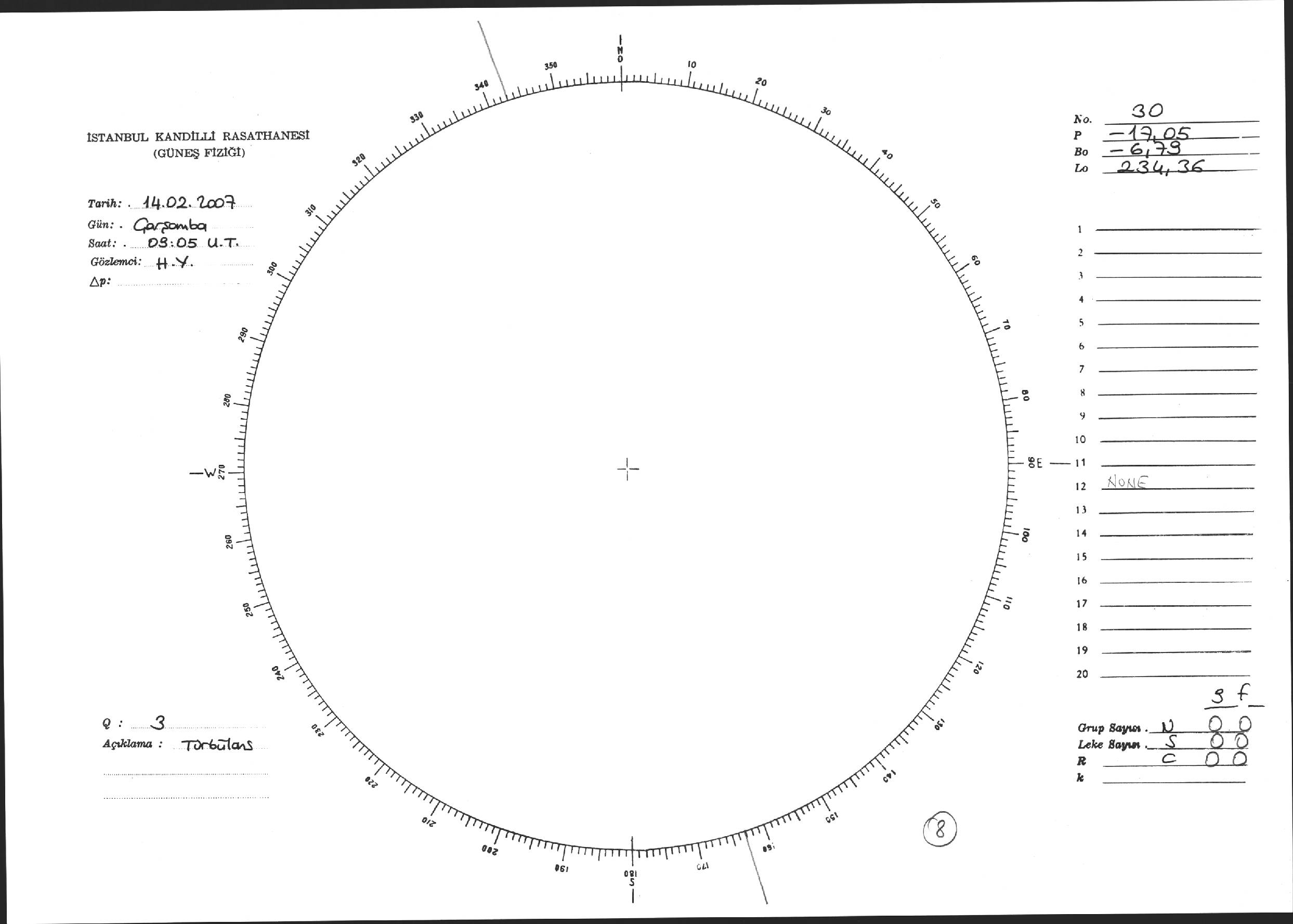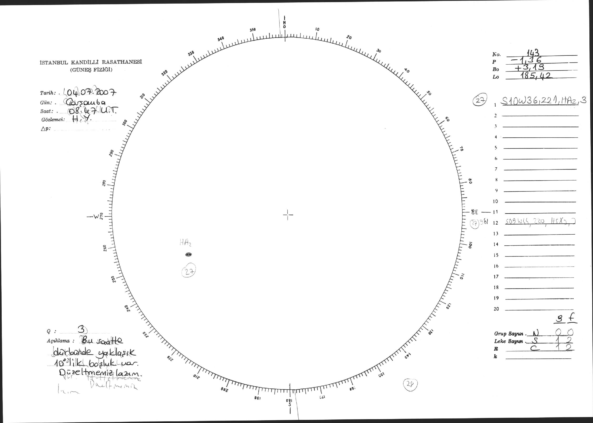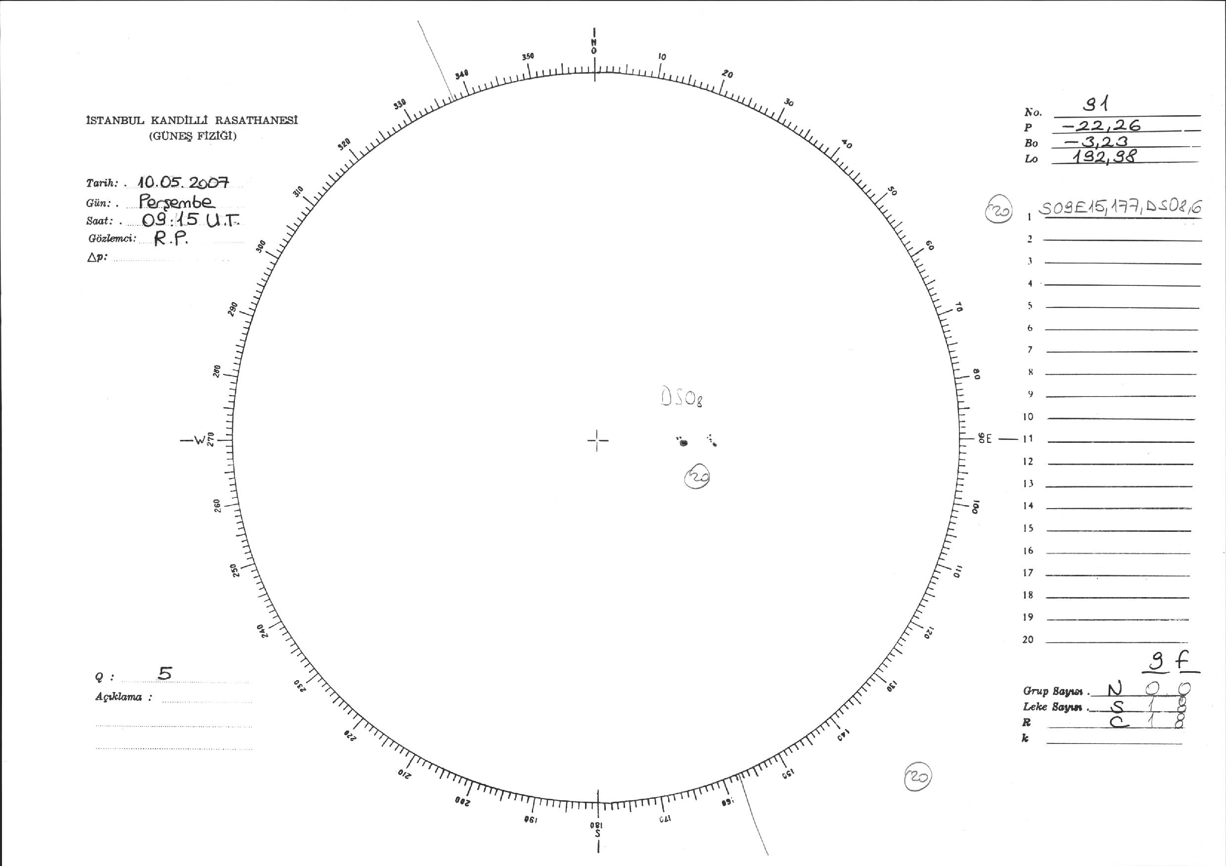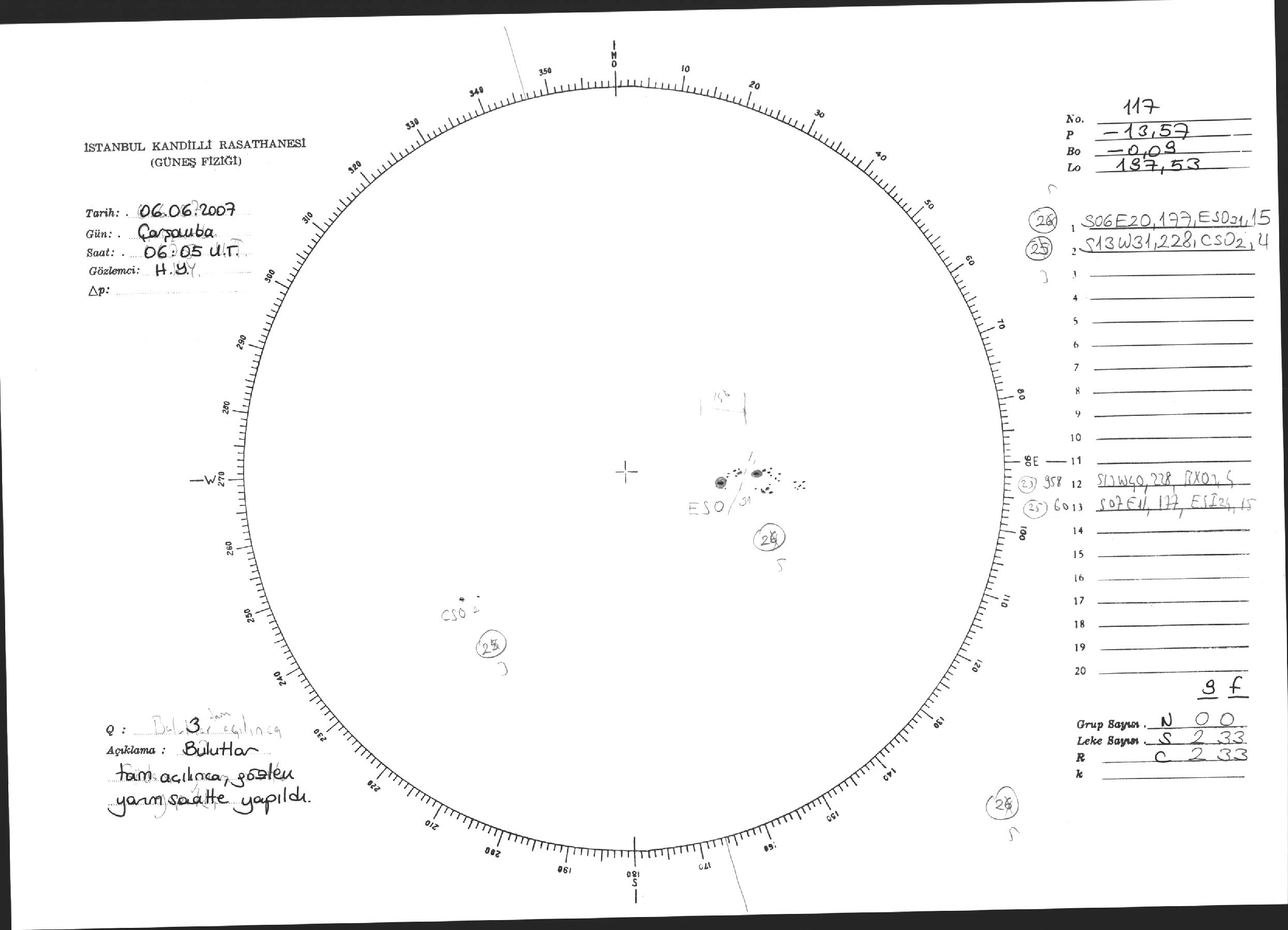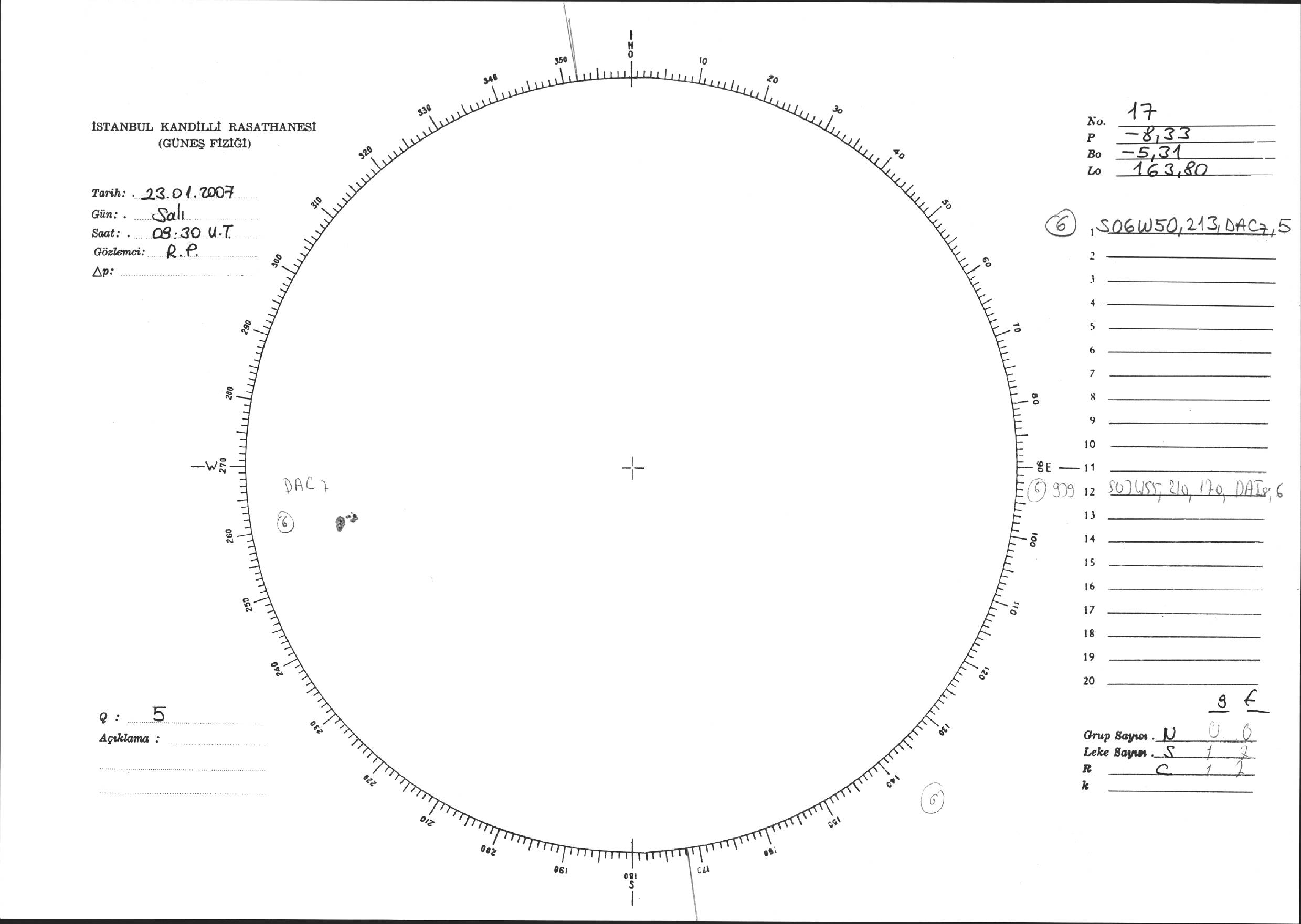 Güneş Lekesi Çizimleri / Kandilli Sunspot Drawings