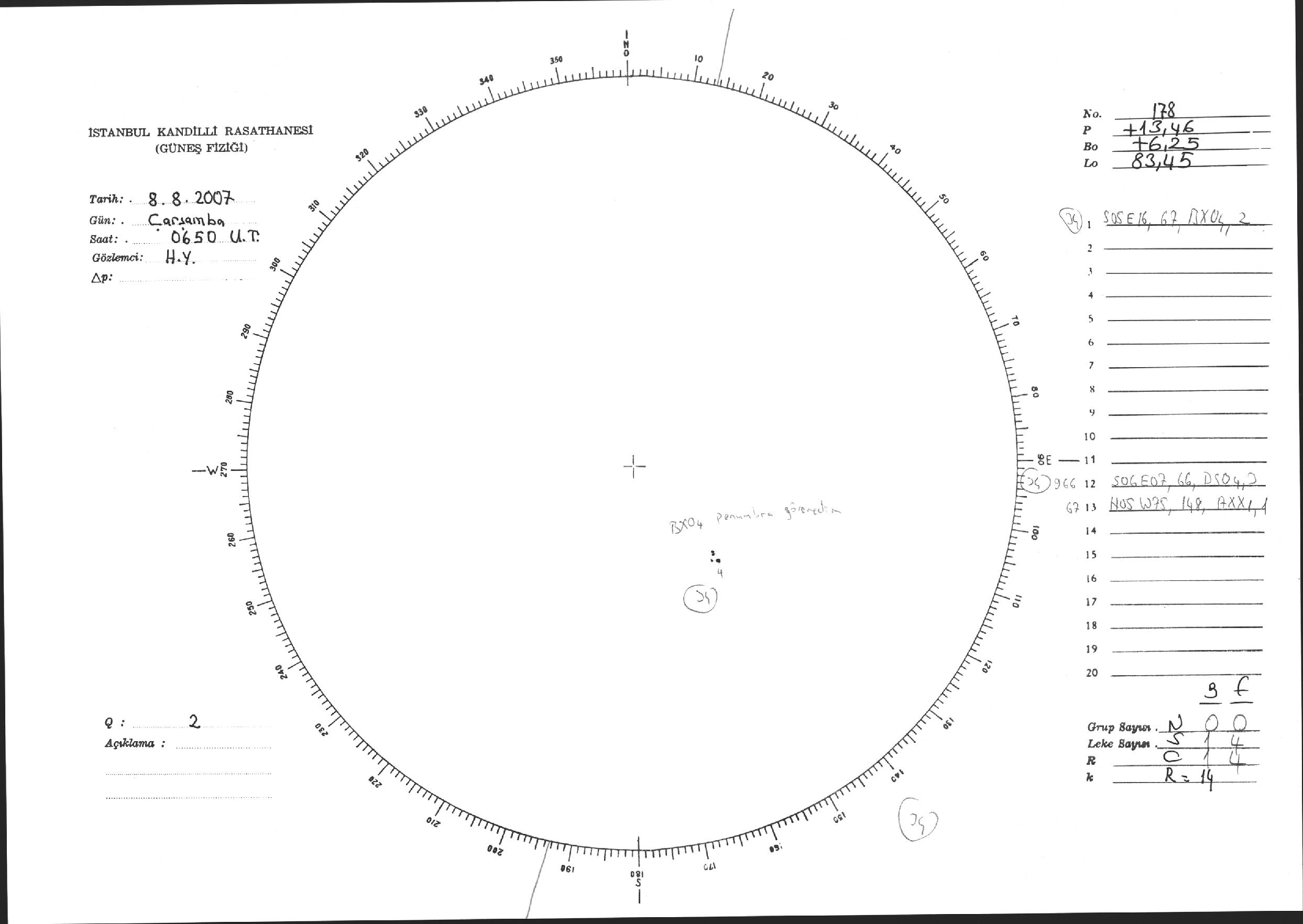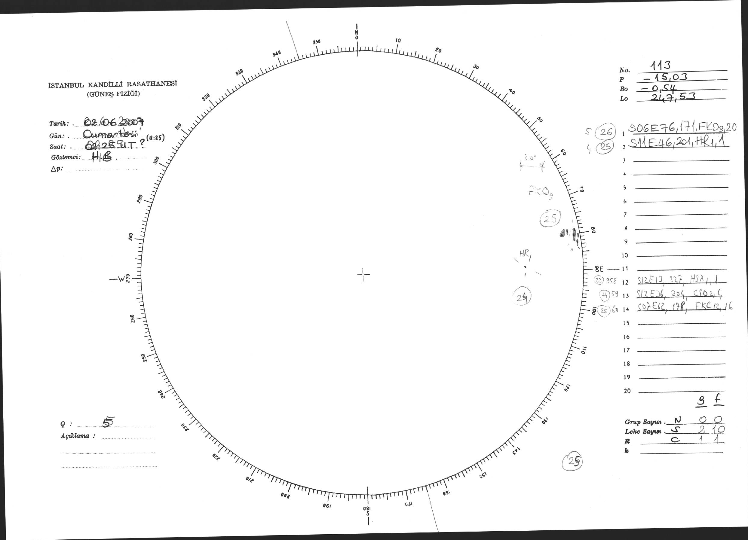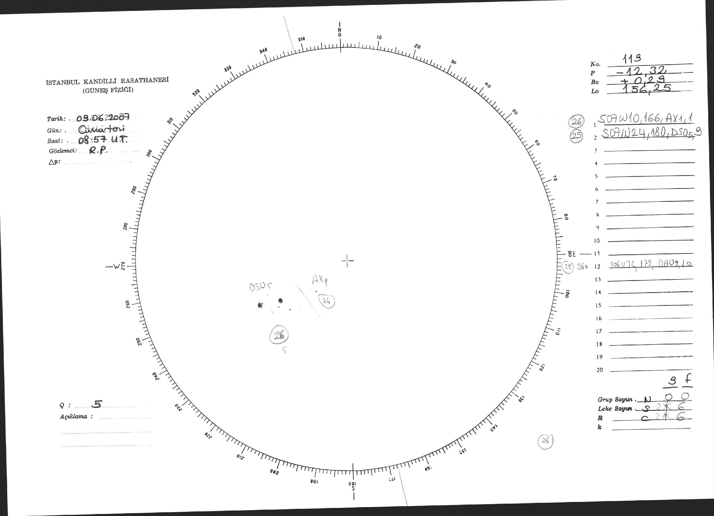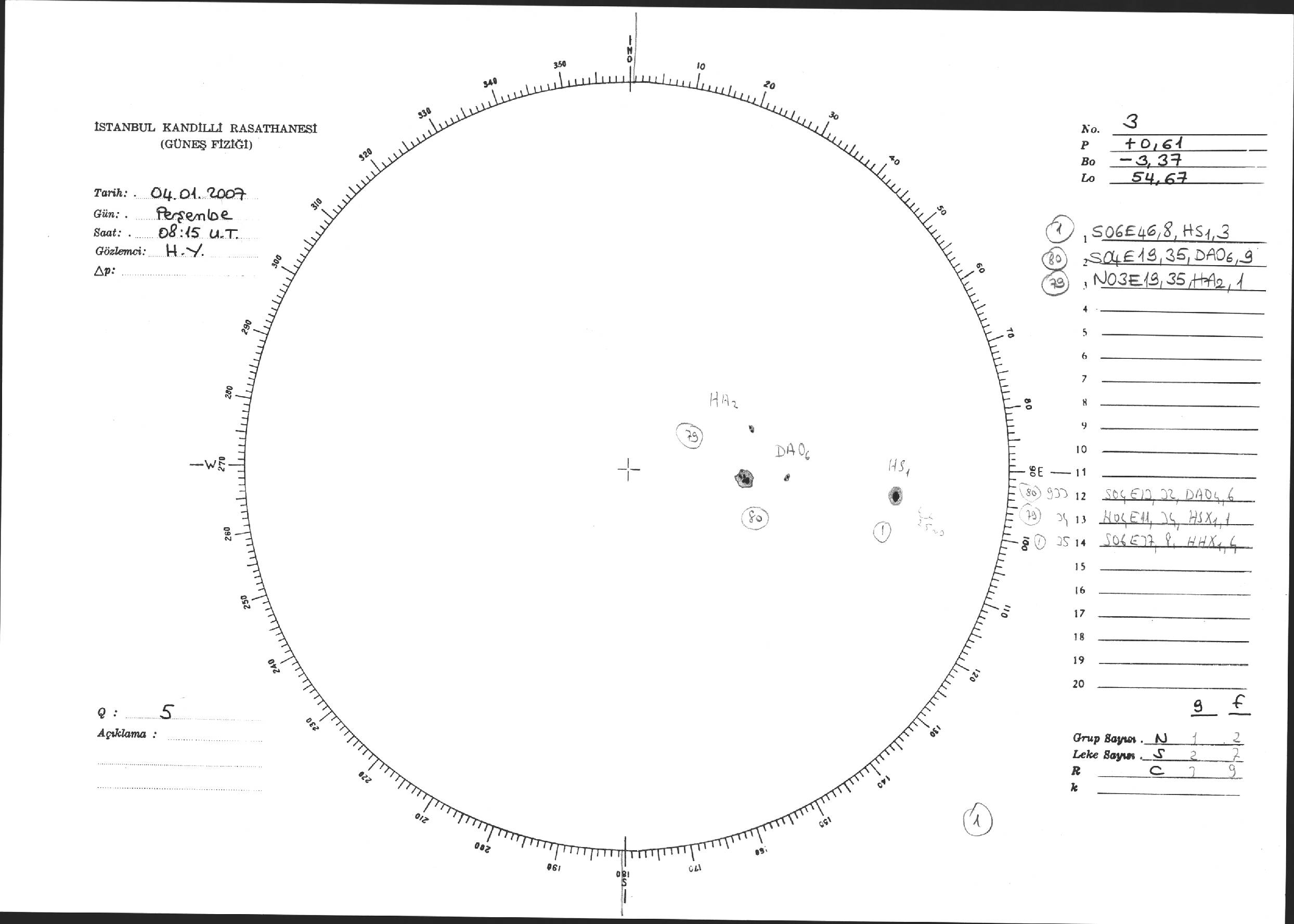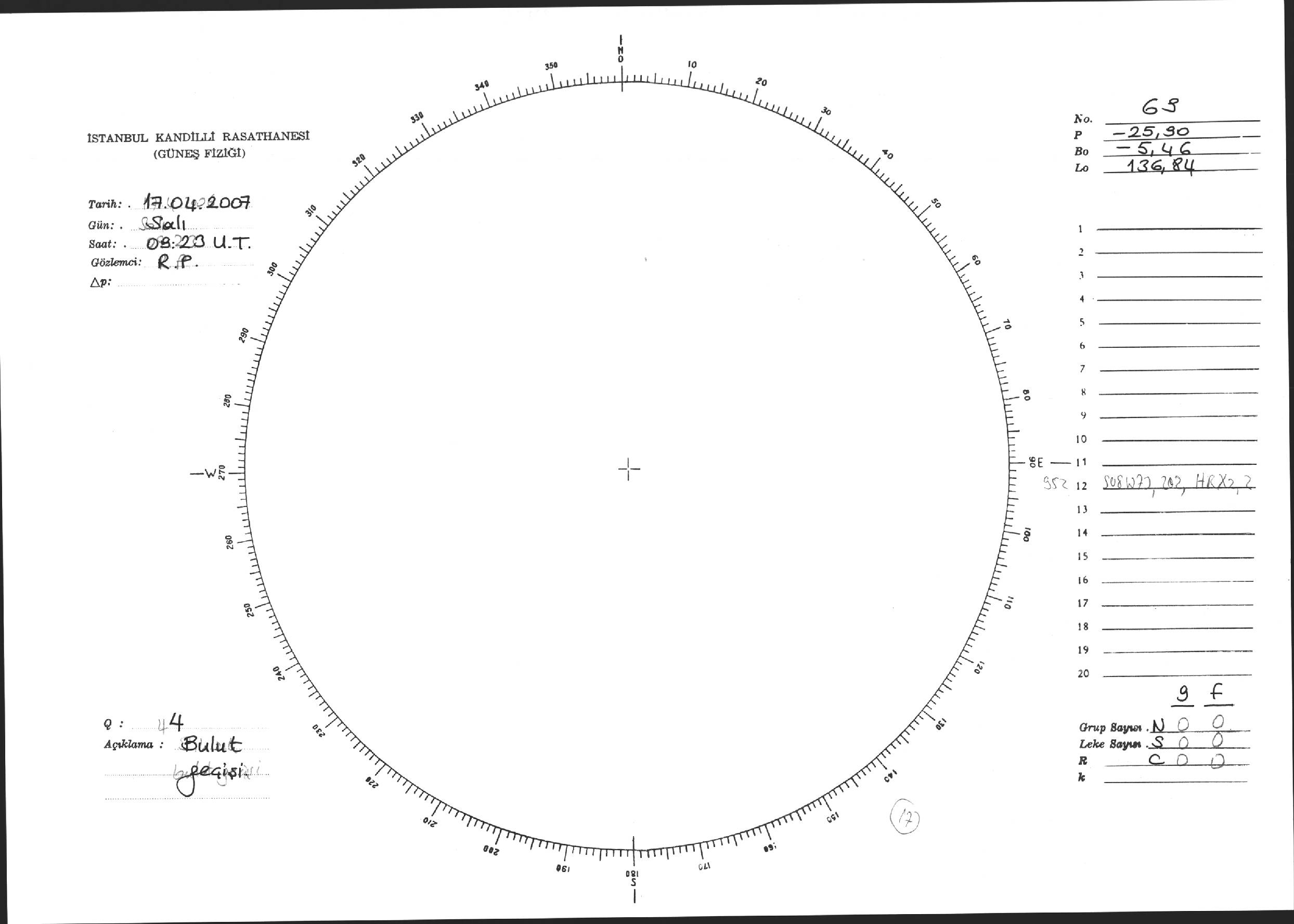 Güneş Lekesi Çizimleri / Kandilli Sunspot Drawings