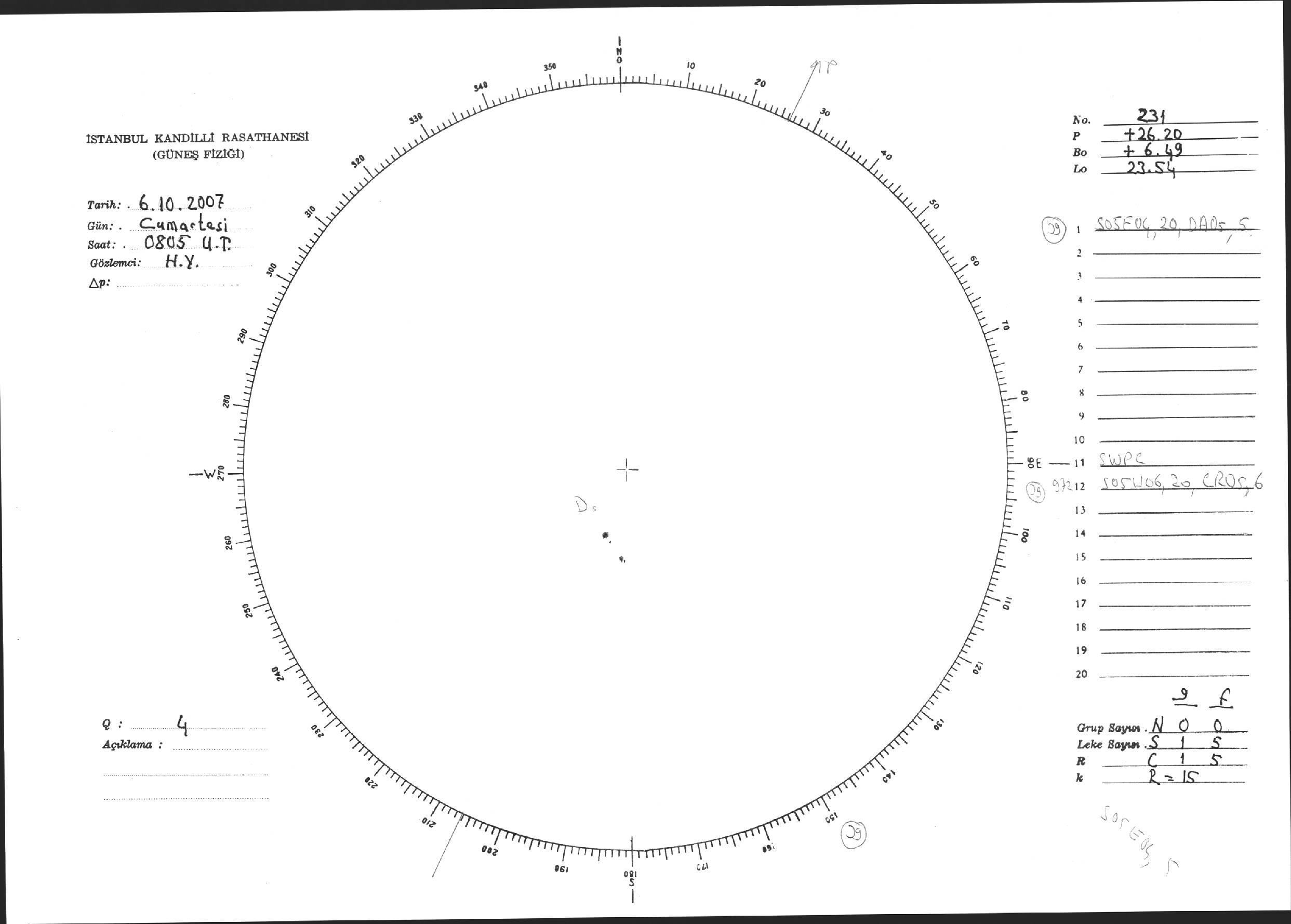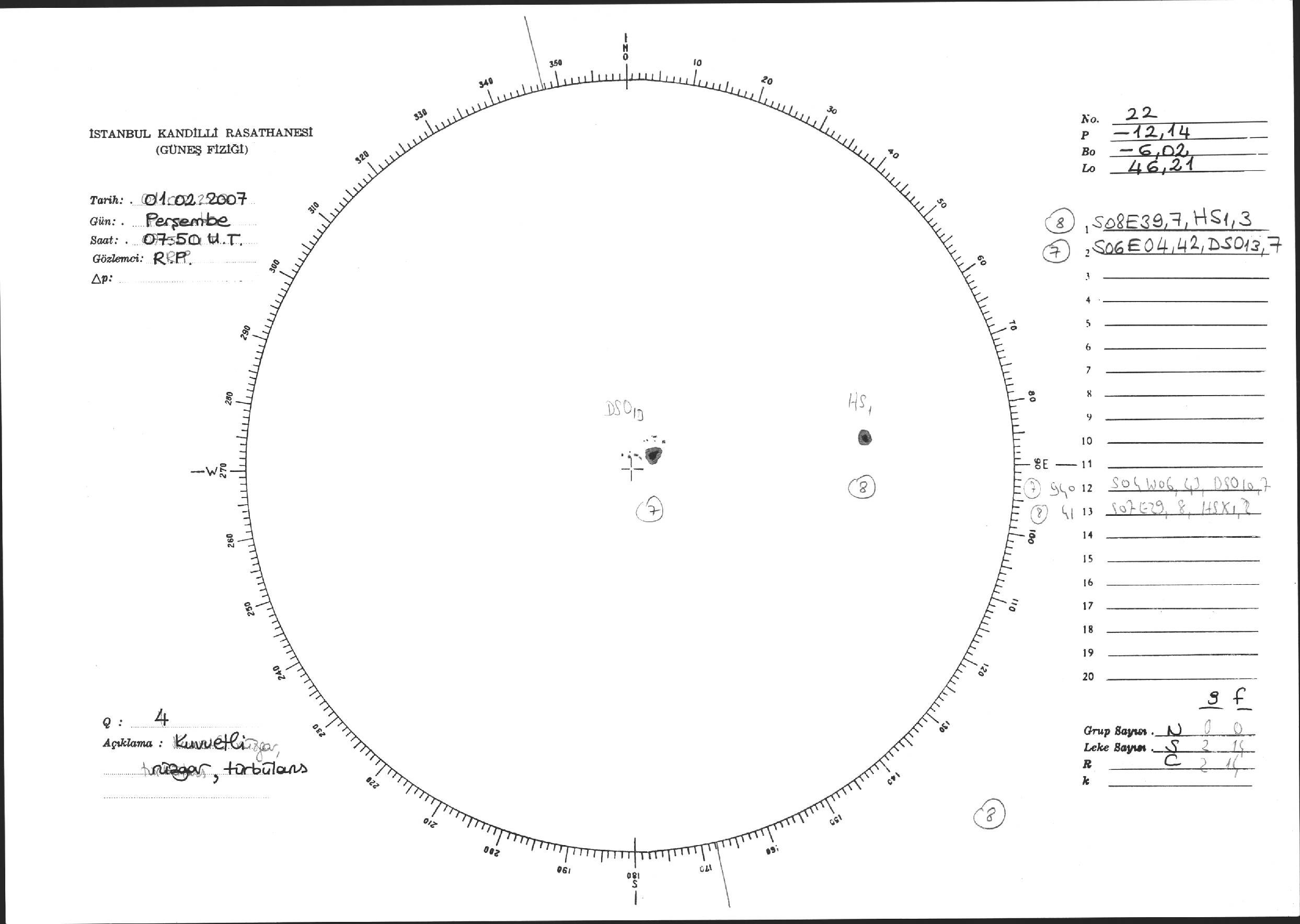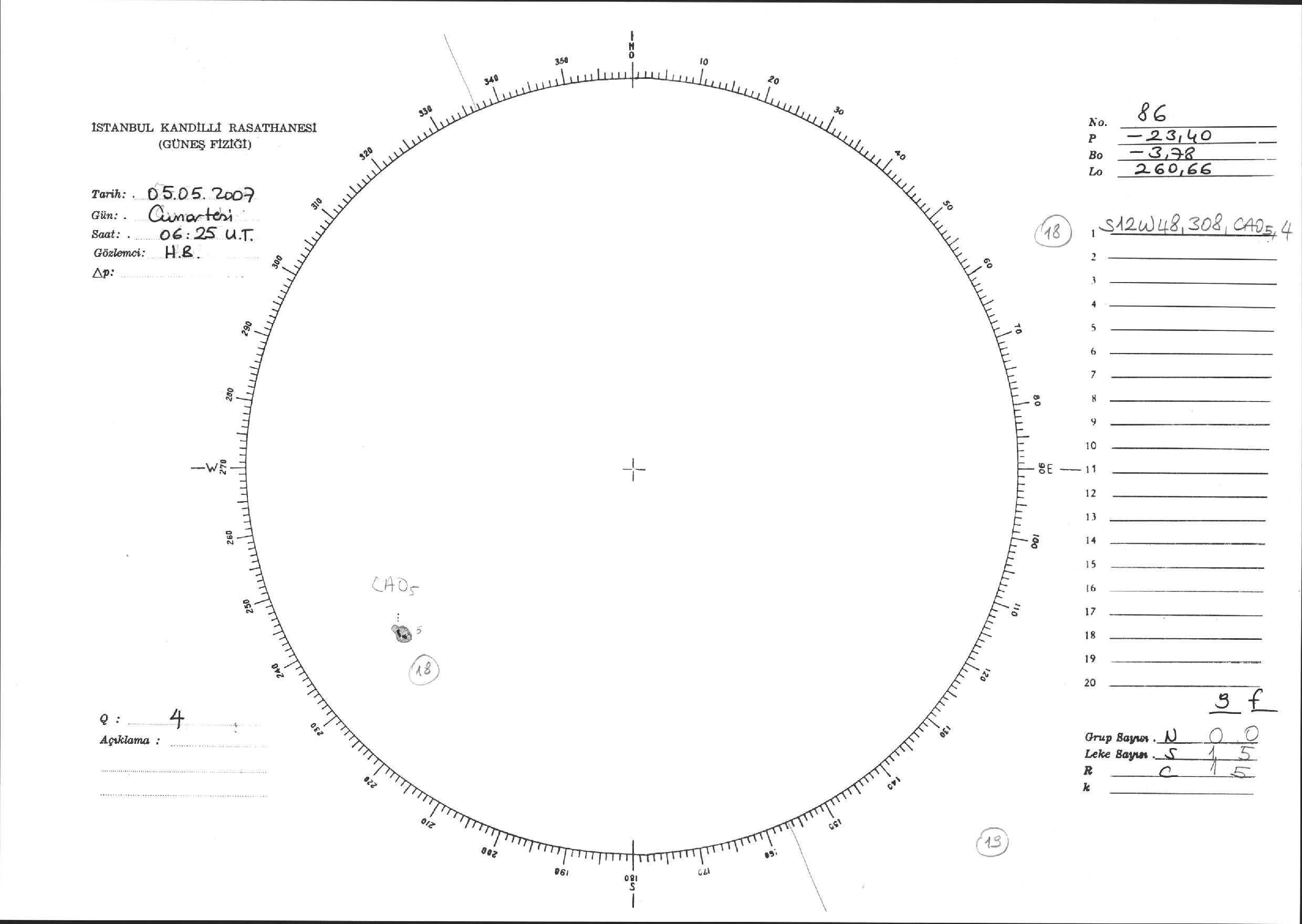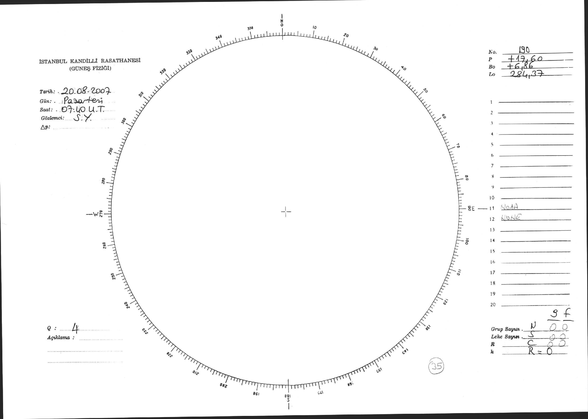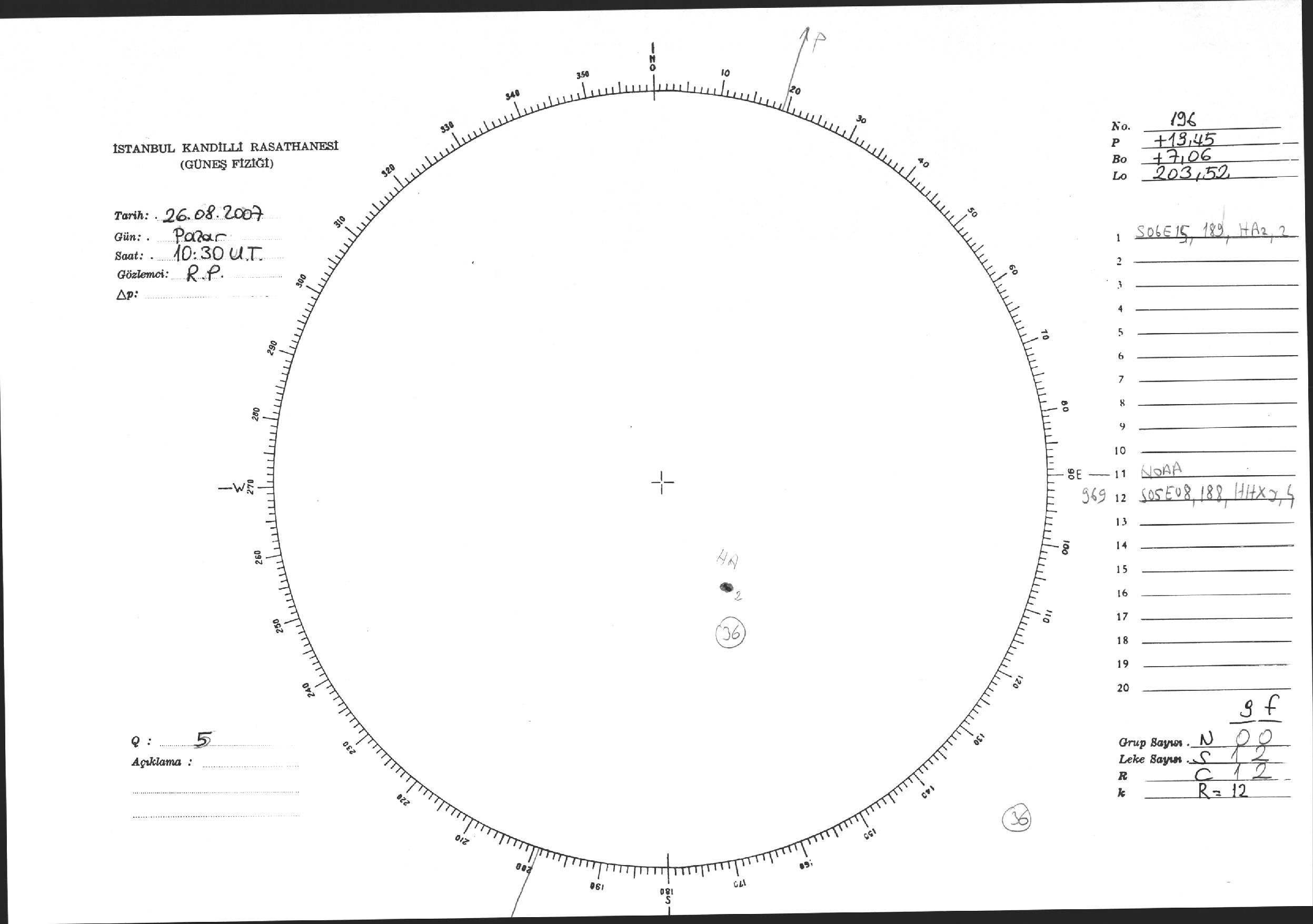 Güneş Lekesi Çizimleri / Kandilli Sunspot Drawings