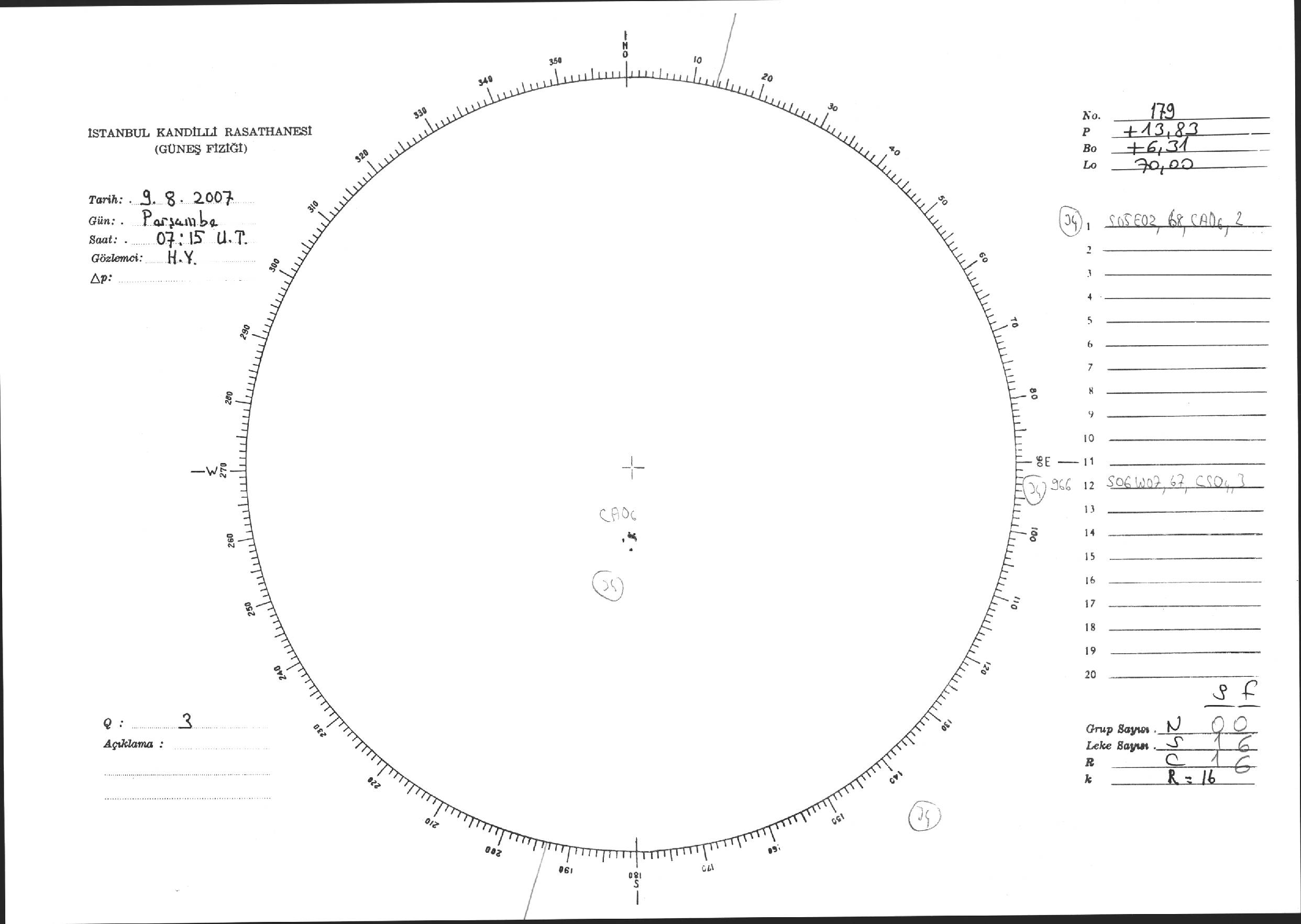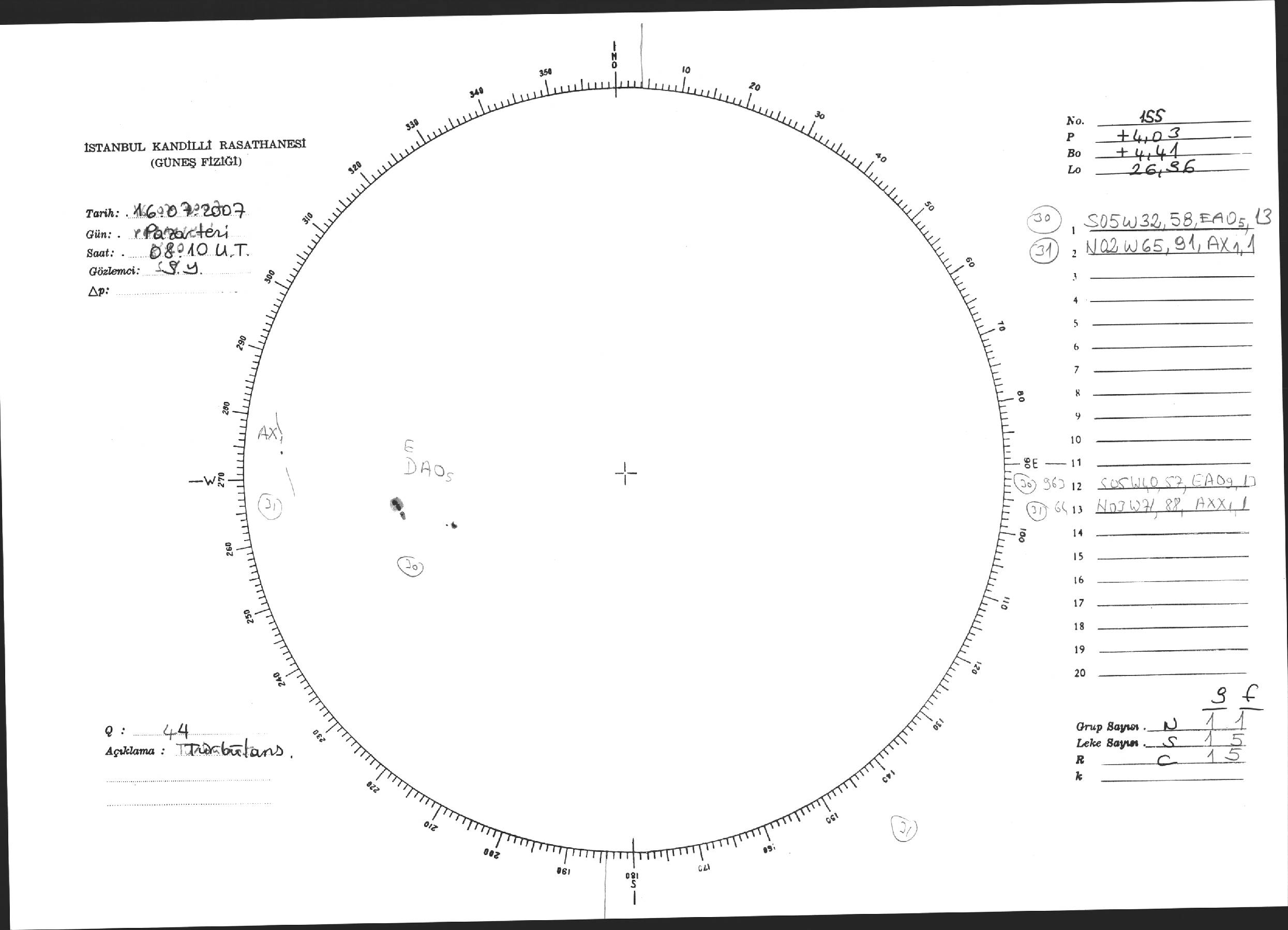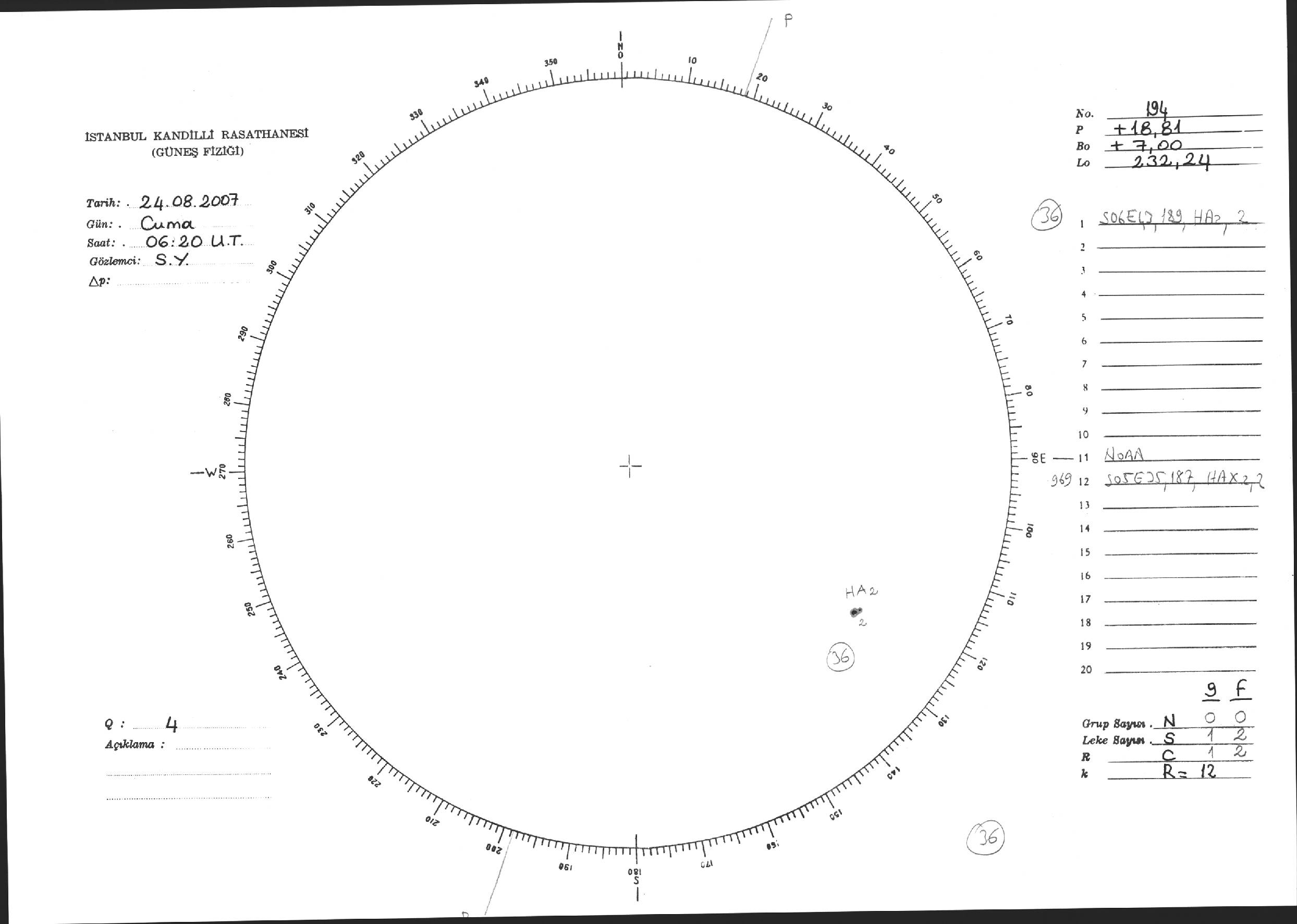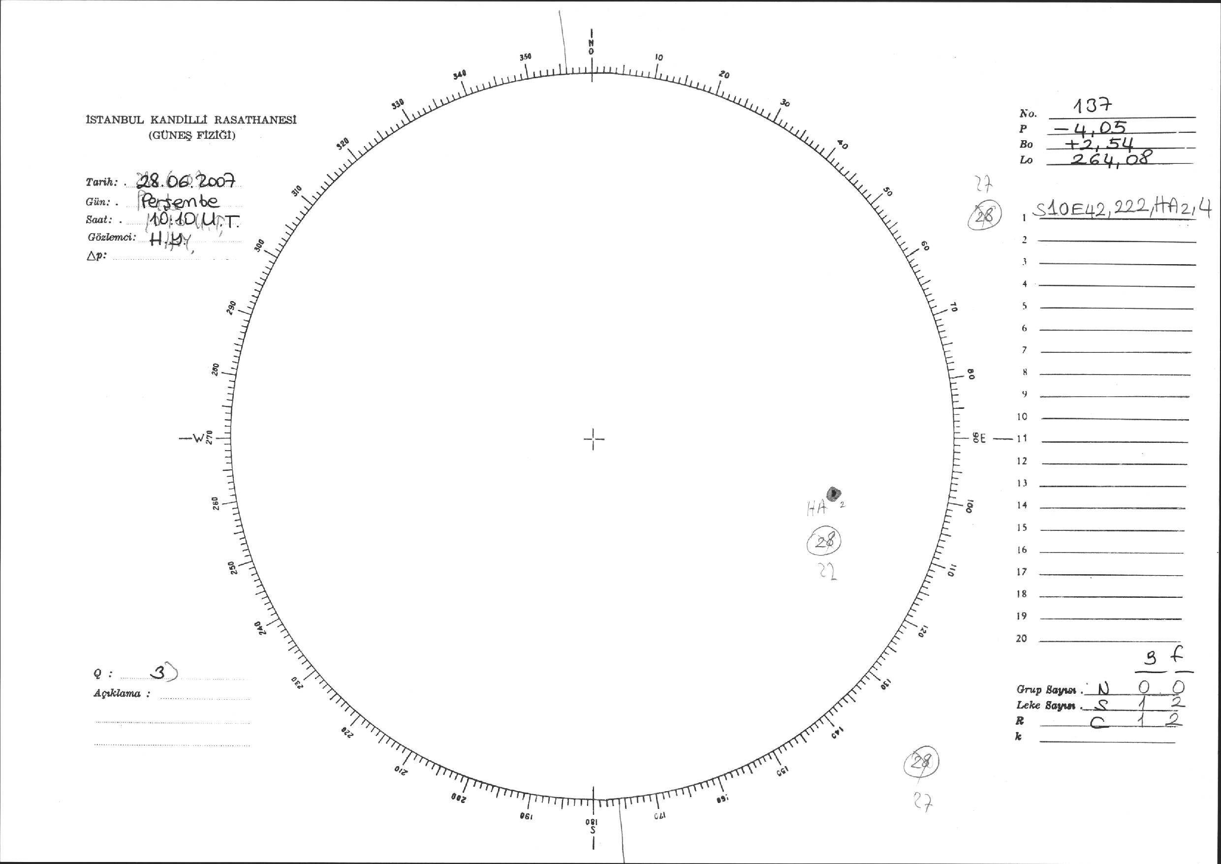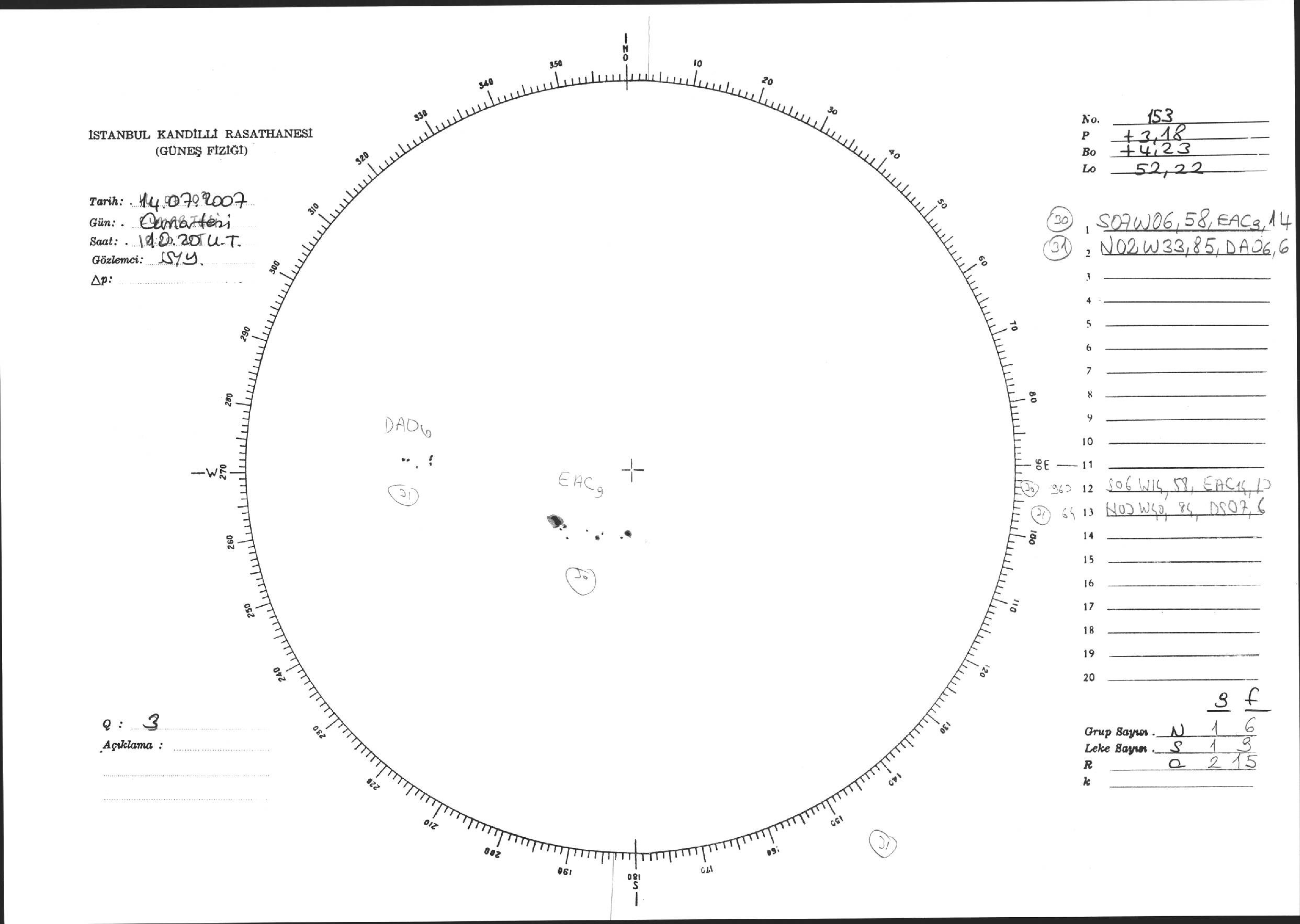 Güneş Lekesi Çizimleri / Kandilli Sunspot Drawings